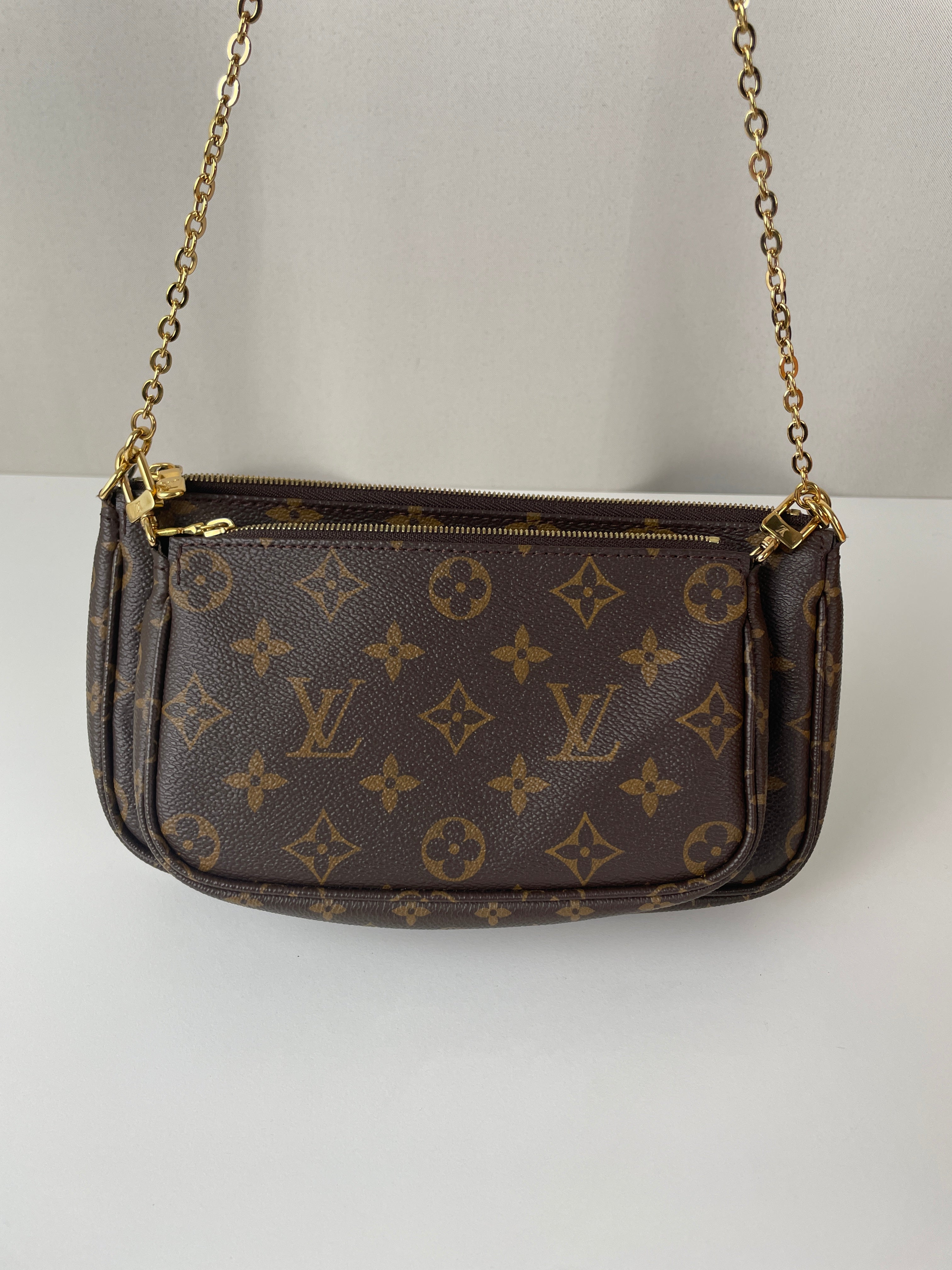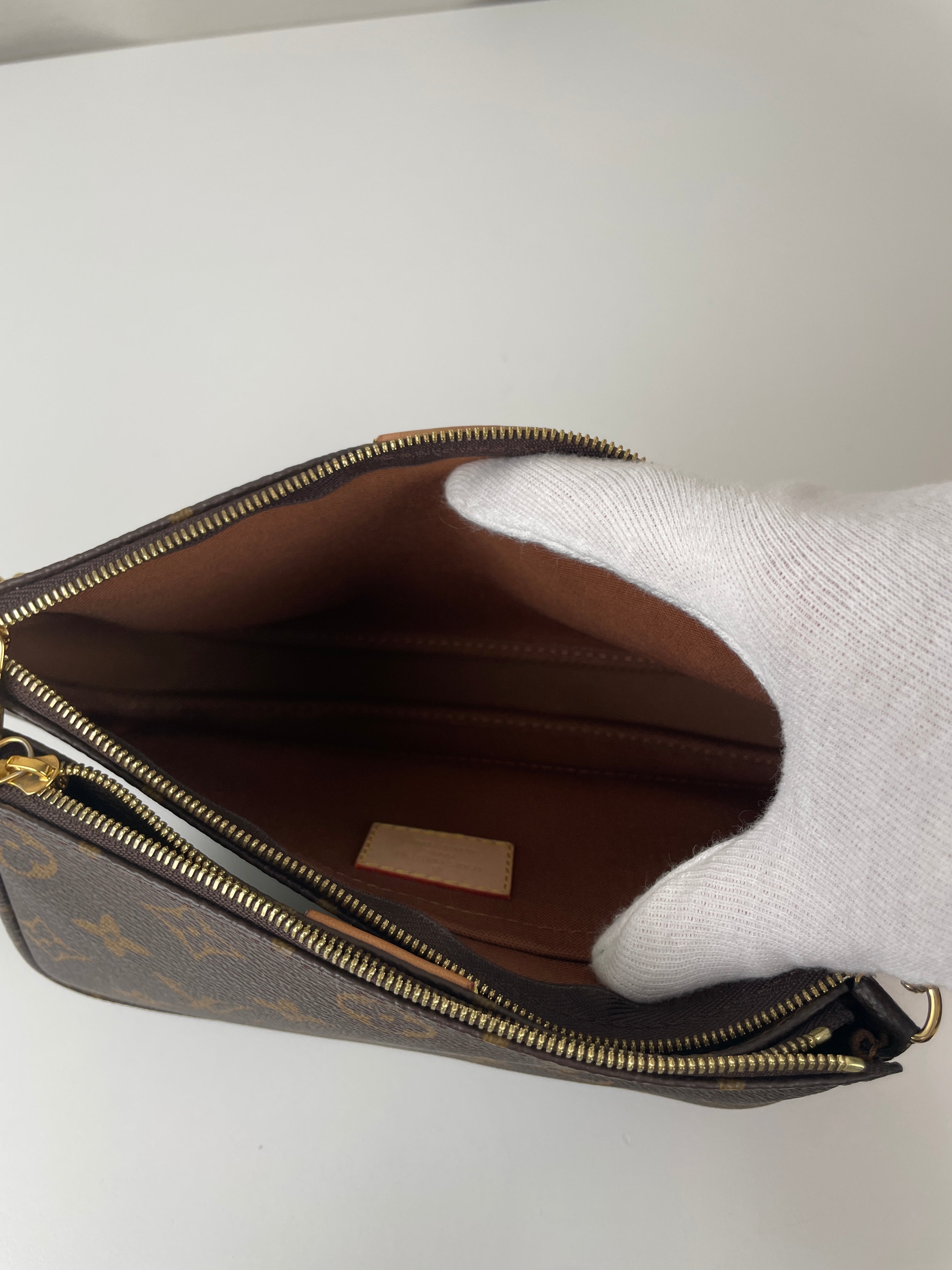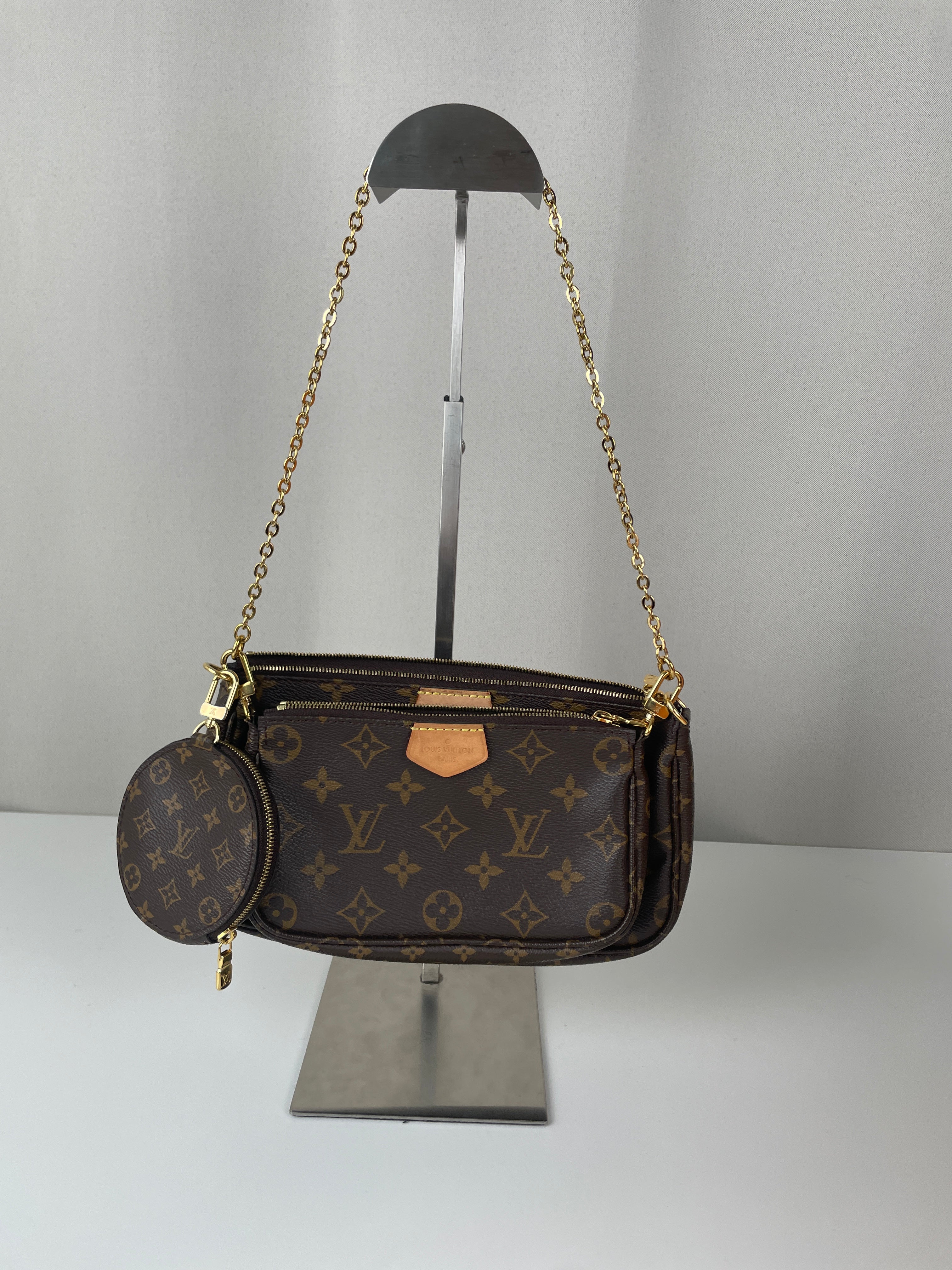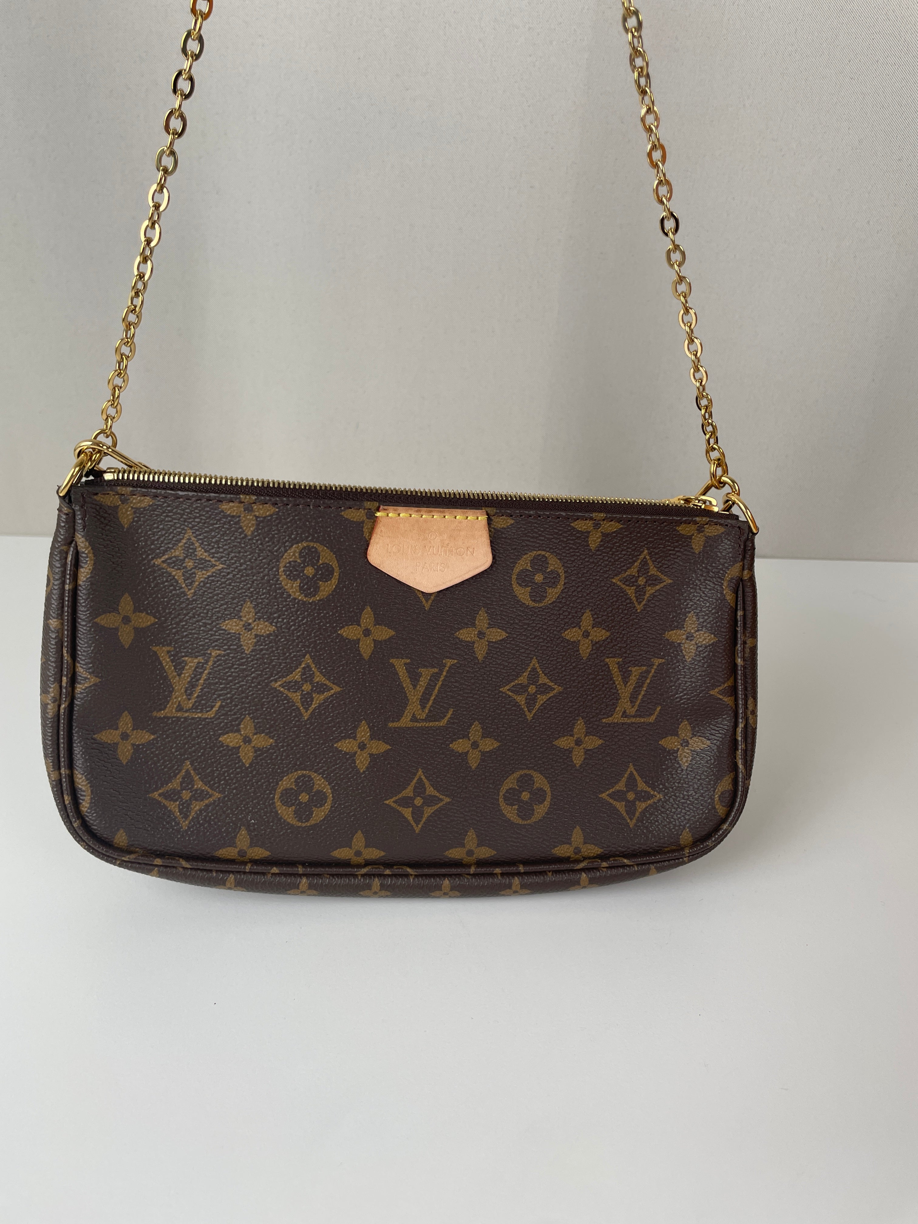 Ce sac Louis Vuitton Multi Pochette Accessoires avec bandoulière kaki est l’un des modèles les plus convoités de la maison. Il comprend la Pochette Accessoires classique et la Mini Pochette Accessoires en toile Monogram, le tout porté par une bandoulière large kaki pour un look à la fois tendance et pratique. Le sac parfait pour un porté croisé stylé au quotidien.