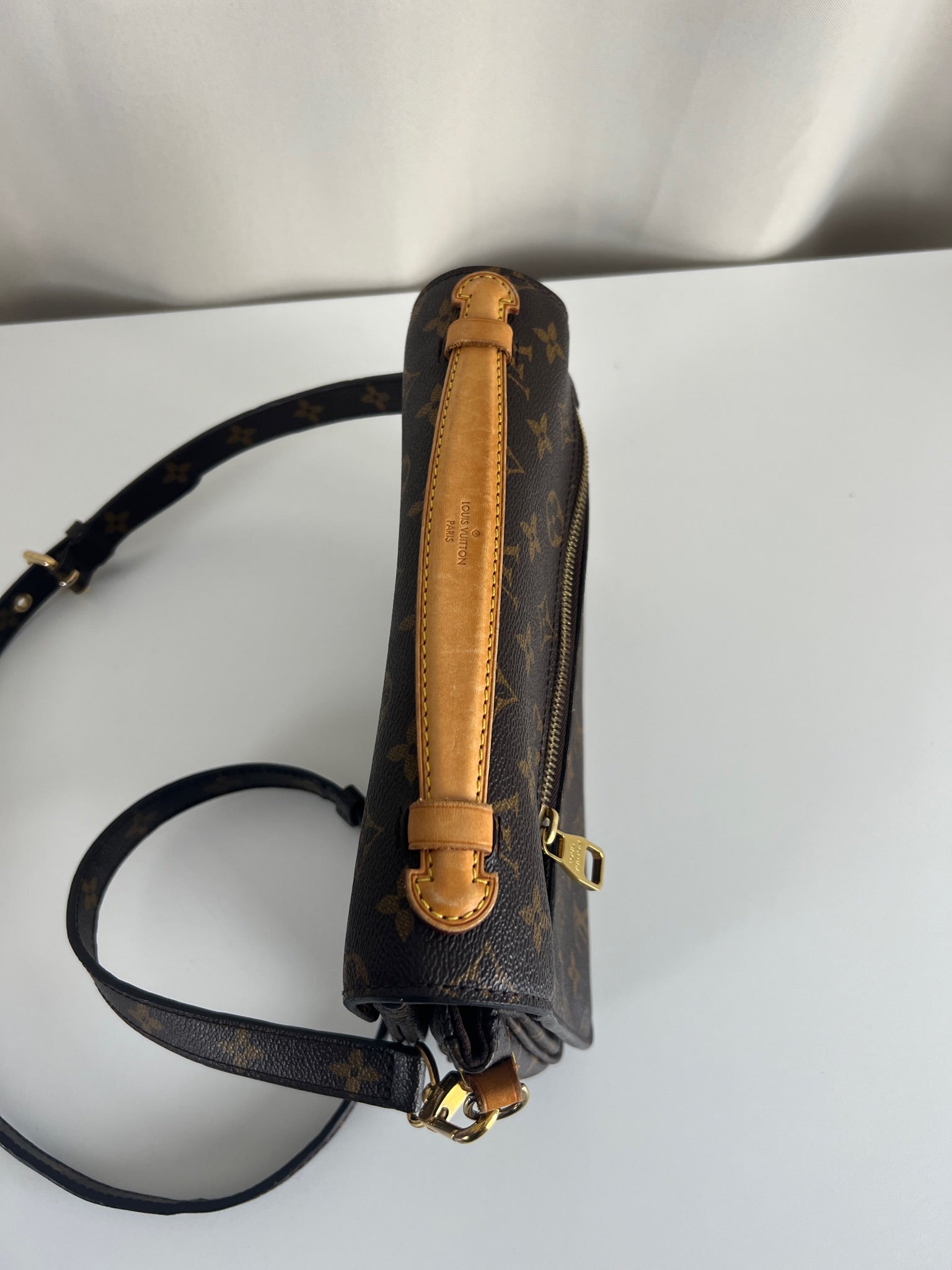 Ce sac Louis Vuitton Métis est en très bon état. La toile et les coins sont en très bon état. Les coins sont un peu frottés très peu. Les parties en cuir sont tannées et en très bon état. La bijouterie présente quelques traces d'usure. L'intérieur est en très bon état, quelques traces au fond du sac, difficile de la voir car le tissu à l'intérieur est marron très foncé. Le sac vient des USA, c'est un made in USA (Louis Vuitton a des usines aux USA oui).