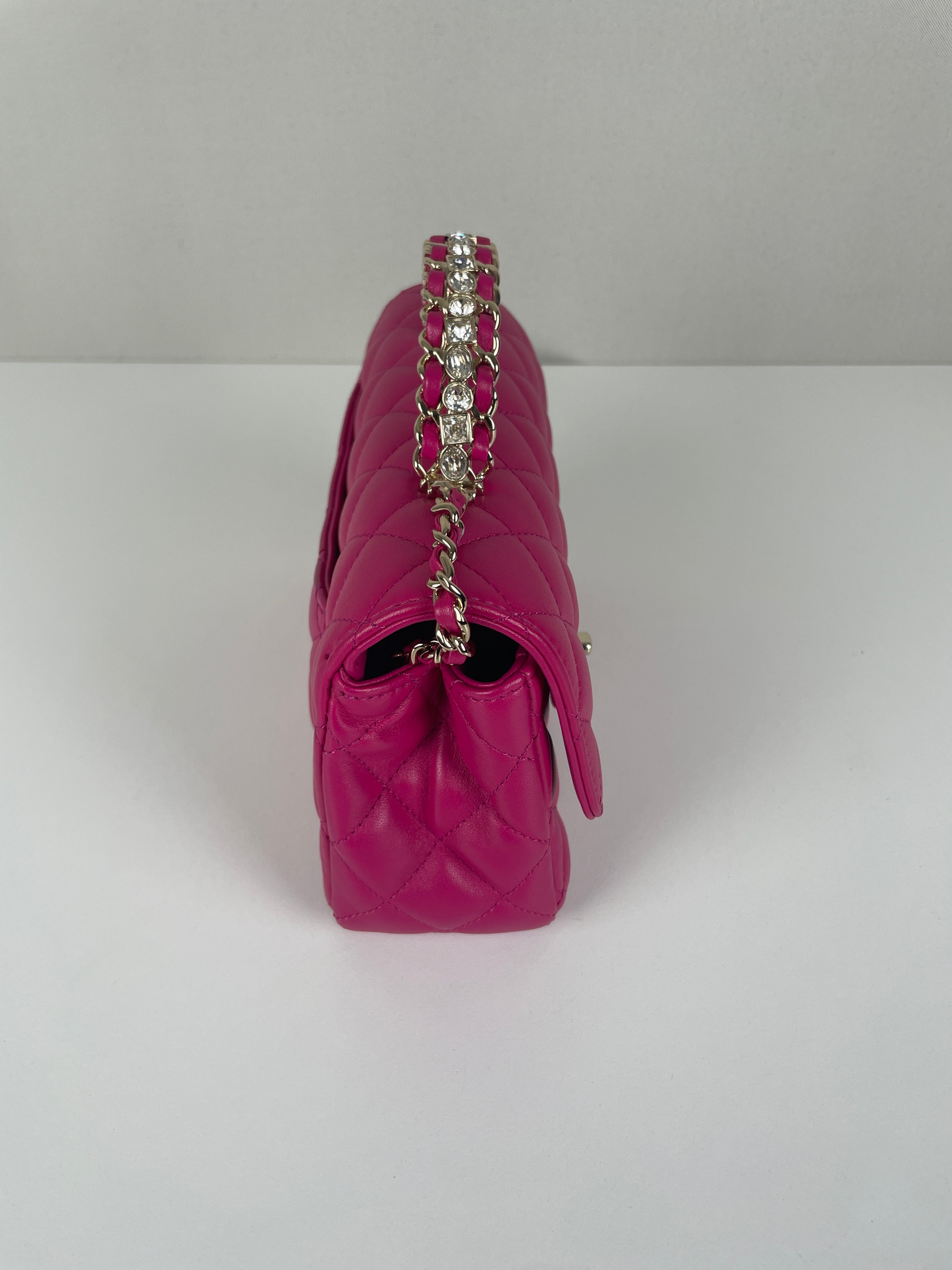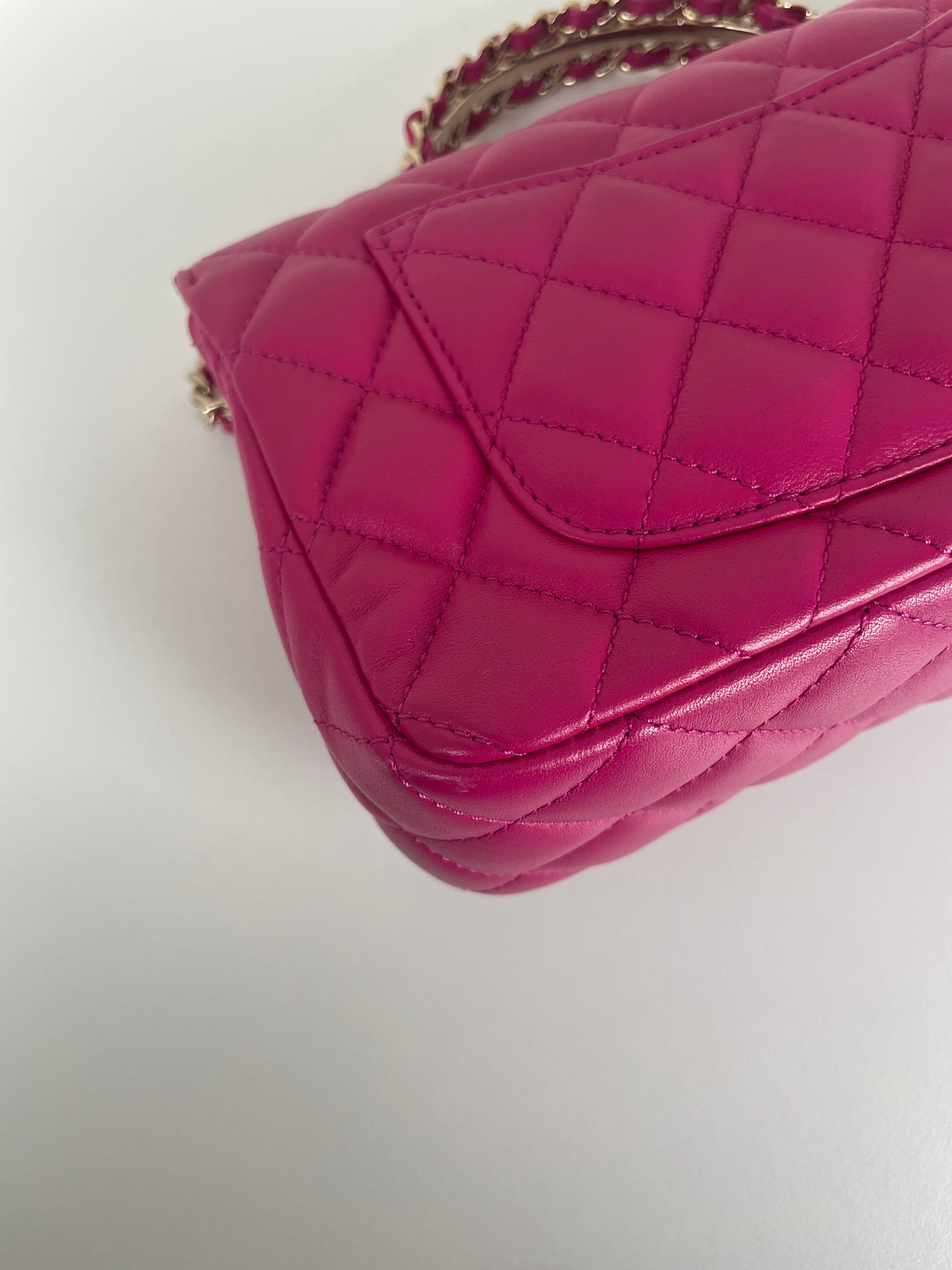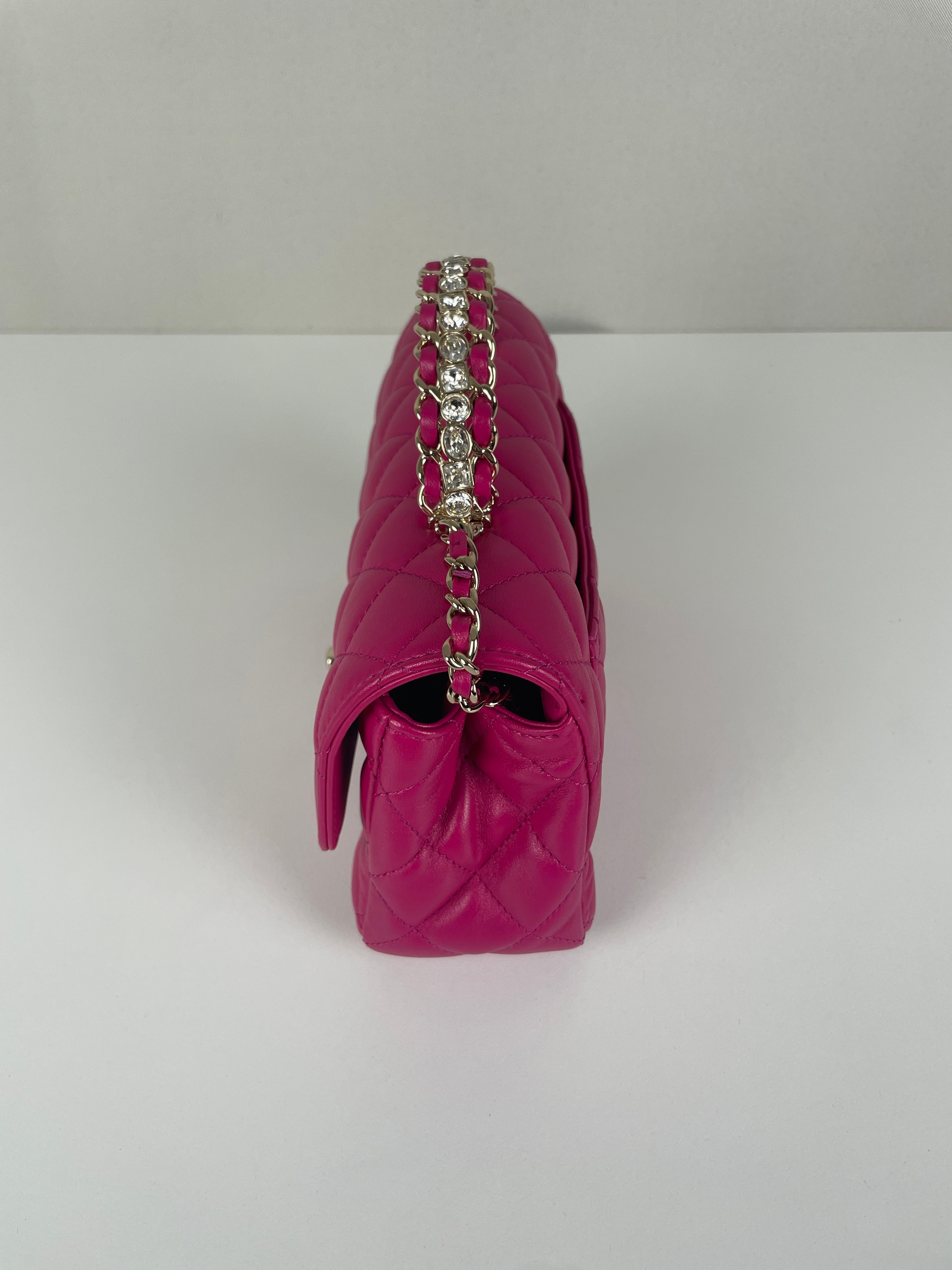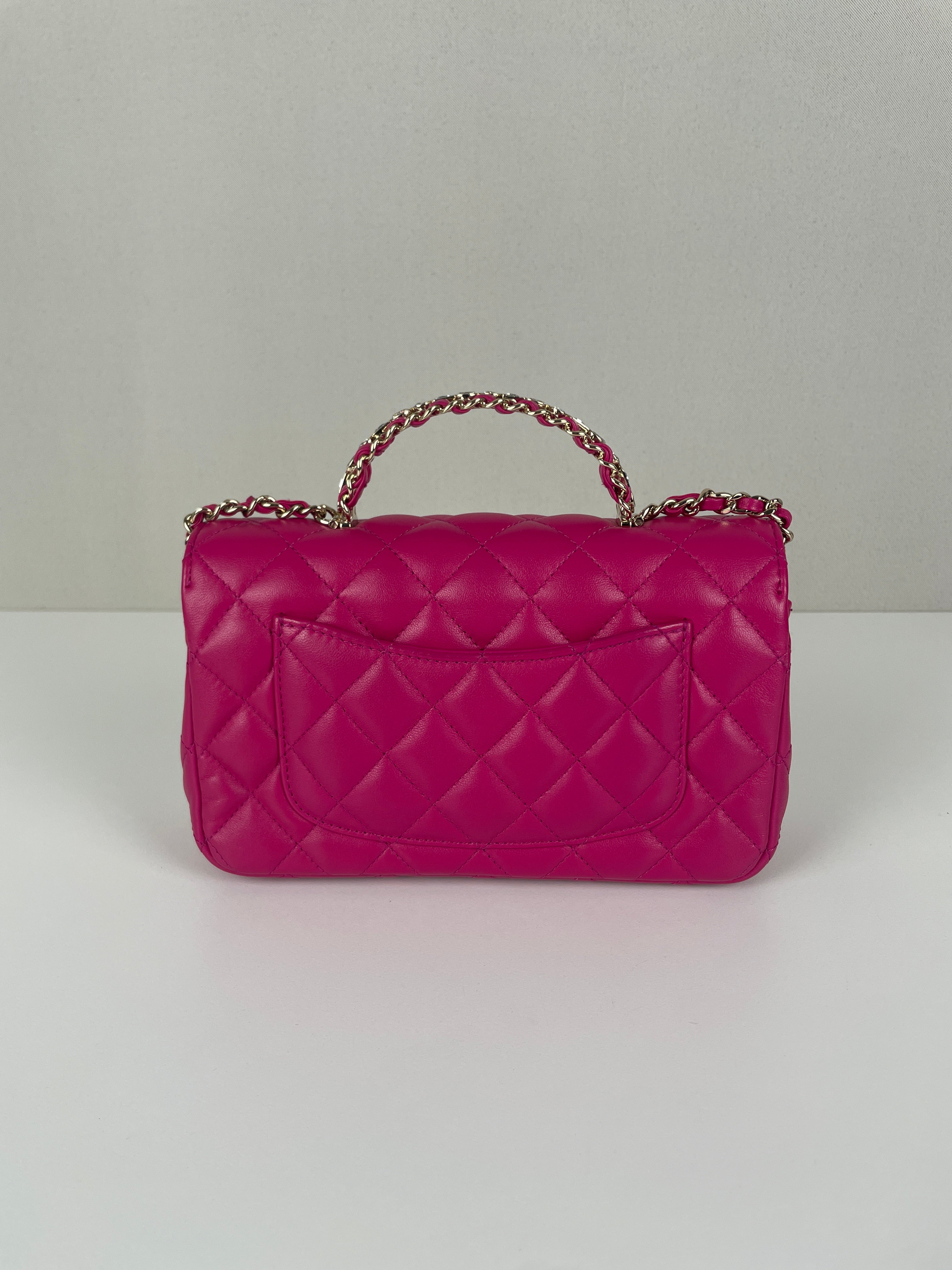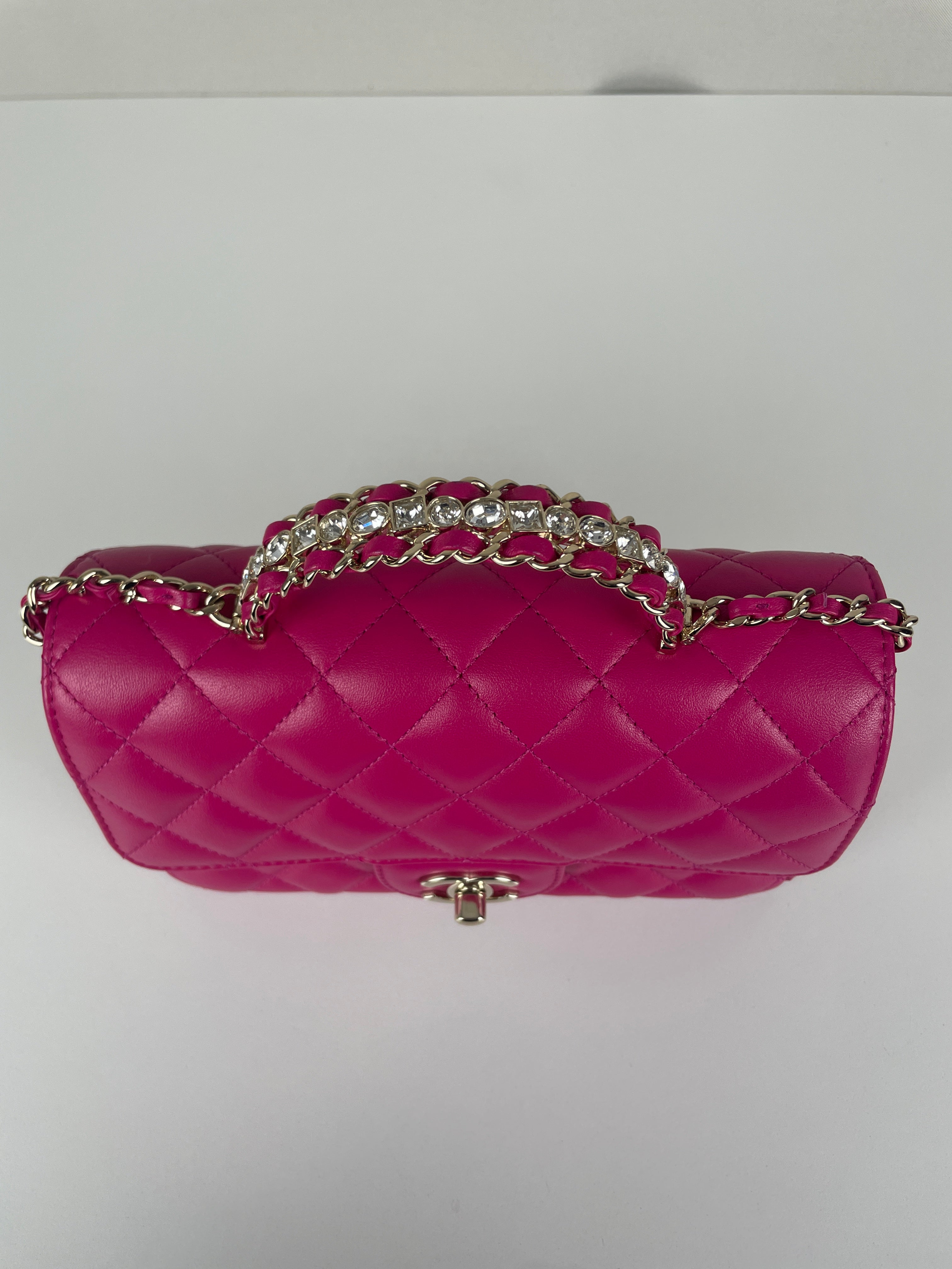 Sac Chanel Timeless Top handle rose avec des strass