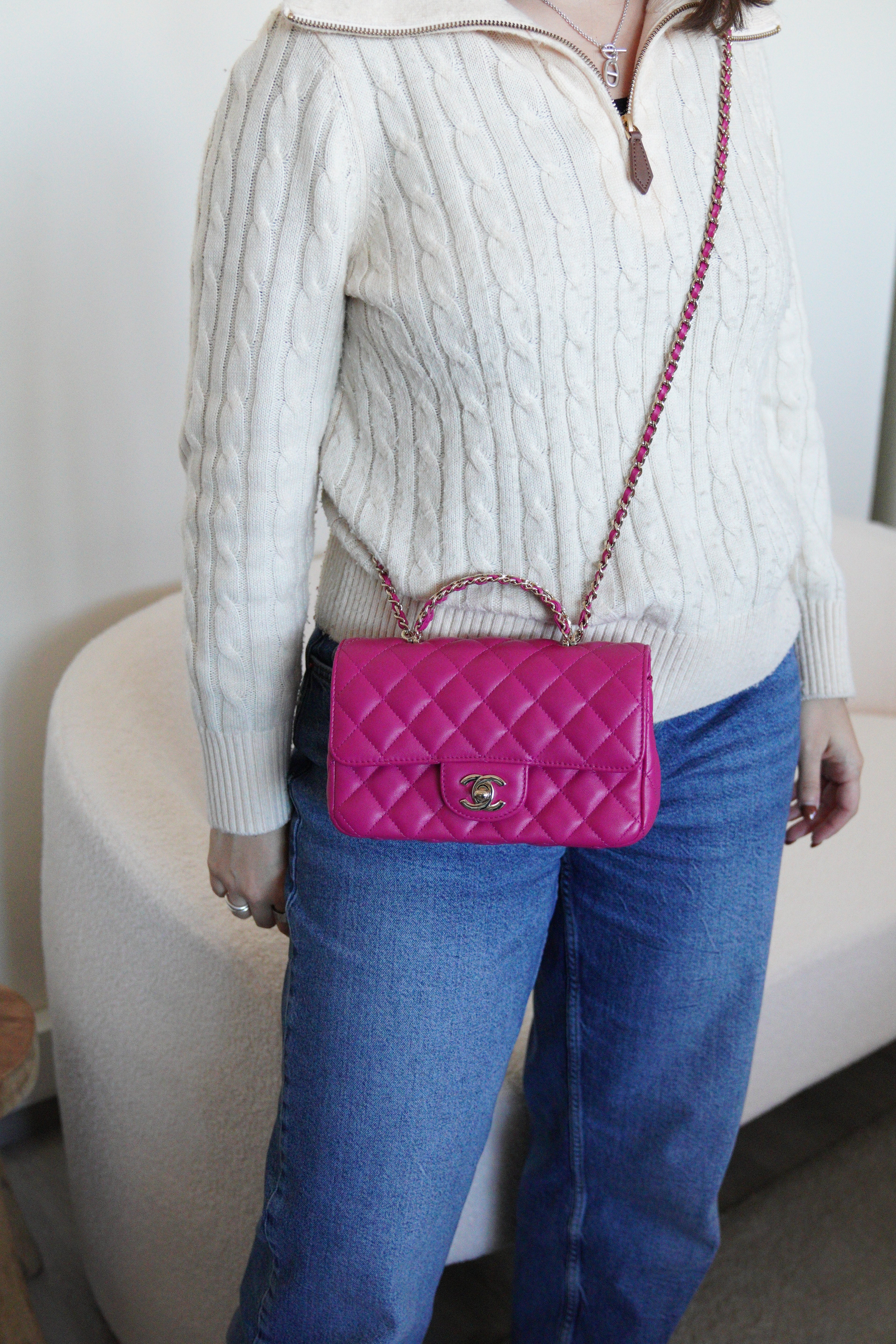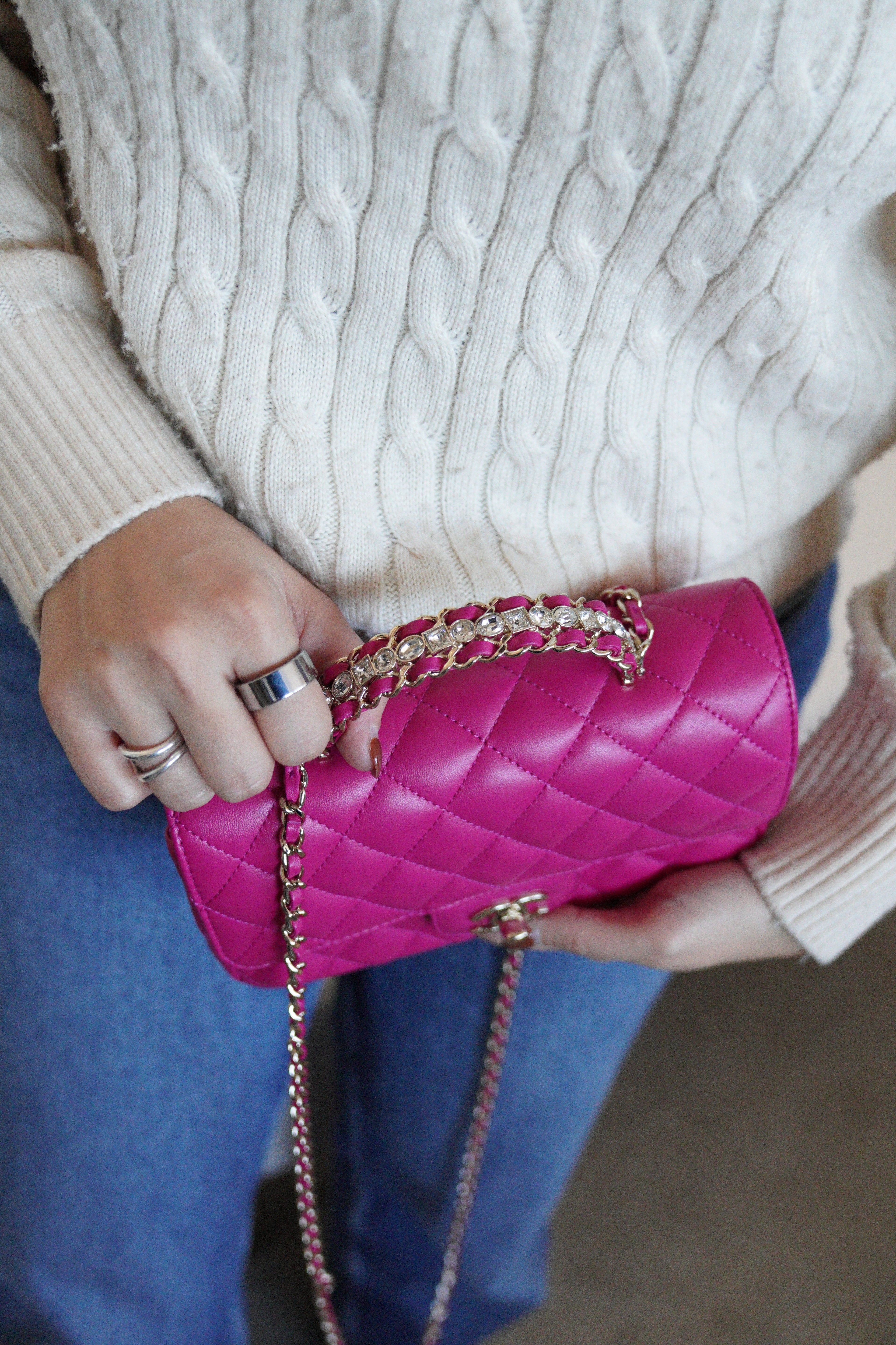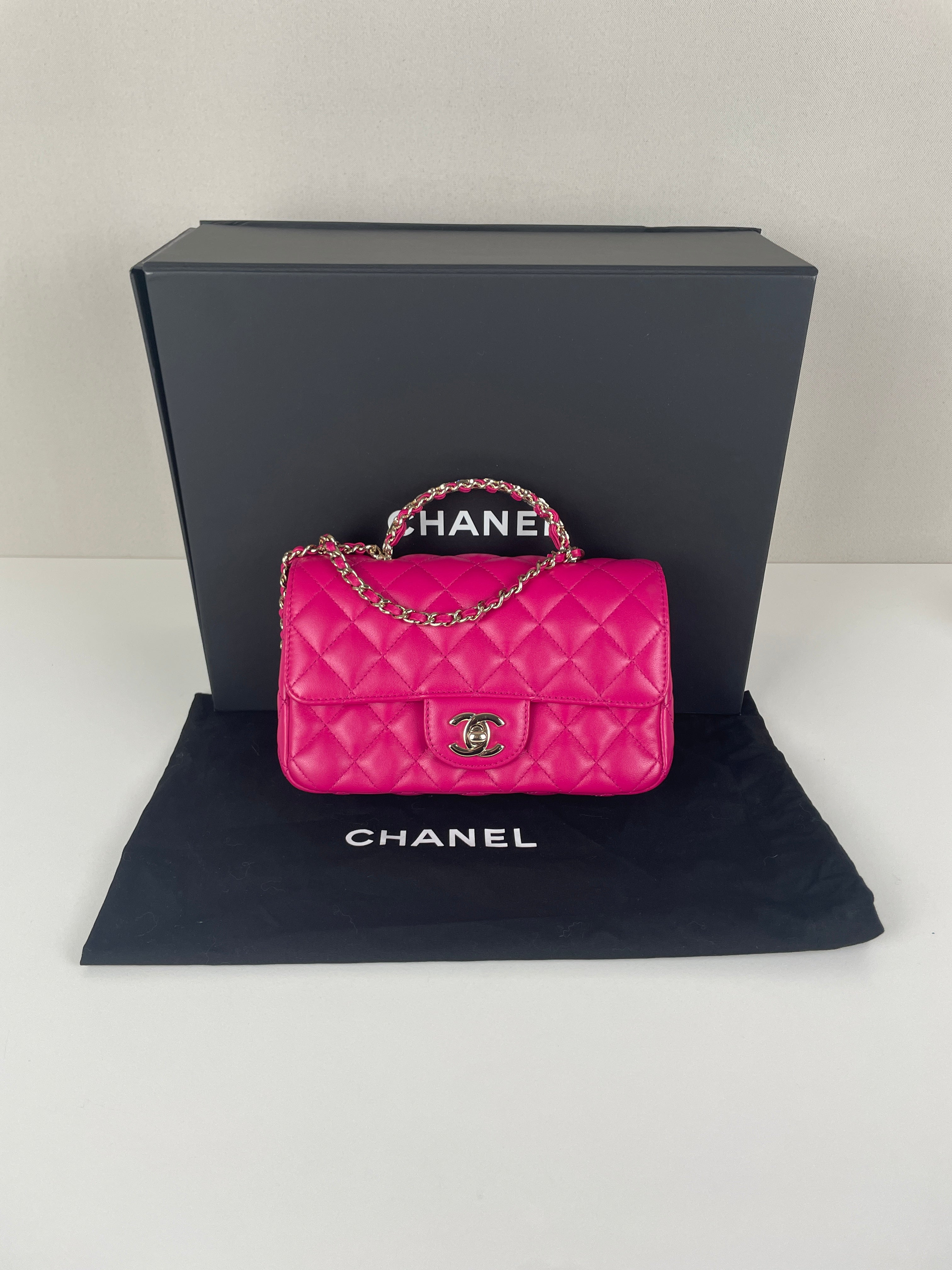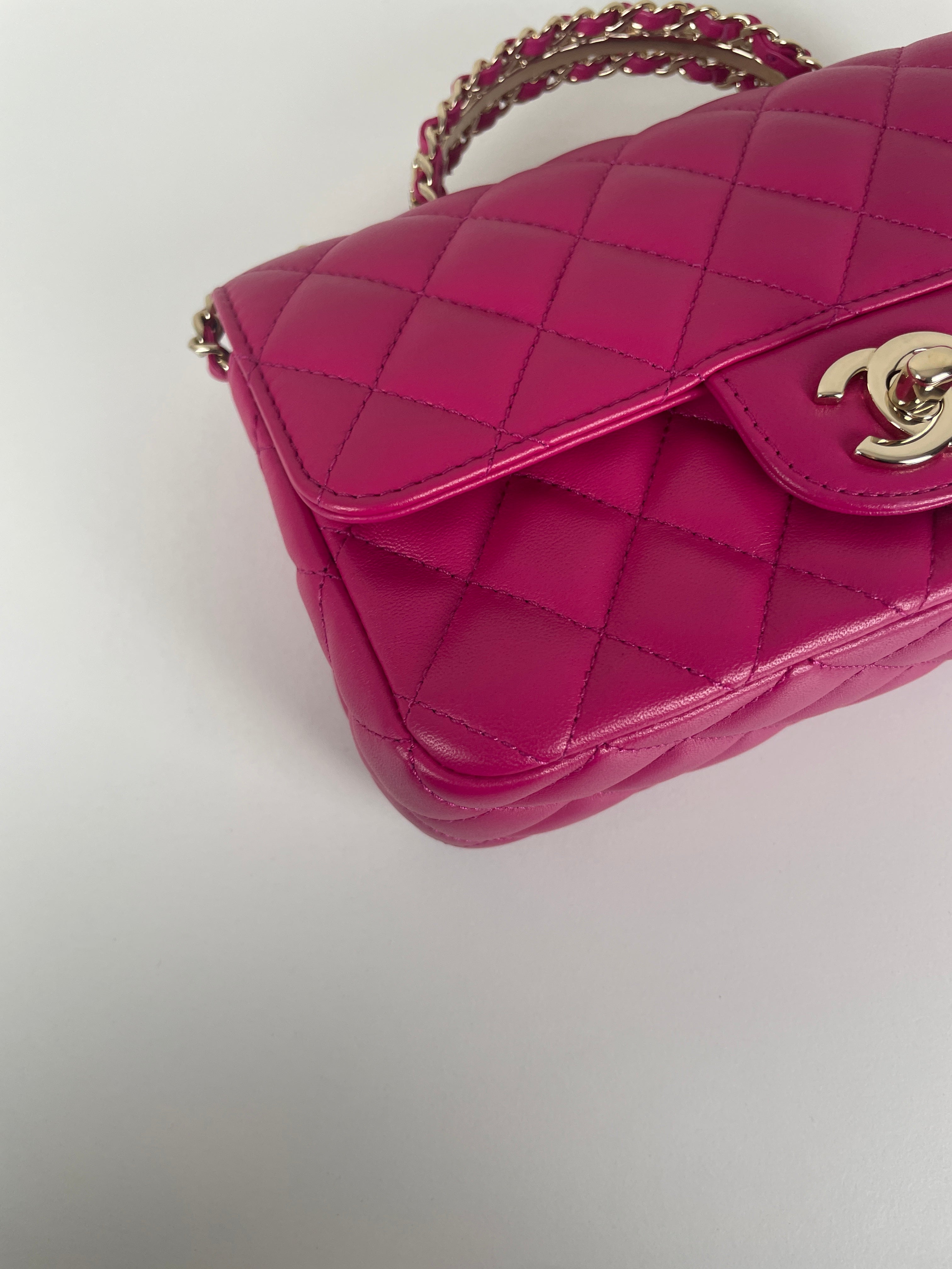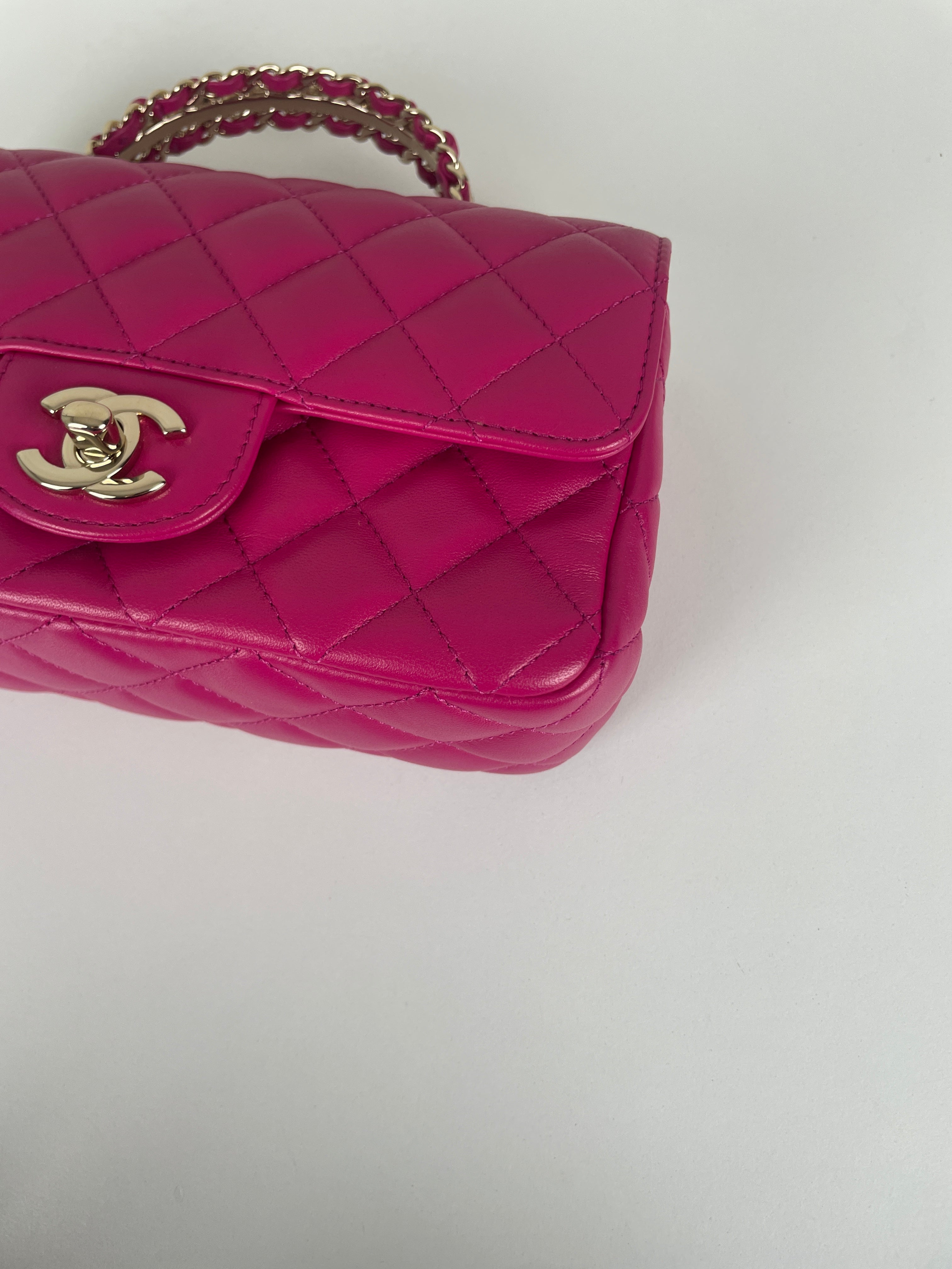 Sac Chanel Timeless Top handle rose avec des strass