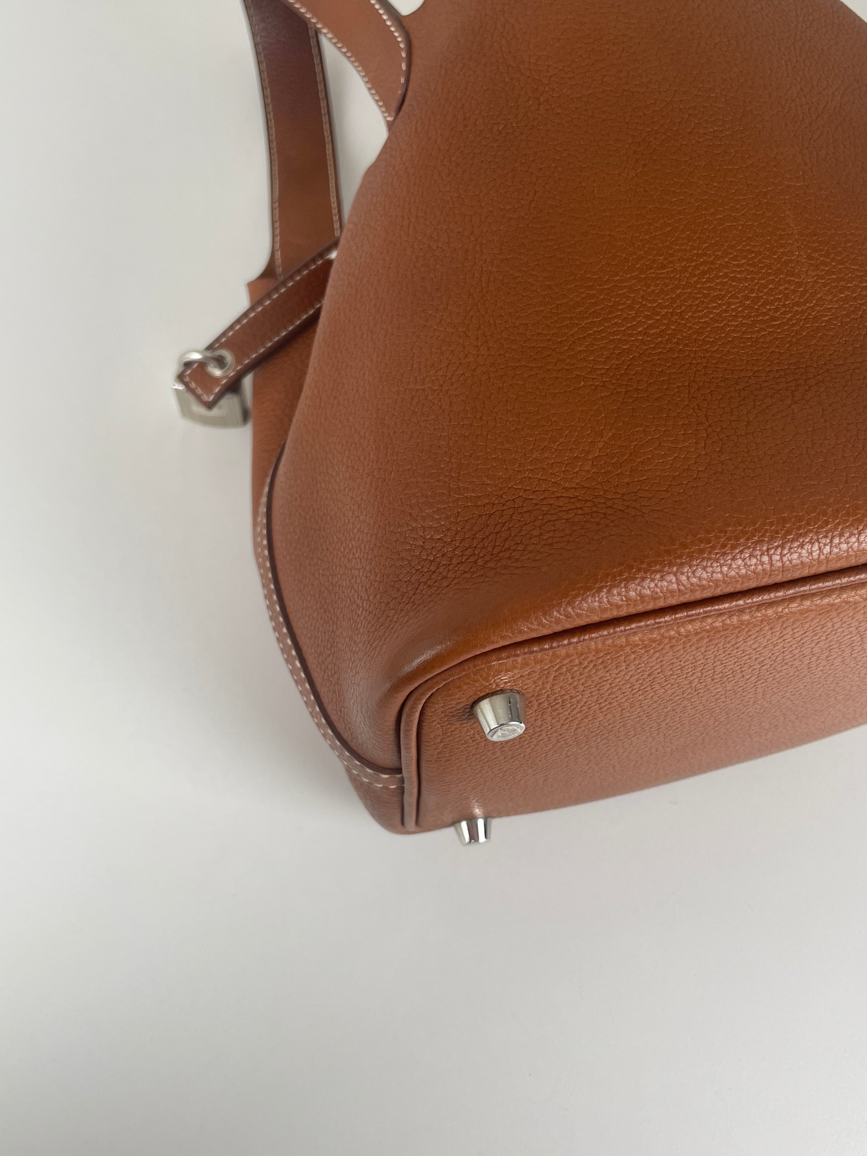 - Bijouterie : Très bon état, légèrement ternis sur les petits pieds du sac