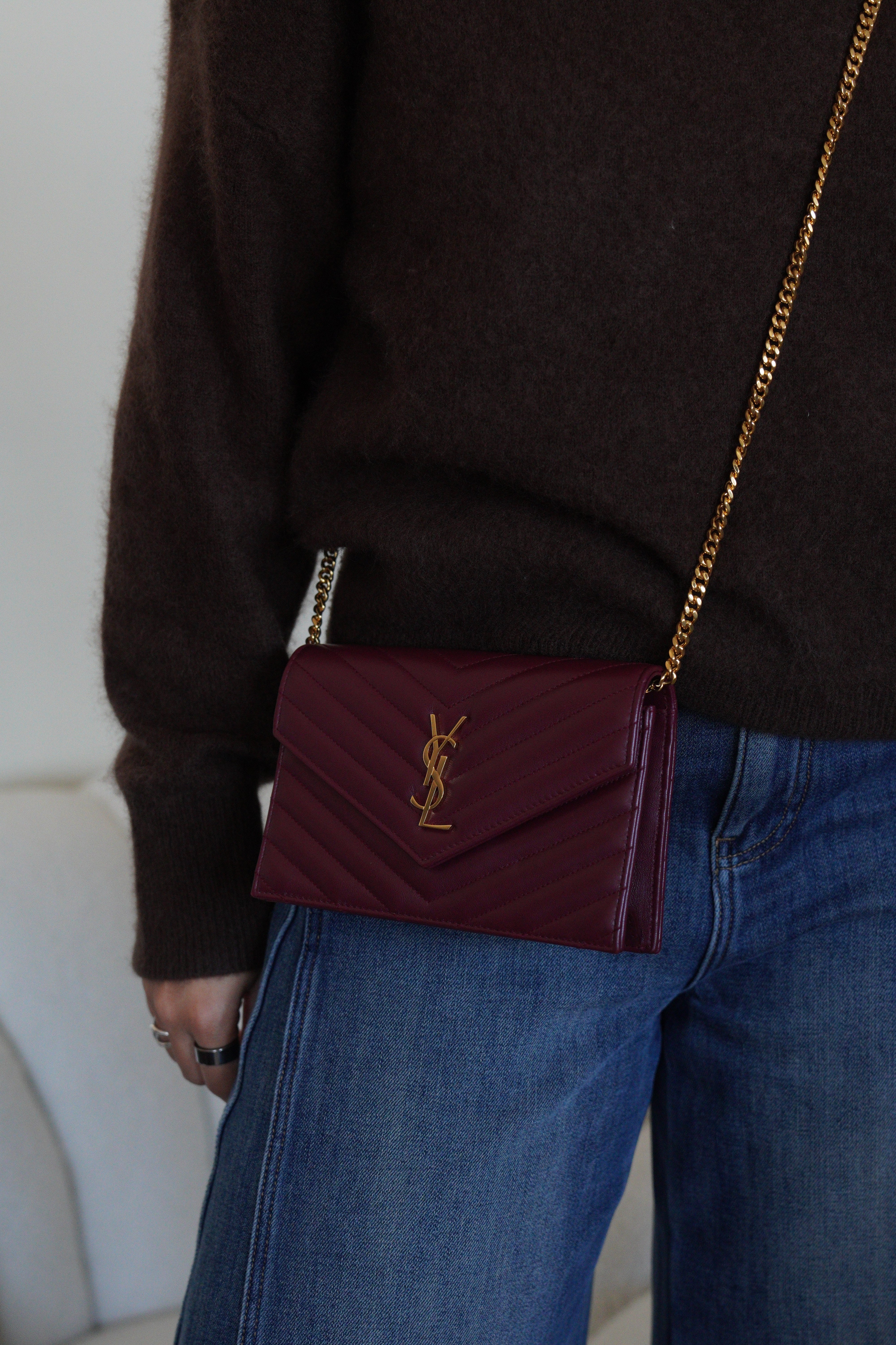 Sac bandoulière Saint Laurent Cassandre en cuir bordeaux