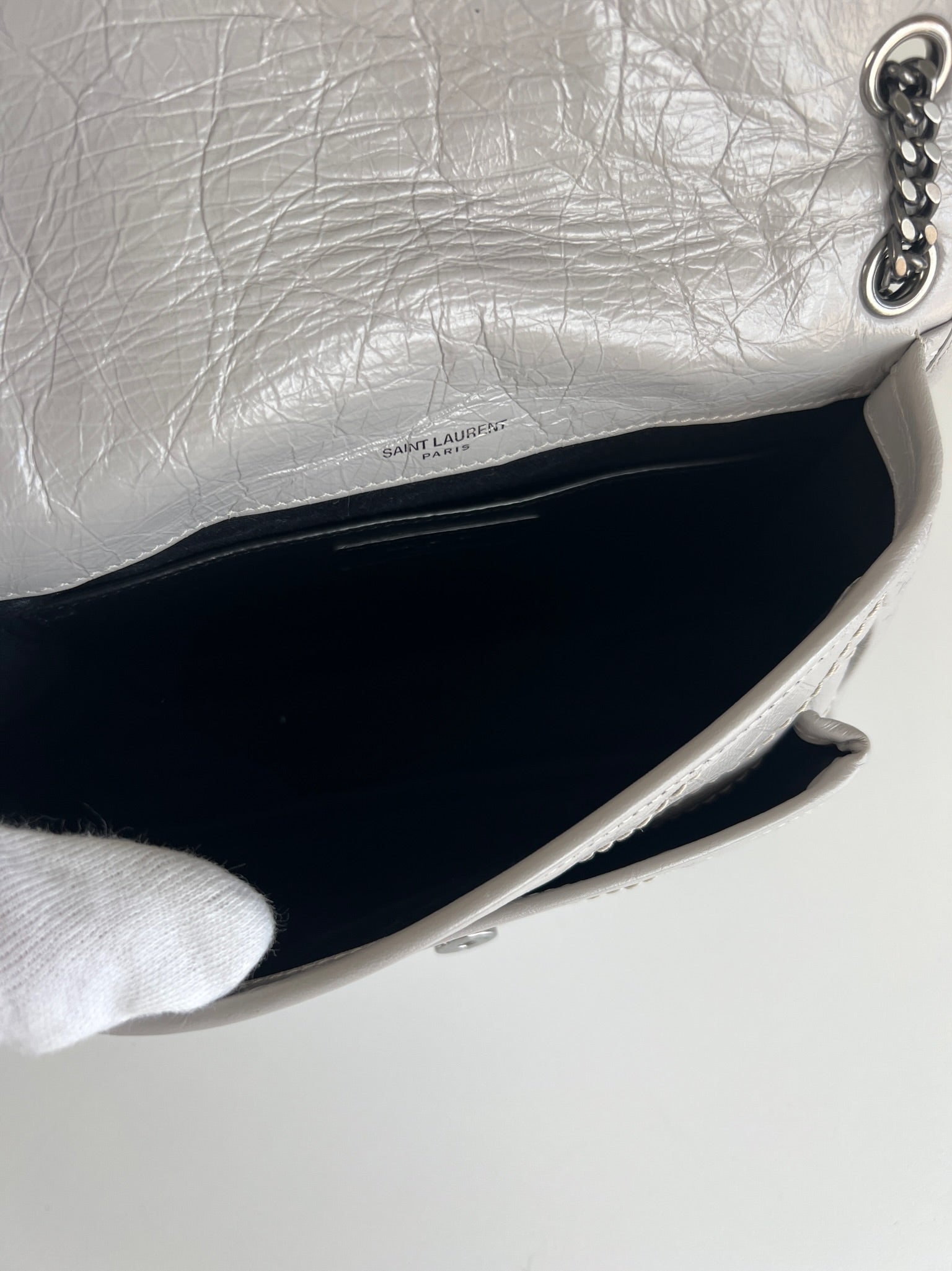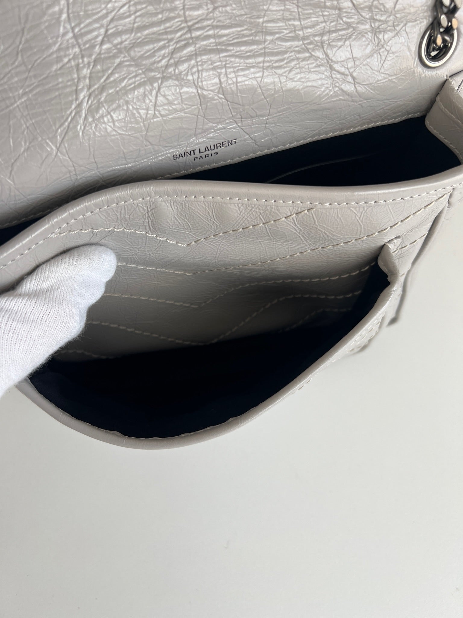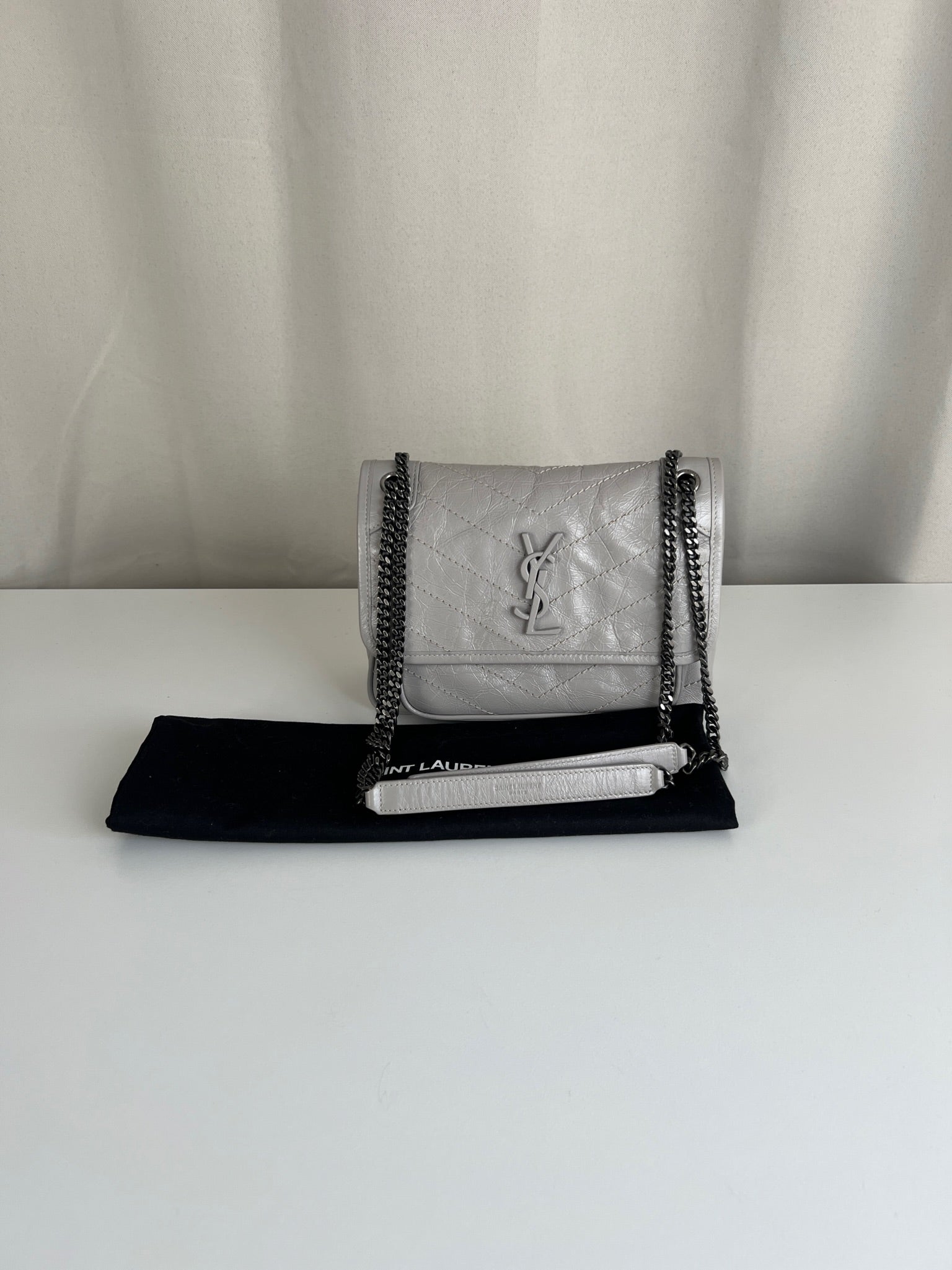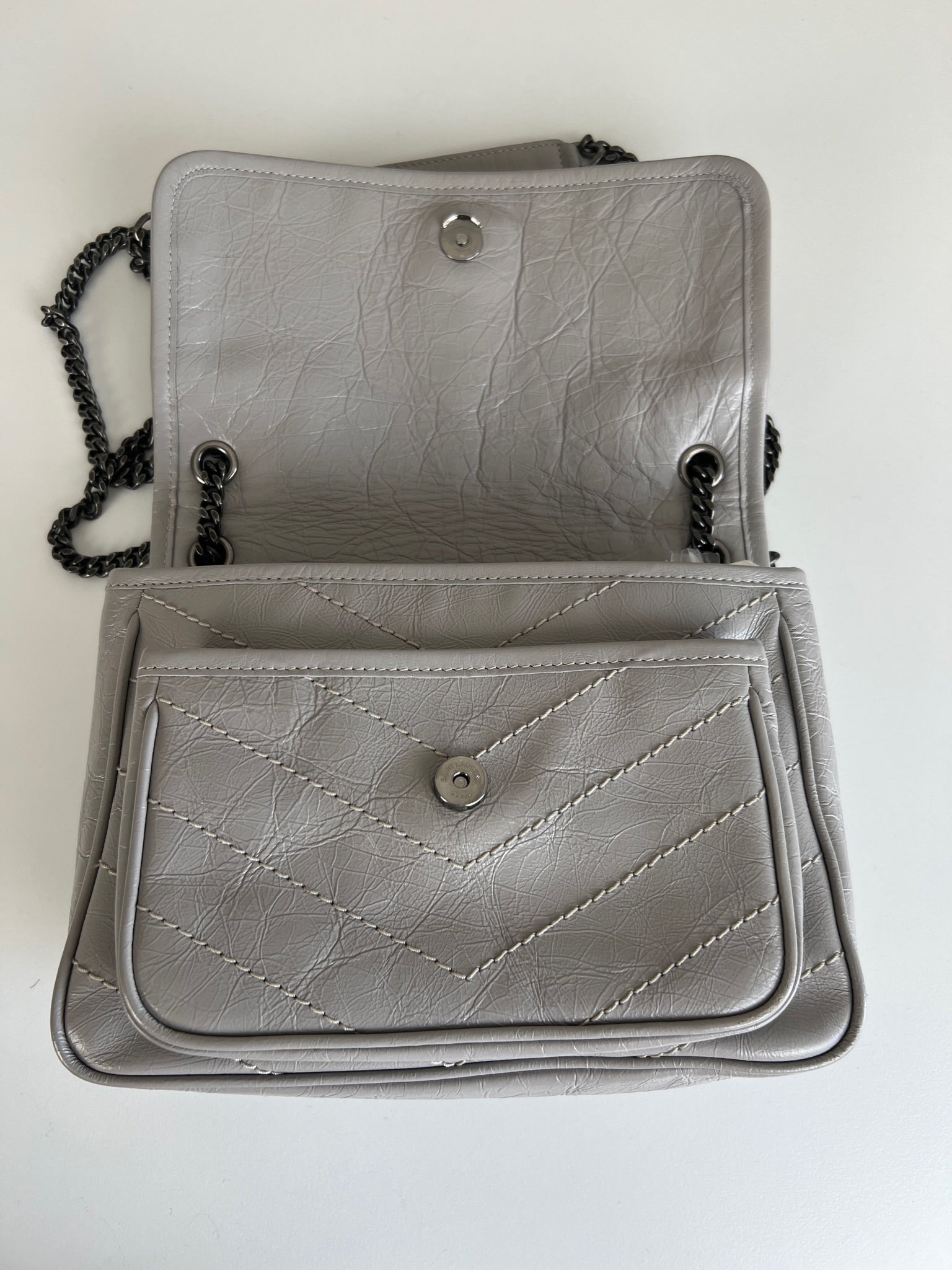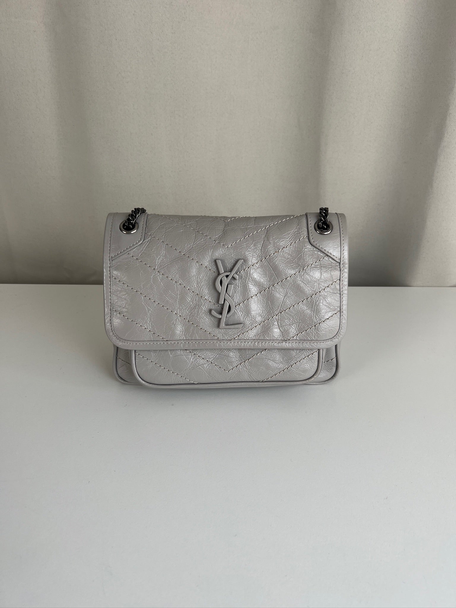 Sac Saint Laurent Niki baby en cuir gris