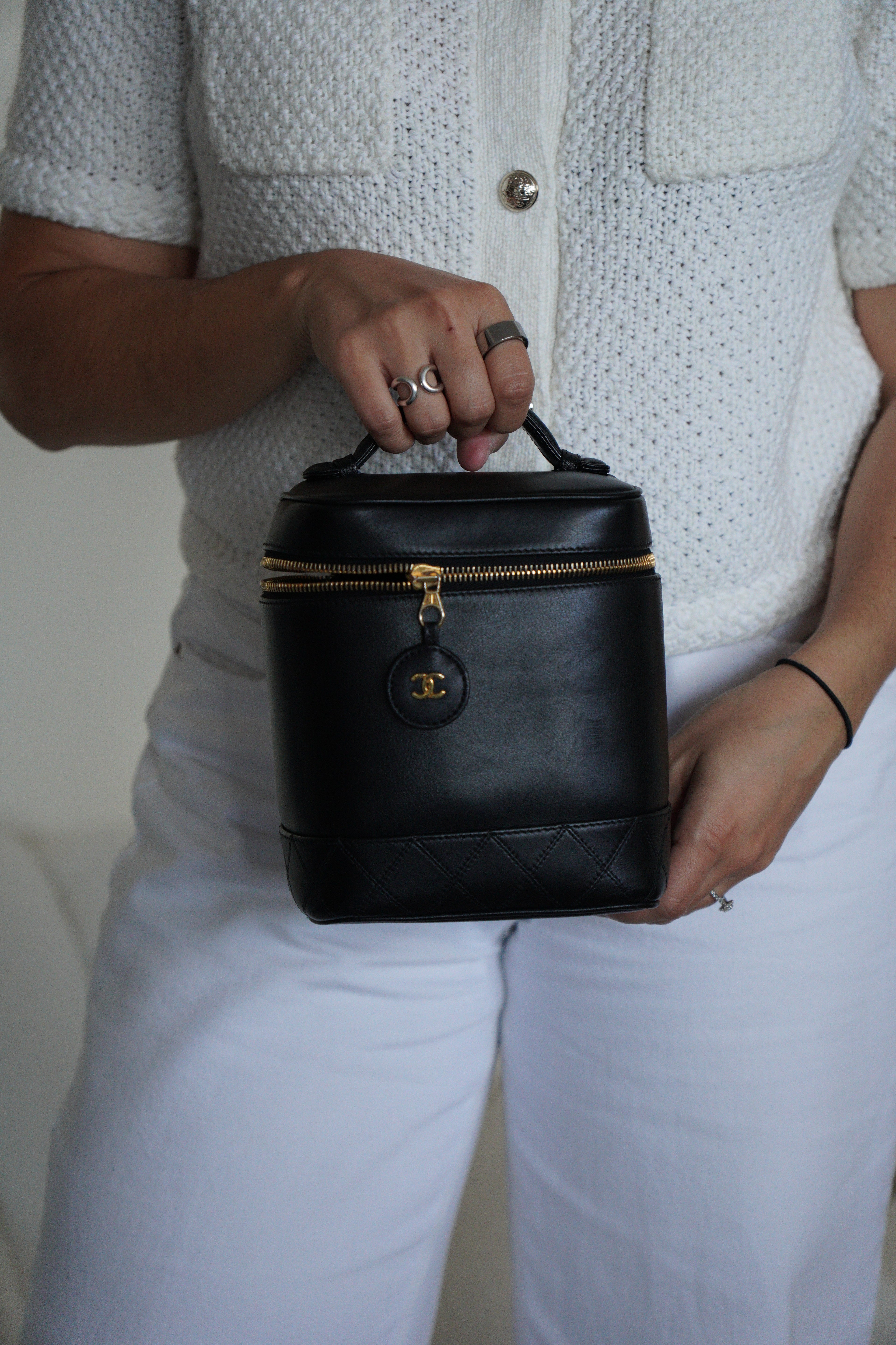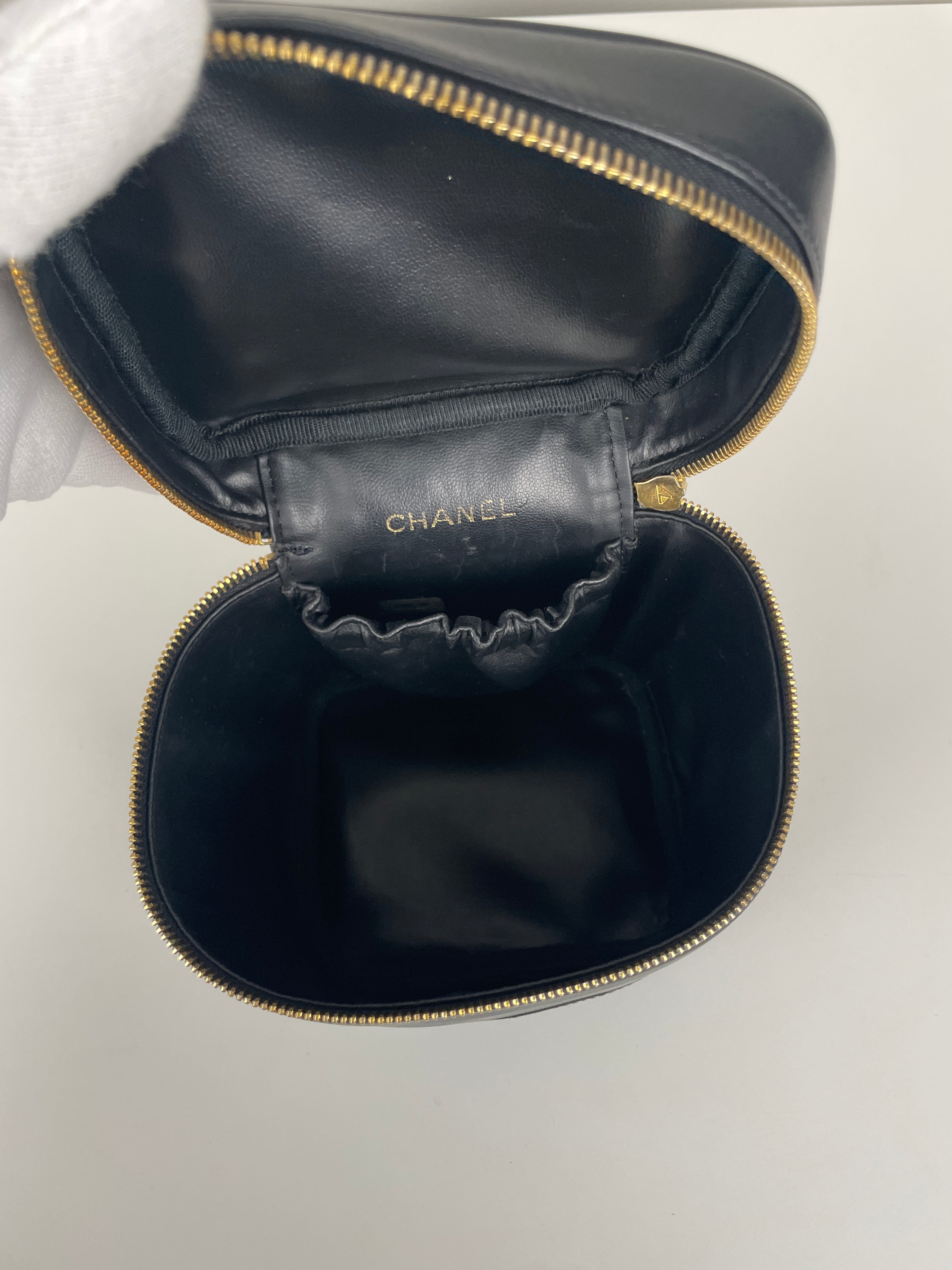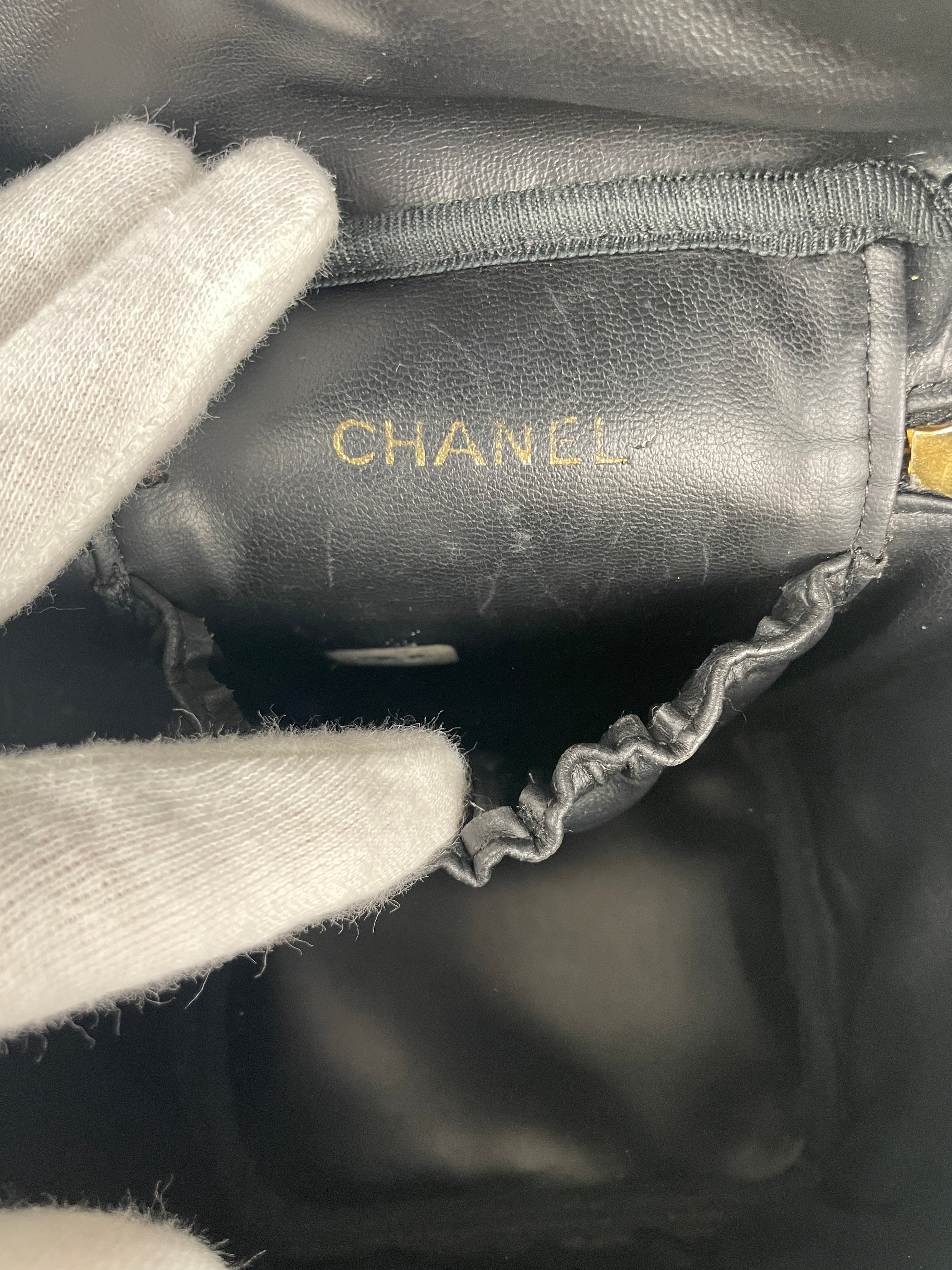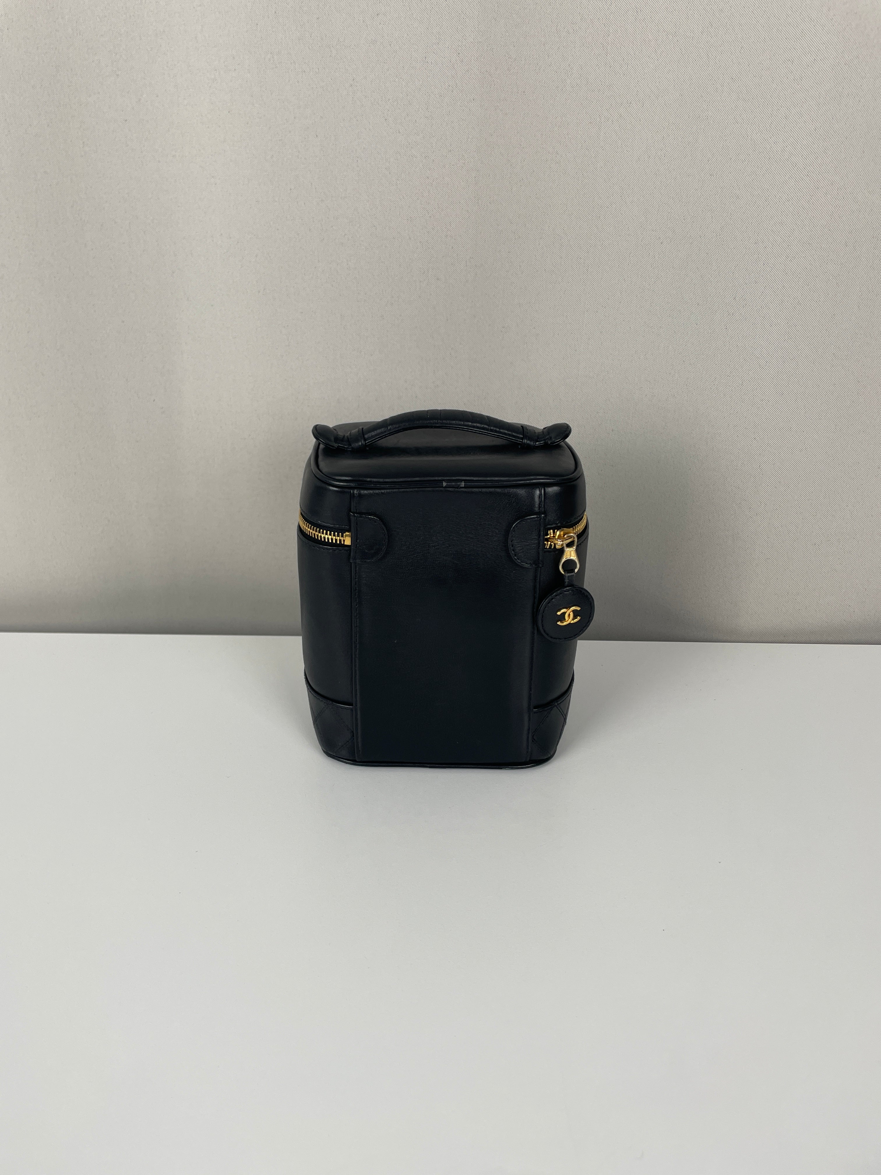 Vanity Chanel cuir noir bijouterie dorée