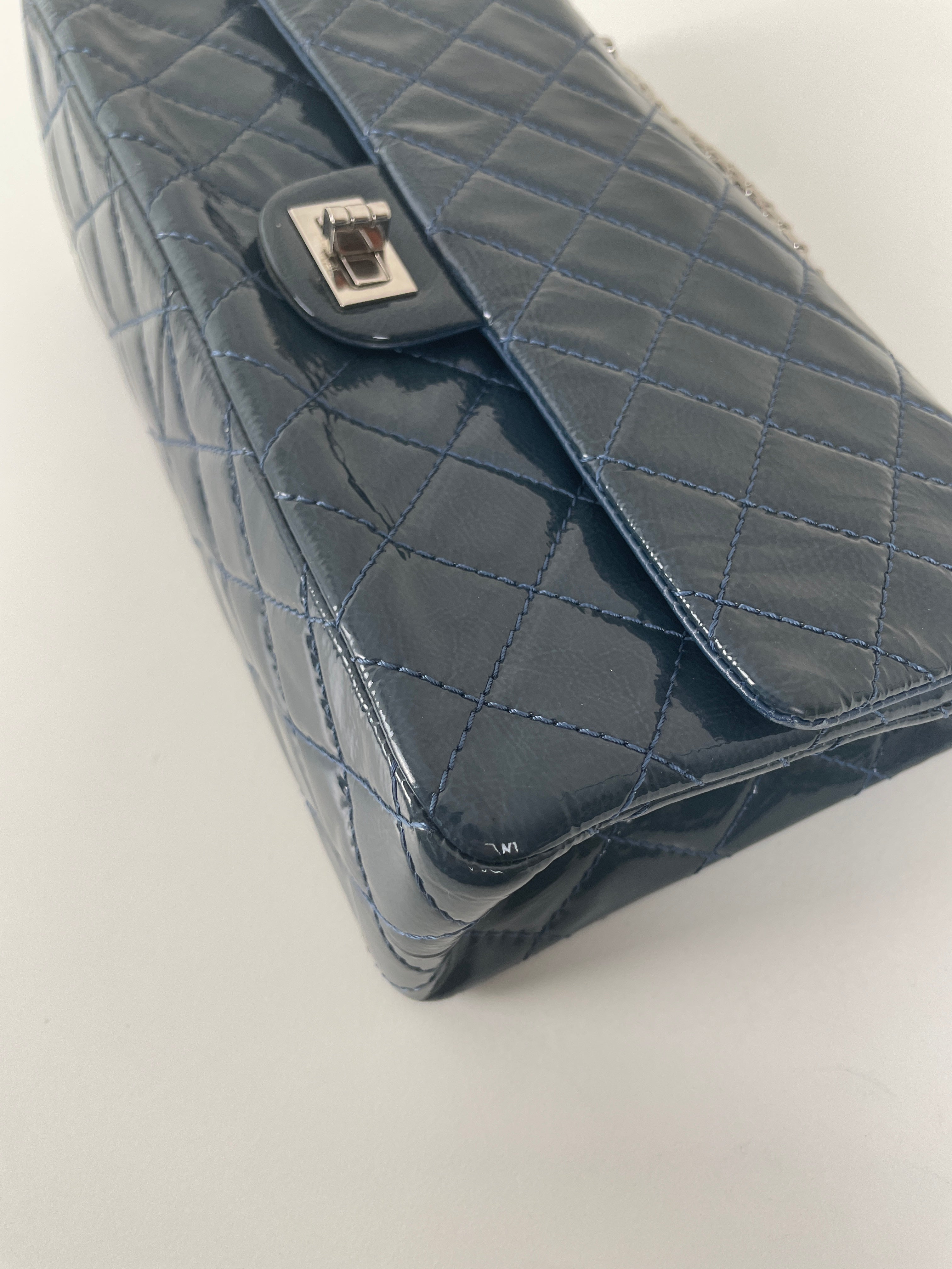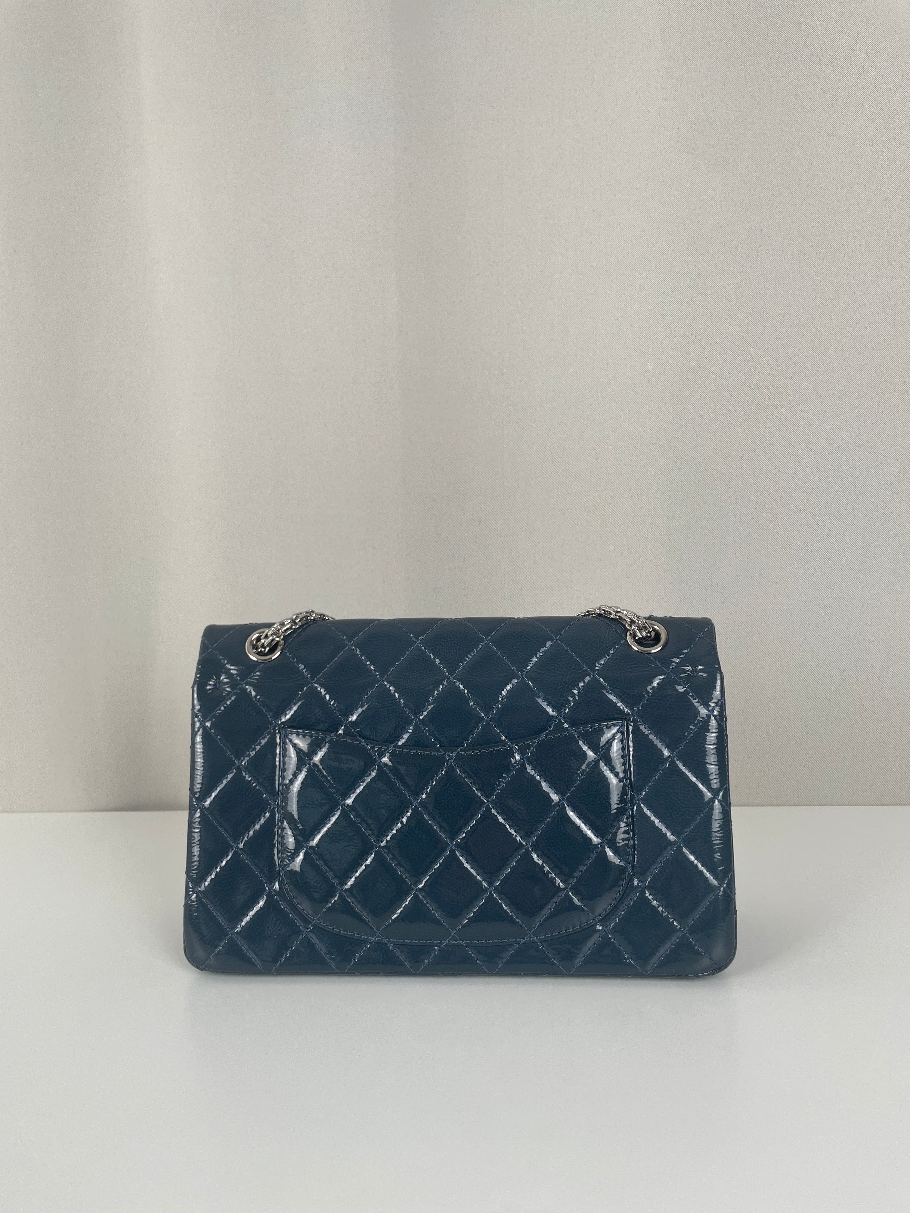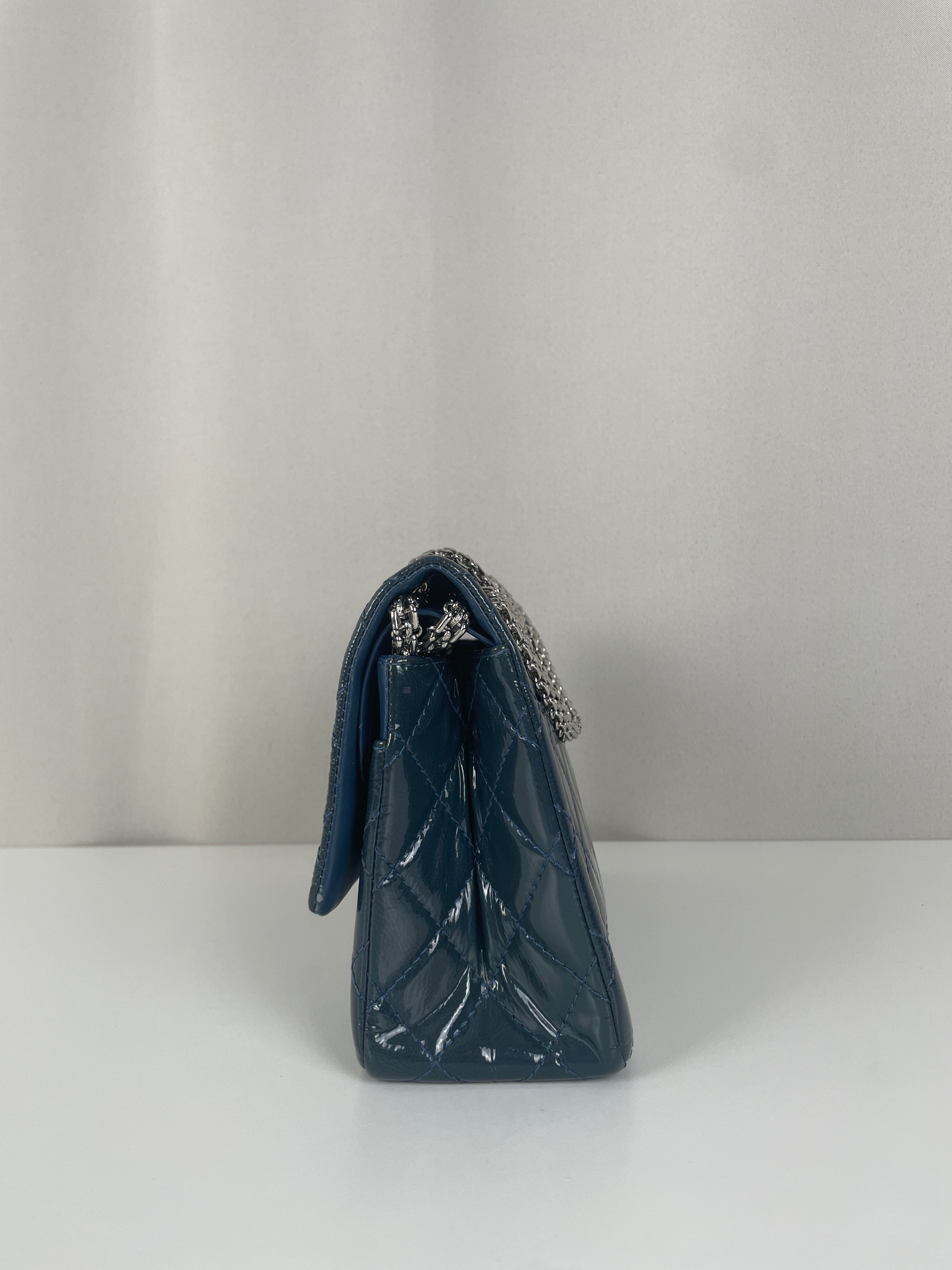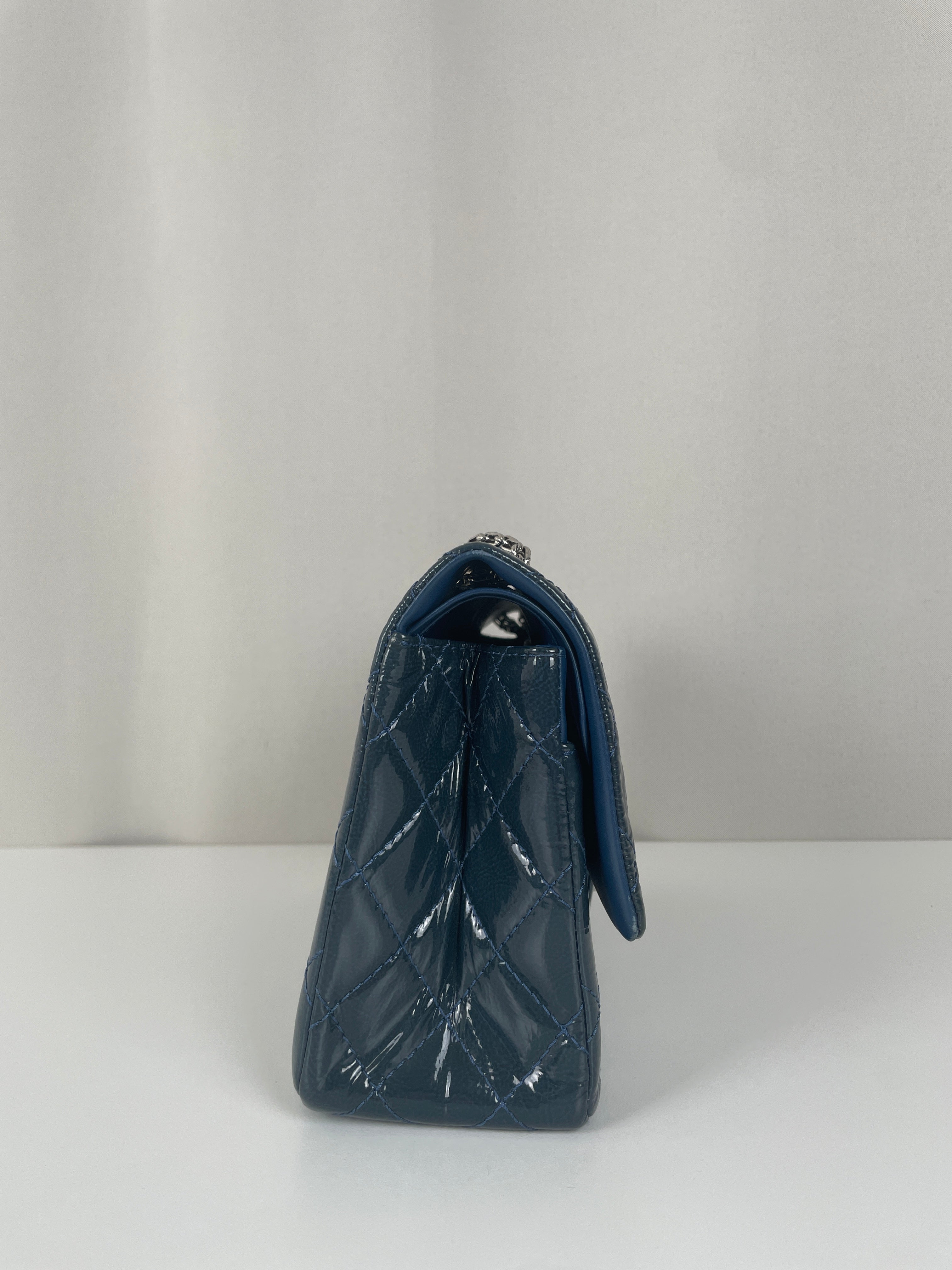Sac Chanel Jumbo 2.55 en cuir verni bleu
