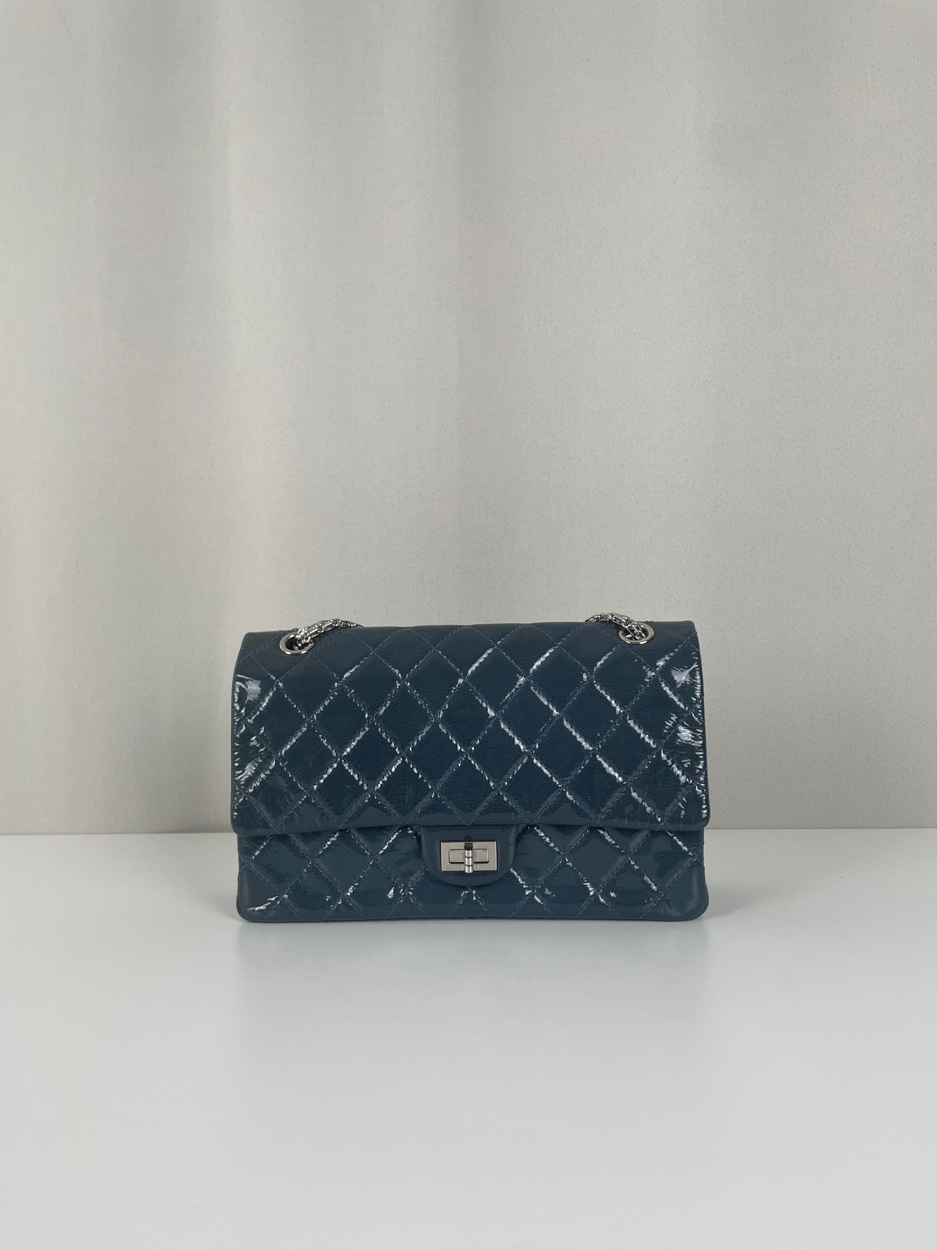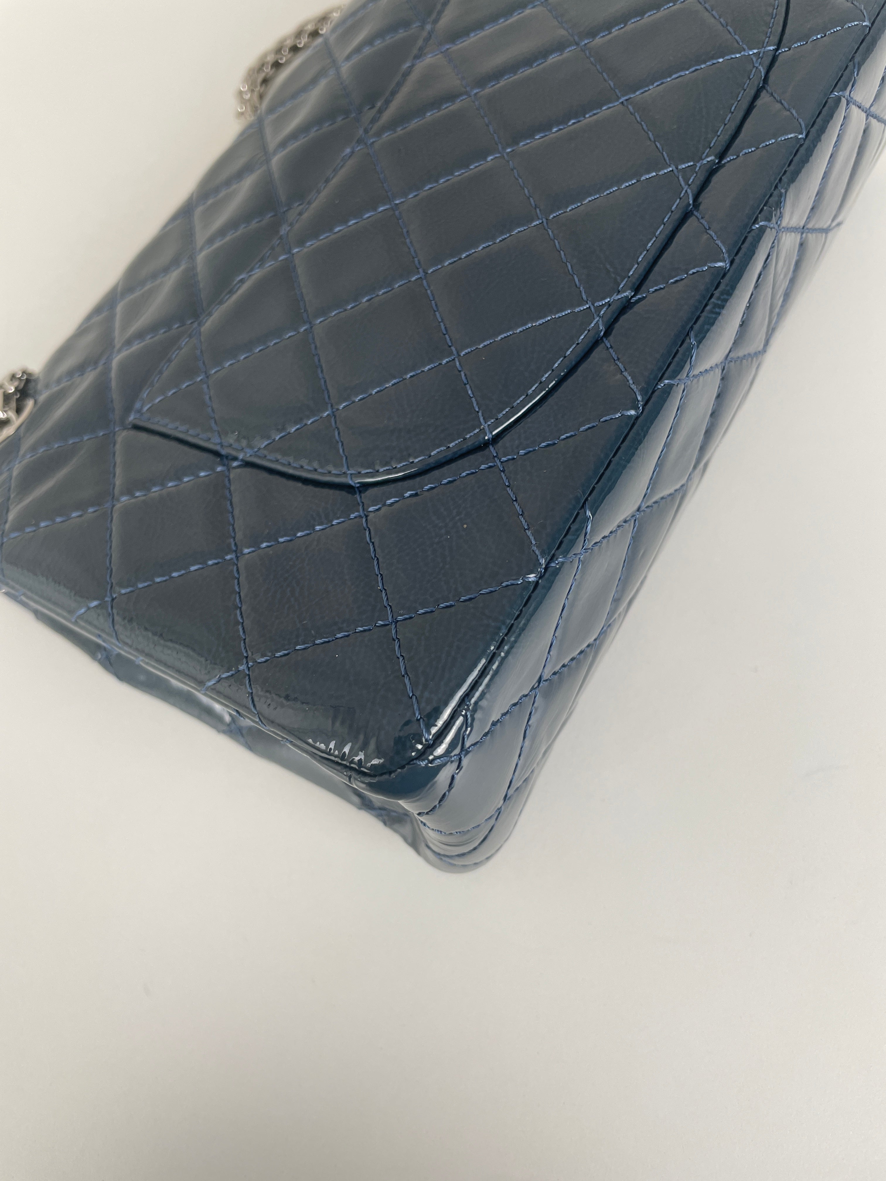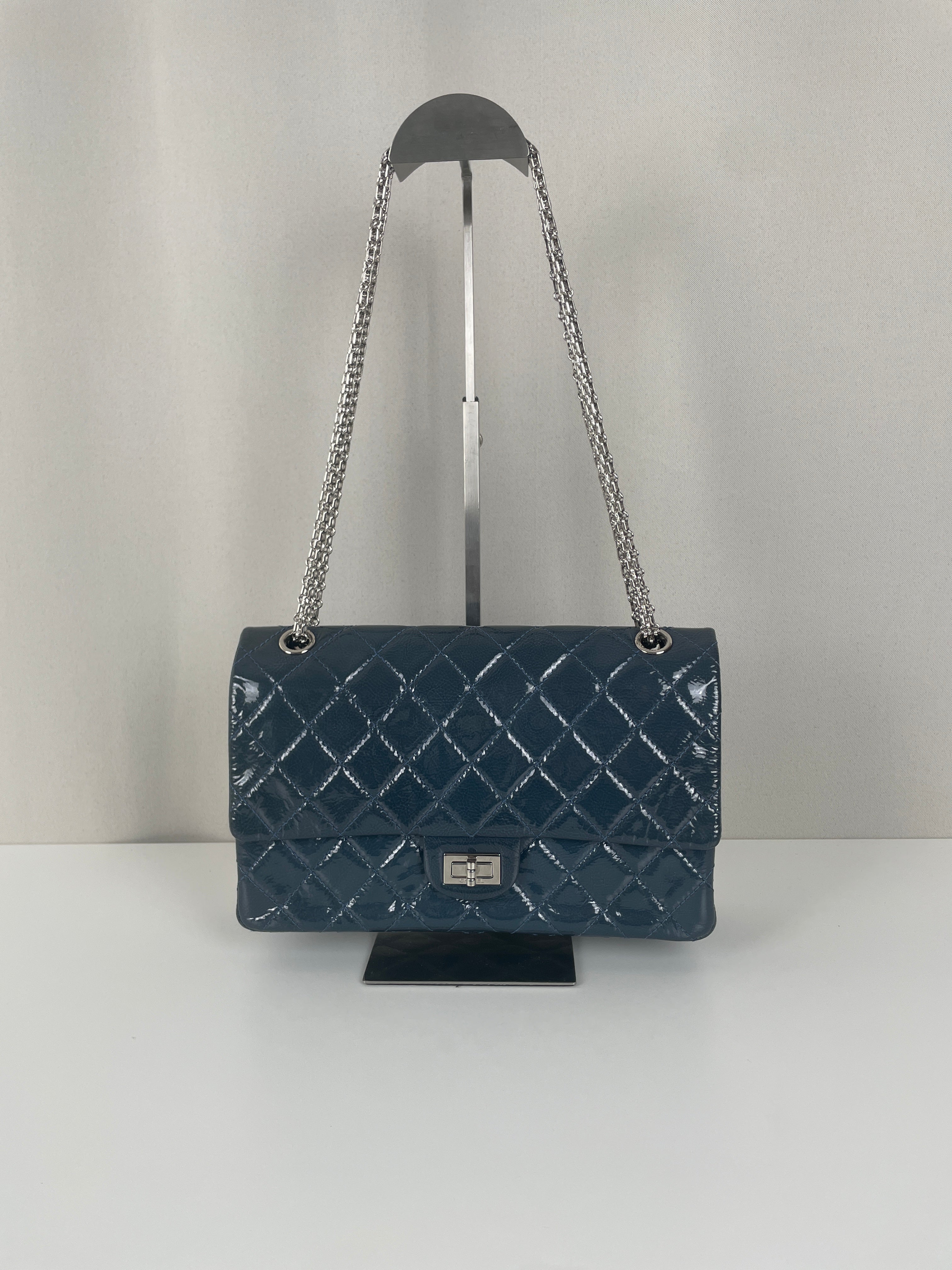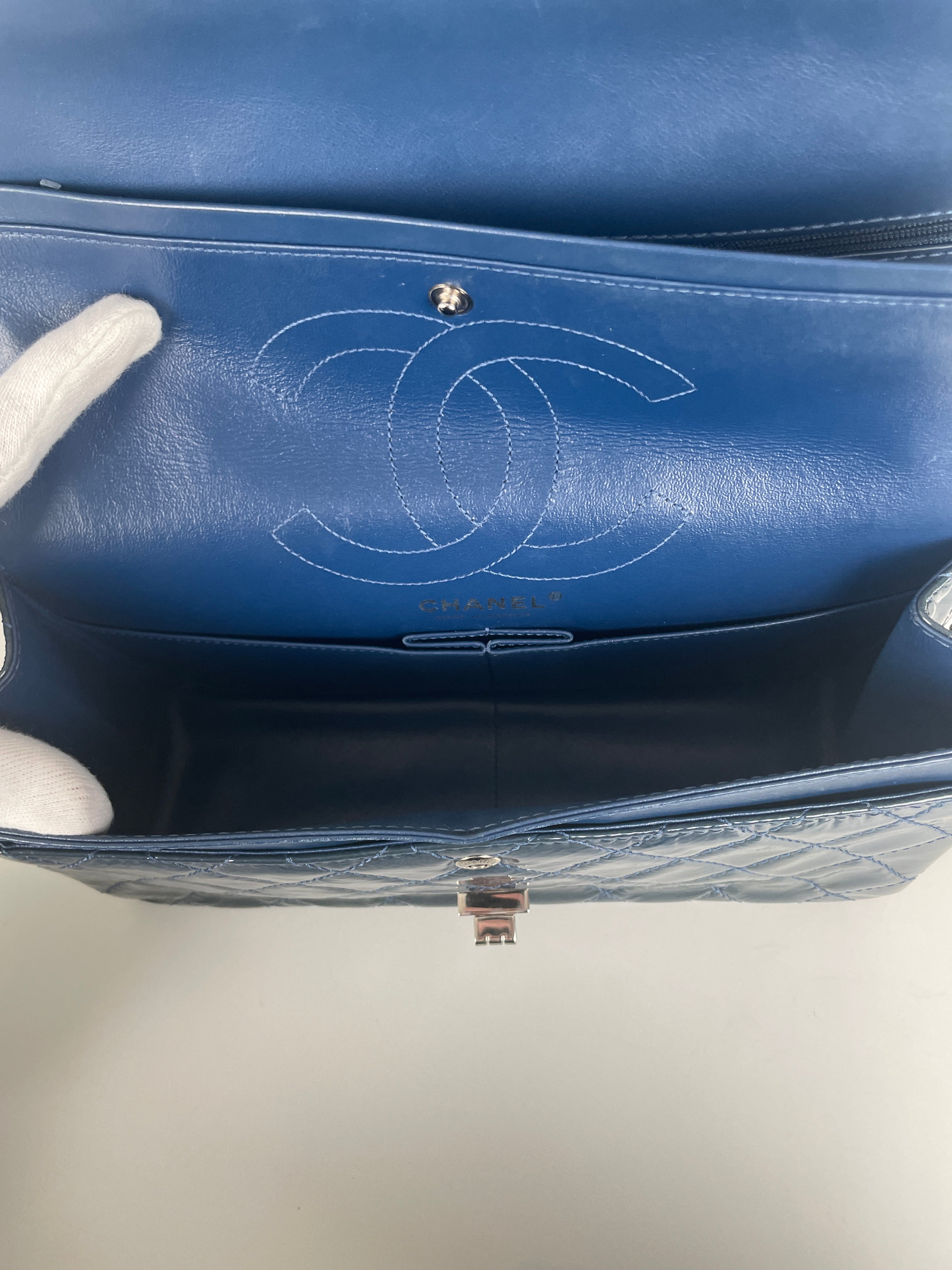 Sac Chanel Jumbo 2.55 en cuir verni bleu
