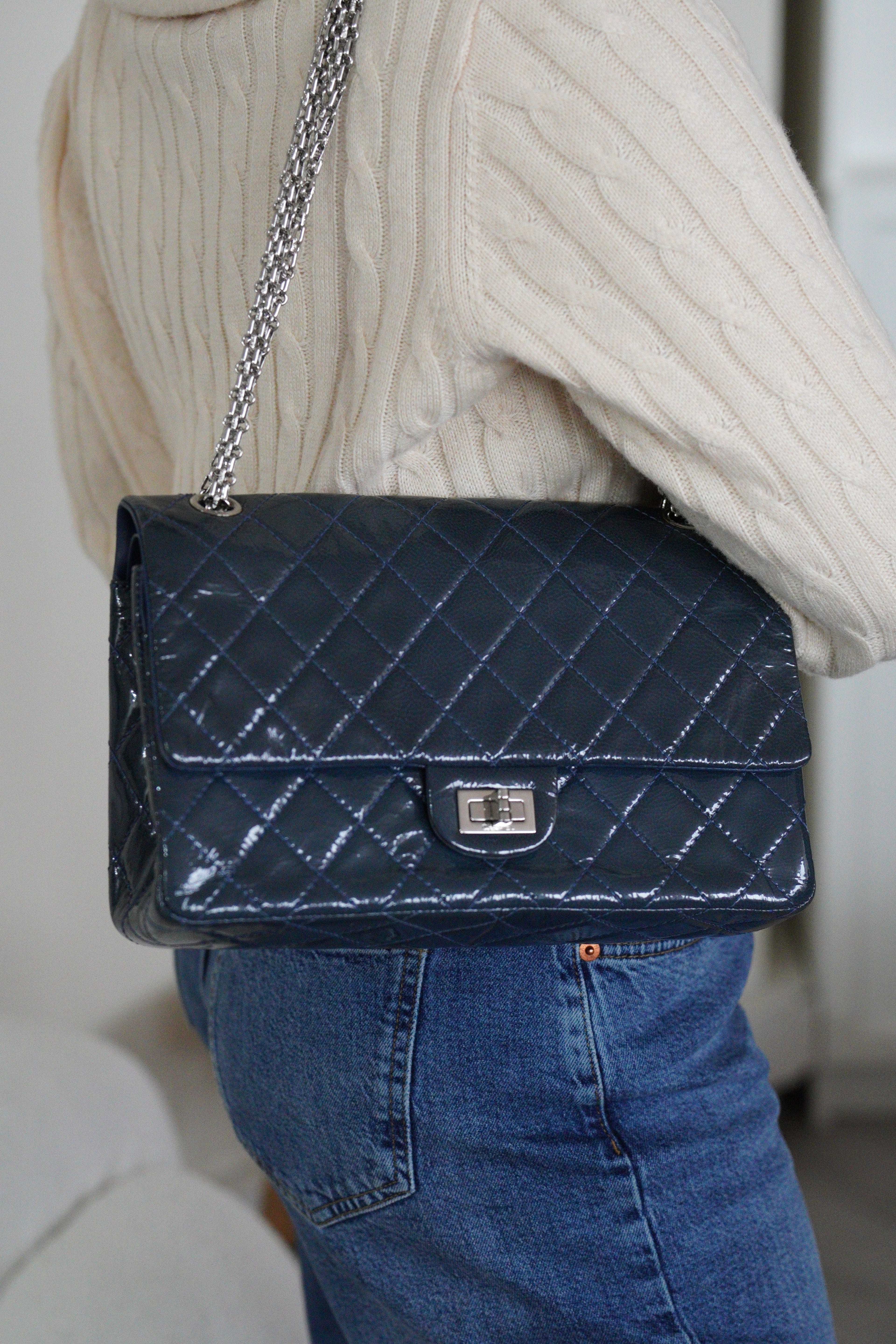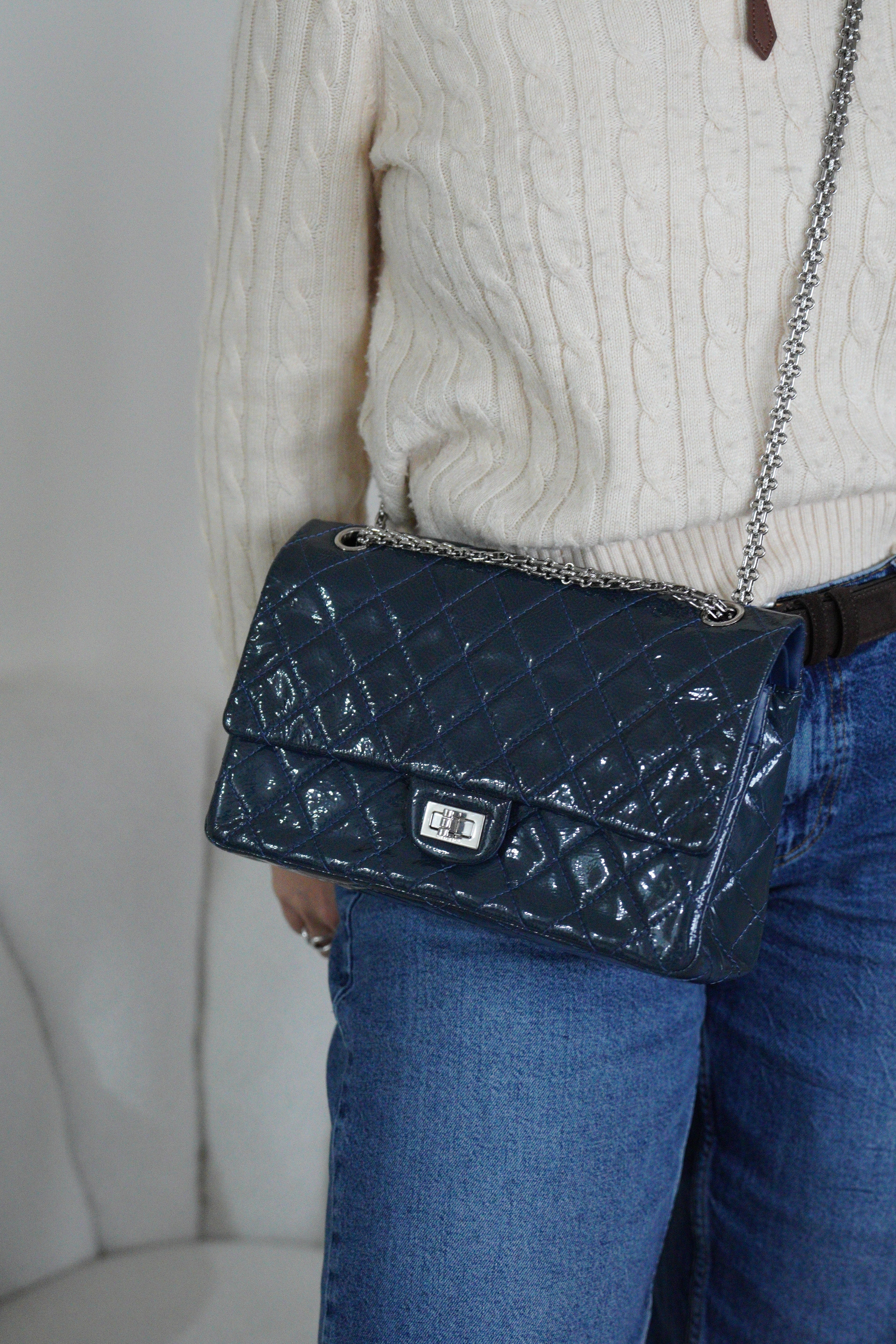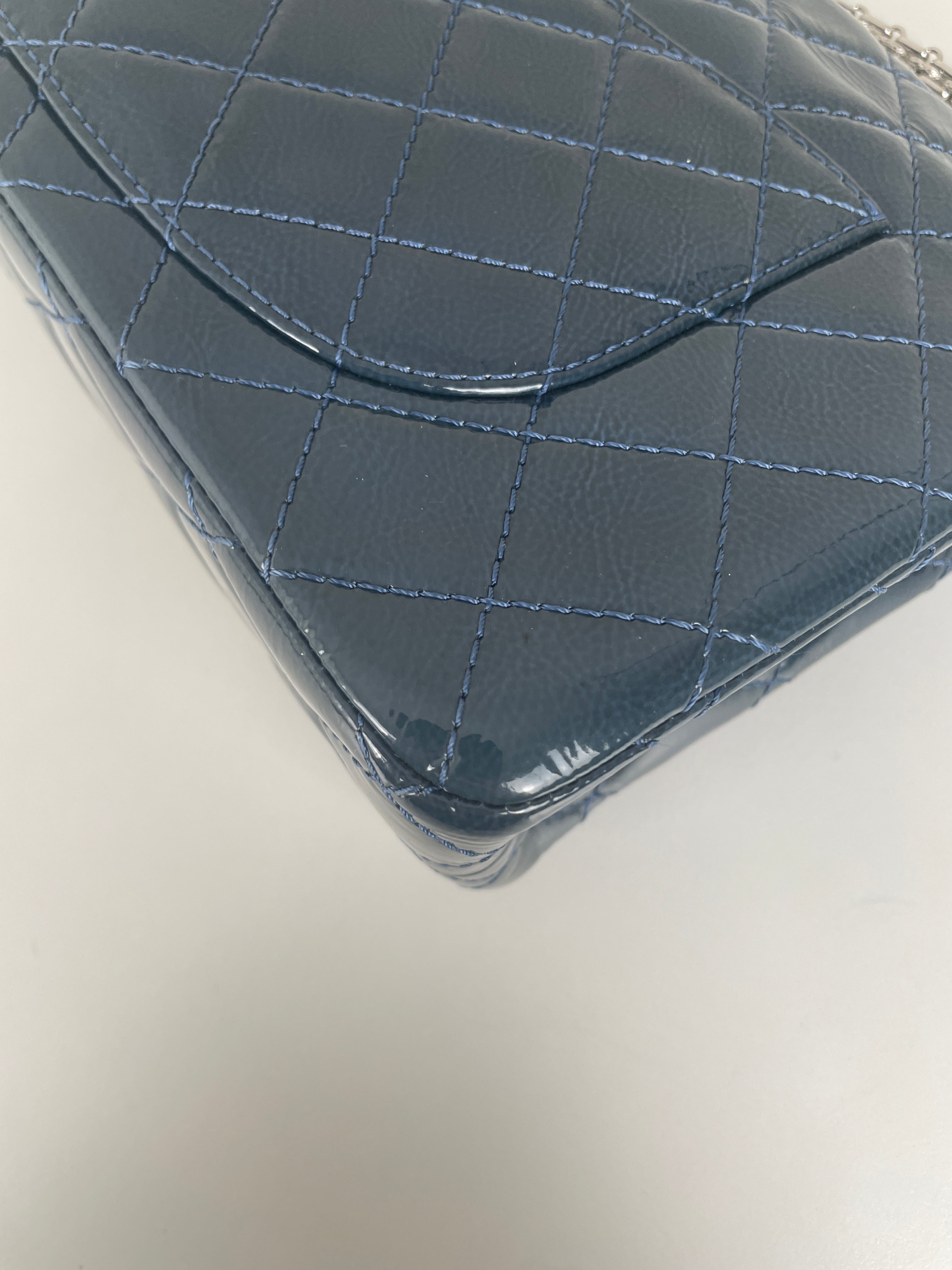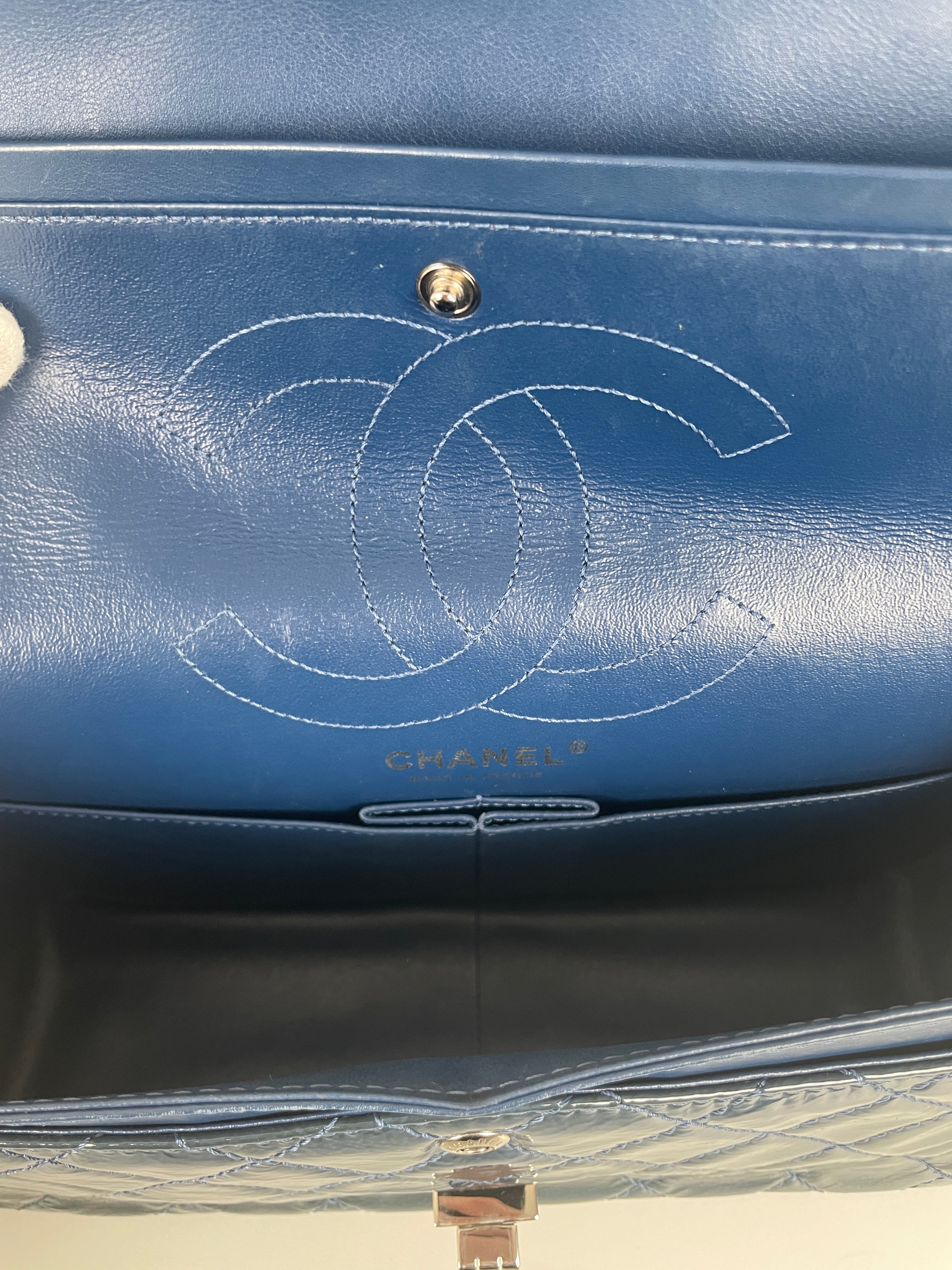 Sac Chanel Jumbo 2.55 en cuir verni bleu