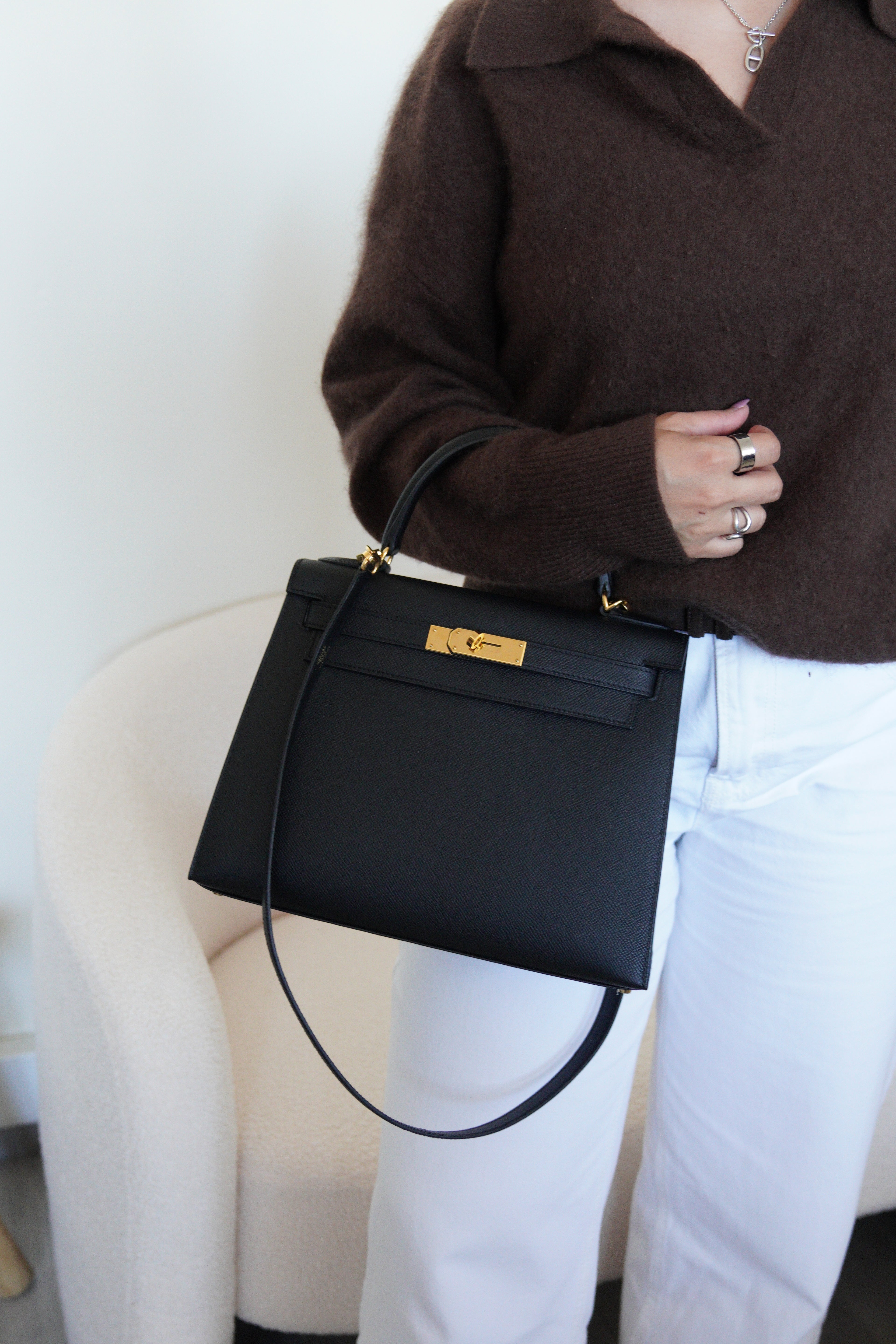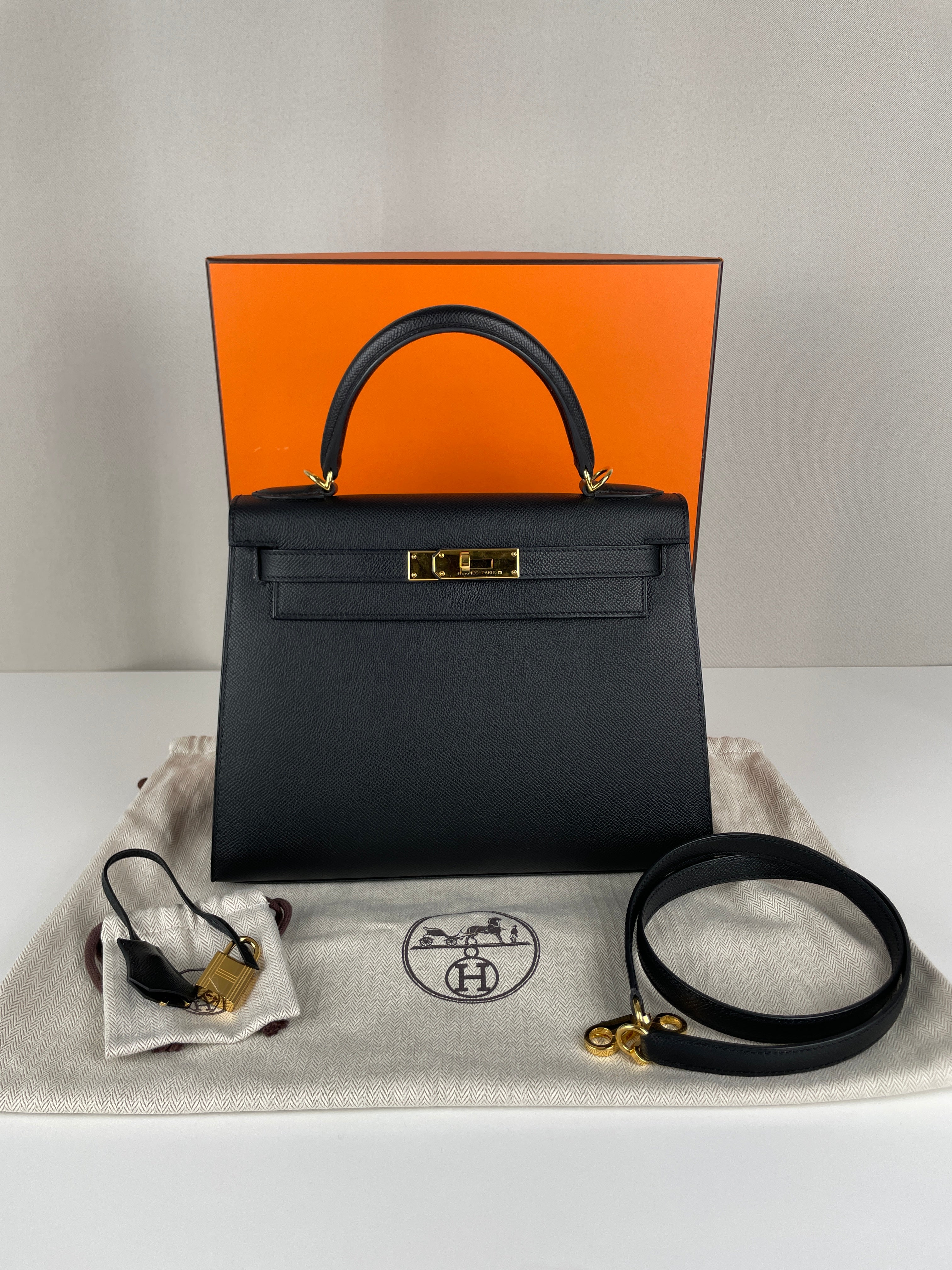 Hermès Kelly 28 noir cuir epsom sellier bijouterie dorée