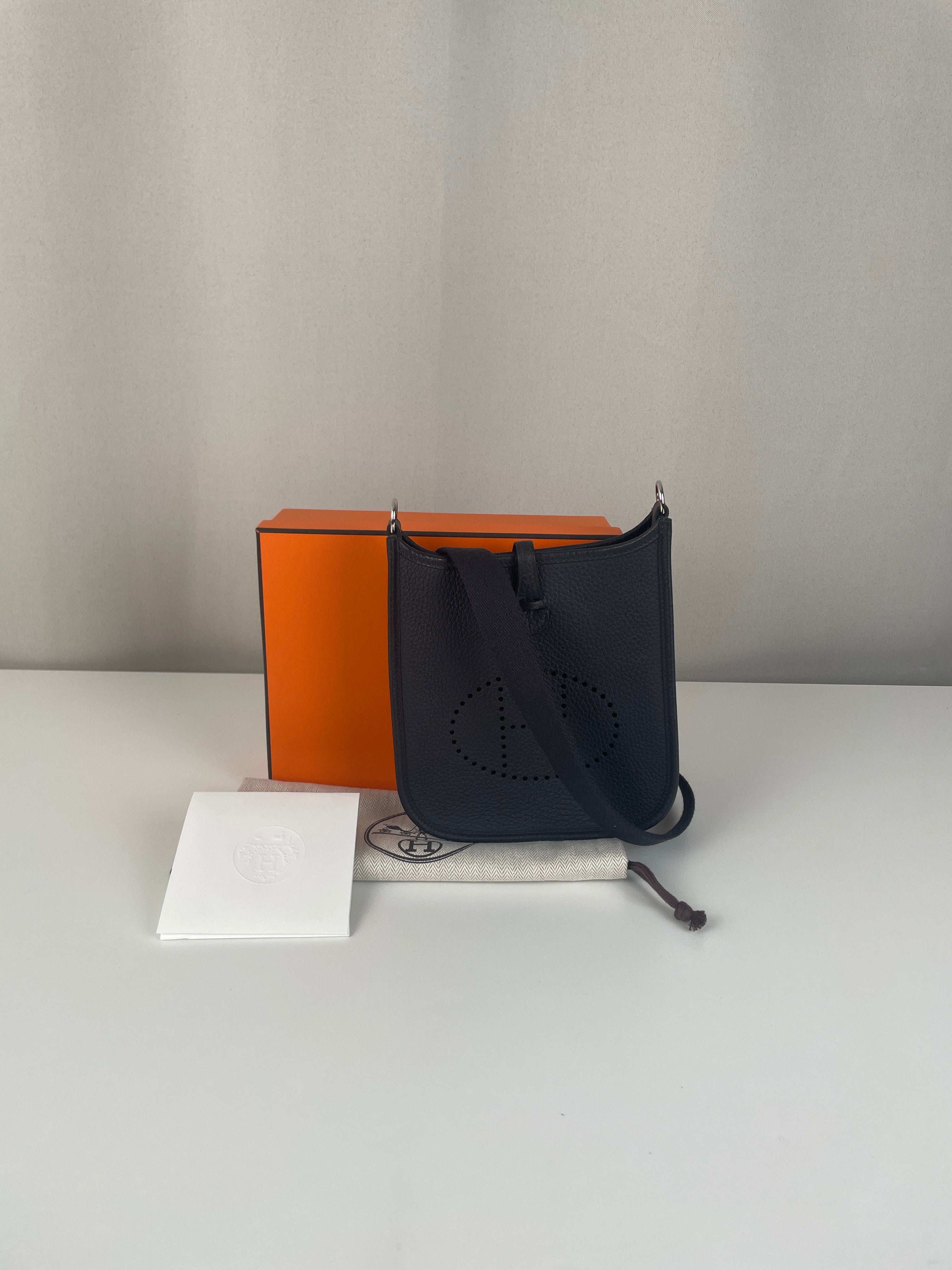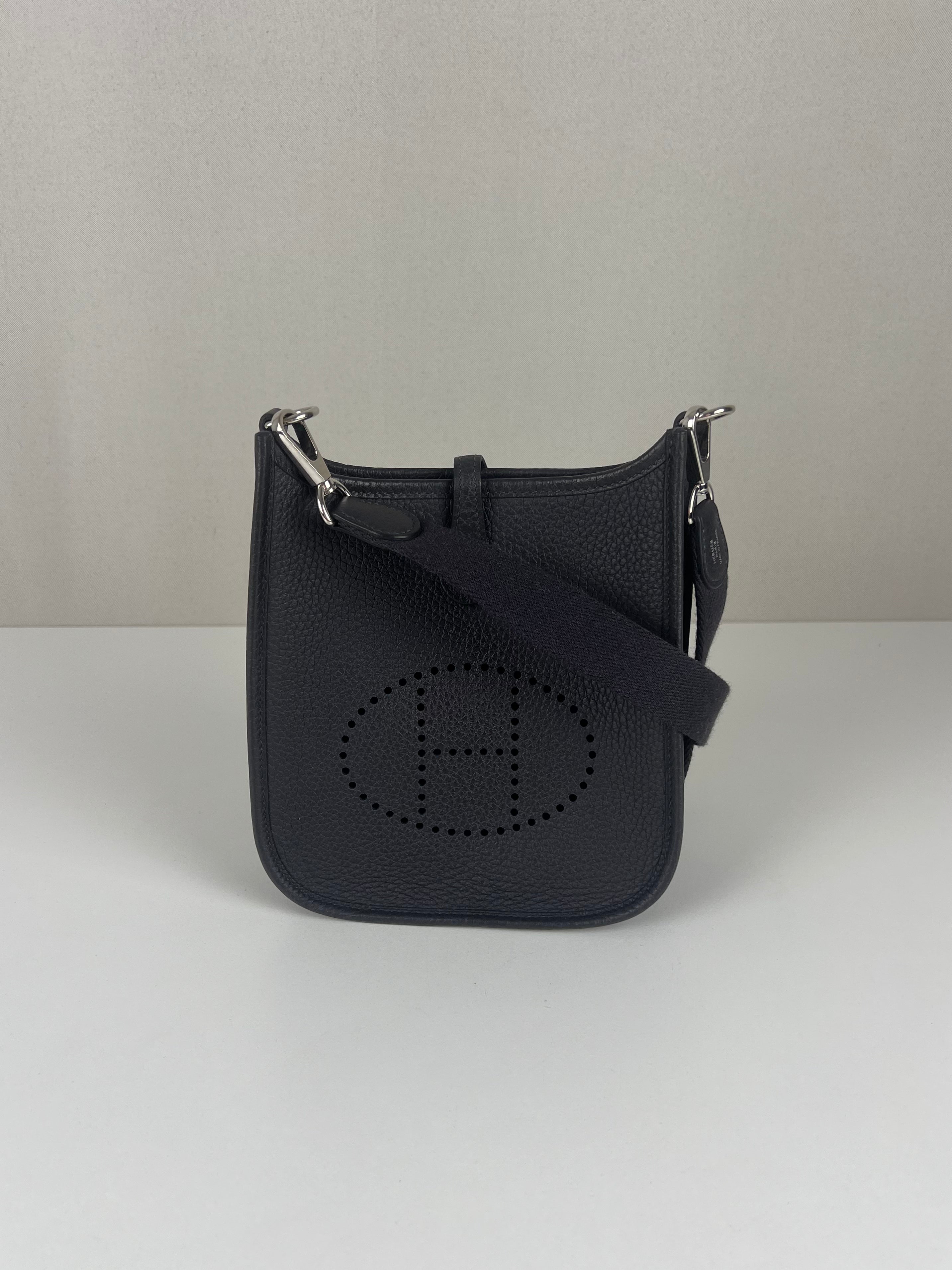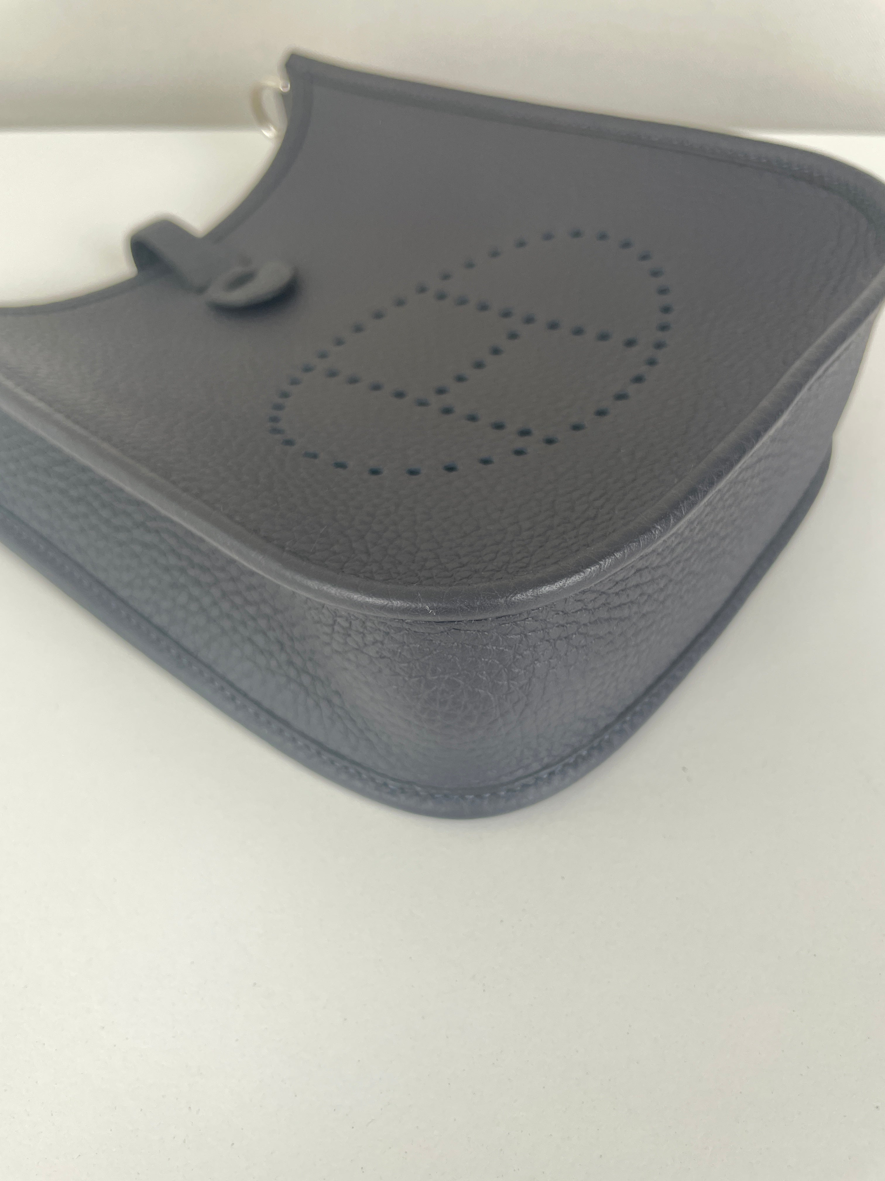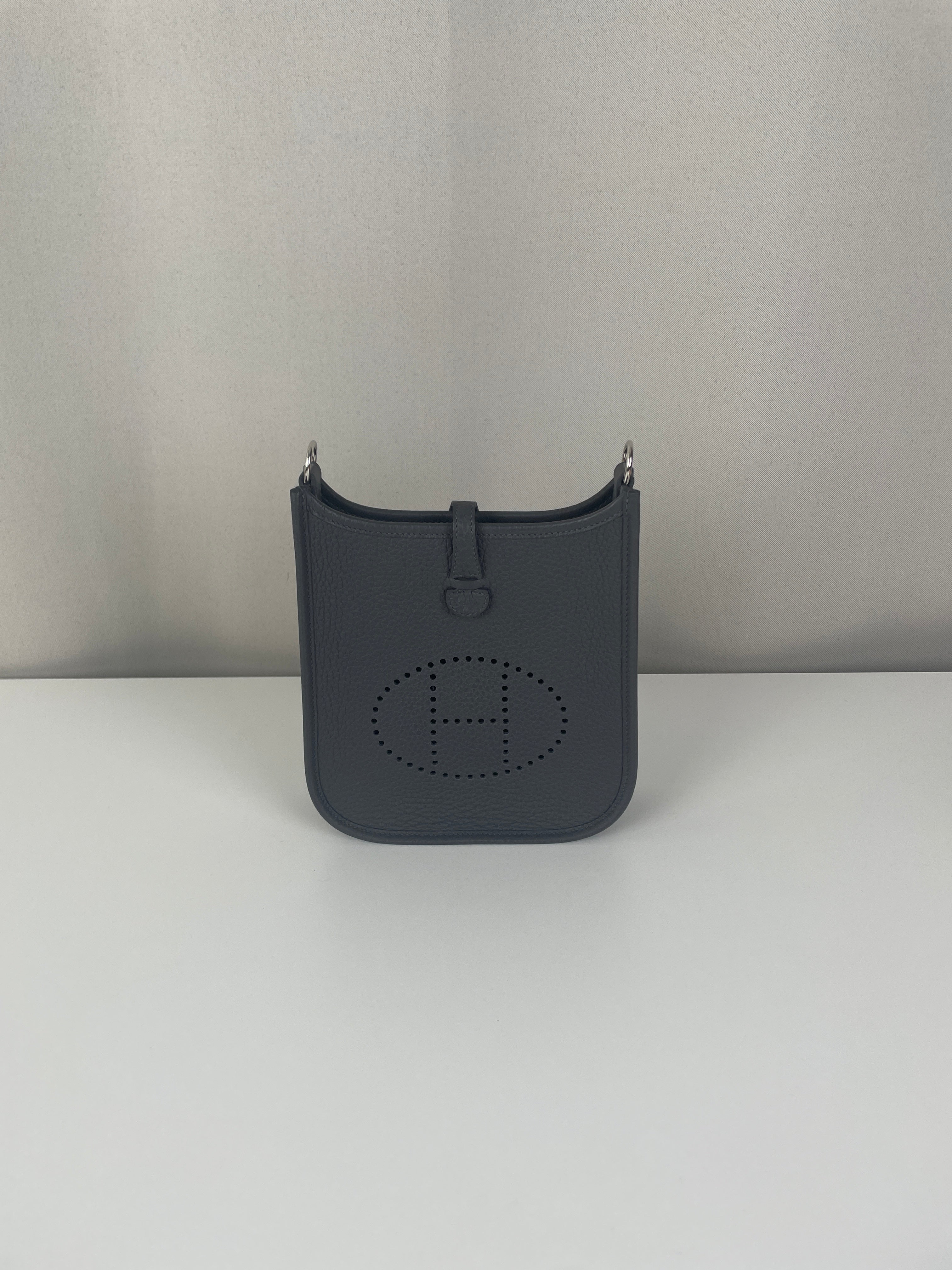 Sac Hermès Mini Evelyn 16 tpm en cuir gris misty, comme neuf