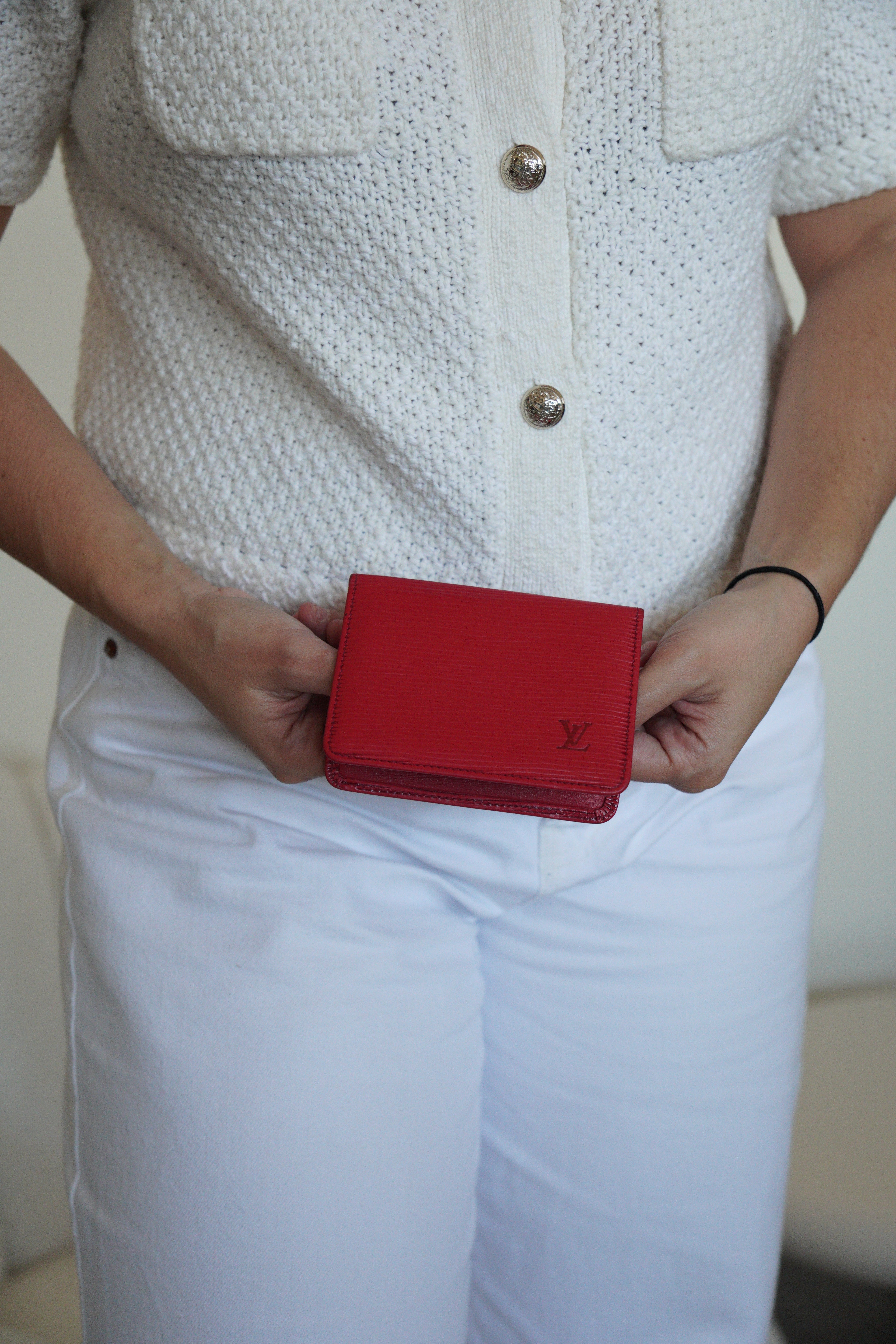 Porte-cartes Louis Vuitton en cuir épi rouge