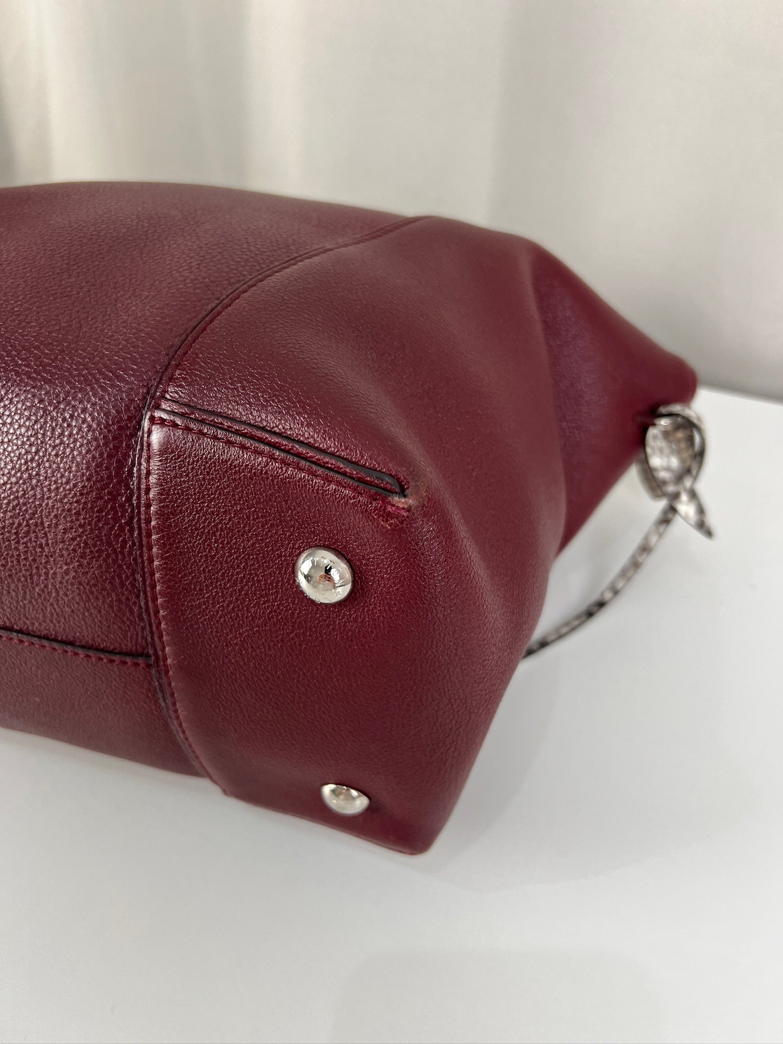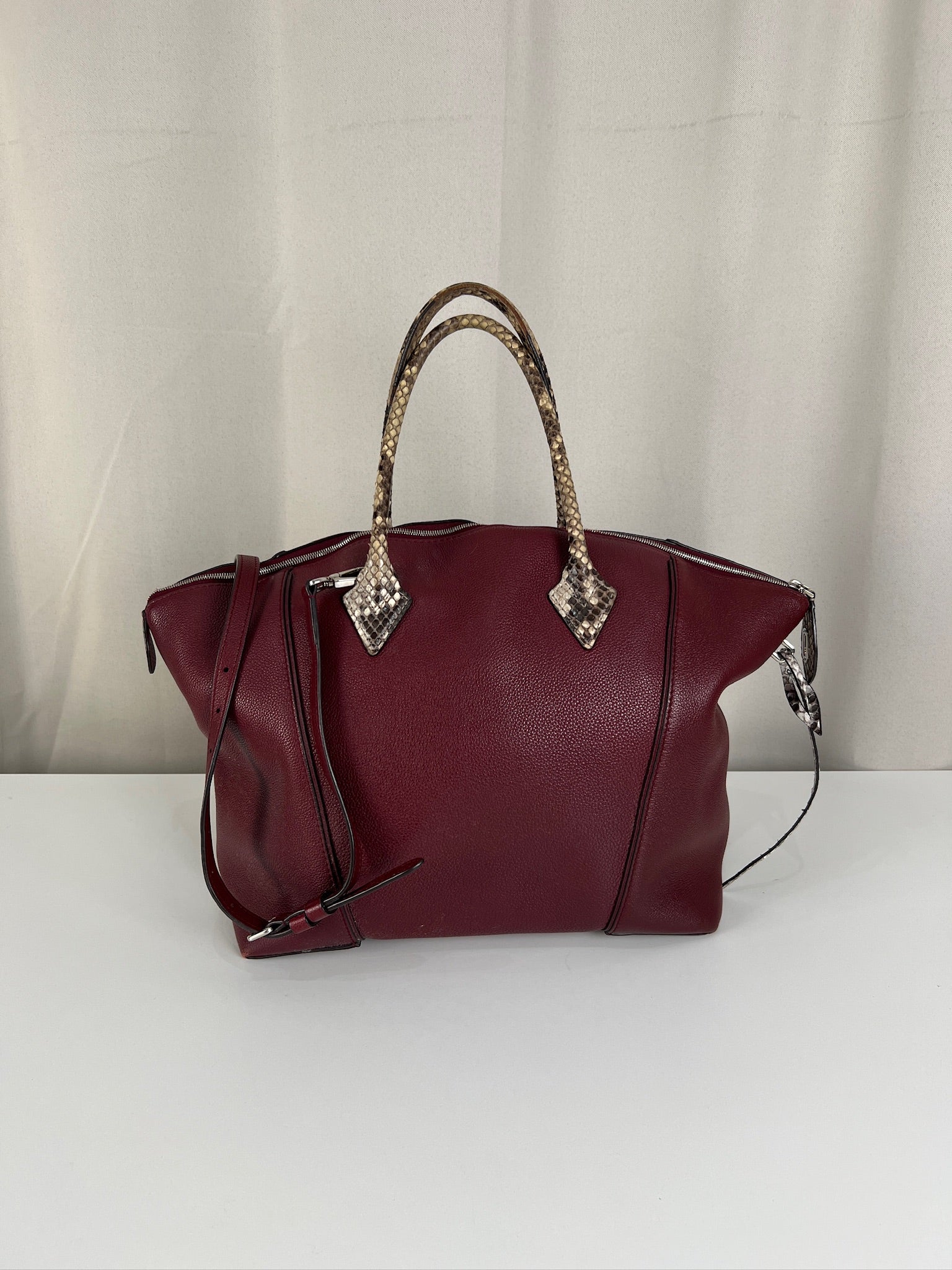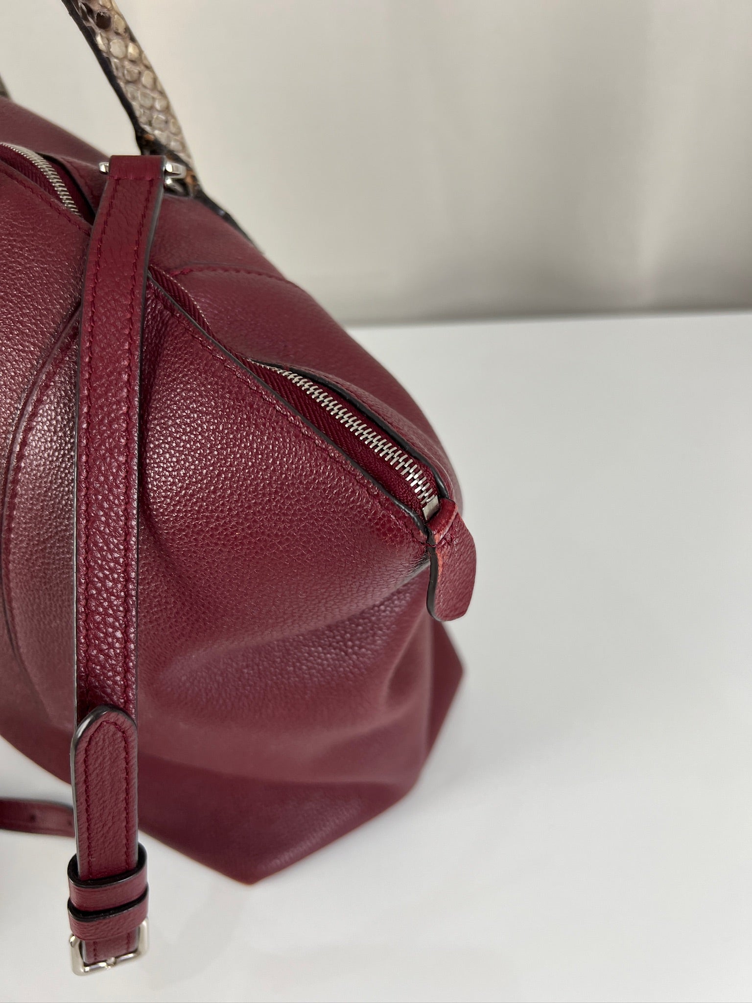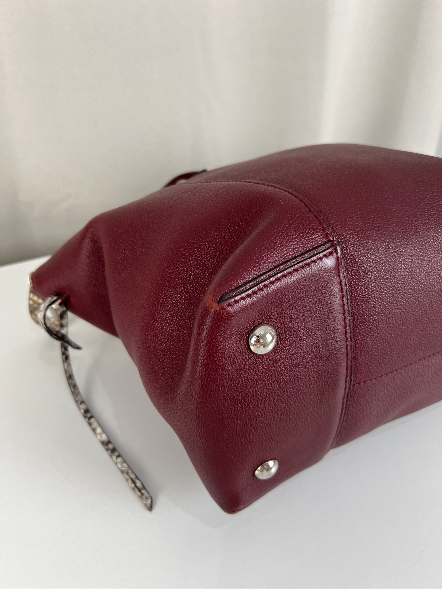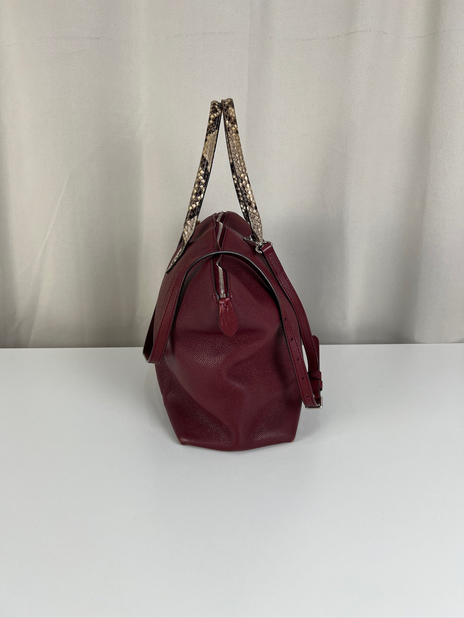 Ce Louis Vuitton Lockit Bordeaux est en bon état. Le cuir est en bon état, quelques traces d'usure sous le sac. Les anses sont en Python Reticulatus et sont en bon état. La base des anses est un peu abîmée à cause de la bandoulière. Les coins sont un peu usés. La bandoulière est en bon état et réglable. L'intérieur est en bon état, quelques petites traces d'usure. Pas de cadenas.