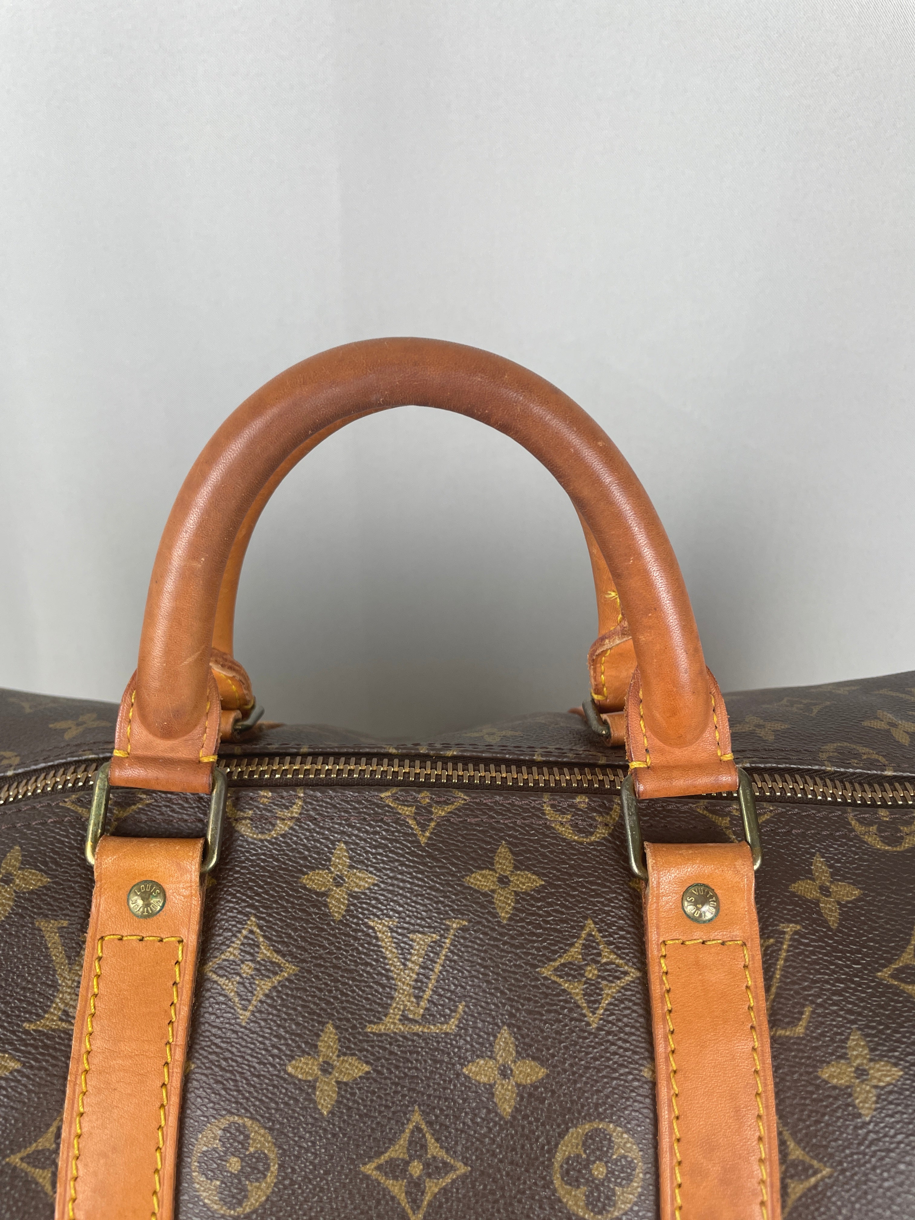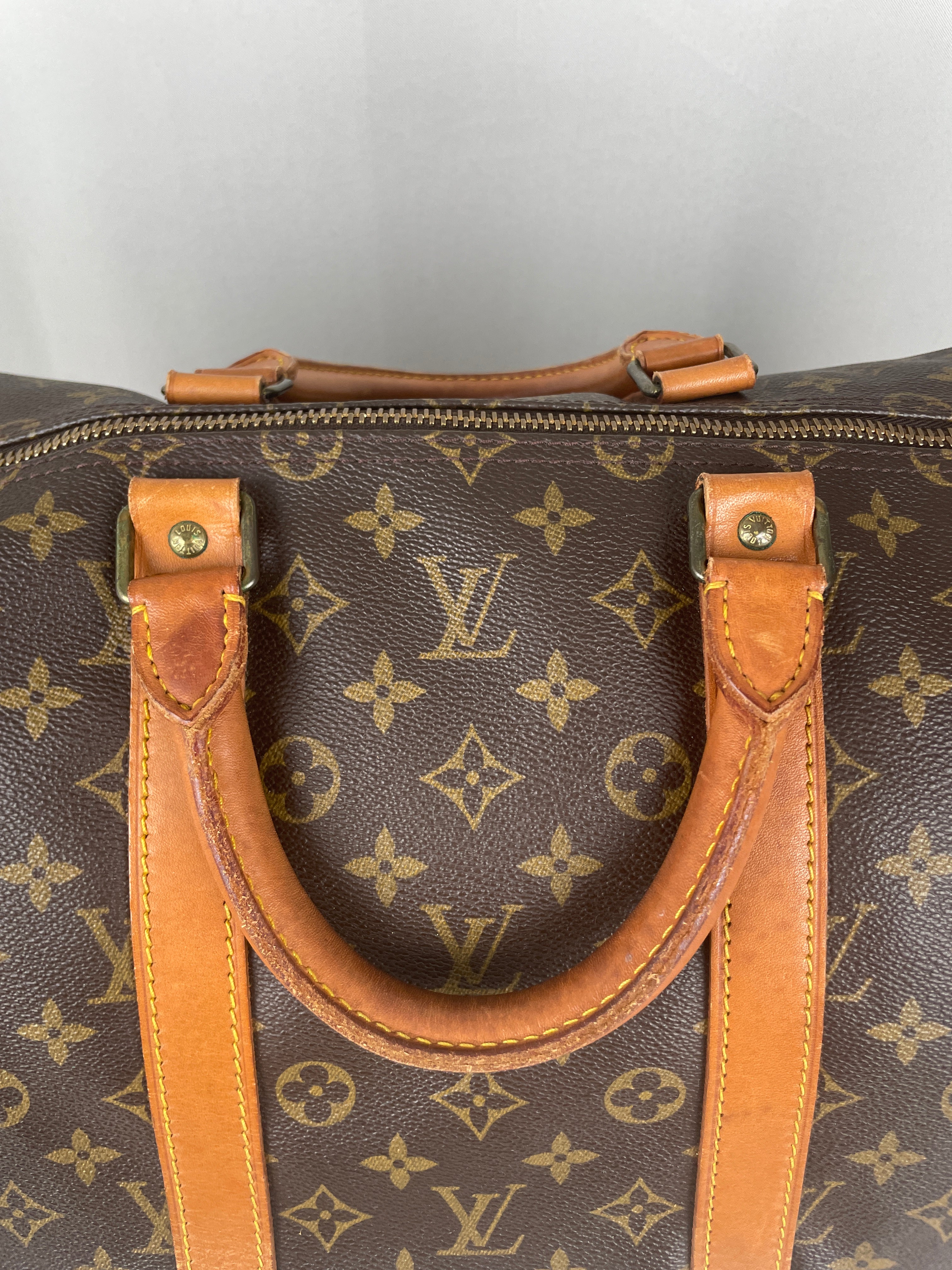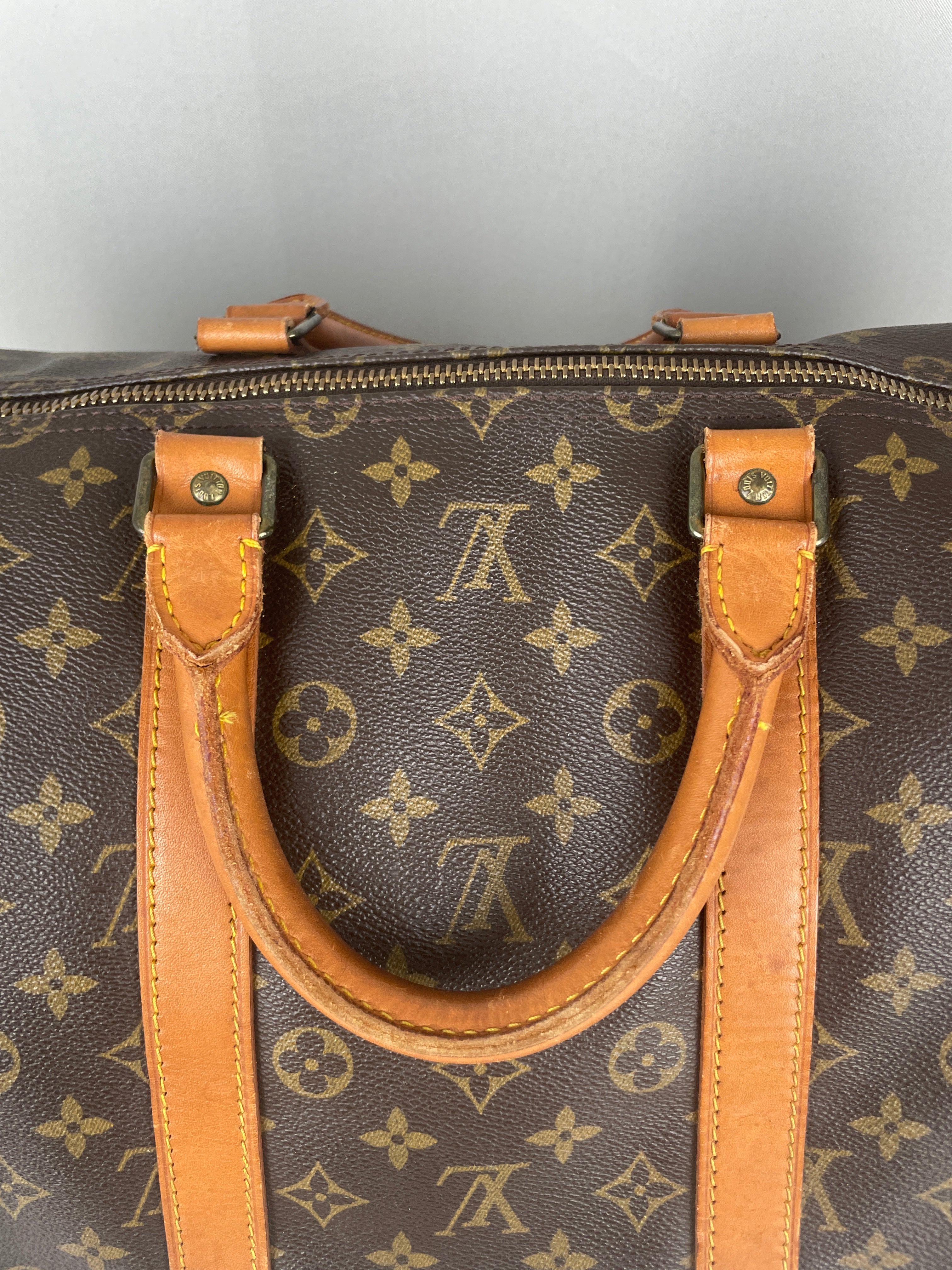Le Keepall Bandoulière est le compagnon de voyage légendaire de Louis Vuitton, lancé en 1930 comme premier bagage souple de luxe au monde. Ce modèle vintage de 1989 représente plus de quatre décennies d'héritage de voyage authentique et met en valeur l'évolution naturelle des matériaux haut de gamme. Ses poignées noircies et sa patine délicate racontent l'histoire d'aventures authentiques et d'un savoir-faire de luxe authentique. Une véritable pièce de collection qui incarne l'âge d'or du voyage de luxe et le savoir-faire inégalé de Louis Vuitton dans la création d'essentiels de voyage intemporels.