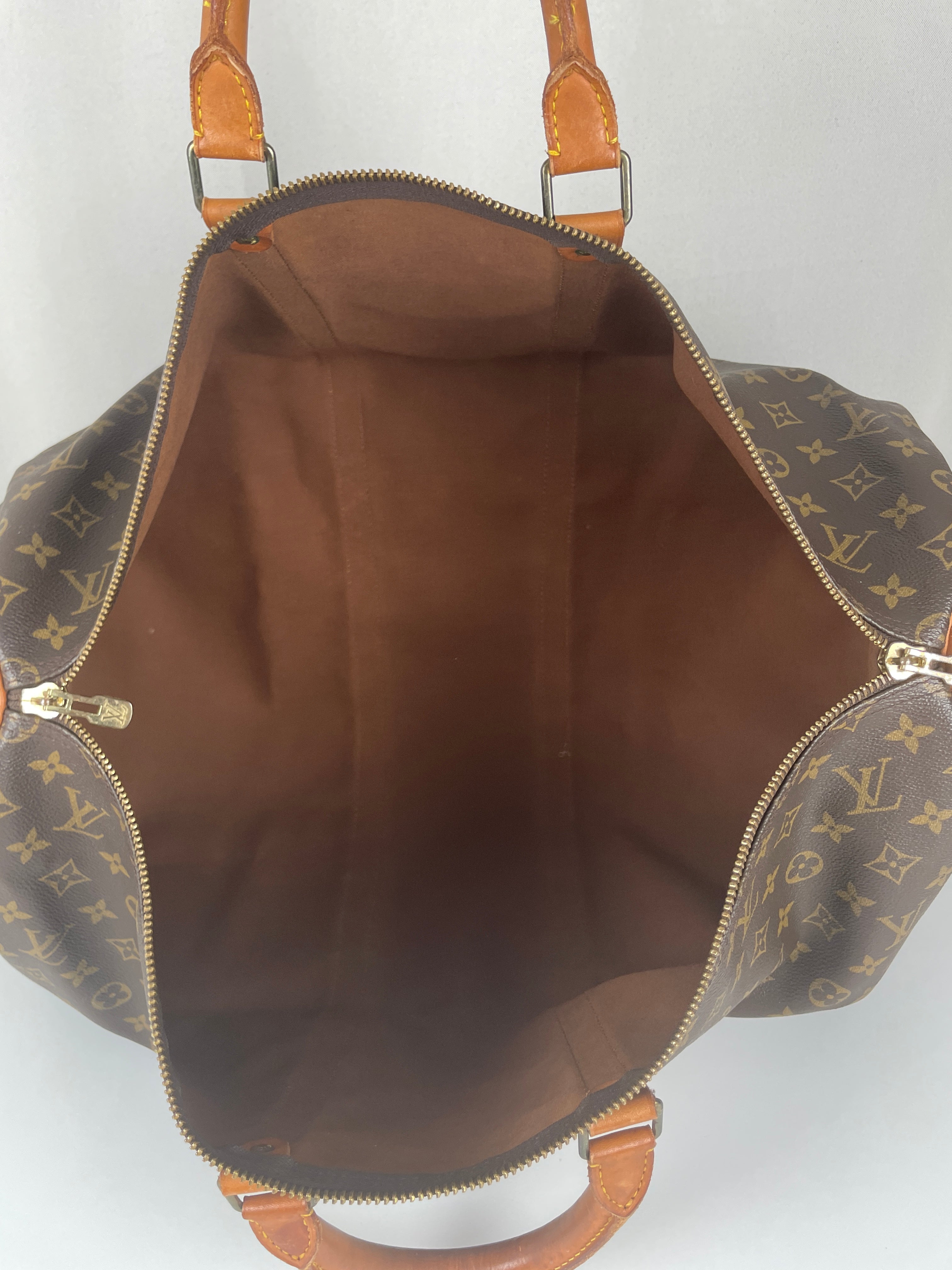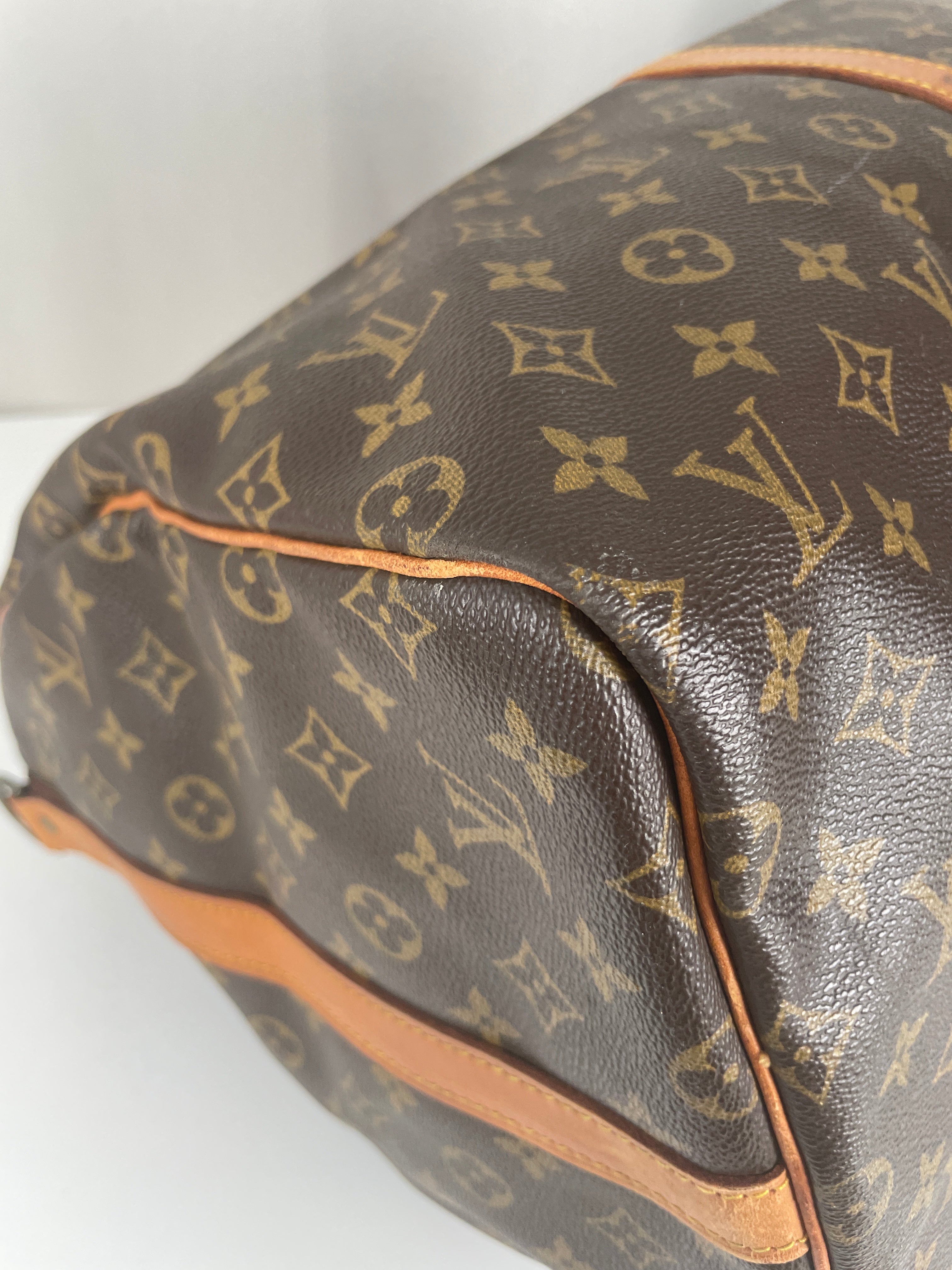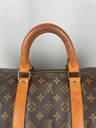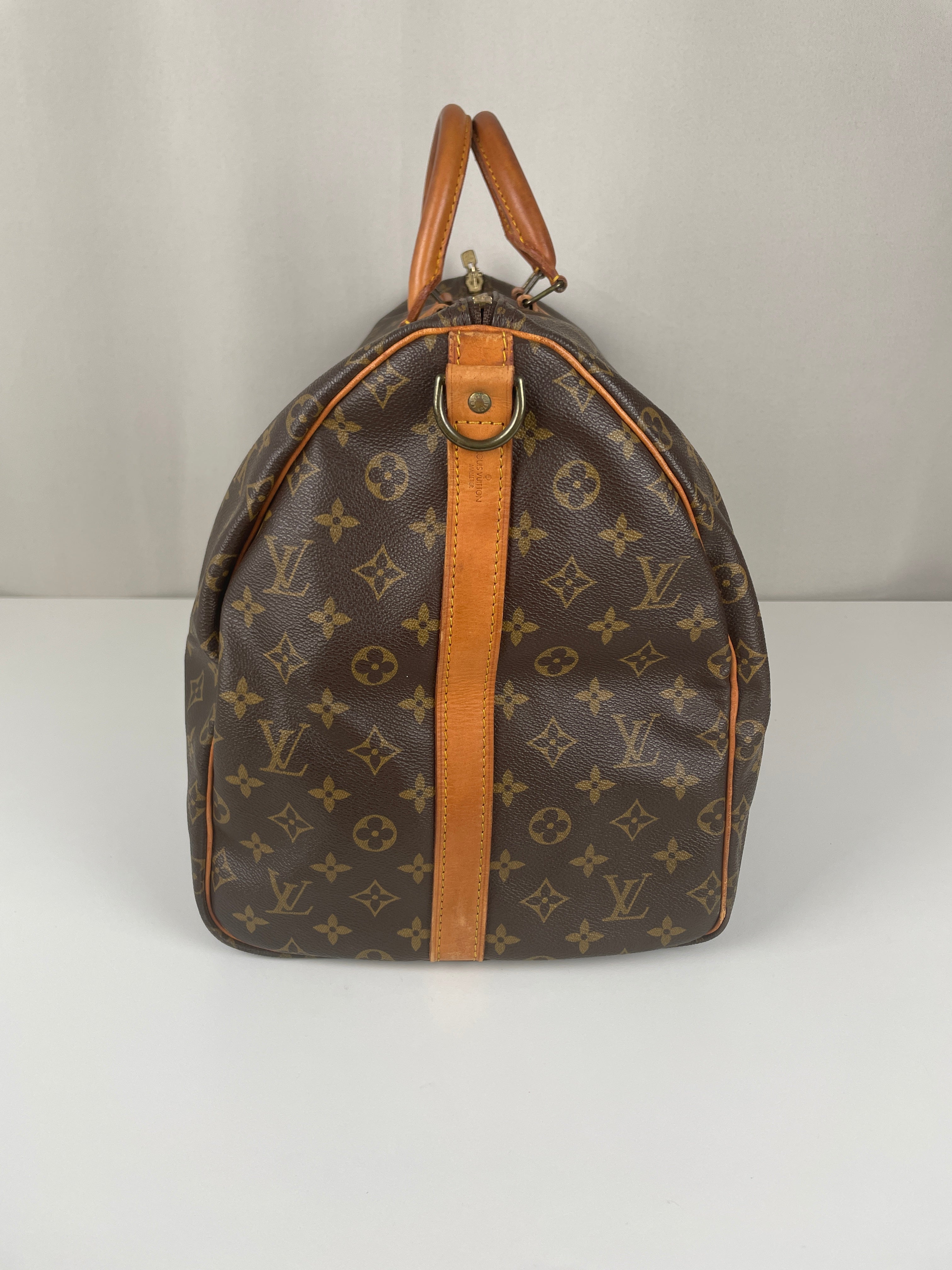 Le Keepall Bandoulière est le compagnon de voyage légendaire de Louis Vuitton, lancé en 1930 comme premier bagage souple de luxe au monde. Ce modèle vintage de 1989 représente plus de quatre décennies d'héritage de voyage authentique et met en valeur l'évolution naturelle des matériaux haut de gamme. Ses poignées noircies et sa patine délicate racontent l'histoire d'aventures authentiques et d'un savoir-faire de luxe authentique. Une véritable pièce de collection qui incarne l'âge d'or du voyage de luxe et le savoir-faire inégalé de Louis Vuitton dans la création d'essentiels de voyage intemporels.