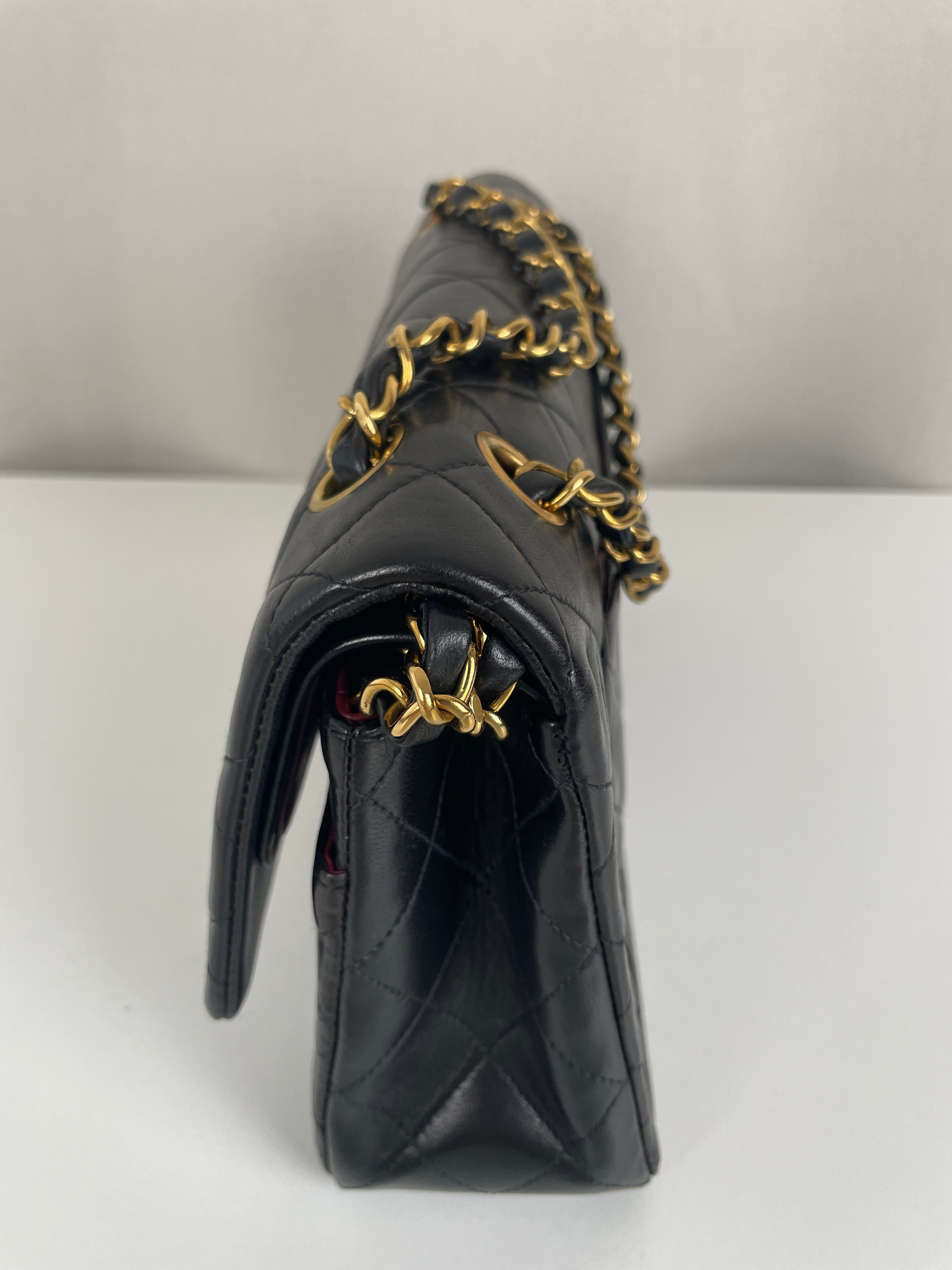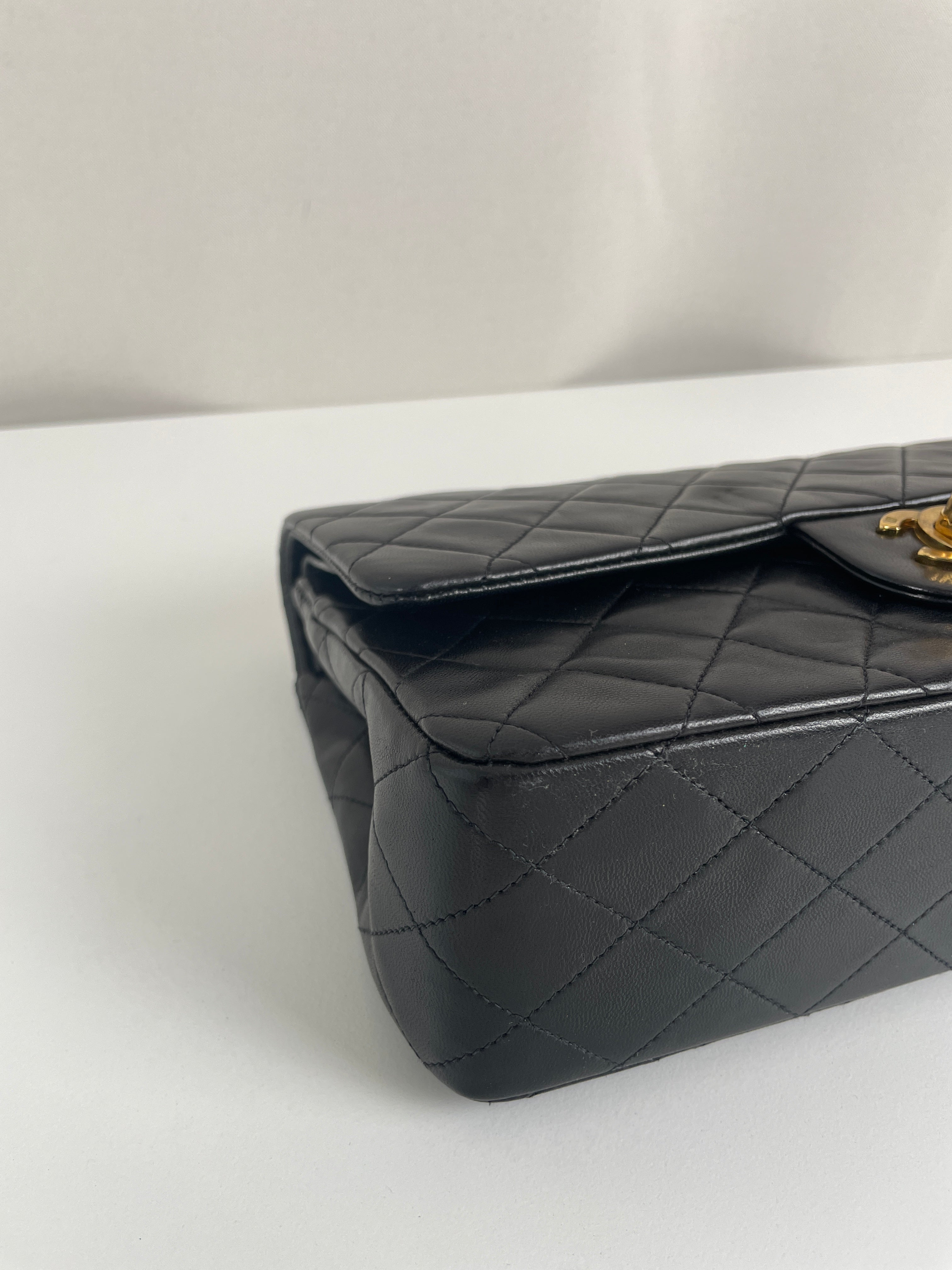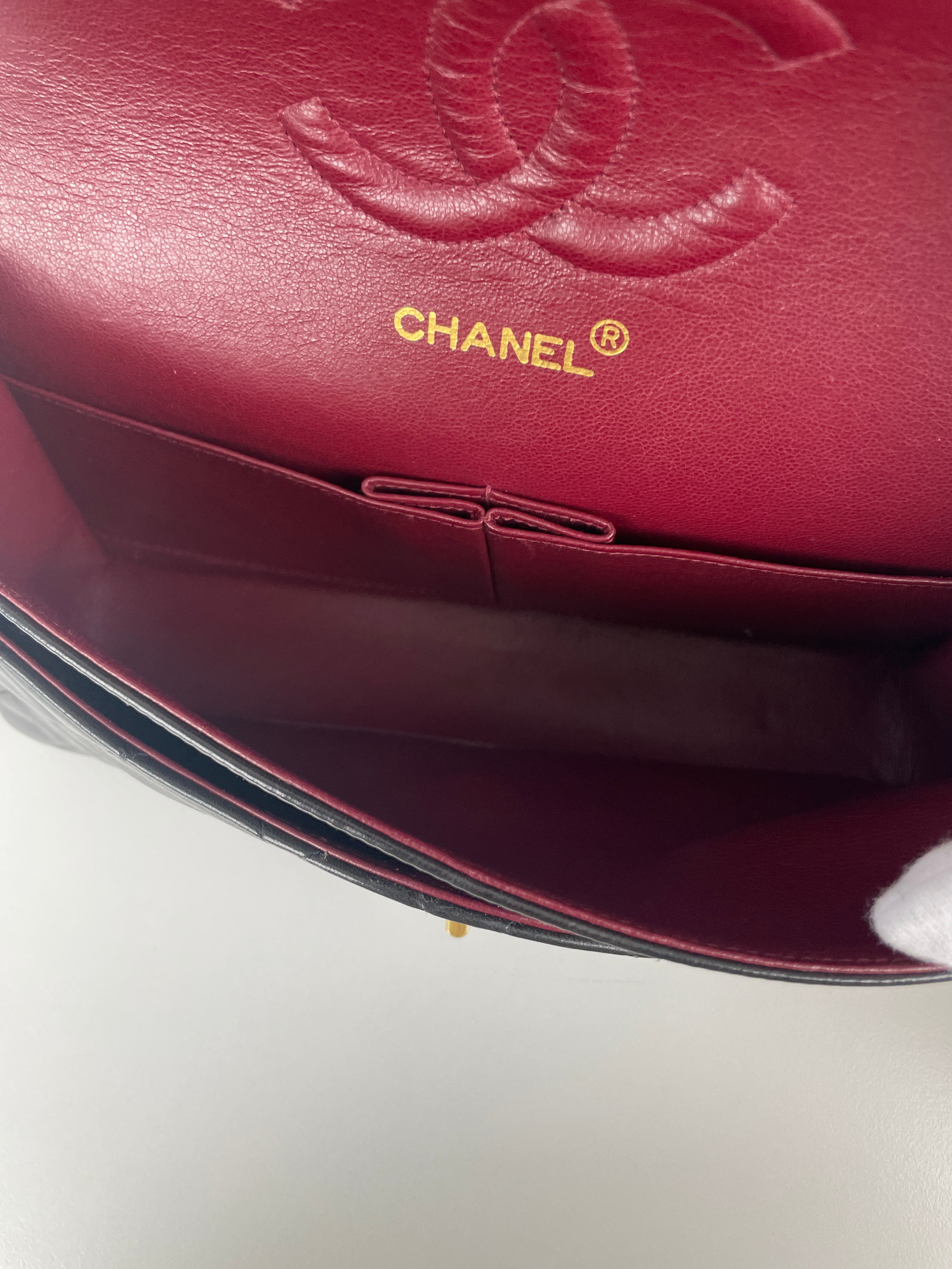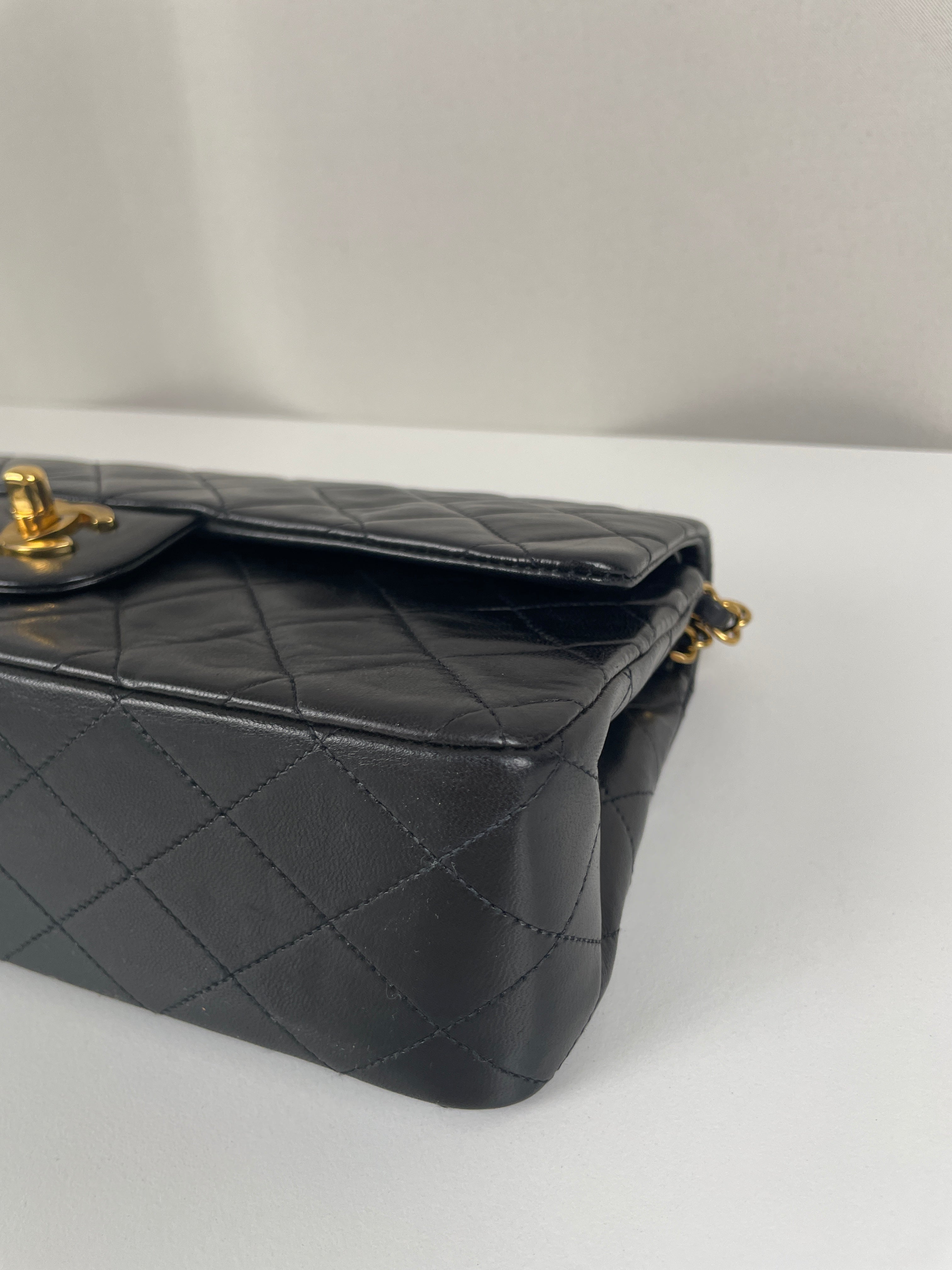 Ce sac Chanel Timeless 25 est en très bon état. Le cuir est en très bon état. C'est un modèle vintage un cuir super doux. Les coins sont en très bon état, tout comme la chaîne. L'intérieur est également en très bon état. Sur le devant, il y a une marque sur le cuir, probablement due à la chaîne, assez léger.