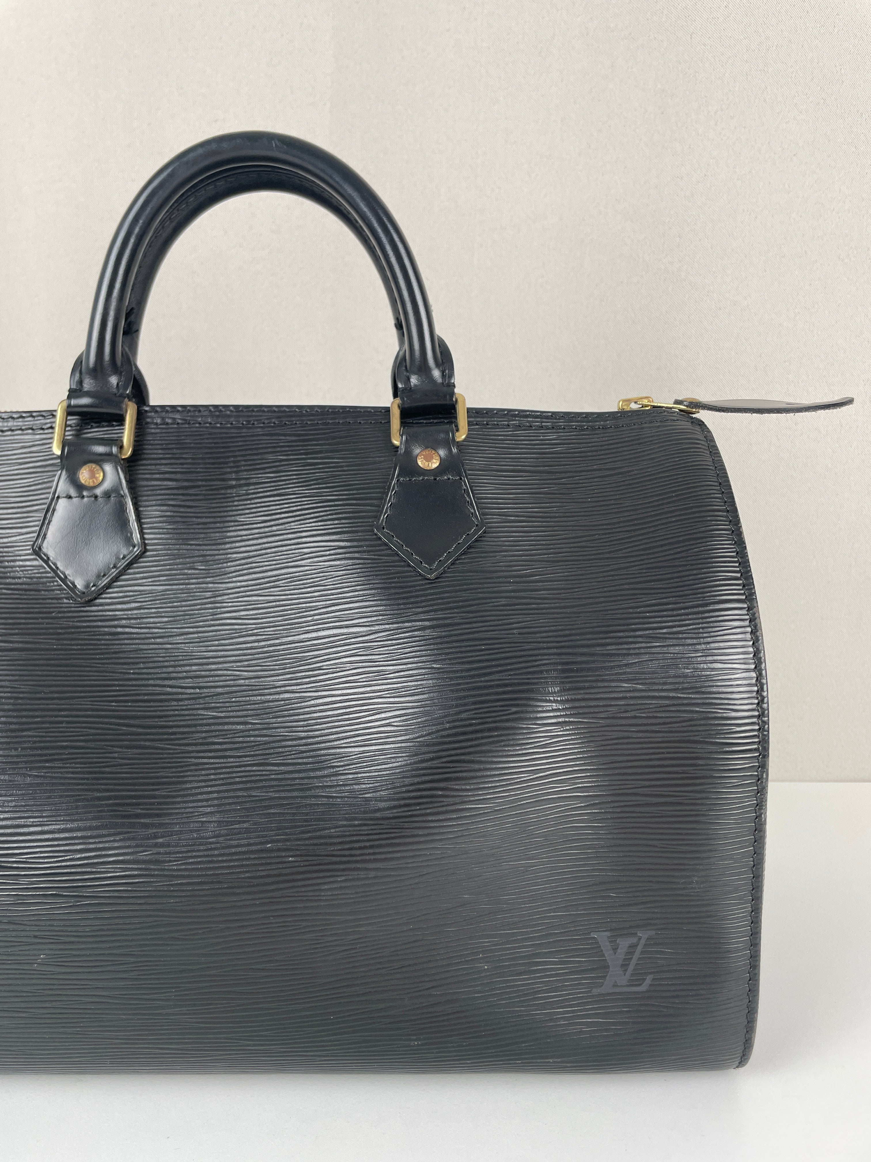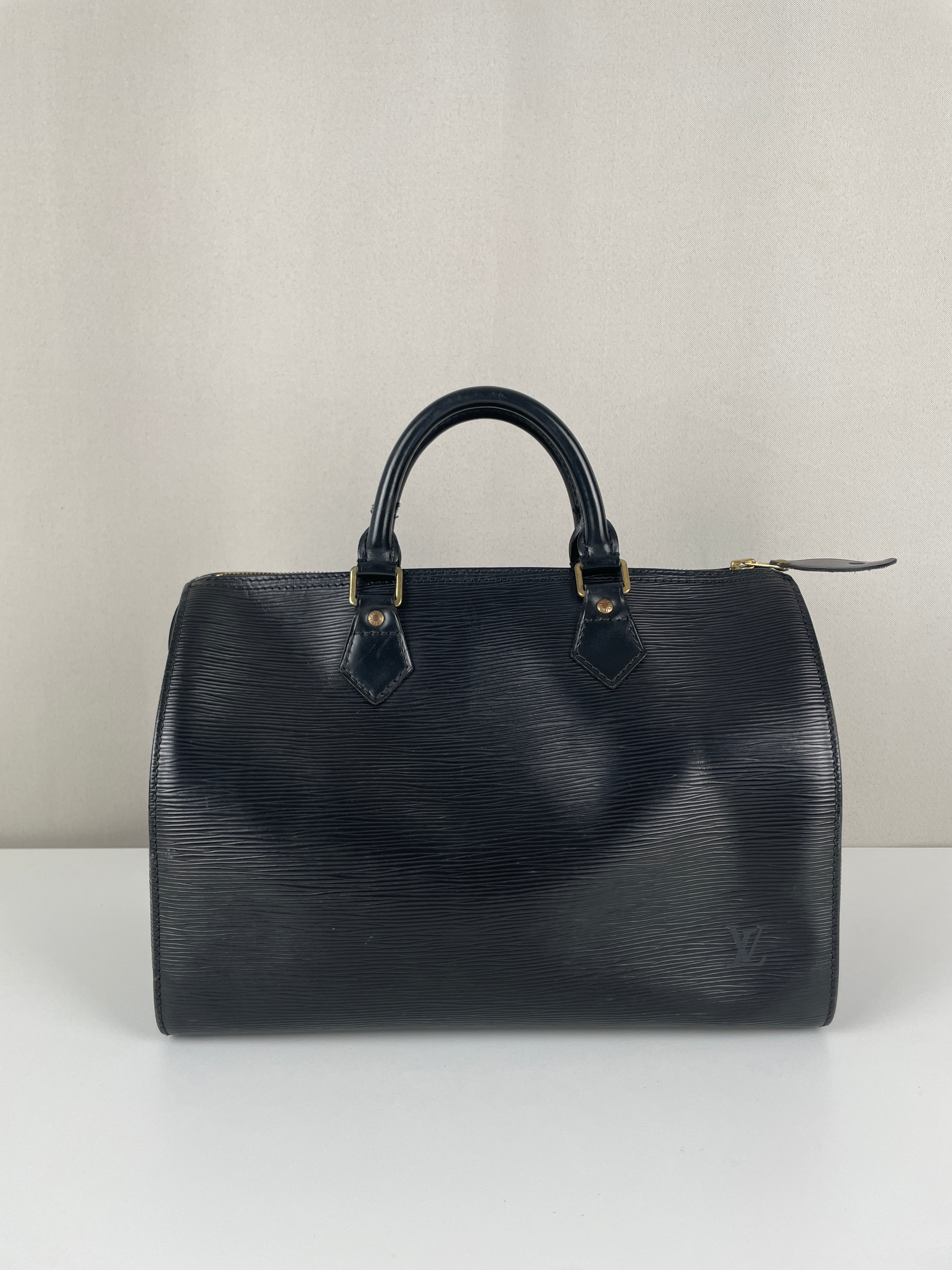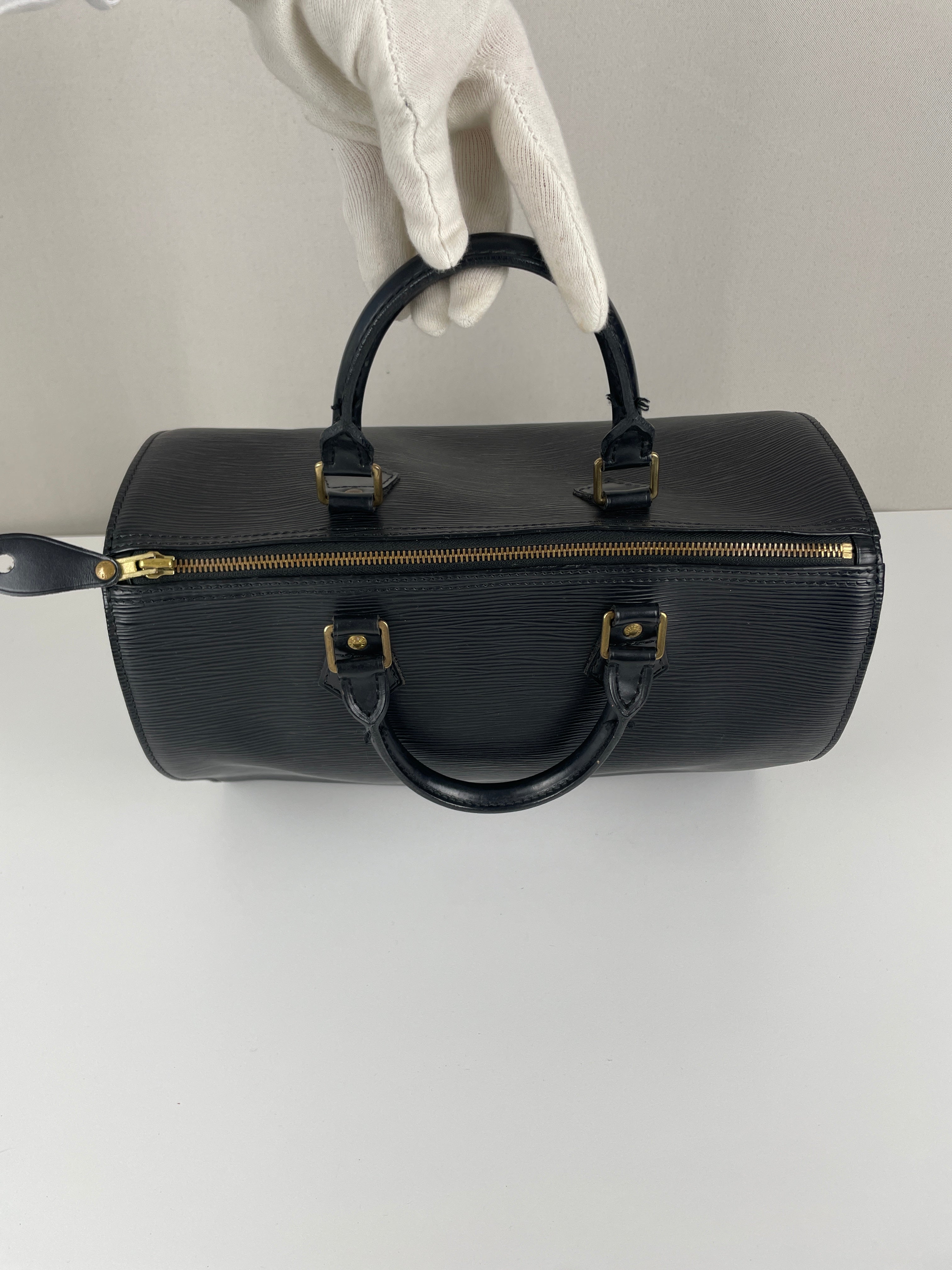 Ce sac Louis Vuitton Speedy 30 en cuir épi est une pièce vintage sophistiquée de 1994 qui incarne l'élégance intemporelle. Le cuir épi texturé, avec son motif de grain distinctif, en fait un choix raffiné pour les collectionneurs et les passionnées de mode. Ce sac de luxe d'occasion met en valeur le savoir-faire exceptionnel qui fait la renommée de Louis Vuitton.