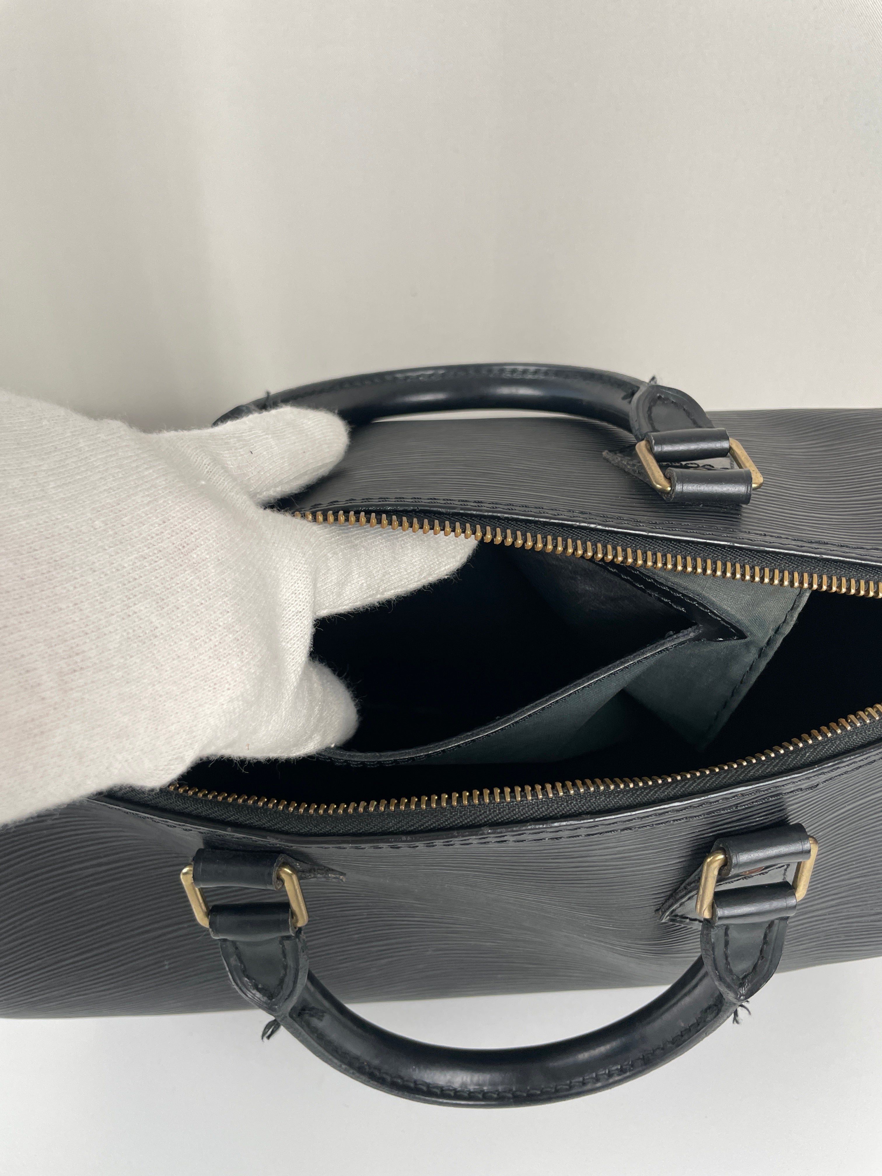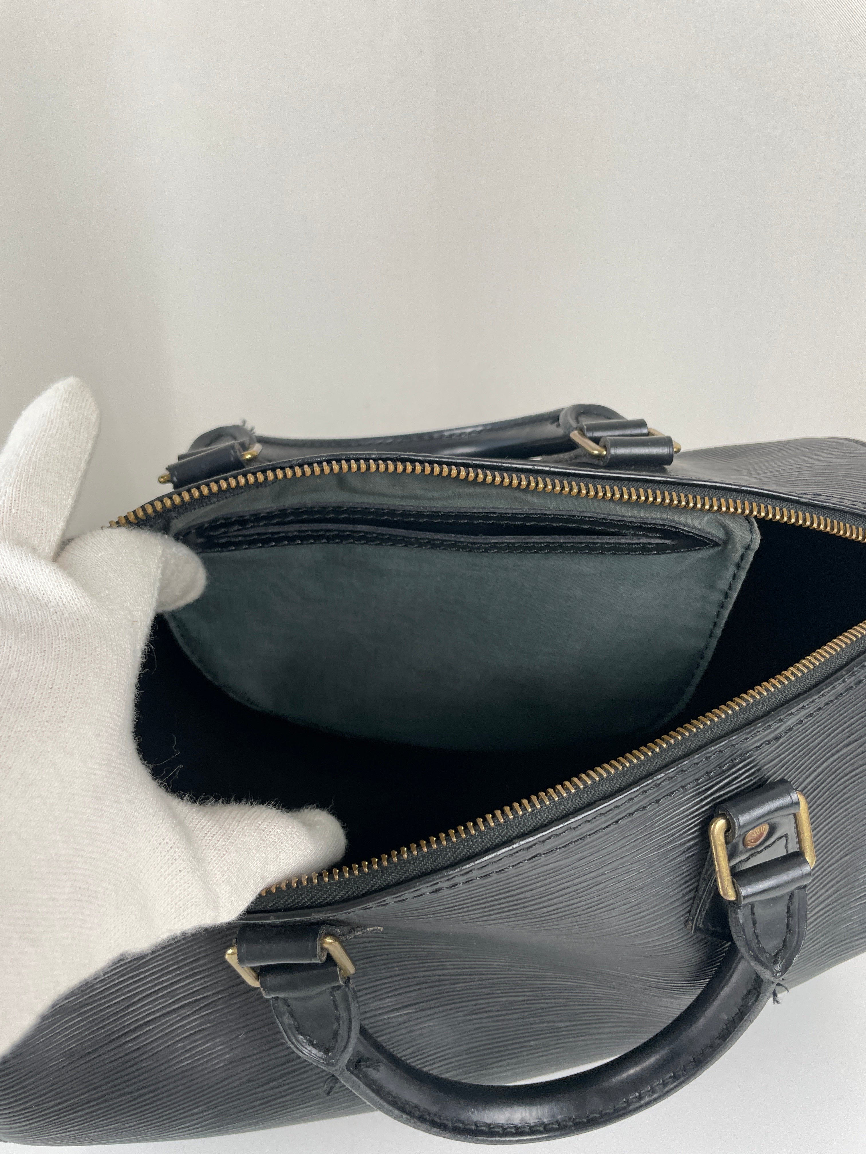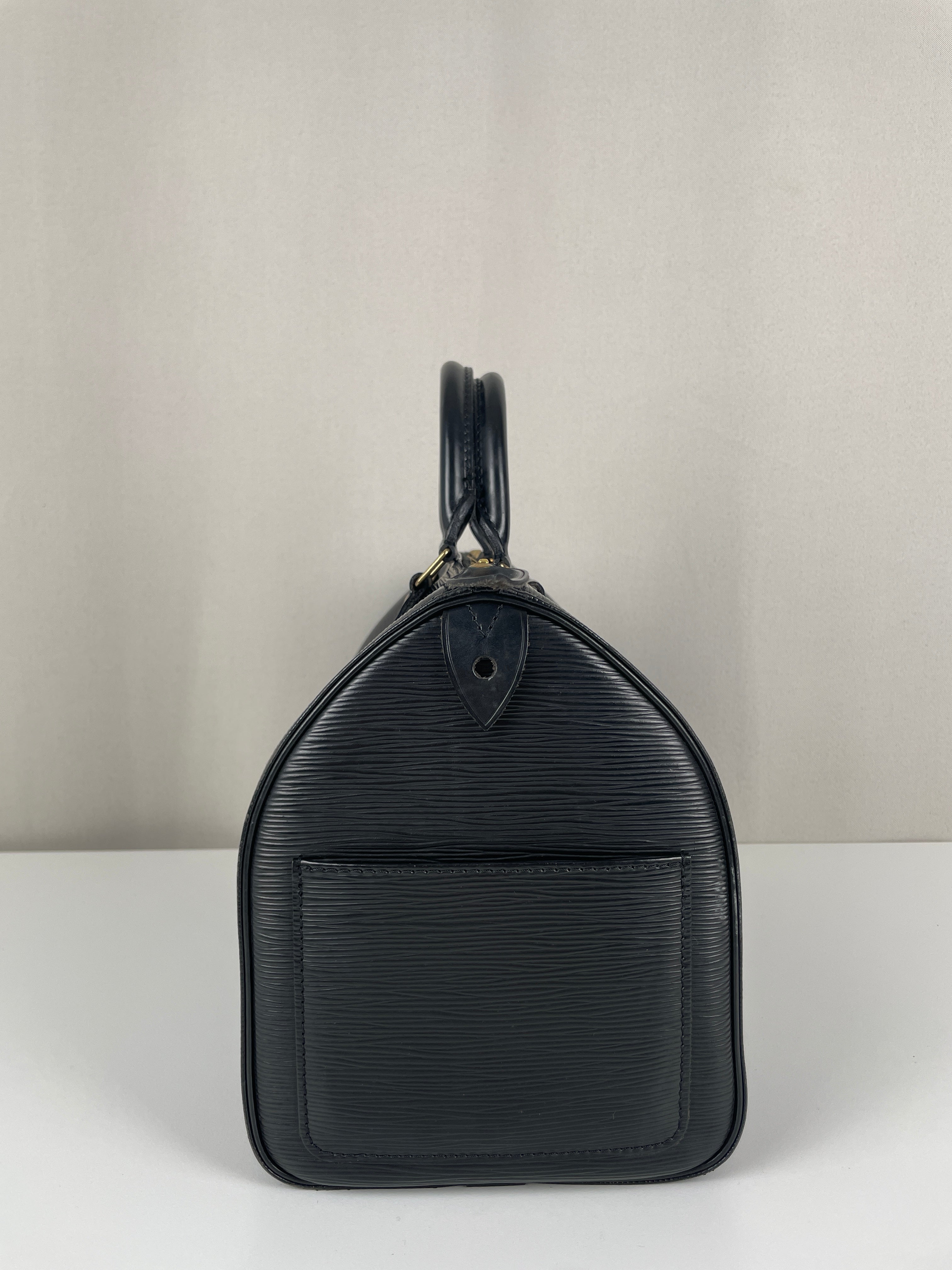 Ce sac Louis Vuitton Speedy 30 en cuir épi est une pièce vintage sophistiquée de 1994 qui incarne l'élégance intemporelle. Le cuir épi texturé, avec son motif de grain distinctif, en fait un choix raffiné pour les collectionneurs et les passionnées de mode. Ce sac de luxe d'occasion met en valeur le savoir-faire exceptionnel qui fait la renommée de Louis Vuitton.