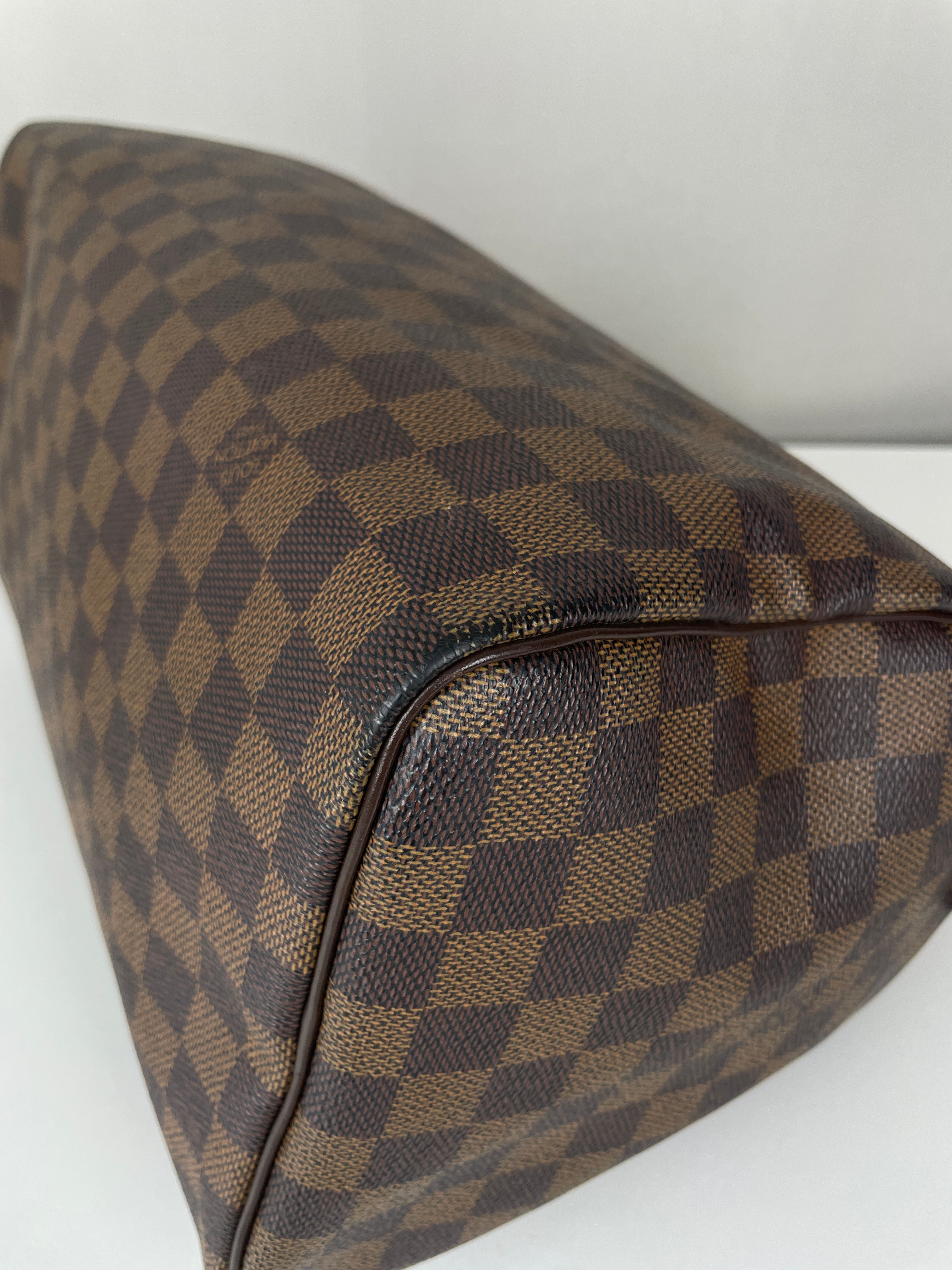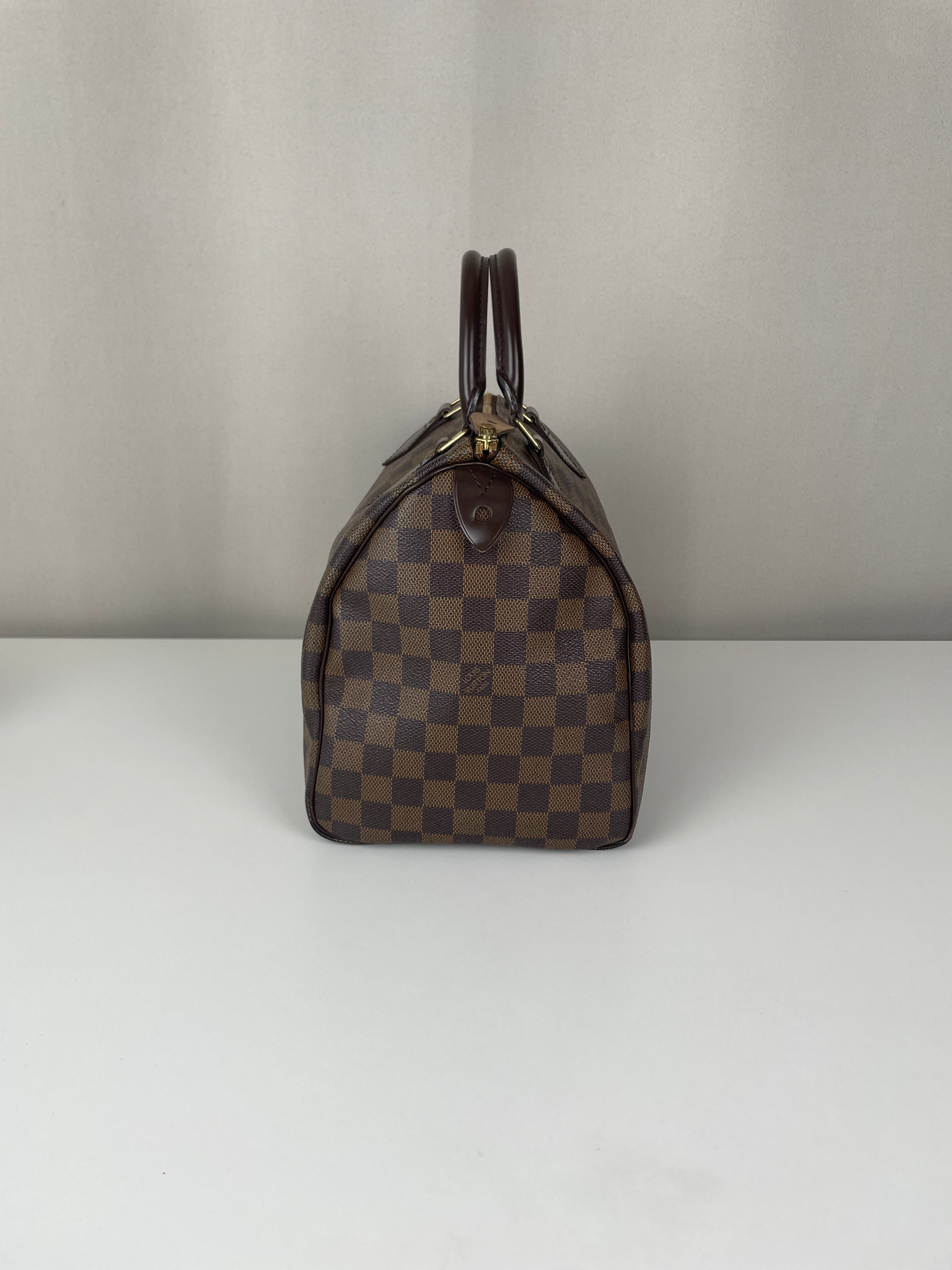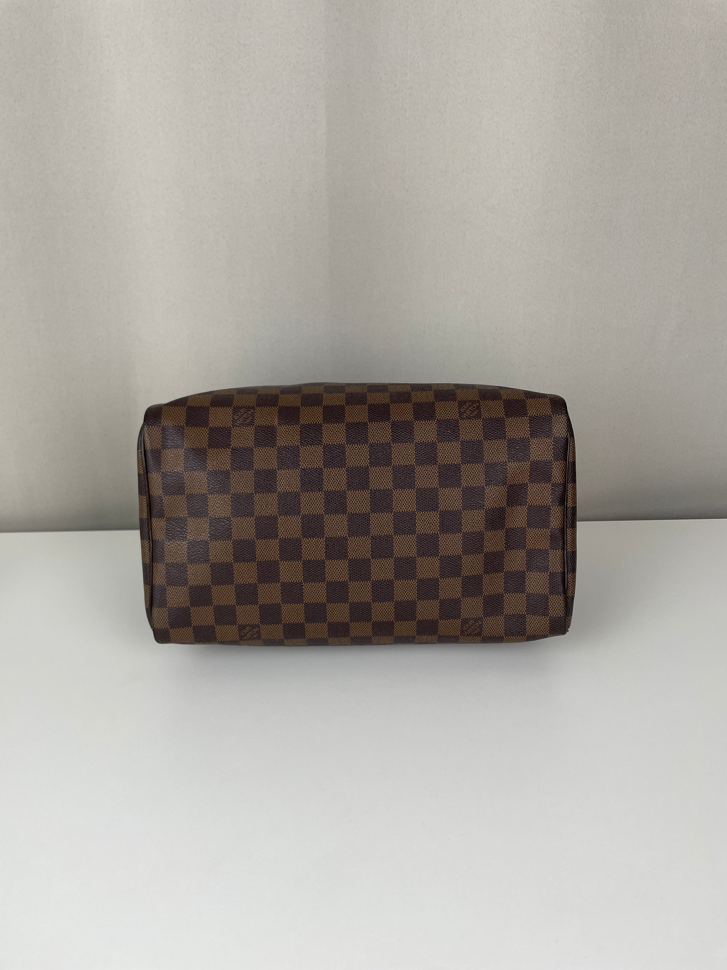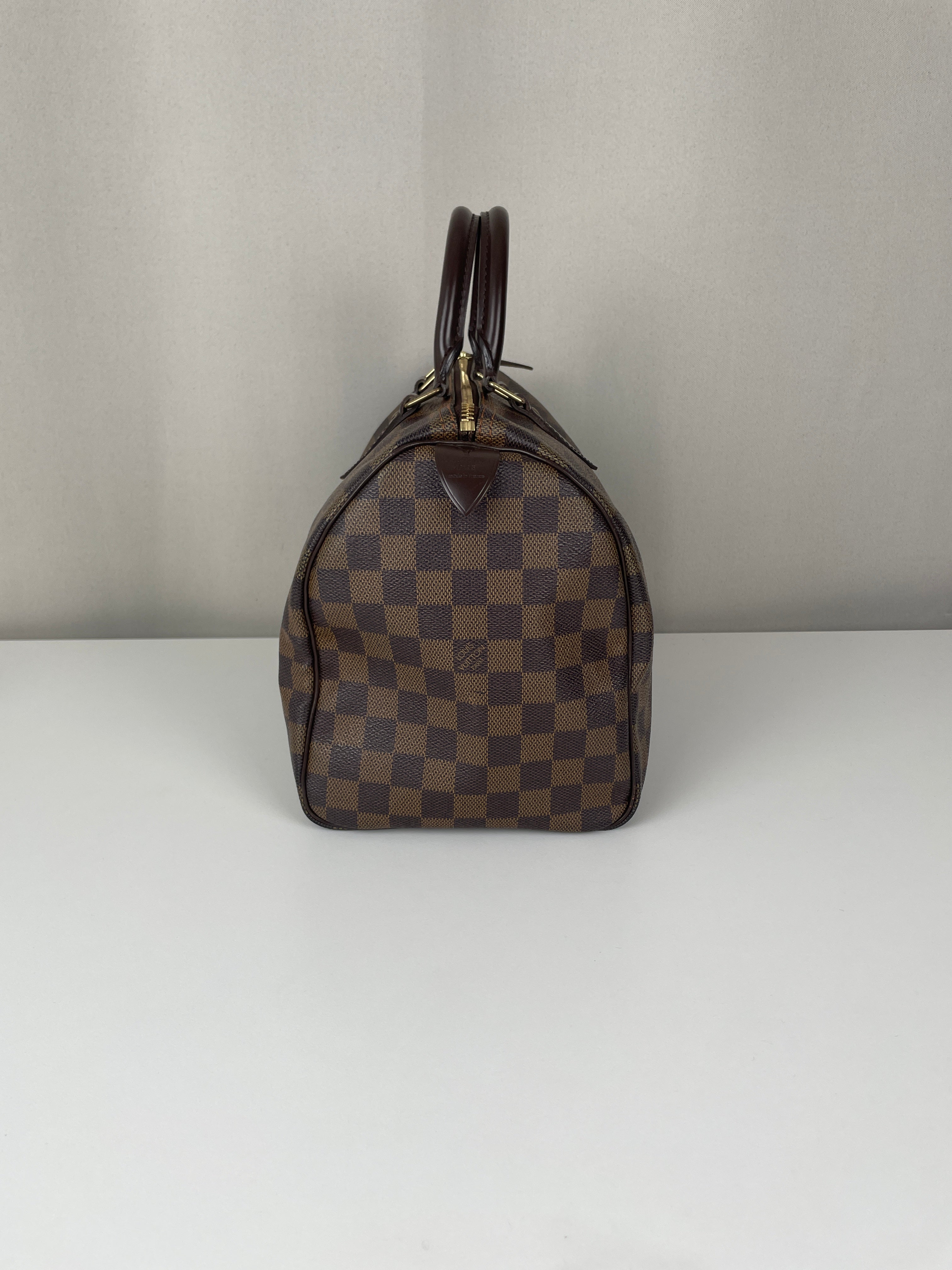 Ce sac Louis Vuitton Speedy 30 en toile damier ébène est un favori intemporel de 2007. Léger mais spacieux, il est idéal pour transporter tous vos essentiels avec style. Son motif à carreaux signature ajoute une touche moderne, et le sac reste en belle forme, avec seulement de légers signes d'usure. Un classique fiable qui ne se démode jamais parfait pour les collectionneurs et les passionnées de mode. Ce sac de luxe d'occasion met en valeur le savoir-faire exceptionnel qui fait la renommée de Louis Vuitton.