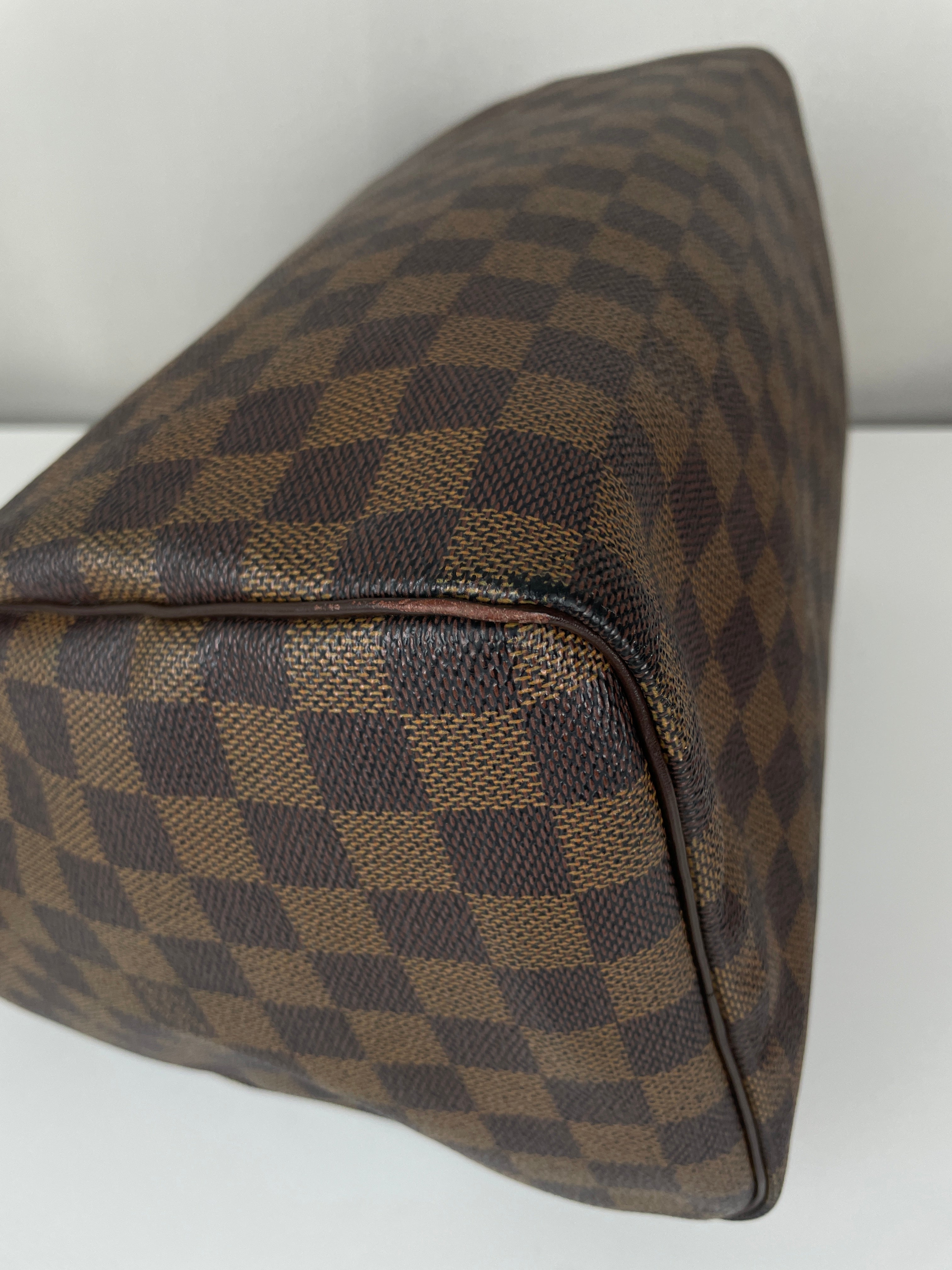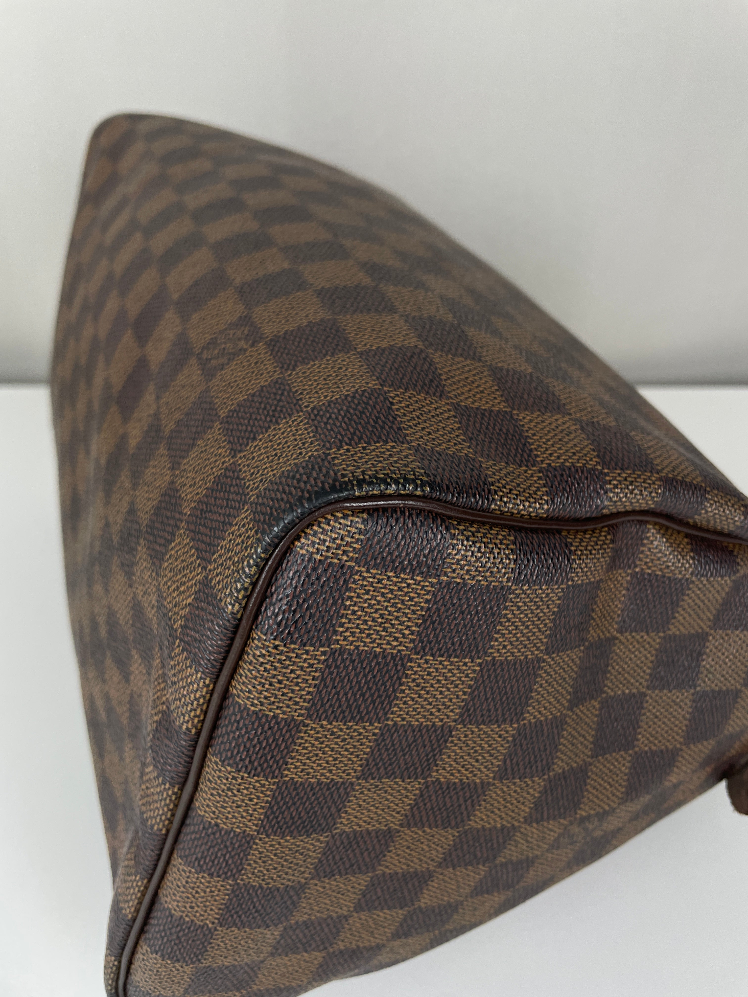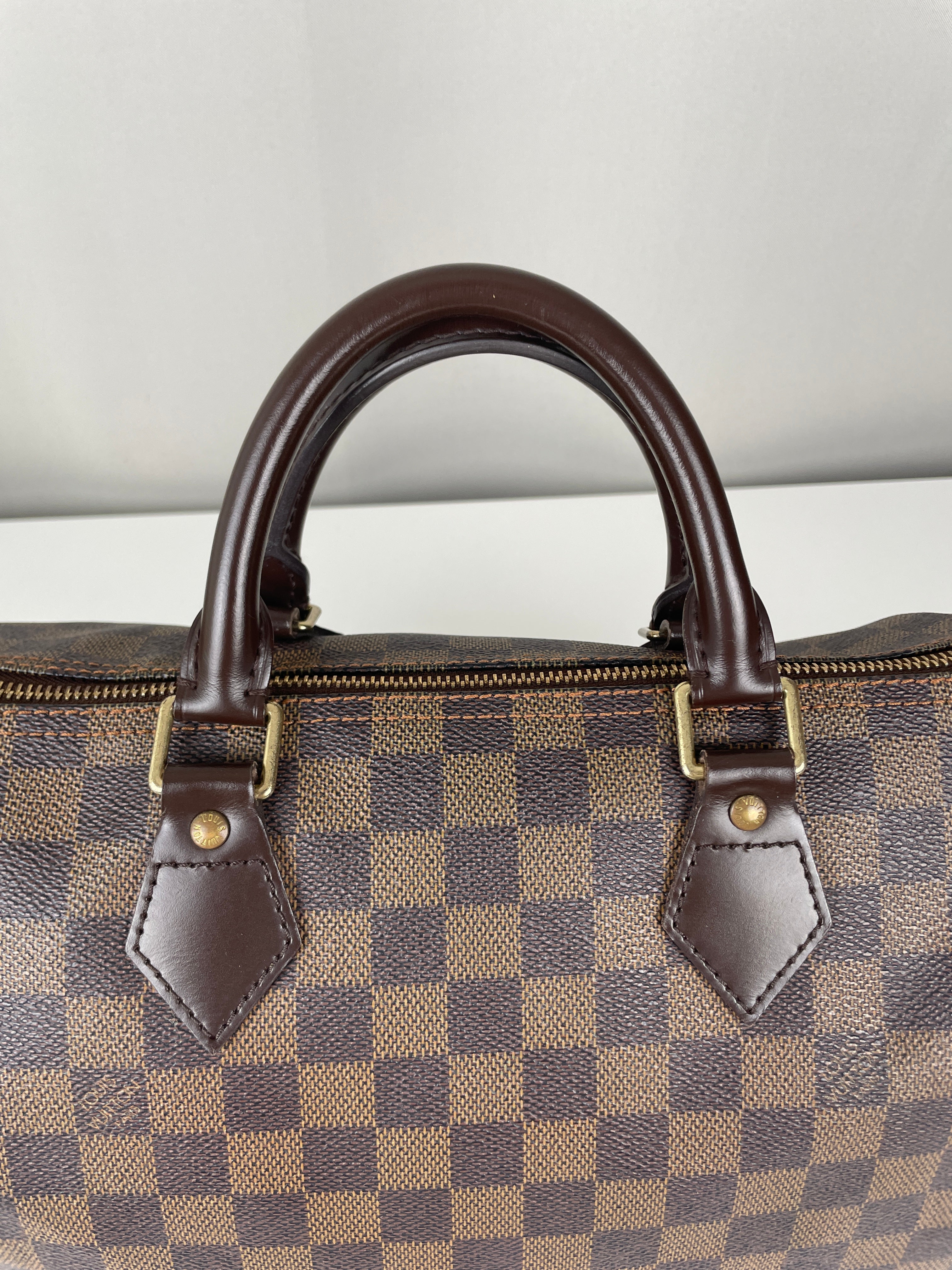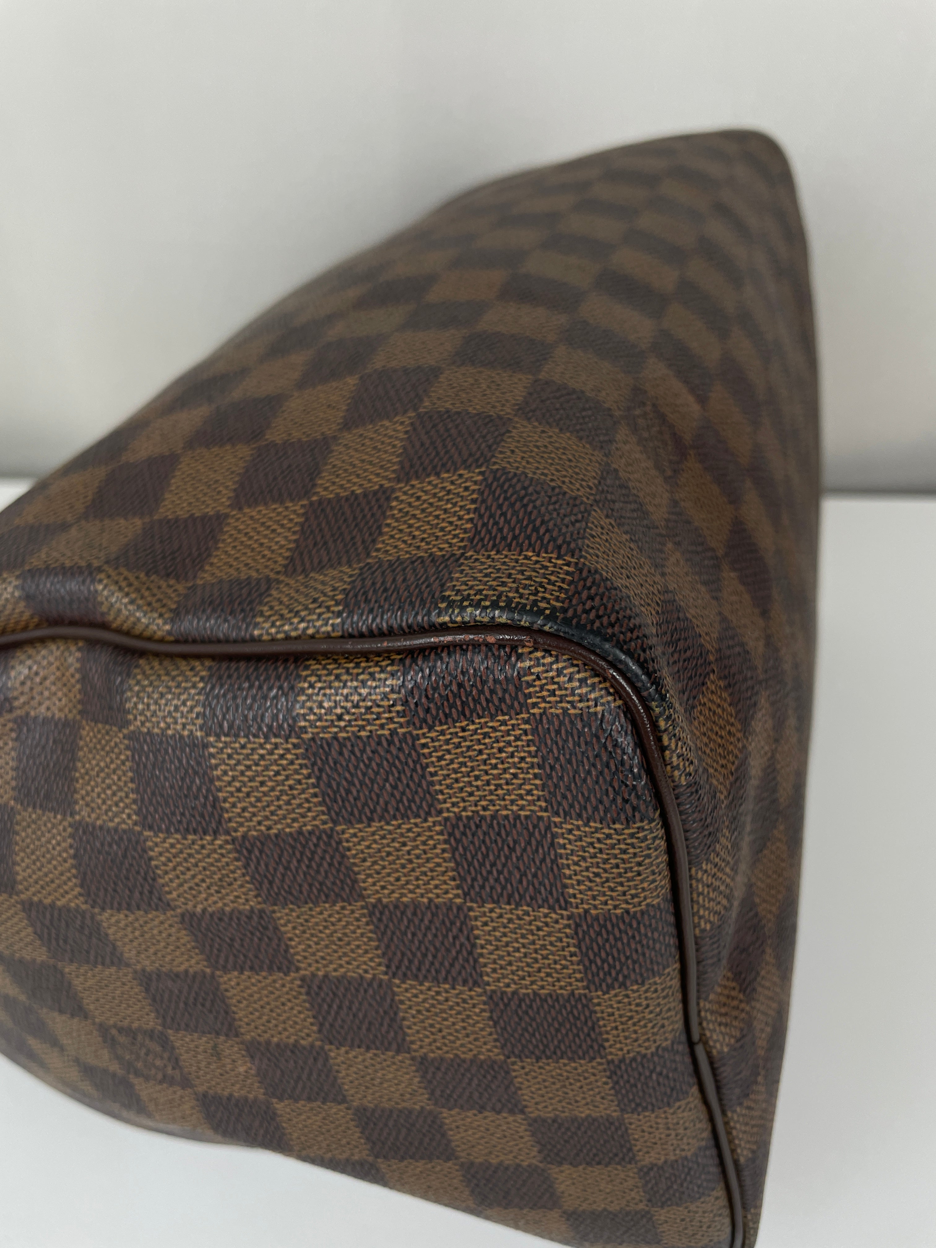Ce sac Louis Vuitton Speedy 30 en toile damier ébène est un favori intemporel de 2007. Léger mais spacieux, il est idéal pour transporter tous vos essentiels avec style. Son motif à carreaux signature ajoute une touche moderne, et le sac reste en belle forme, avec seulement de légers signes d'usure. Un classique fiable qui ne se démode jamais parfait pour les collectionneurs et les passionnées de mode. Ce sac de luxe d'occasion met en valeur le savoir-faire exceptionnel qui fait la renommée de Louis Vuitton.