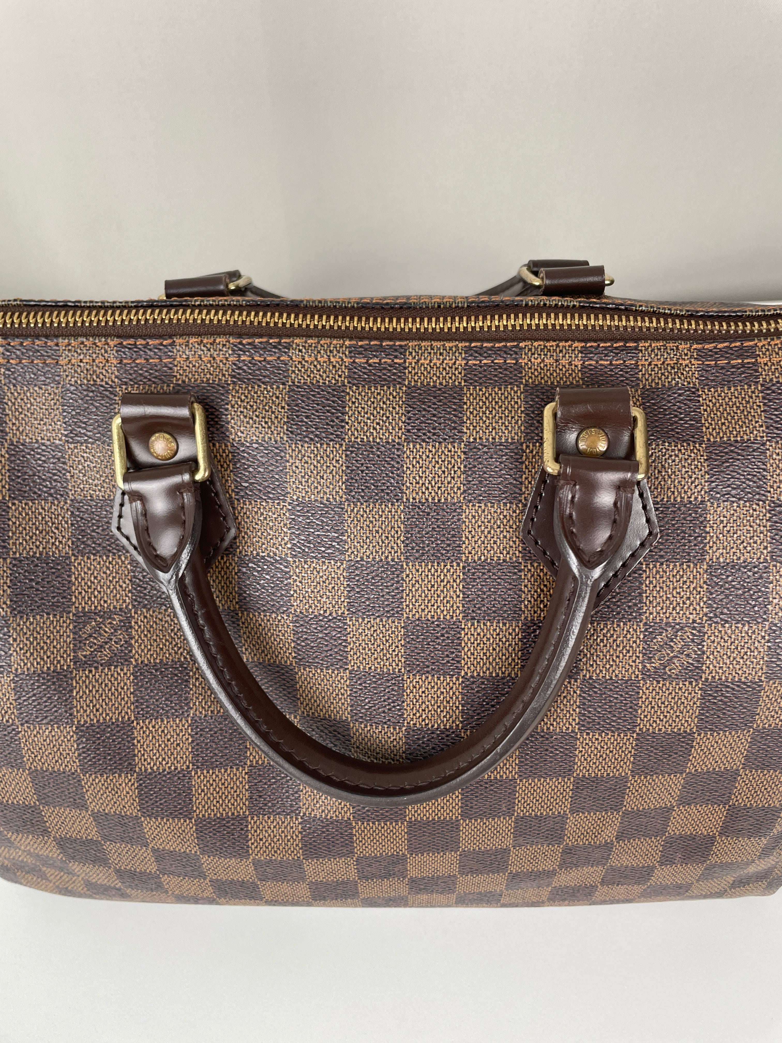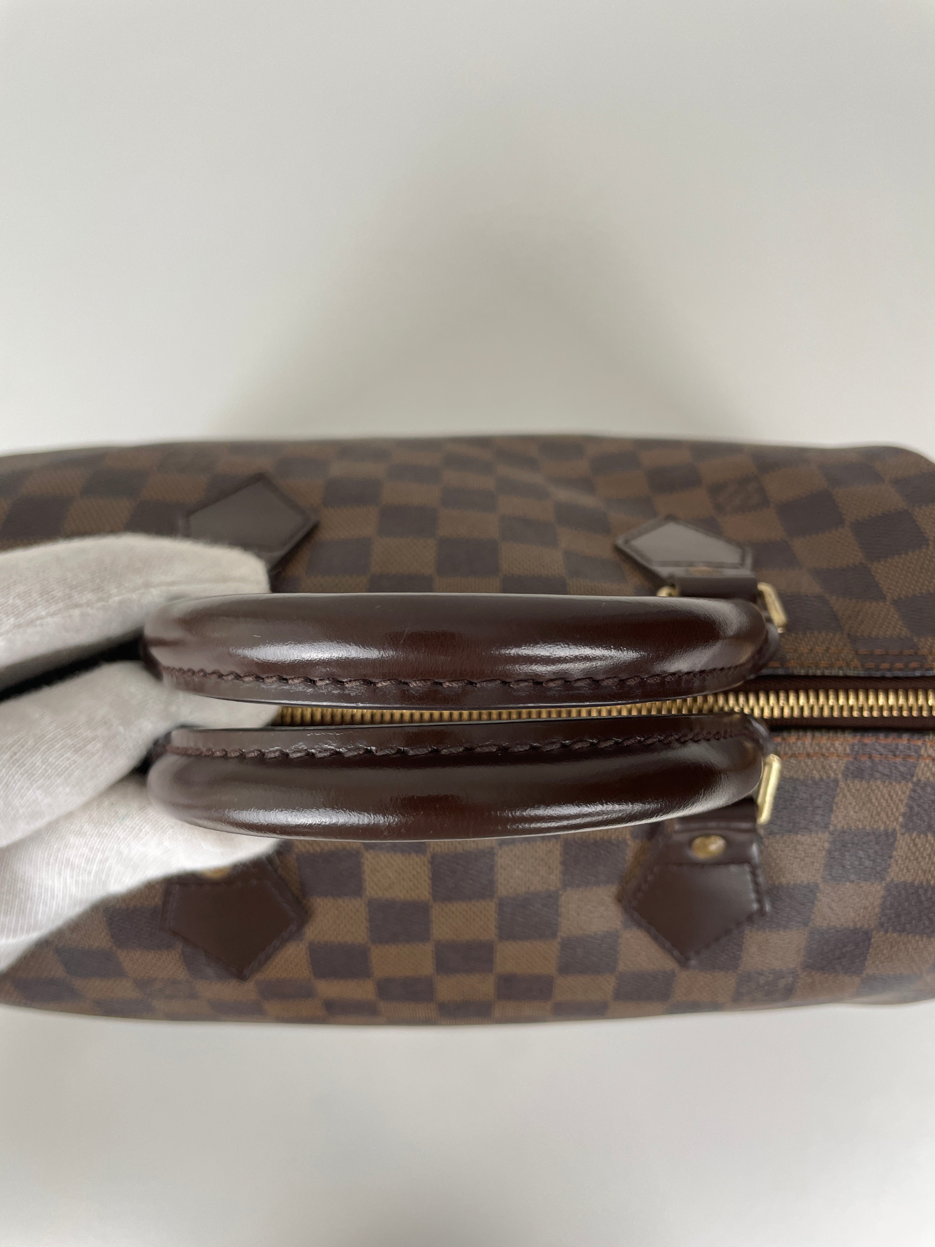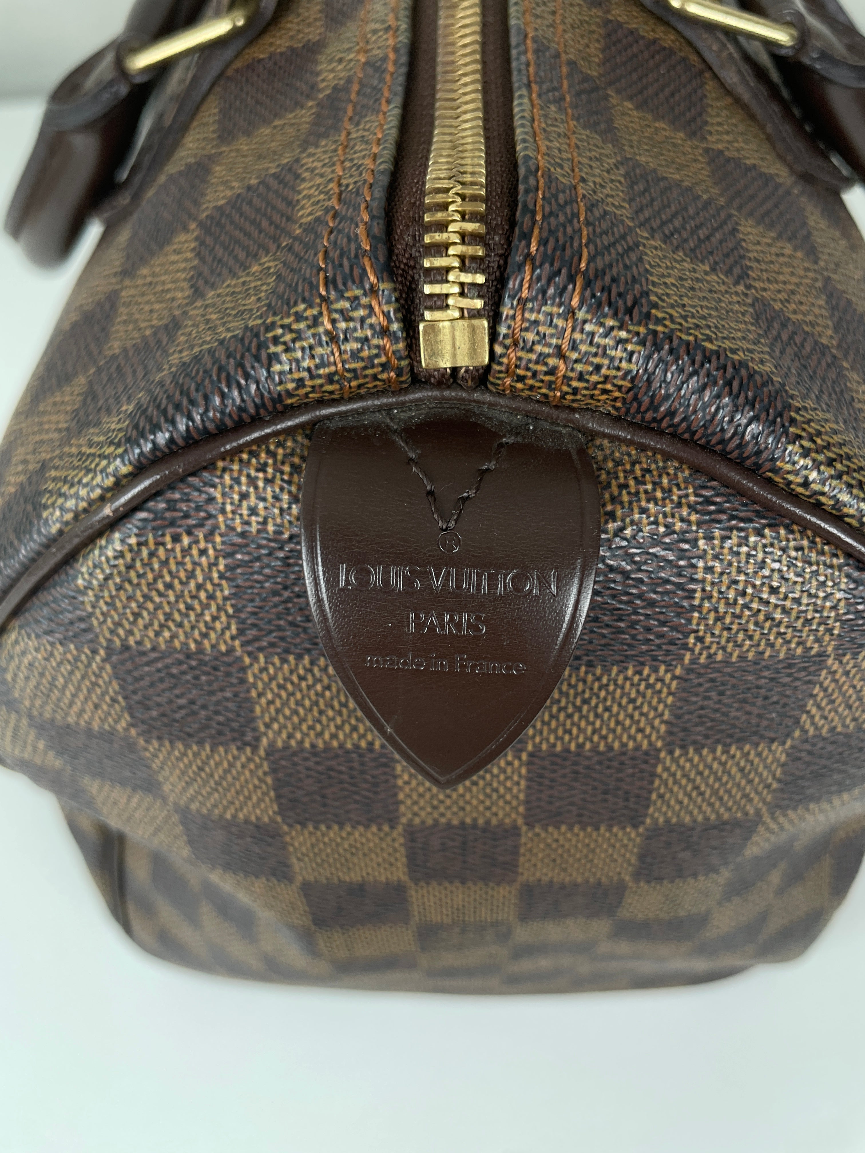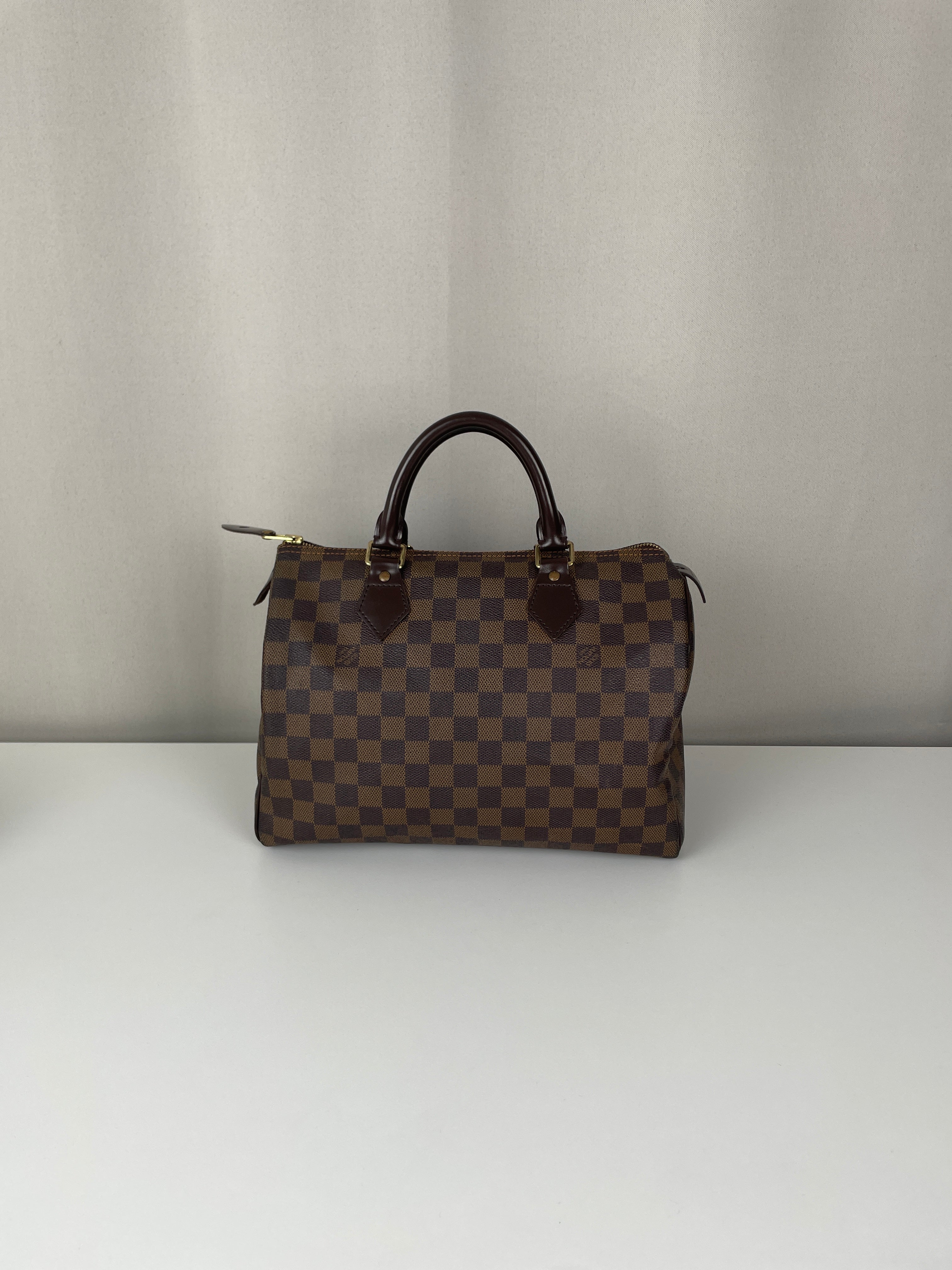Ce sac Louis Vuitton Speedy 30 en toile damier ébène est un favori intemporel de 2007. Léger mais spacieux, il est idéal pour transporter tous vos essentiels avec style. Son motif à carreaux signature ajoute une touche moderne, et le sac reste en belle forme, avec seulement de légers signes d'usure. Un classique fiable qui ne se démode jamais parfait pour les collectionneurs et les passionnées de mode. Ce sac de luxe d'occasion met en valeur le savoir-faire exceptionnel qui fait la renommée de Louis Vuitton.