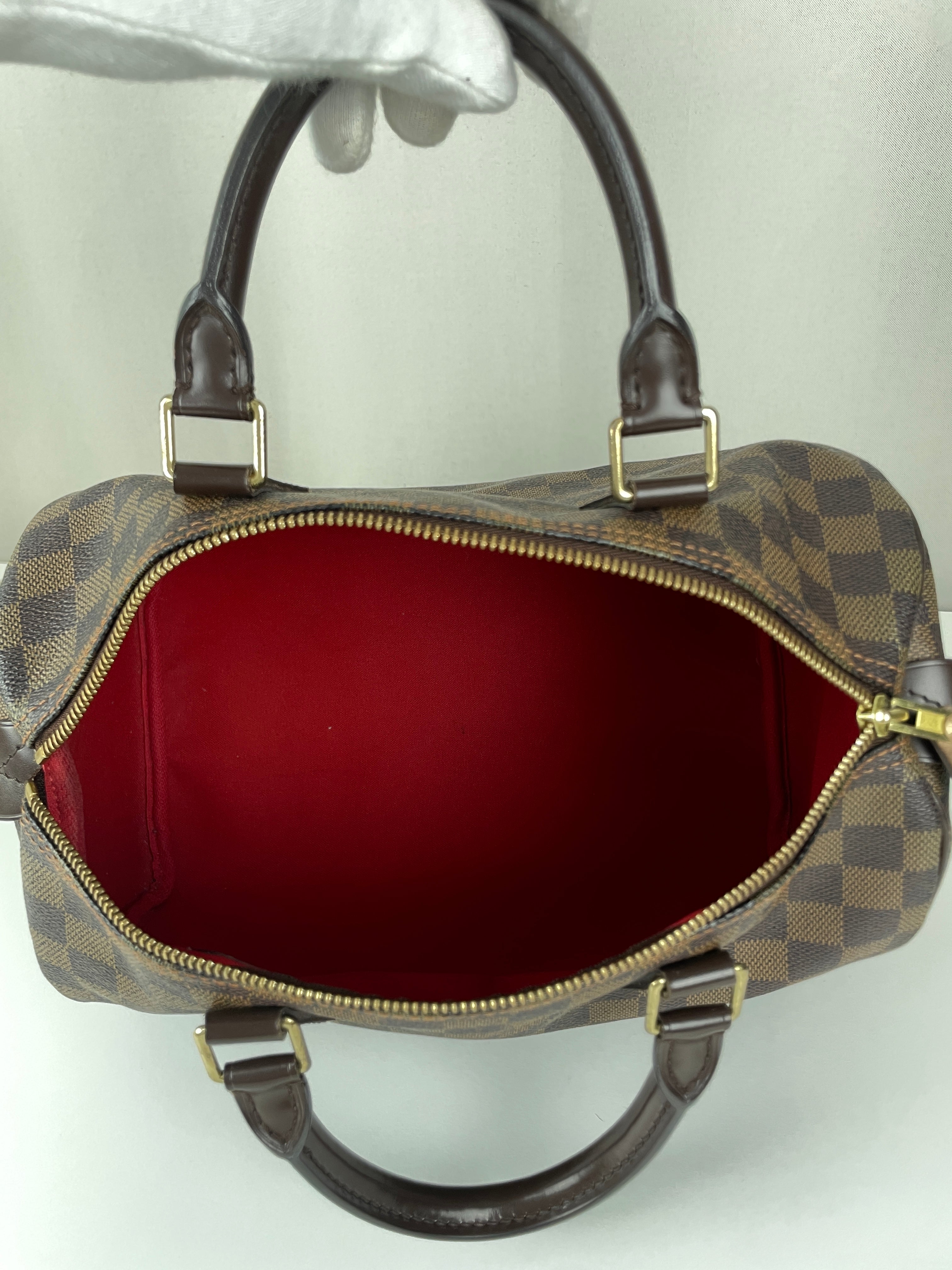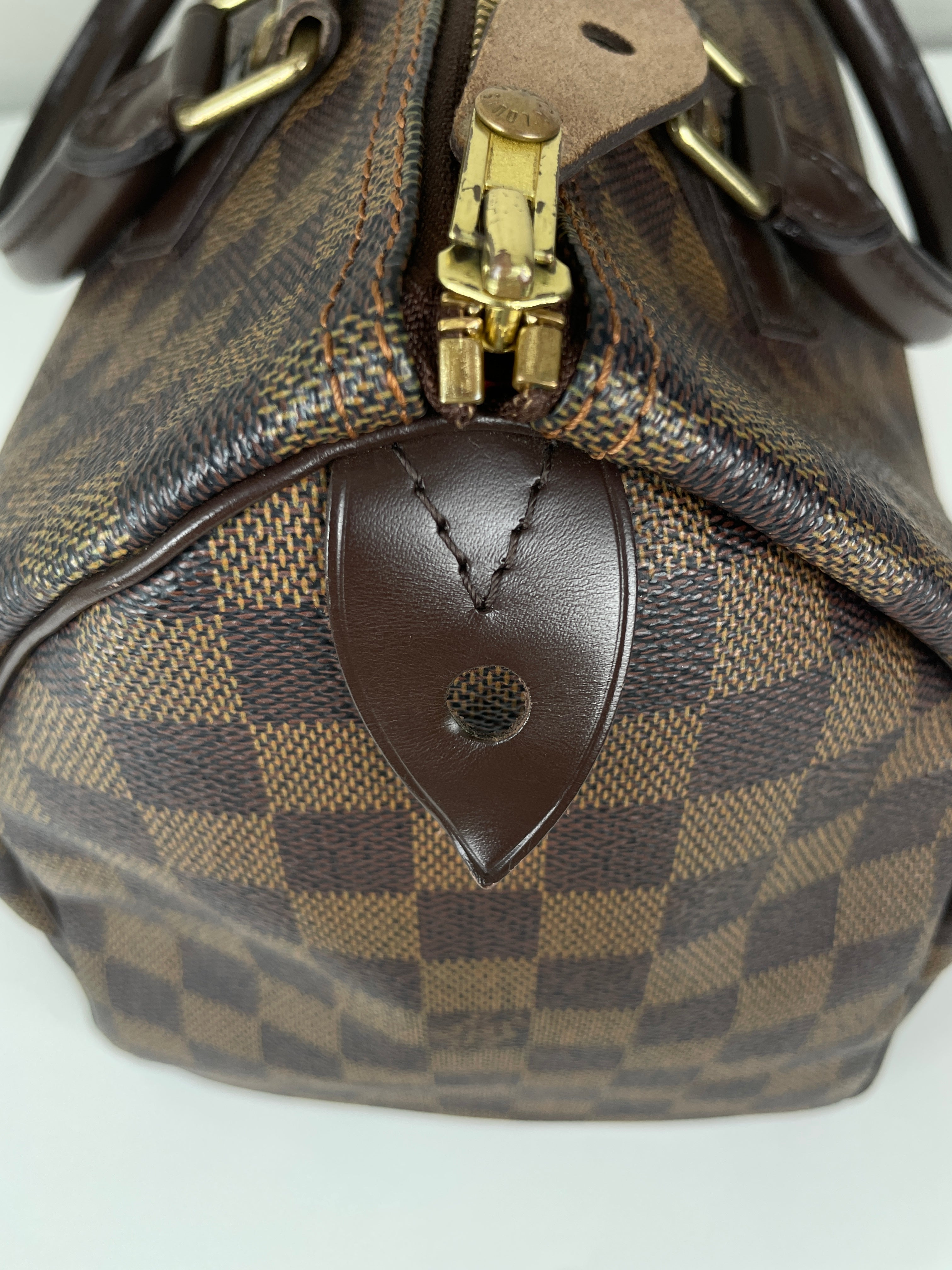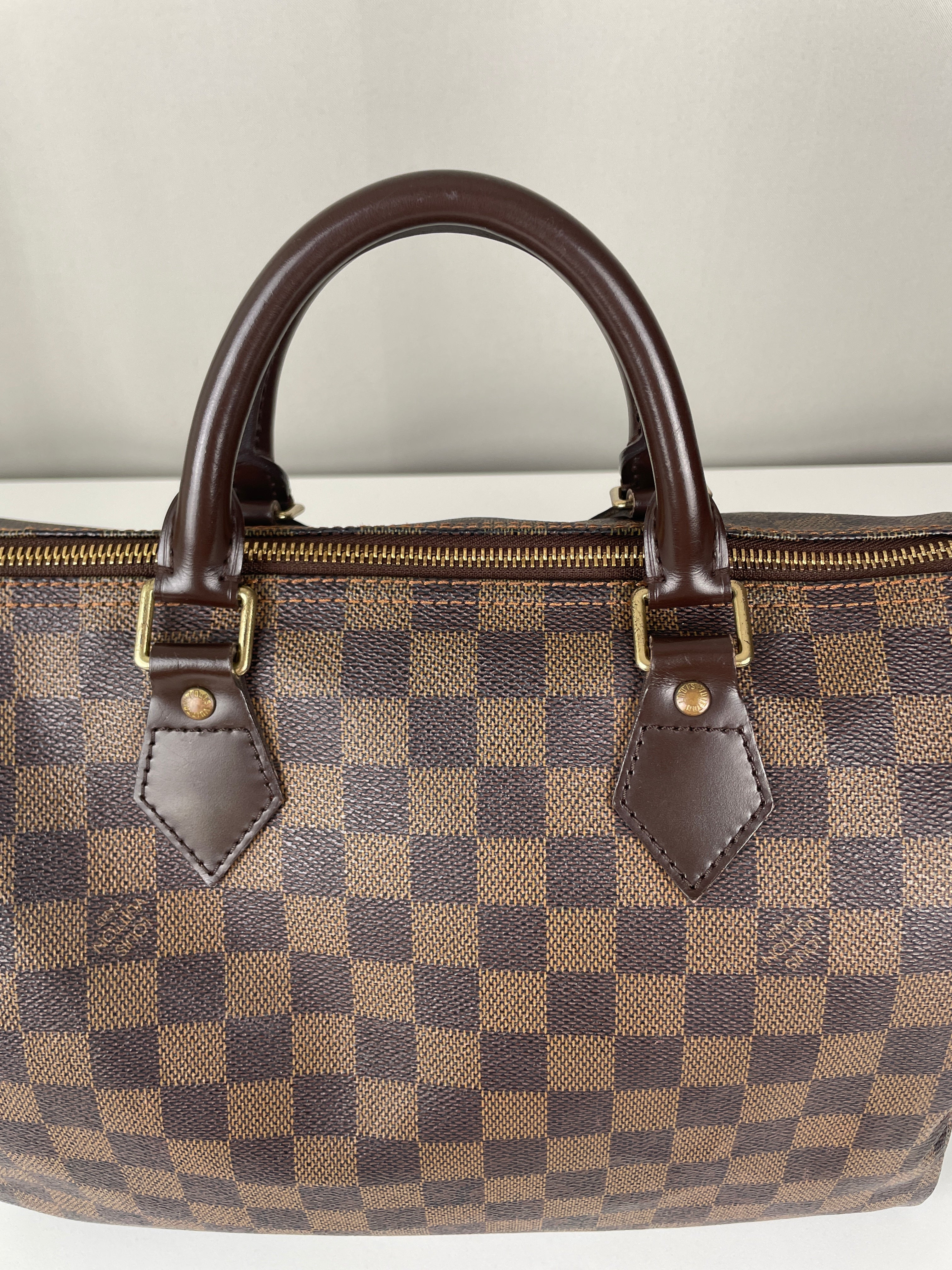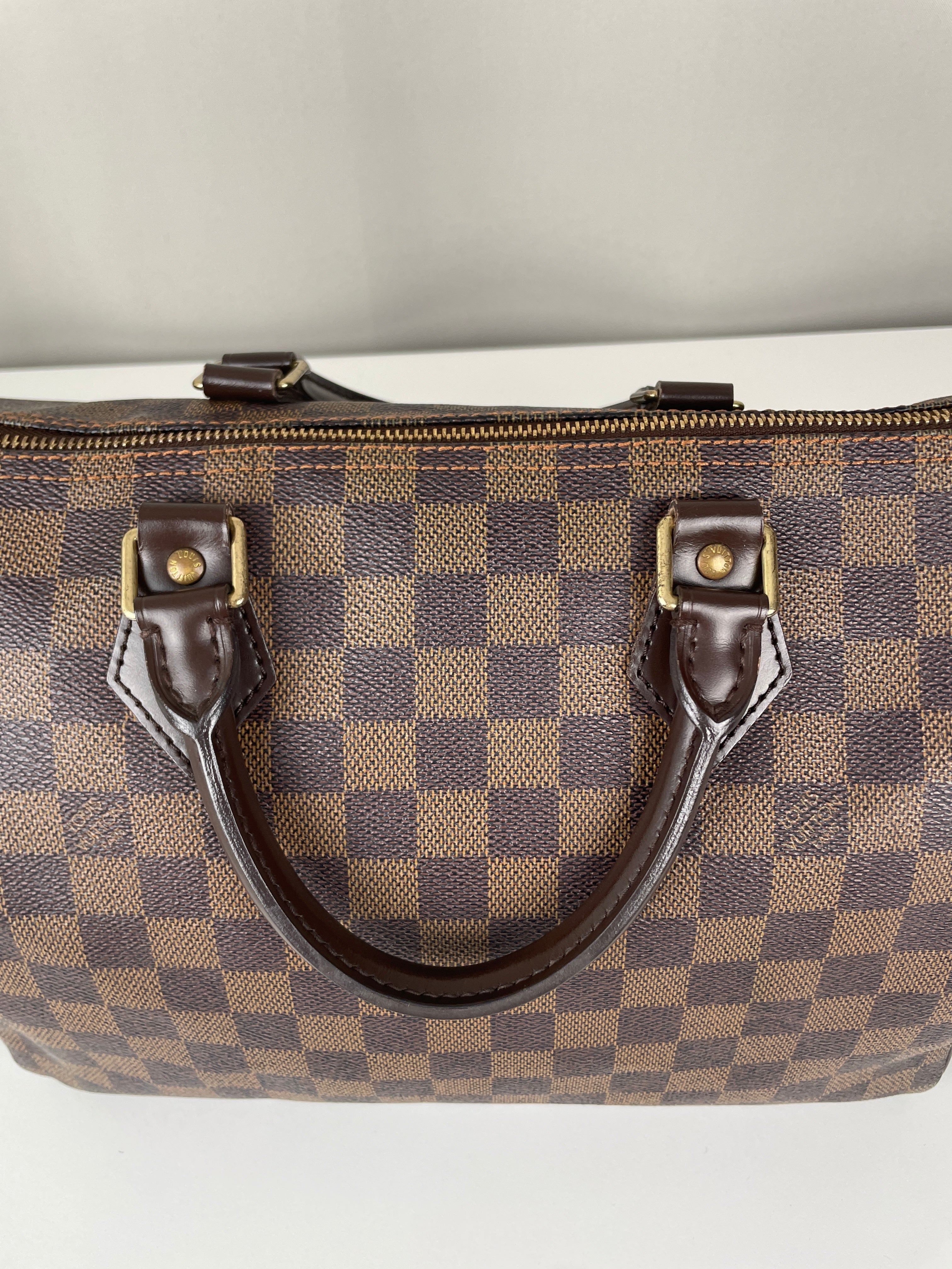 Ce sac Louis Vuitton Speedy 30 en toile damier ébène est un favori intemporel de 2007. Léger mais spacieux, il est idéal pour transporter tous vos essentiels avec style. Son motif à carreaux signature ajoute une touche moderne, et le sac reste en belle forme, avec seulement de légers signes d'usure. Un classique fiable qui ne se démode jamais parfait pour les collectionneurs et les passionnées de mode. Ce sac de luxe d'occasion met en valeur le savoir-faire exceptionnel qui fait la renommée de Louis Vuitton.