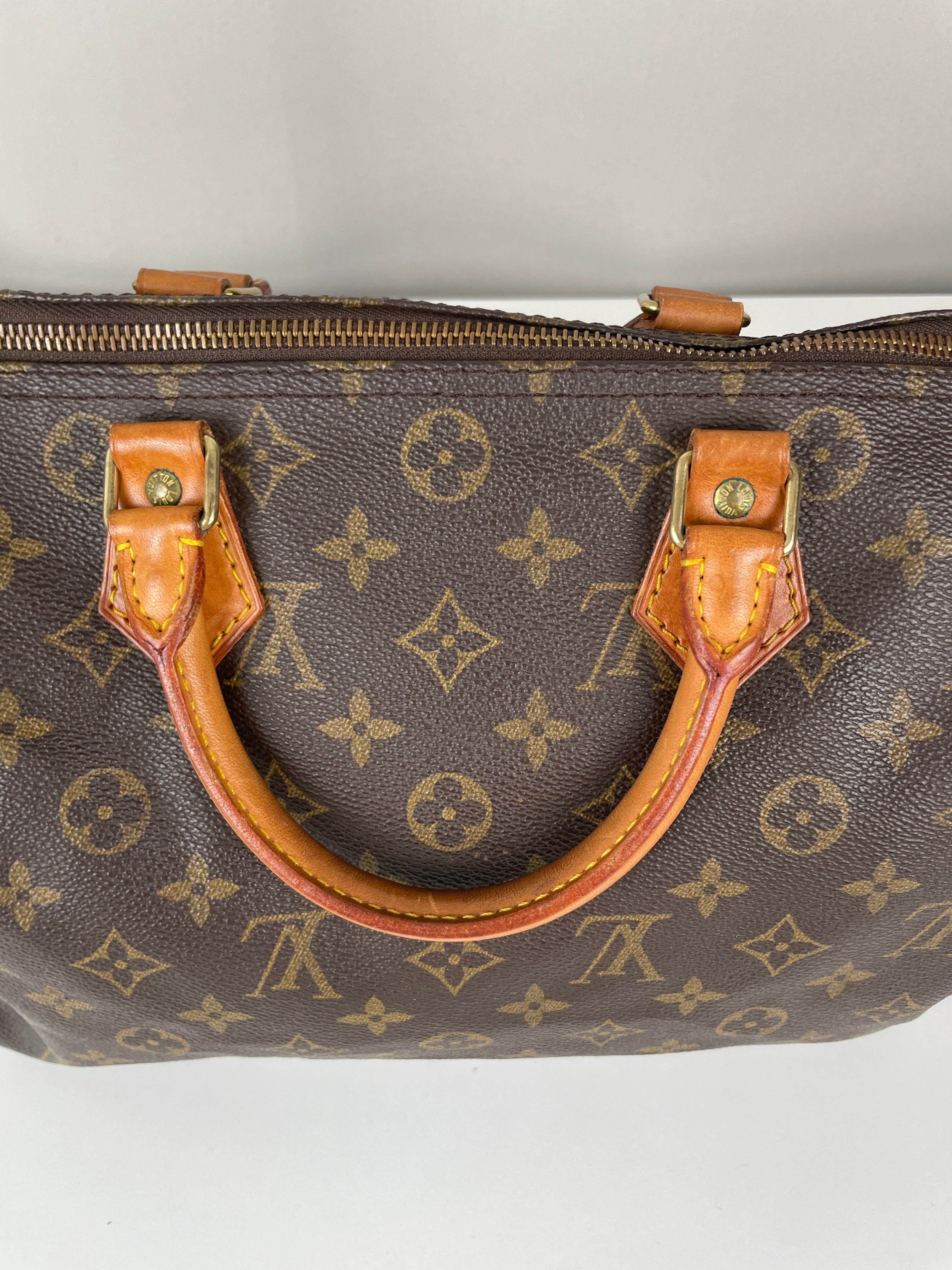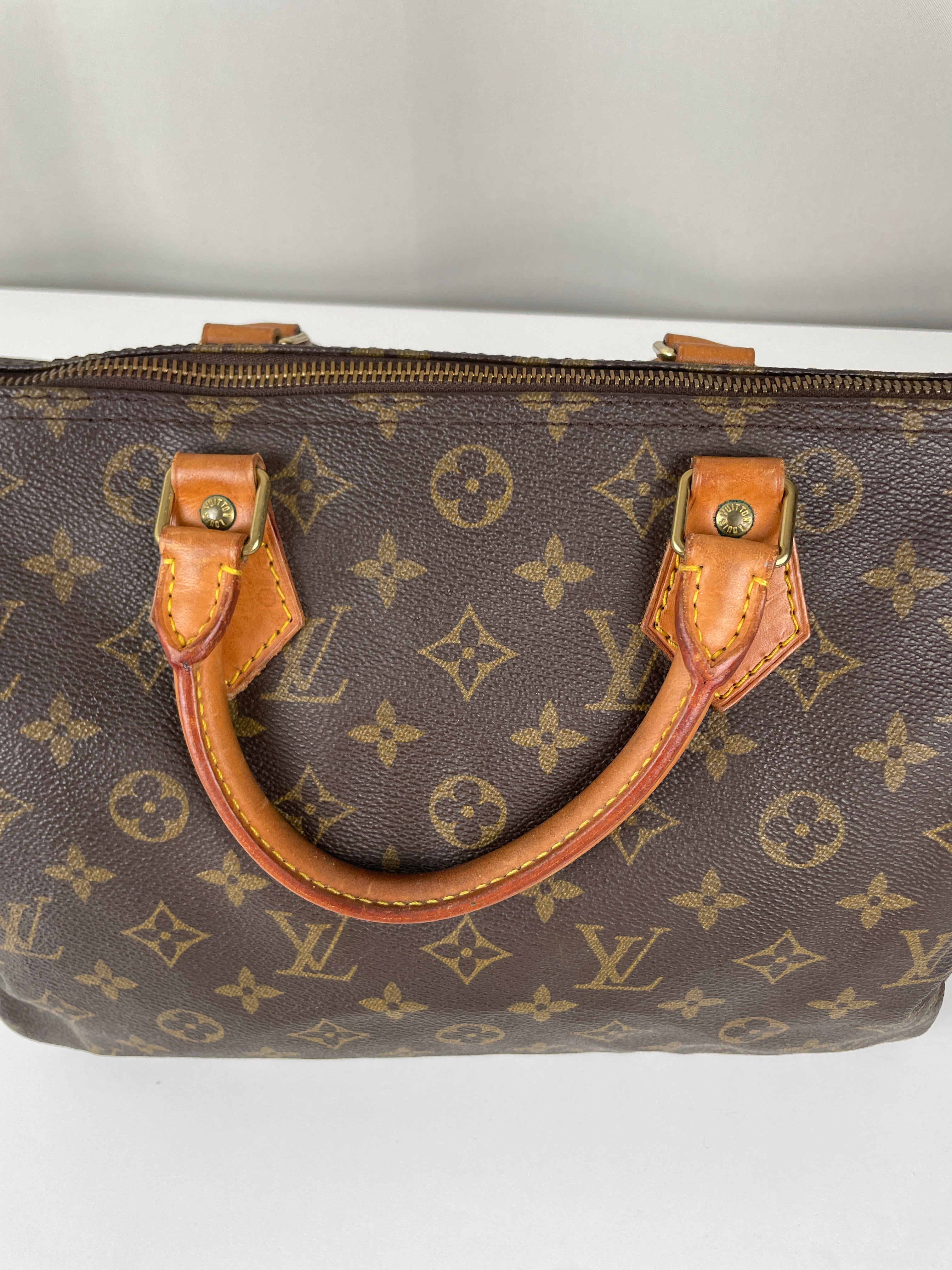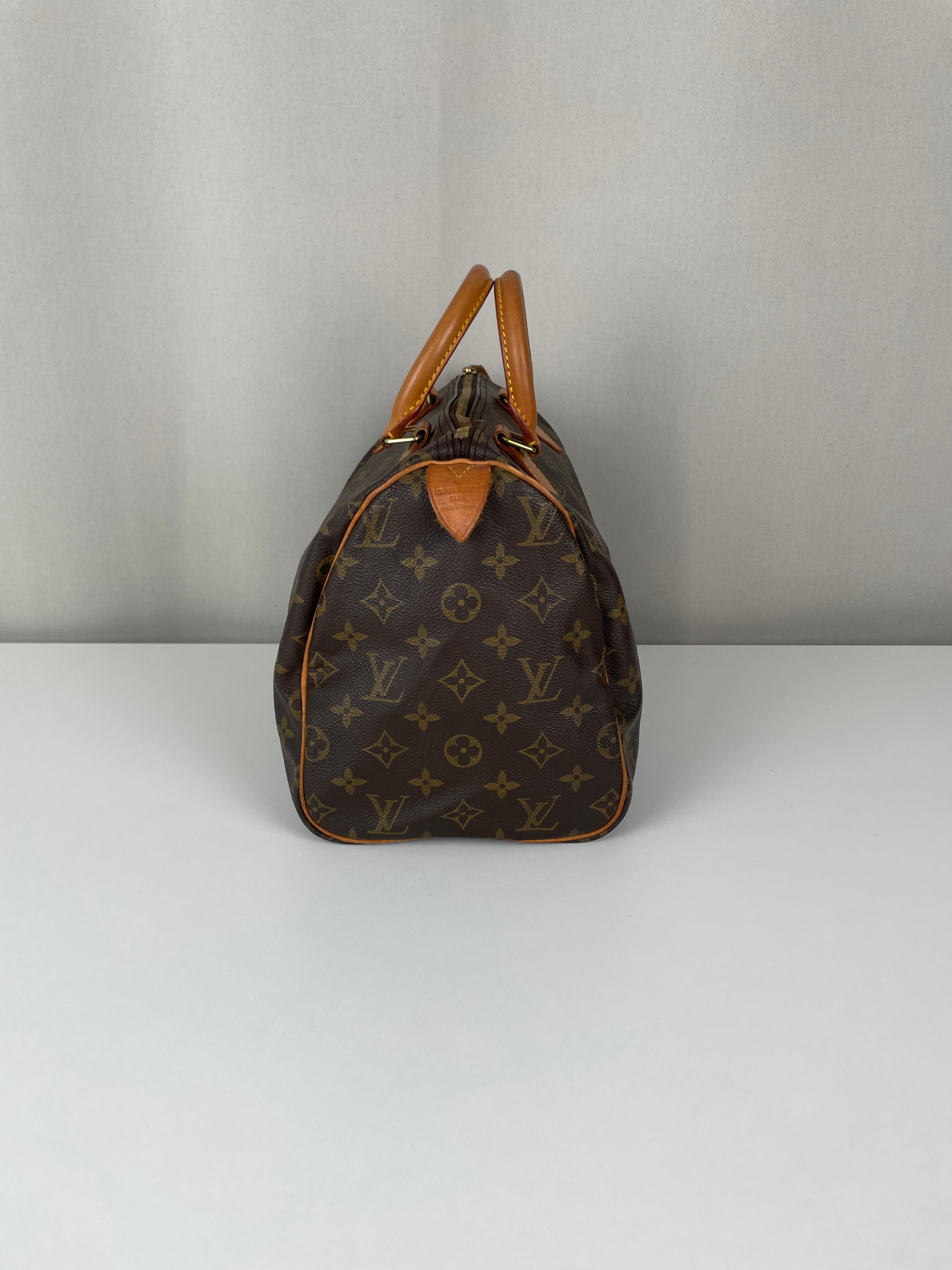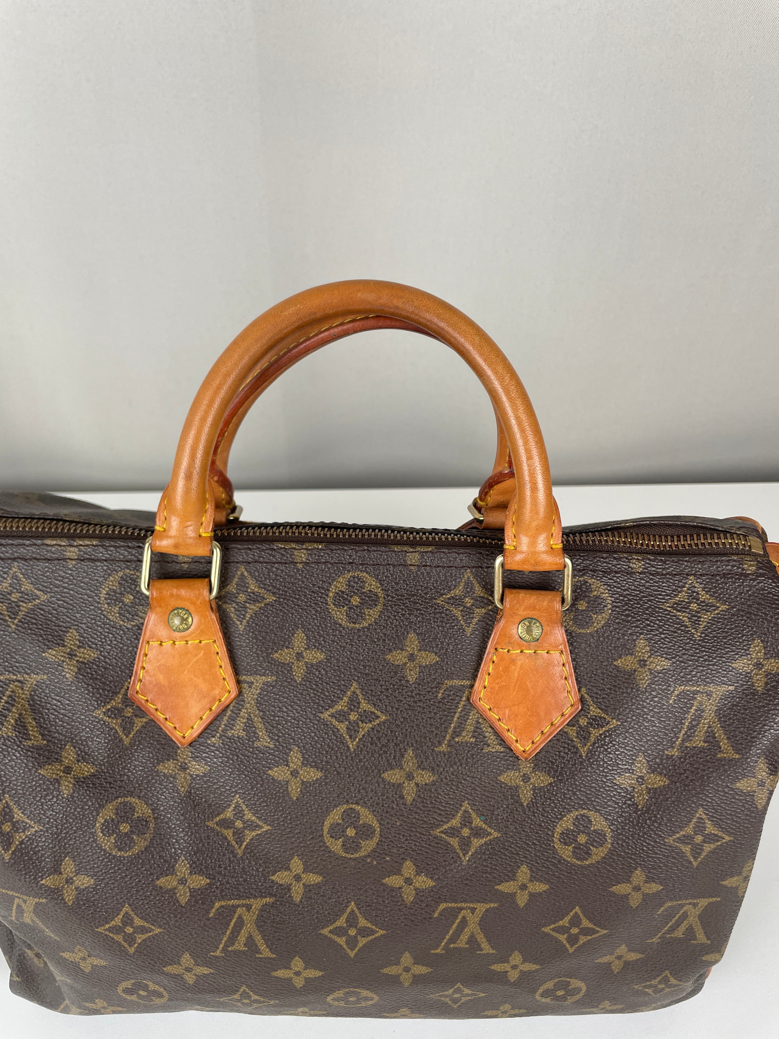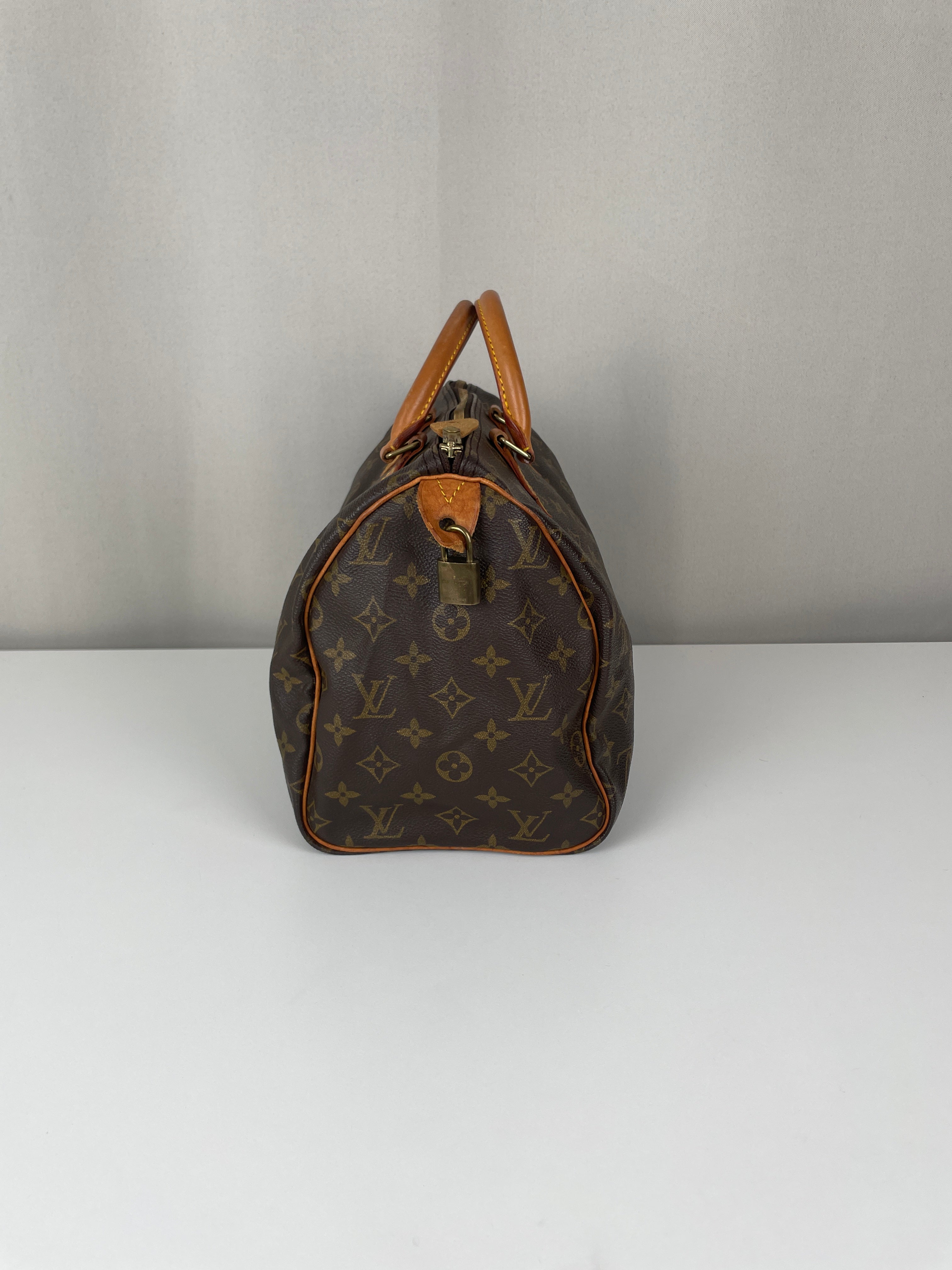 Ce sac Louis Vuitton Speedy 30 en toile monogram est une pièce vintage intemporelle de 1992 qui incarne l'élégance classique. La silhouette iconique du speedy avec le motif monogram signature en fait un choix convoité pour les collectionneurs et les passionnées de mode. Ce sac de luxe d'occasion met en valeur le savoir-faire exceptionnel qui fait la renommée de Louis Vuitton.