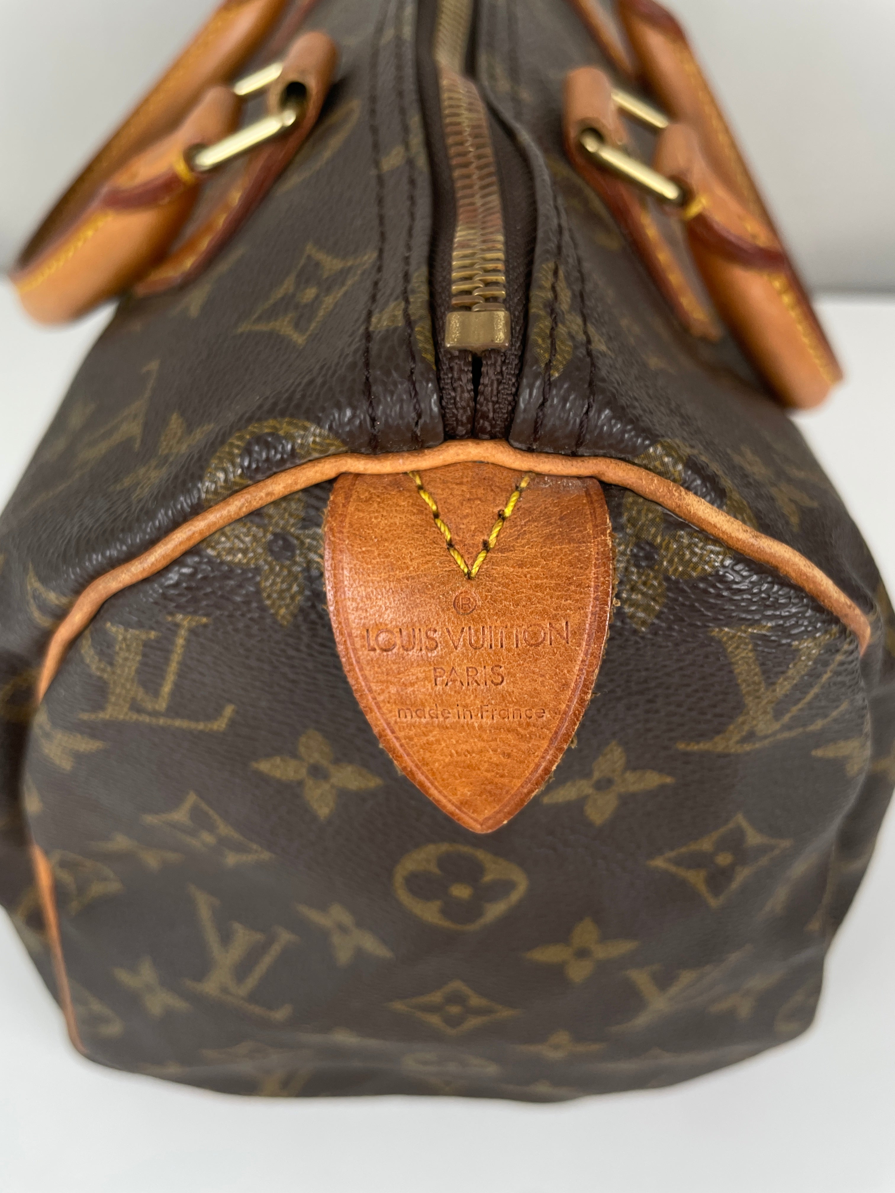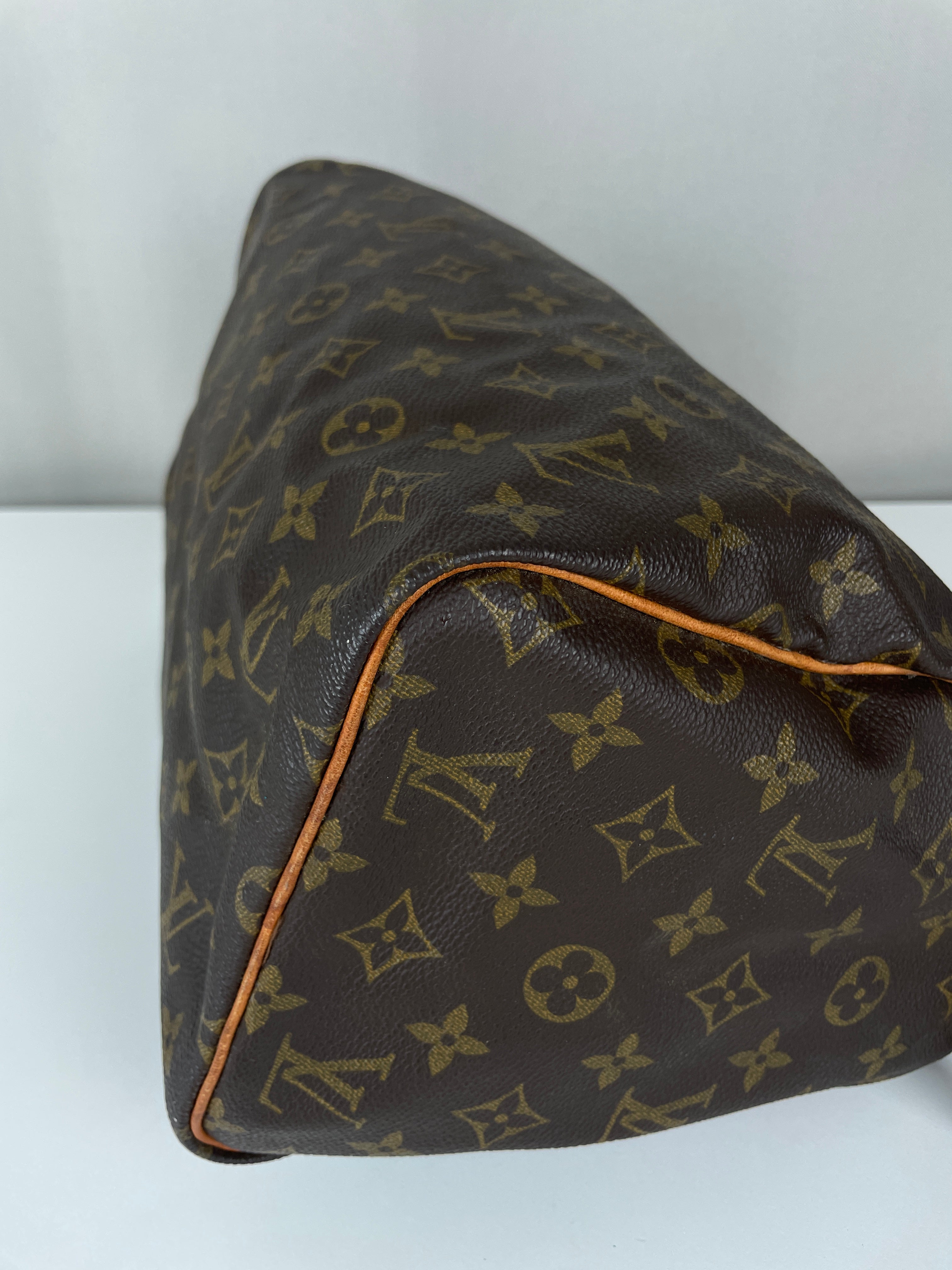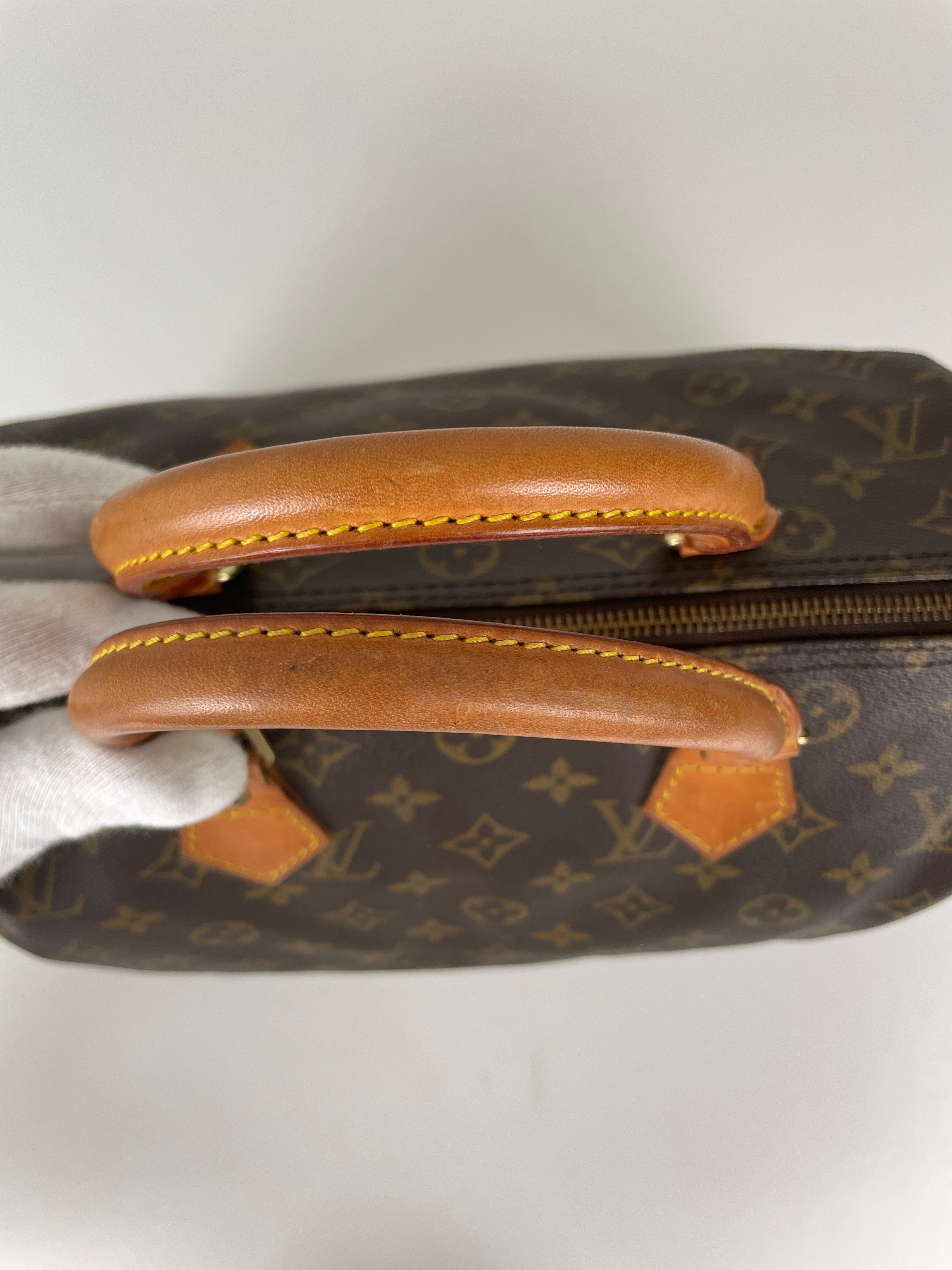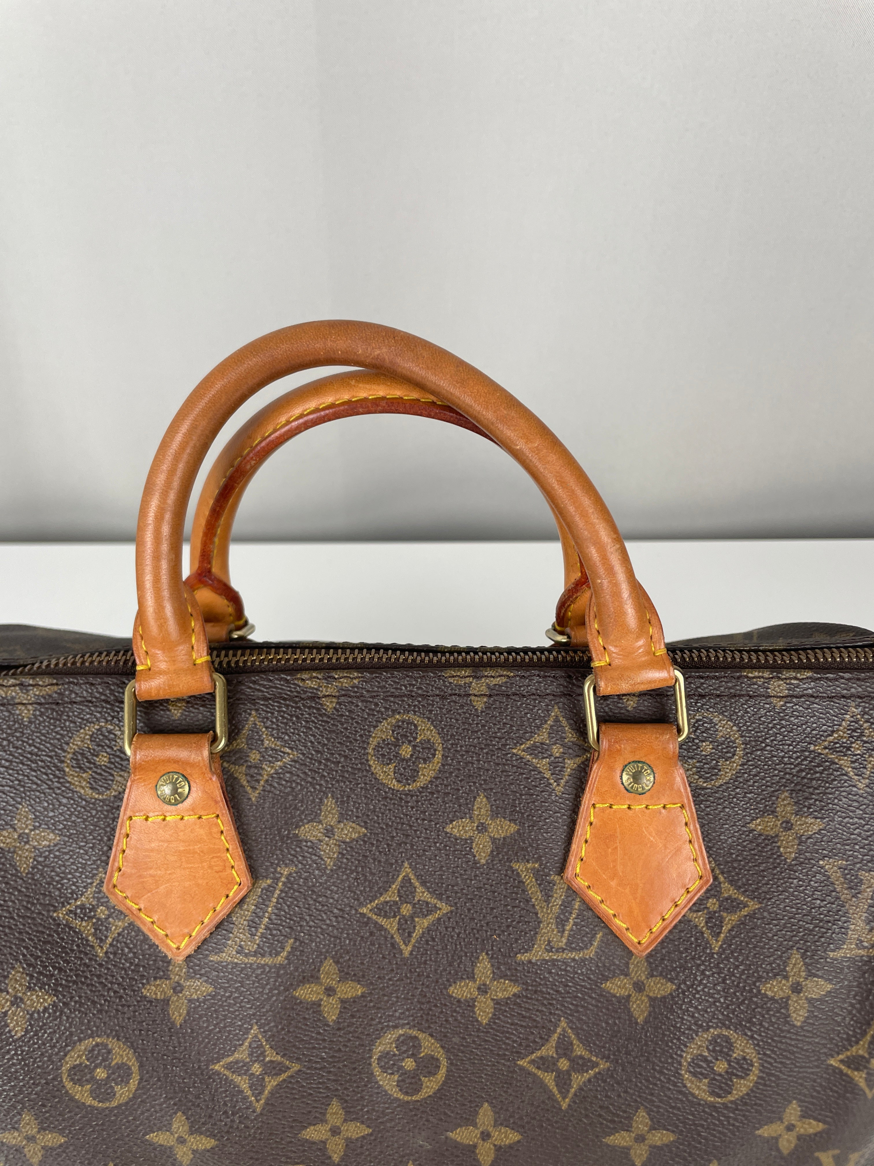 Ce sac Louis Vuitton Speedy 30 en toile monogram est une pièce vintage intemporelle de 1992 qui incarne l'élégance classique. La silhouette iconique du speedy avec le motif monogram signature en fait un choix convoité pour les collectionneurs et les passionnées de mode. Ce sac de luxe d'occasion met en valeur le savoir-faire exceptionnel qui fait la renommée de Louis Vuitton.