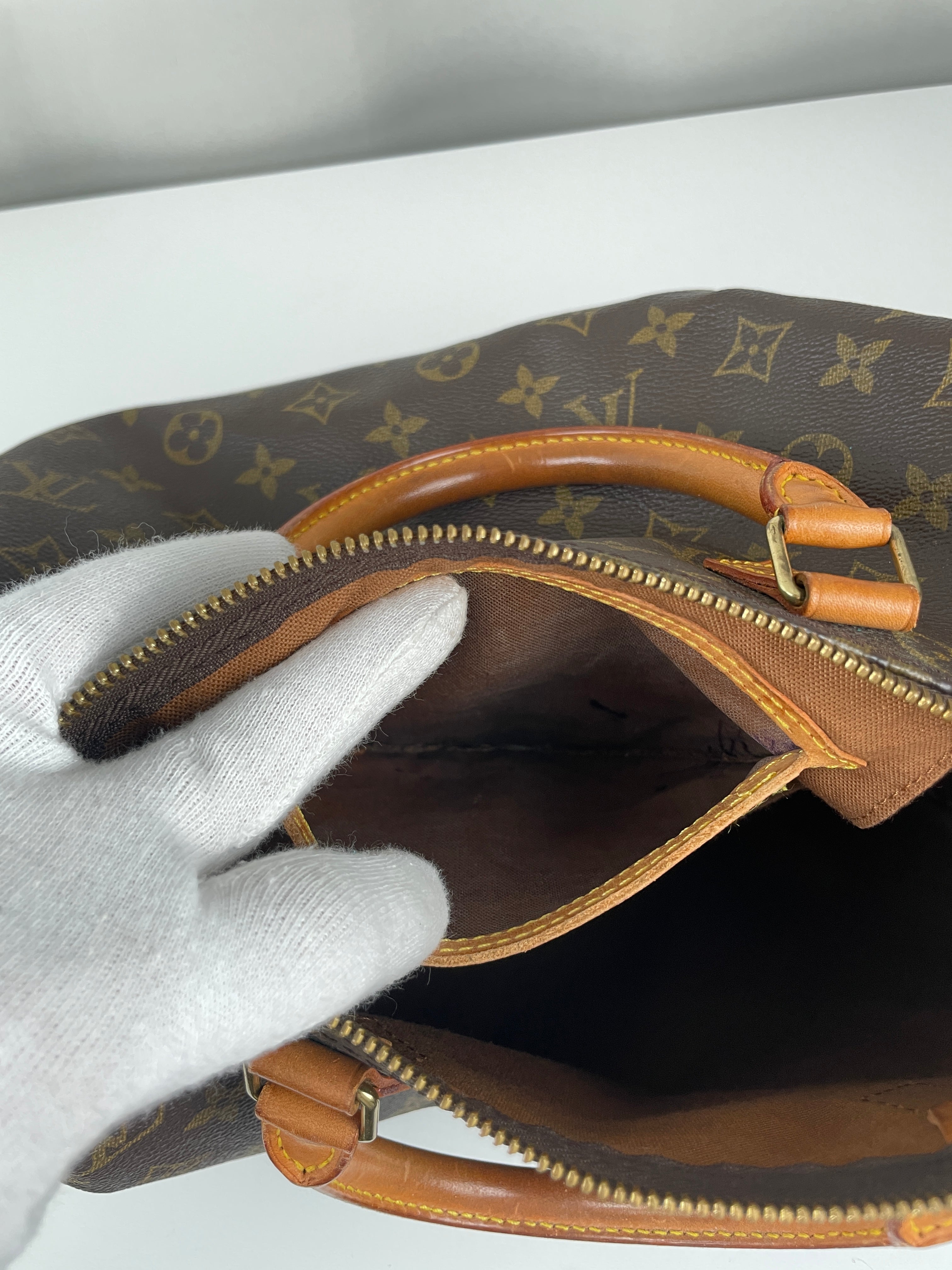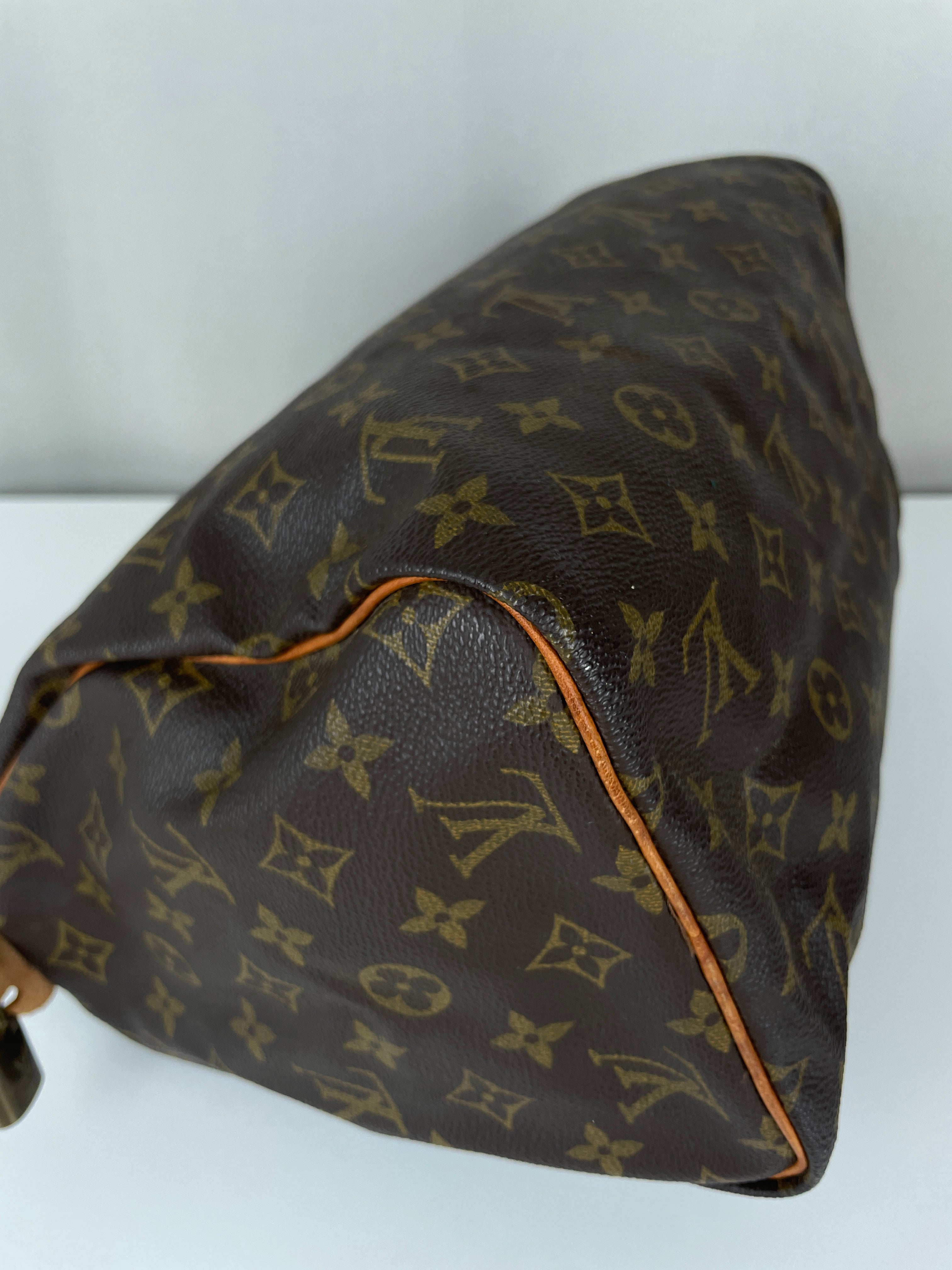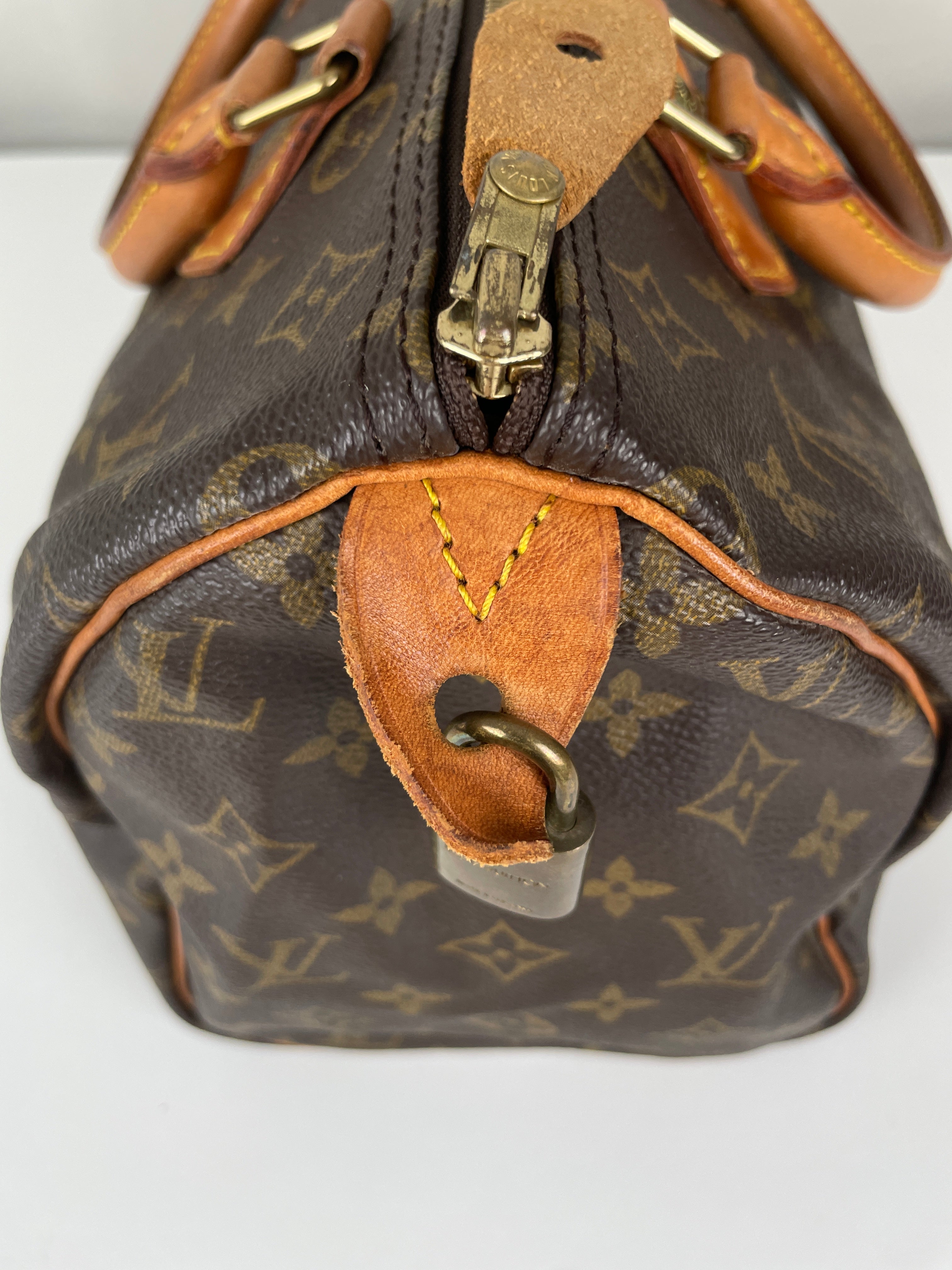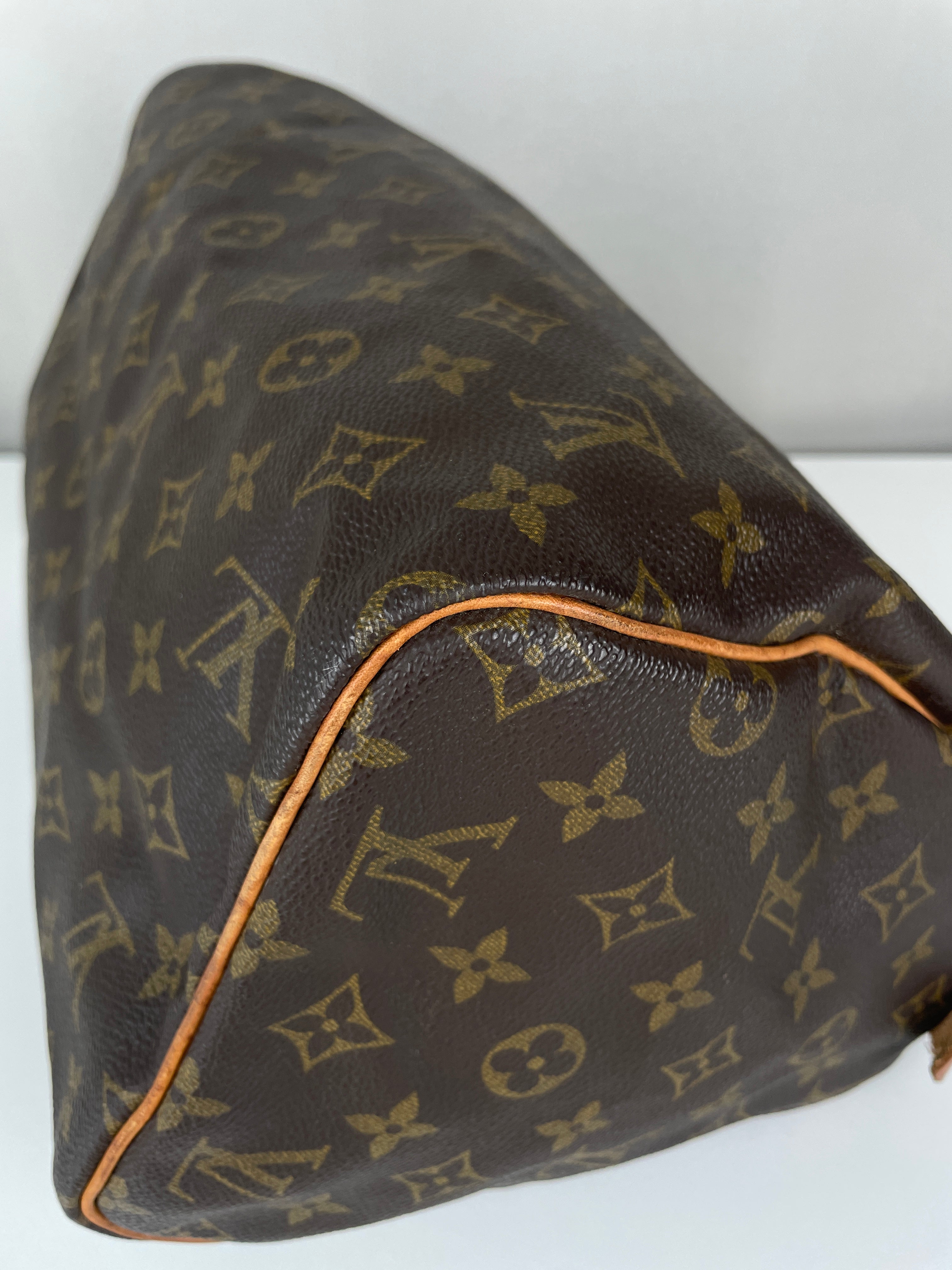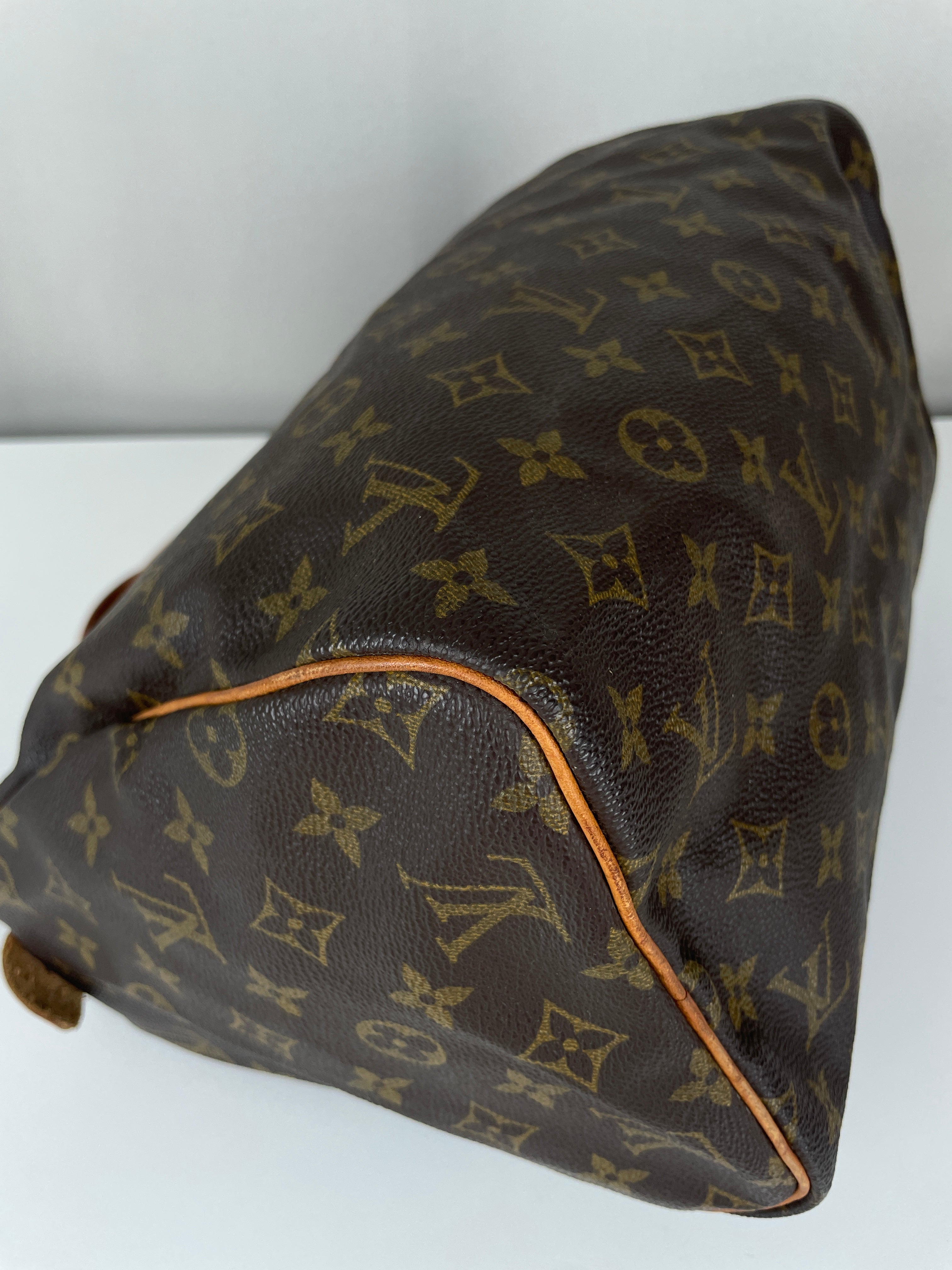 Ce sac Louis Vuitton Speedy 30 en toile monogram est une pièce vintage intemporelle de 1992 qui incarne l'élégance classique. La silhouette iconique du speedy avec le motif monogram signature en fait un choix convoité pour les collectionneurs et les passionnées de mode. Ce sac de luxe d'occasion met en valeur le savoir-faire exceptionnel qui fait la renommée de Louis Vuitton.