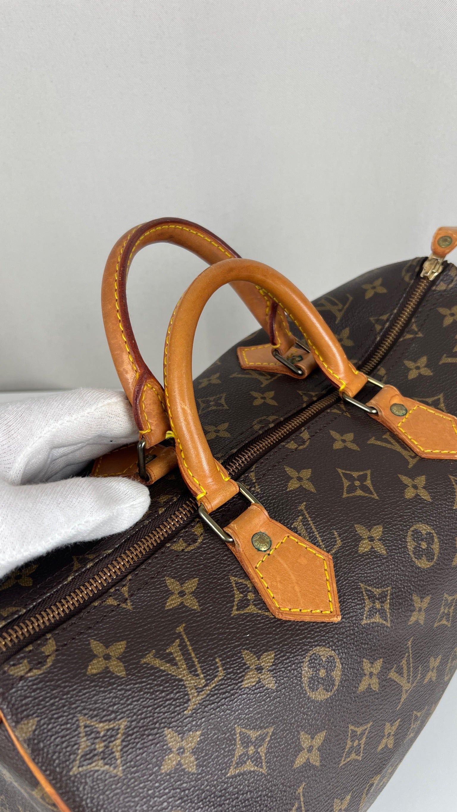Ce sac Louis Vuitton Speedy 35 Monogram est en bon état. La toile est en bon état. Les coins sont en bon état un peu frottés. Les parties en cuir sont tannées et en bon état. L'intérieur est en bon état, quelques petites traces très minimes. Un rivet est un peu oxydé. La partie en cuir pour tirer le zipper est un peu abîmée donc faites attention elle pourrait se casser à un moment donné. Cette partie est toujours fragile sur ces sacs.