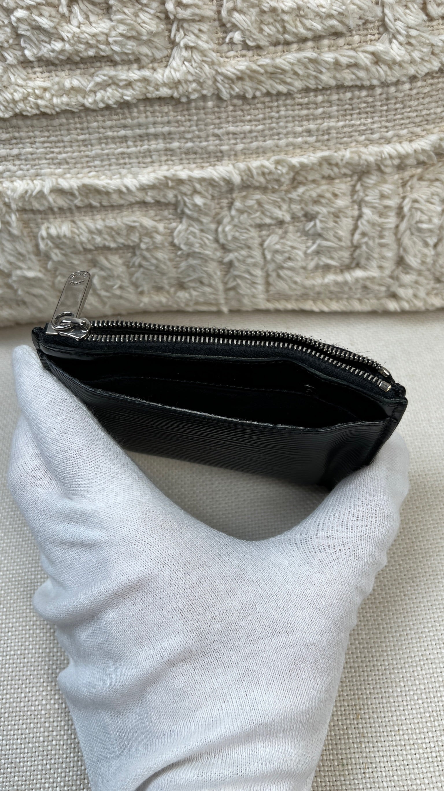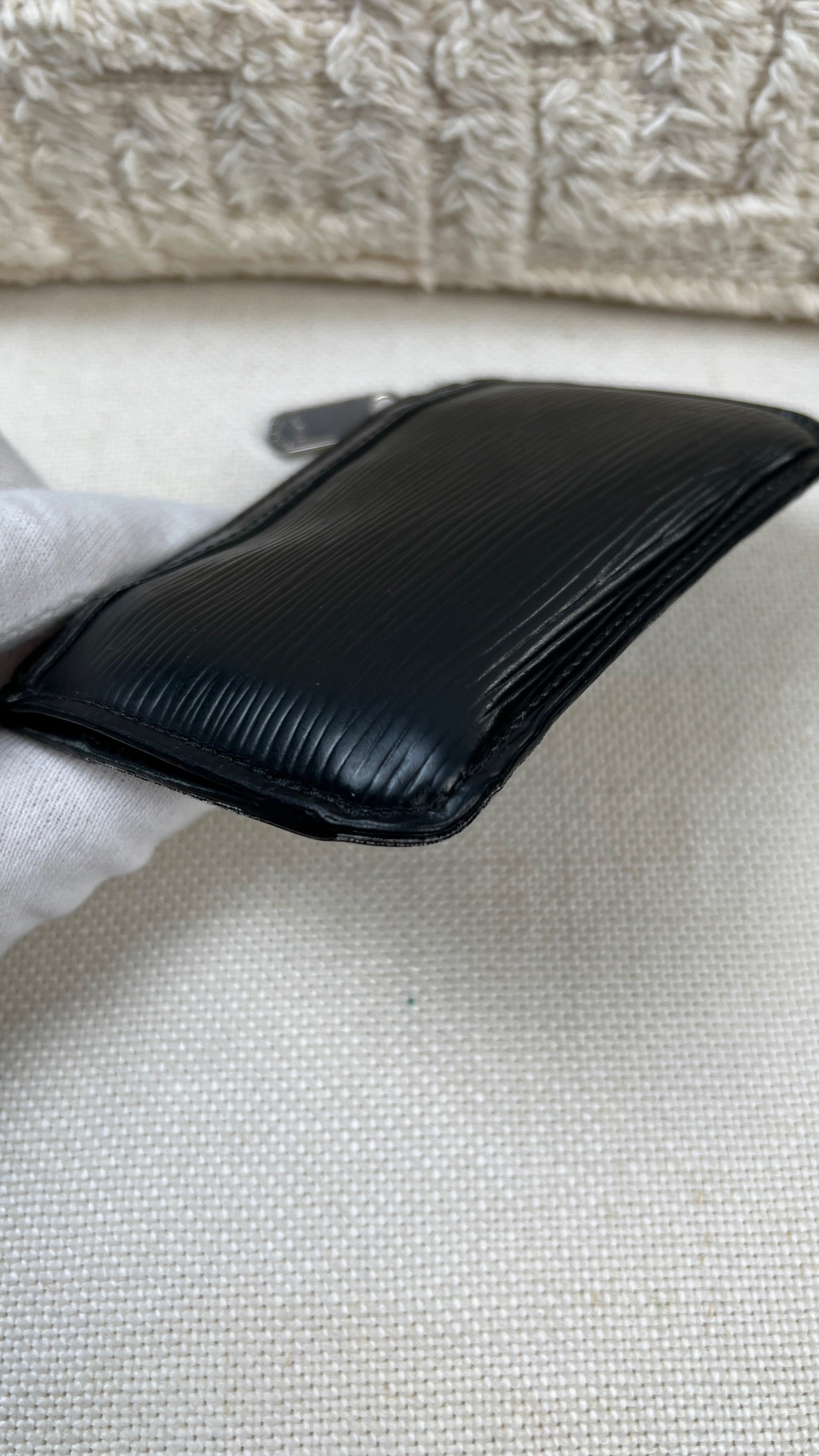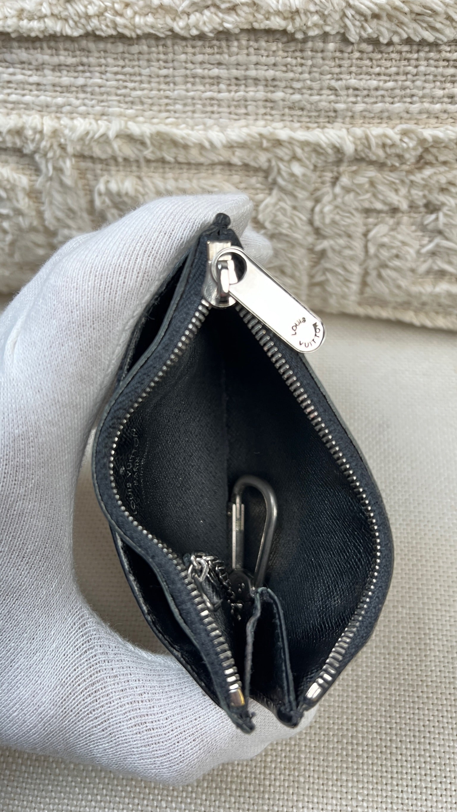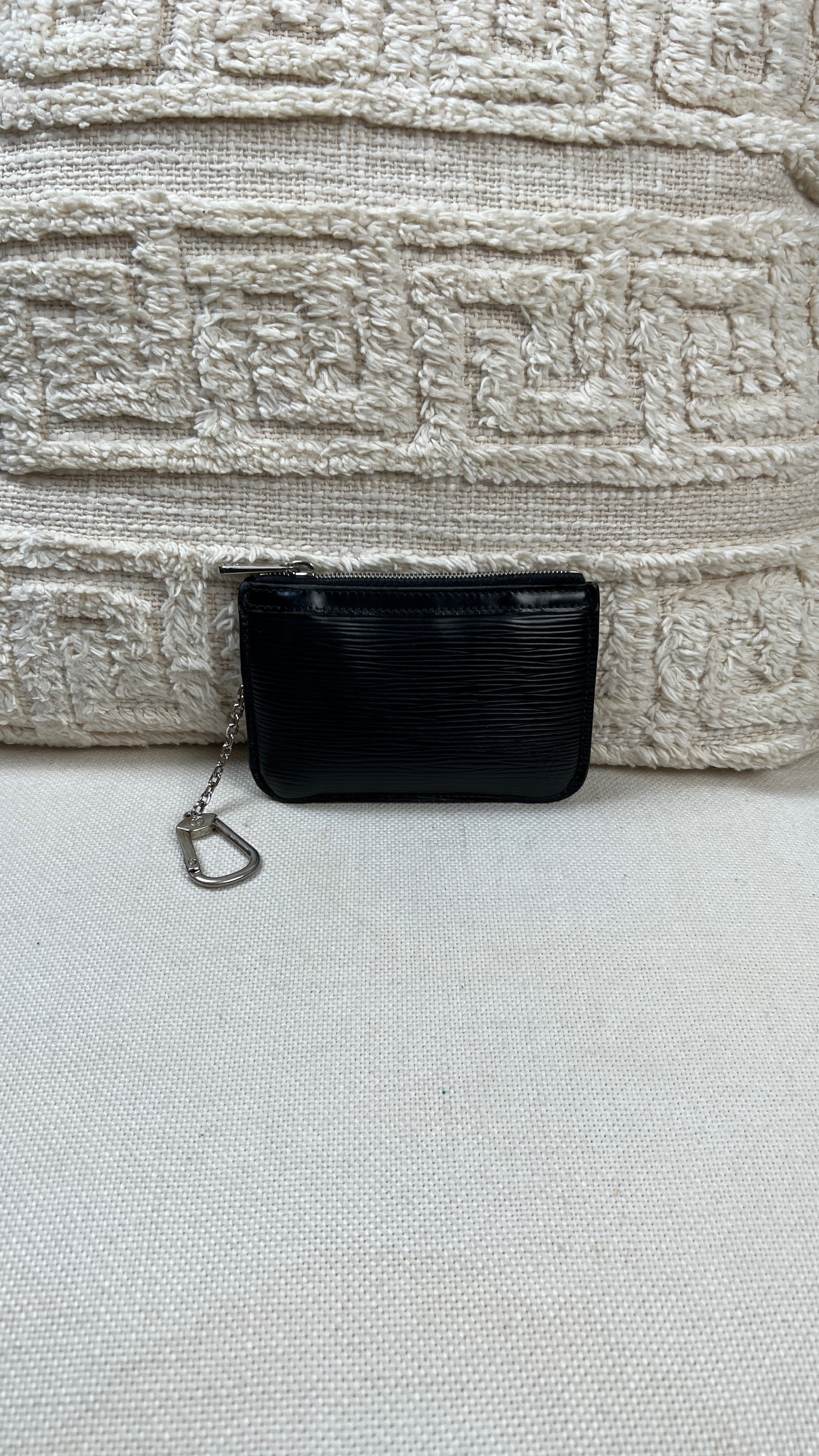 Ce Louis Vuitton Multiclé est en bon état. Le cuir est du cuir épi noir et il est en bon état. Les coins et les côtés sont un peu frottés et un peu usés. L'intérieur est en très bon état. La partie métallique présente de petites rayures.