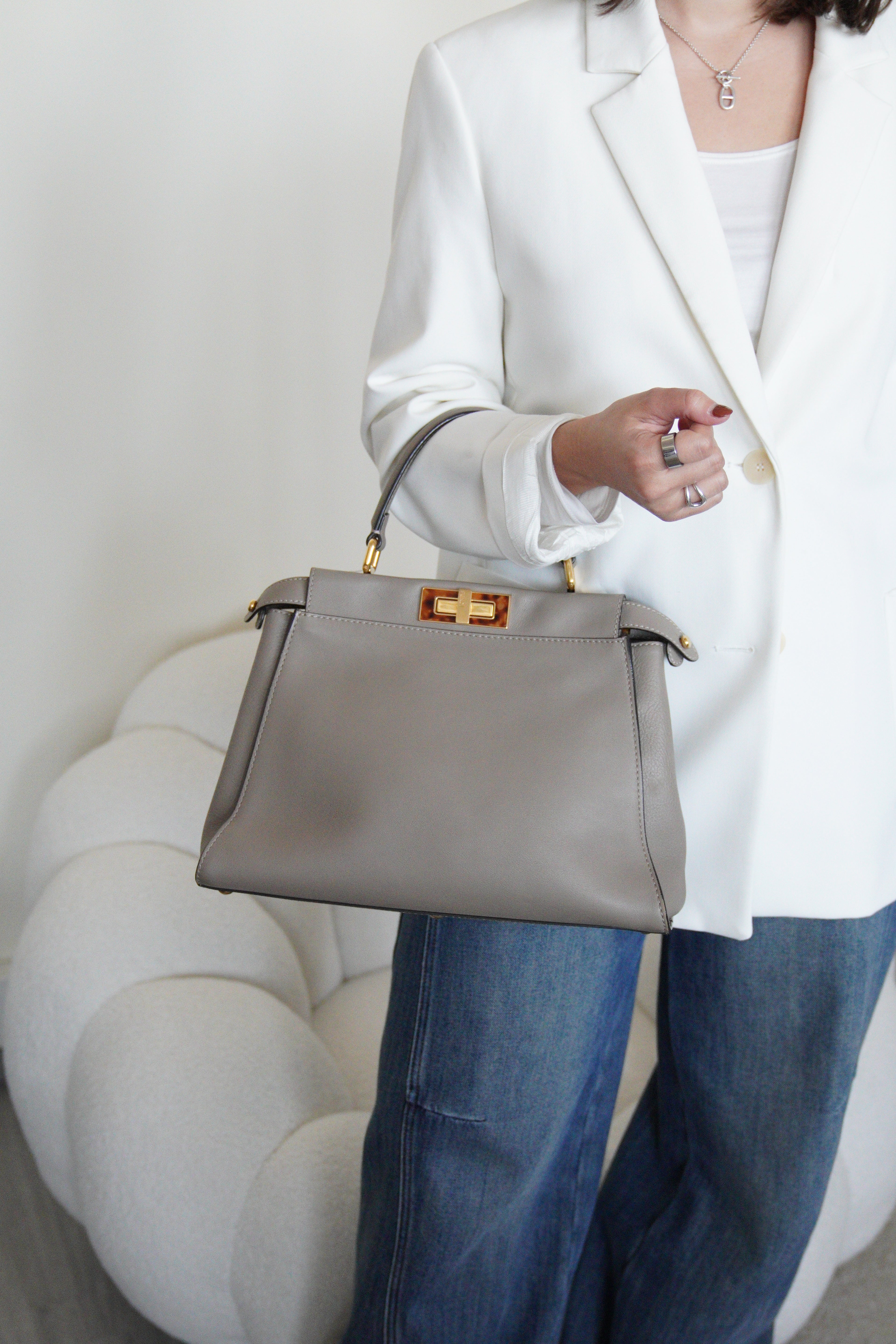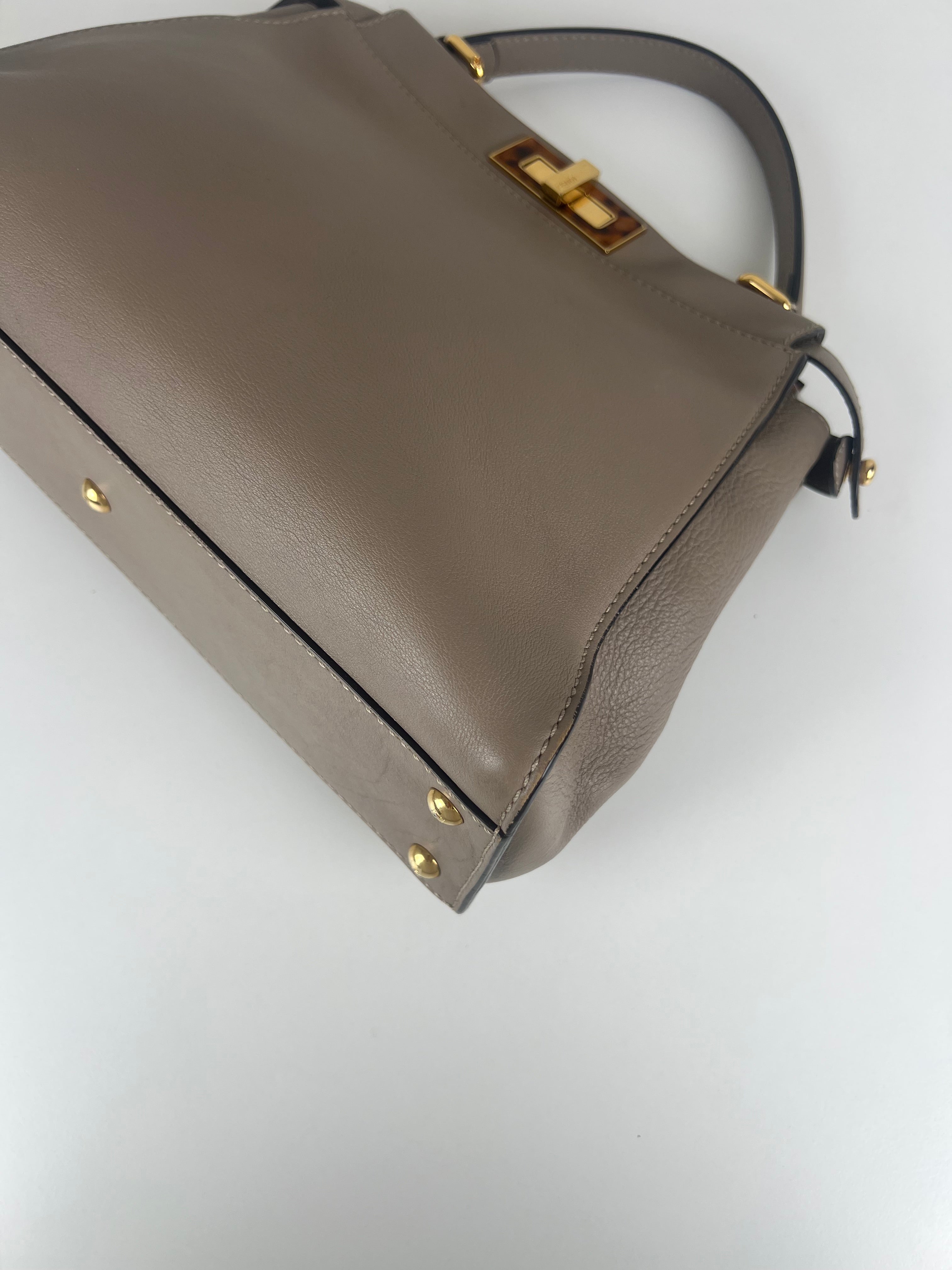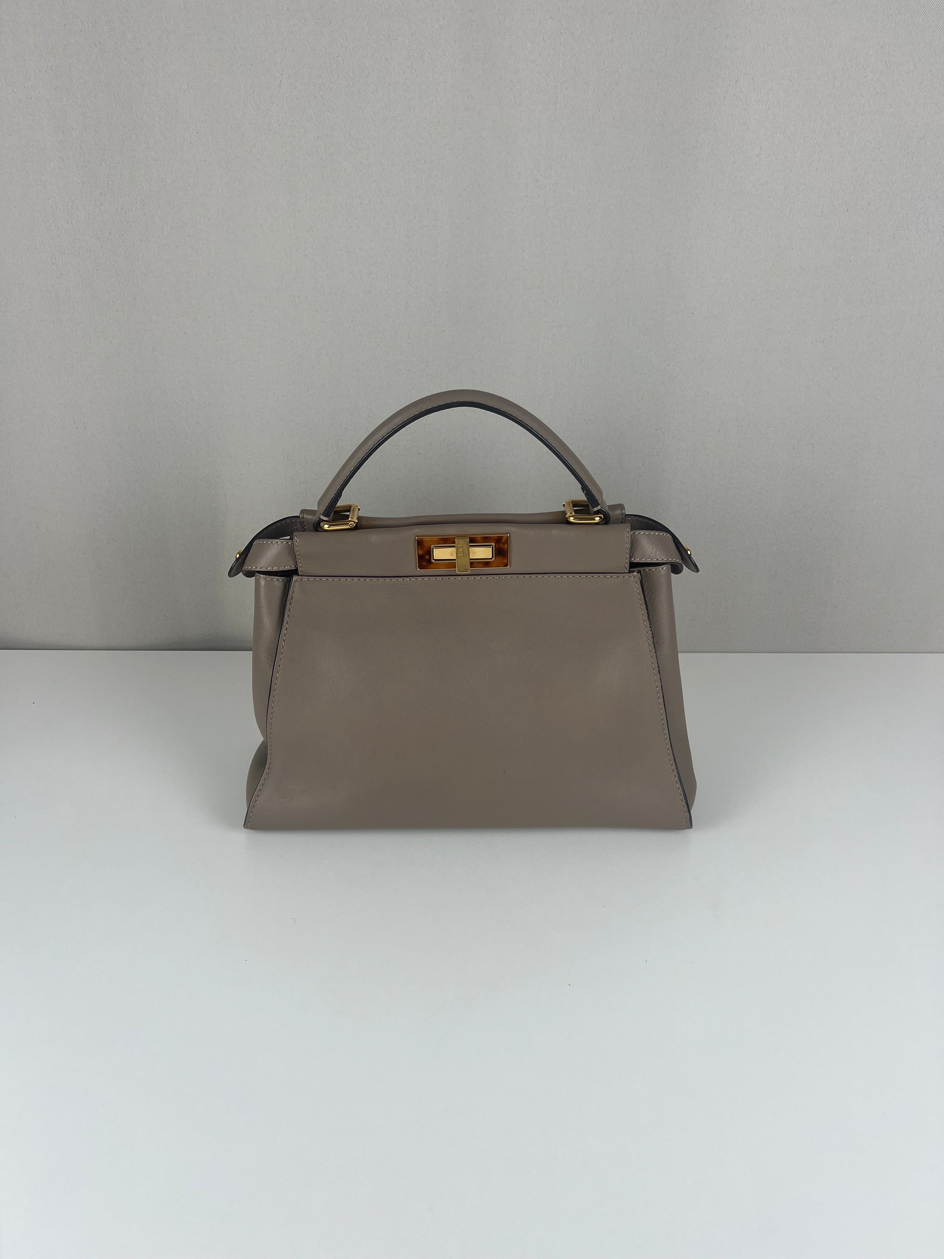 Sac Fendi Peekaboo en cuir taupe avec finitions dorées