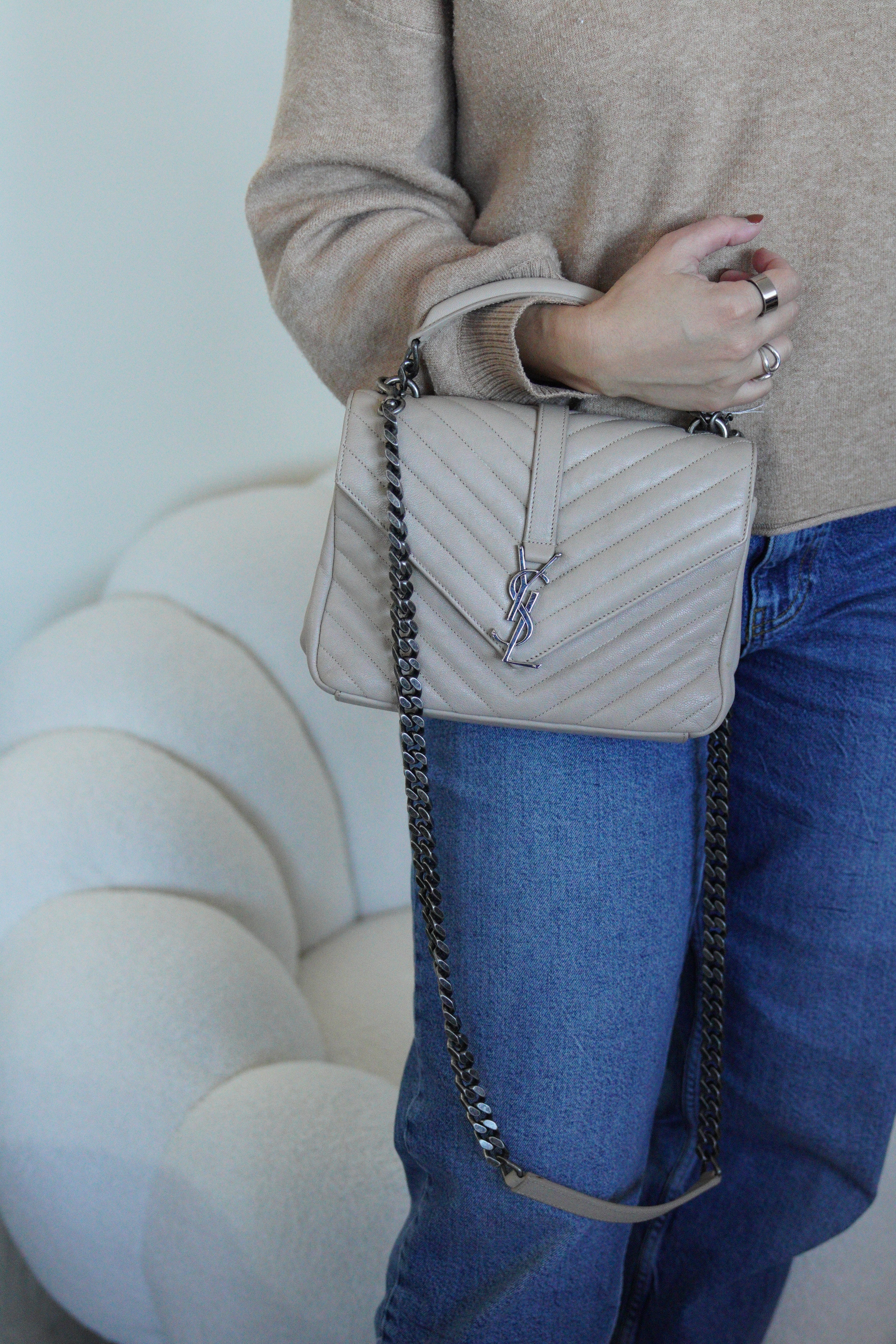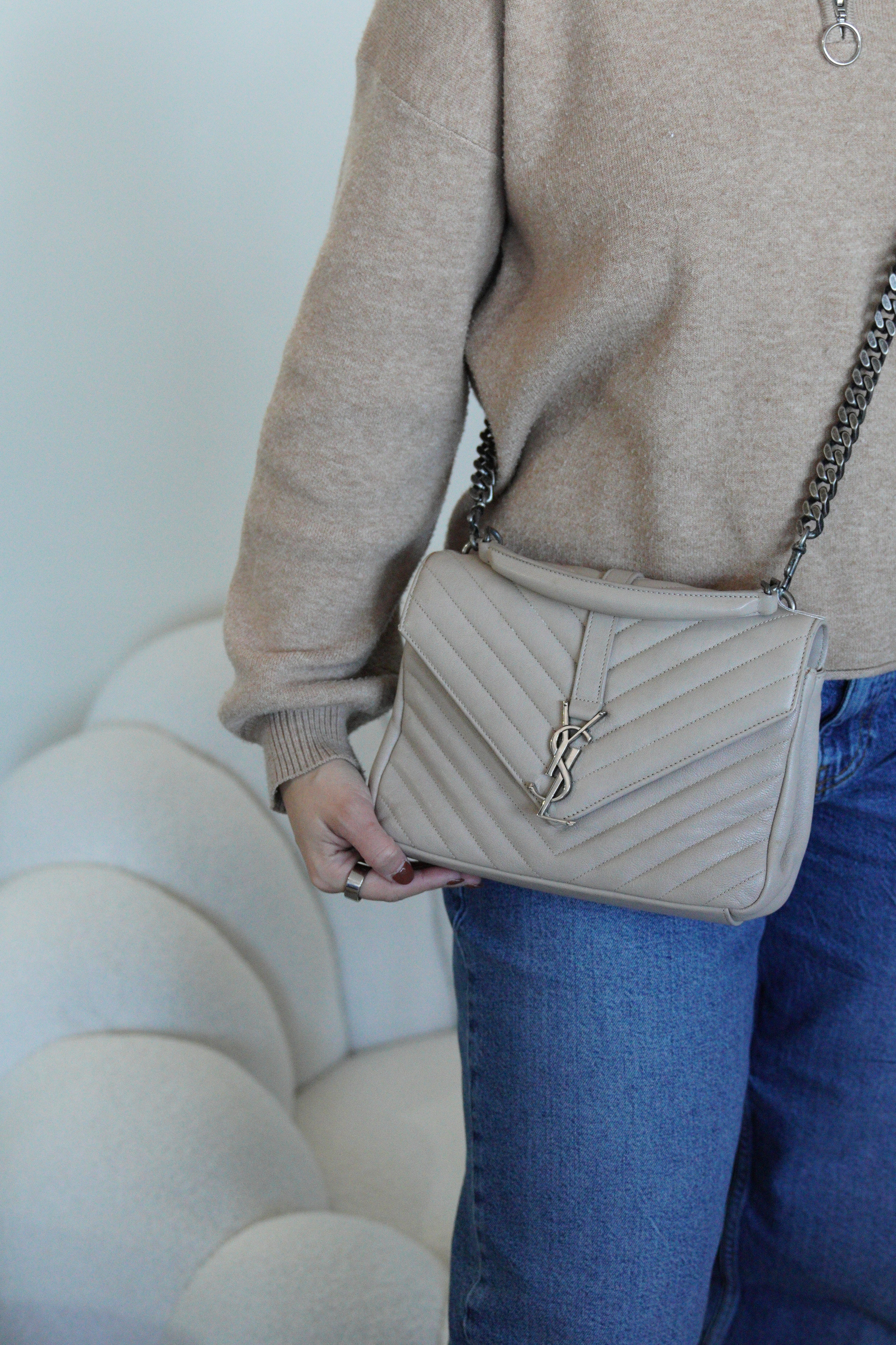 Sac Saint Laurent Collège small cuir beige