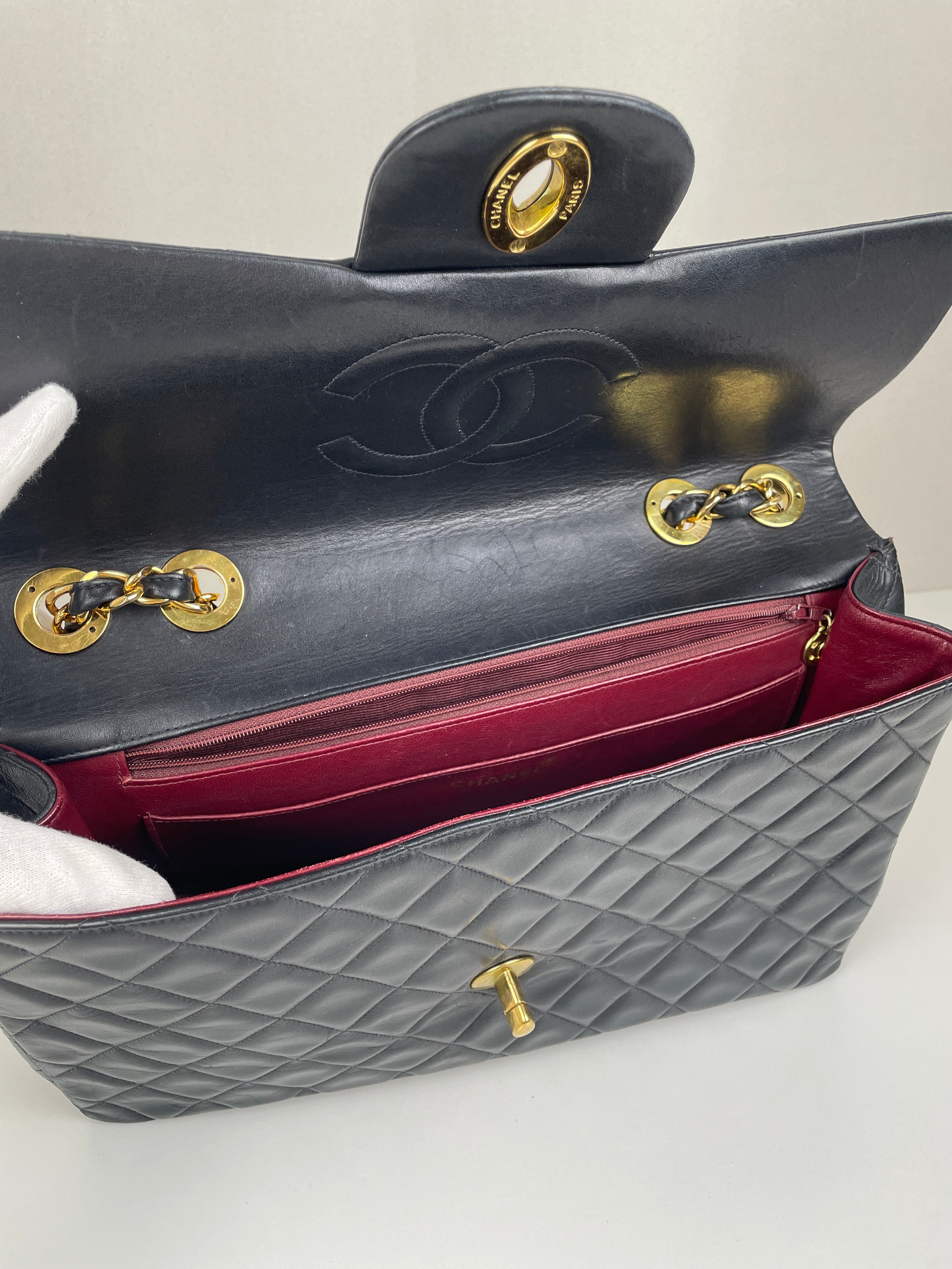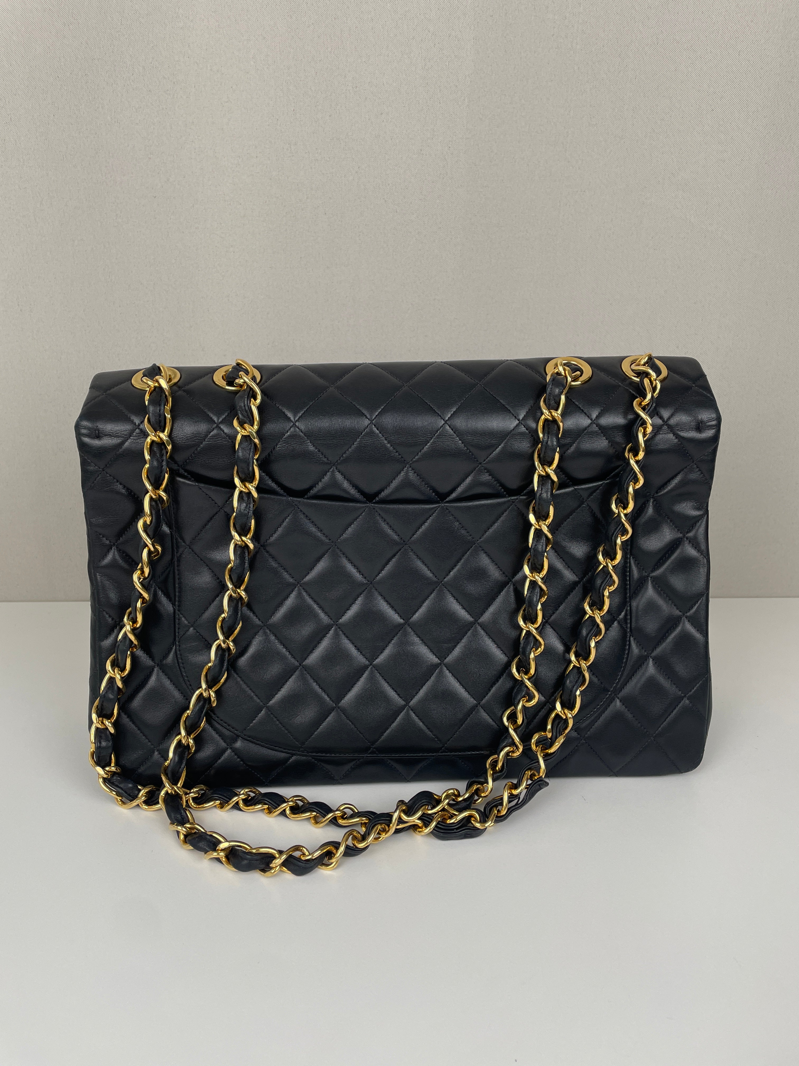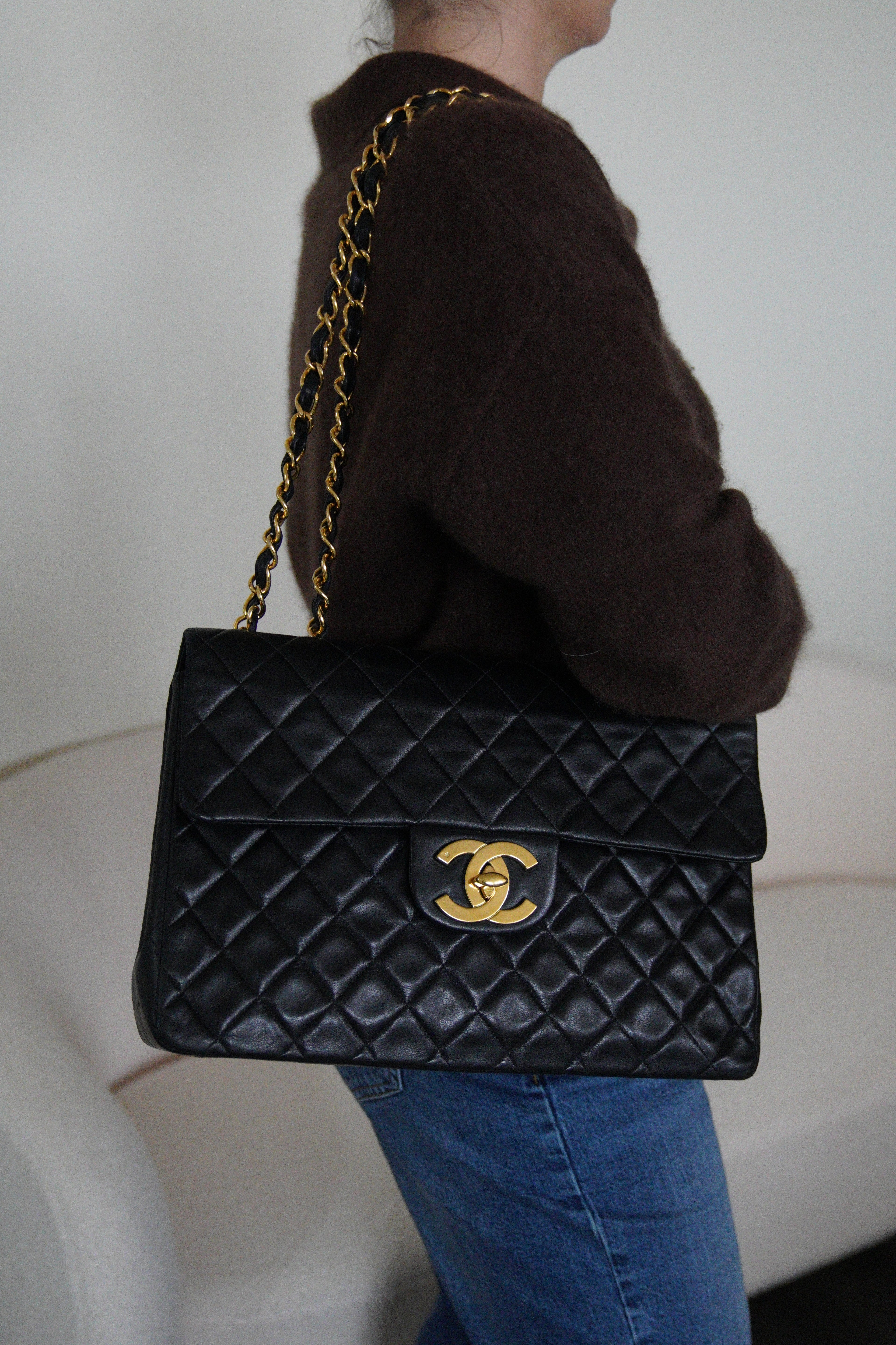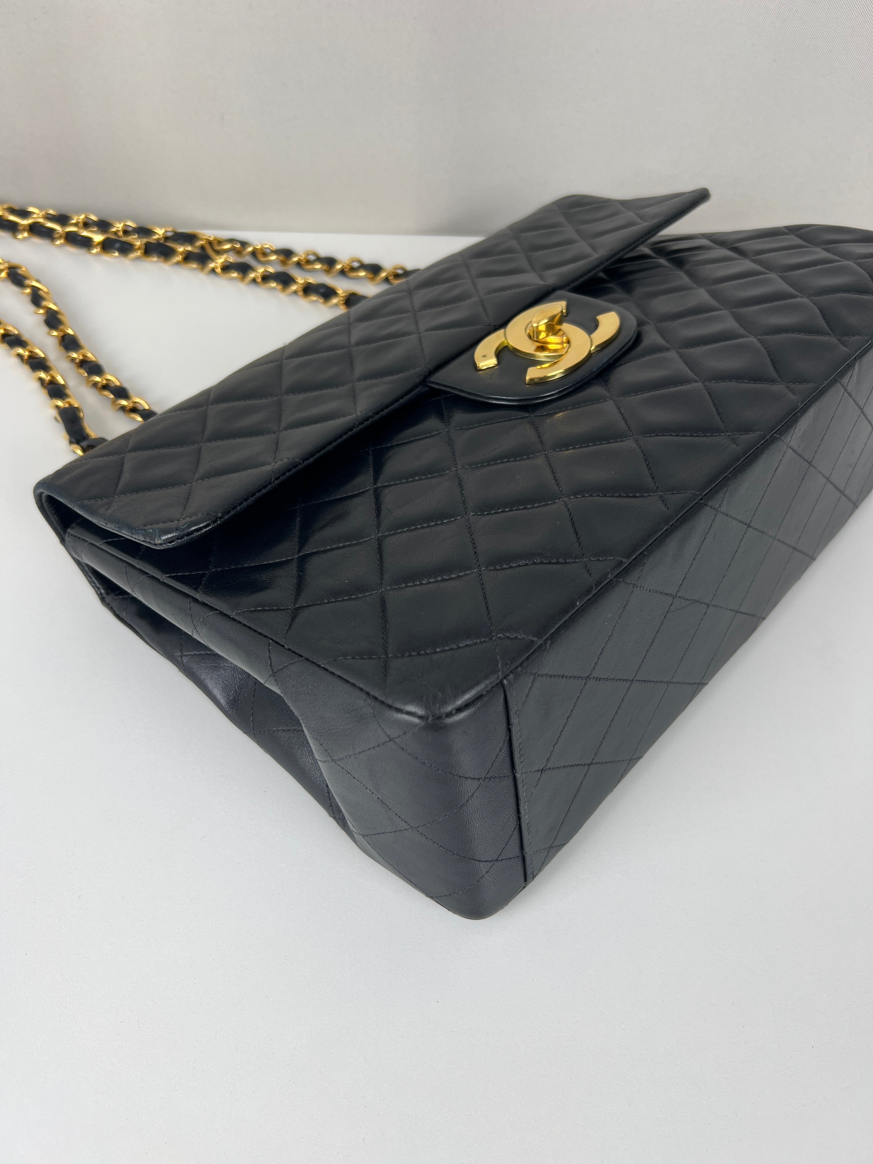 Sac Chanel 11 12 Classic Jumbo Vintage en cuir noir