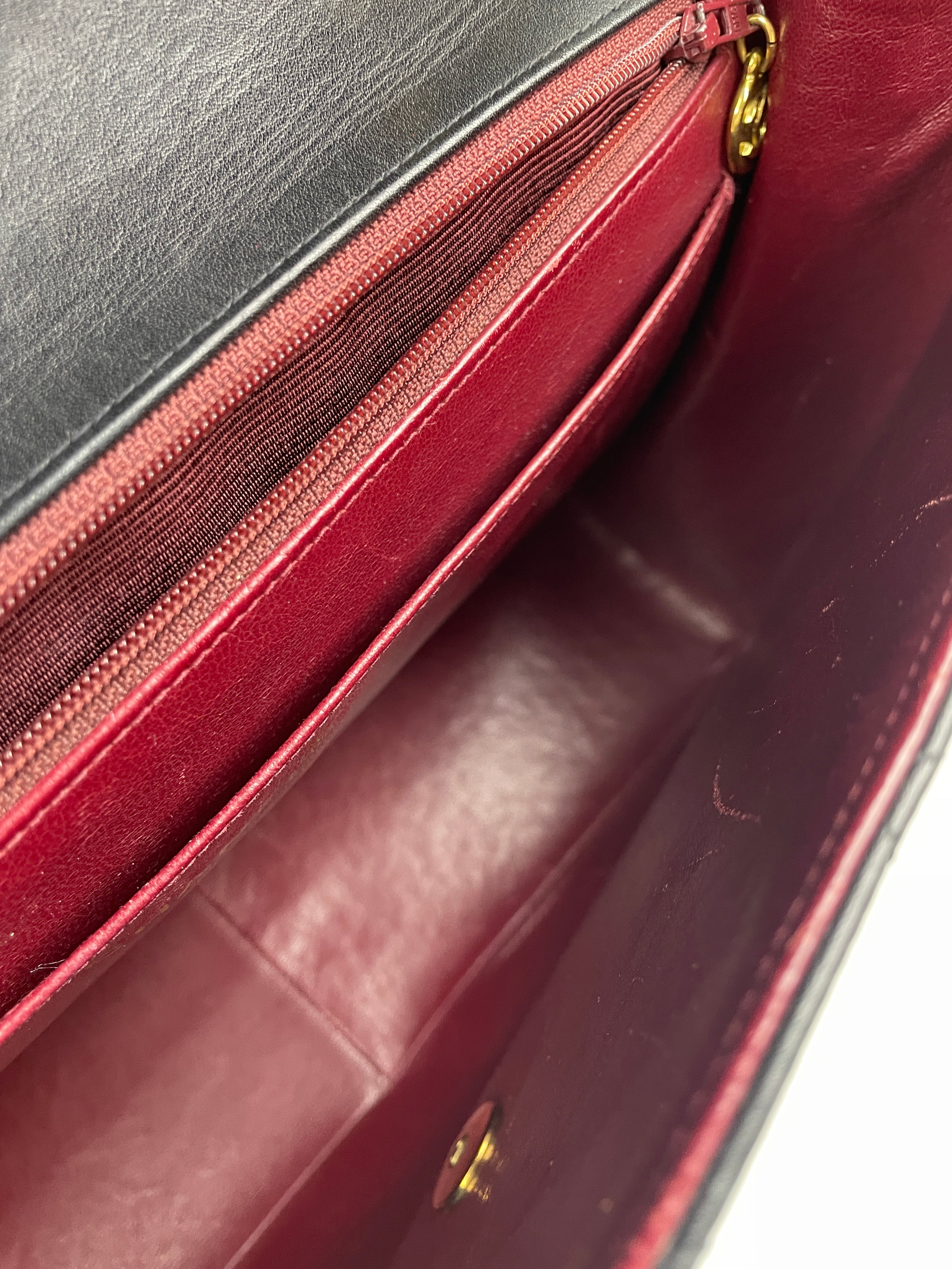 Ce sac Chanel Jumbo est en bon état. Le cuir est très doux. Les coins sont en bon état, légèrement frottés. La bijouterie est en bon état et plaquée or. L'intérieur est également en bon état, avec quelques traces d'usure. C'est un modèle vintage.