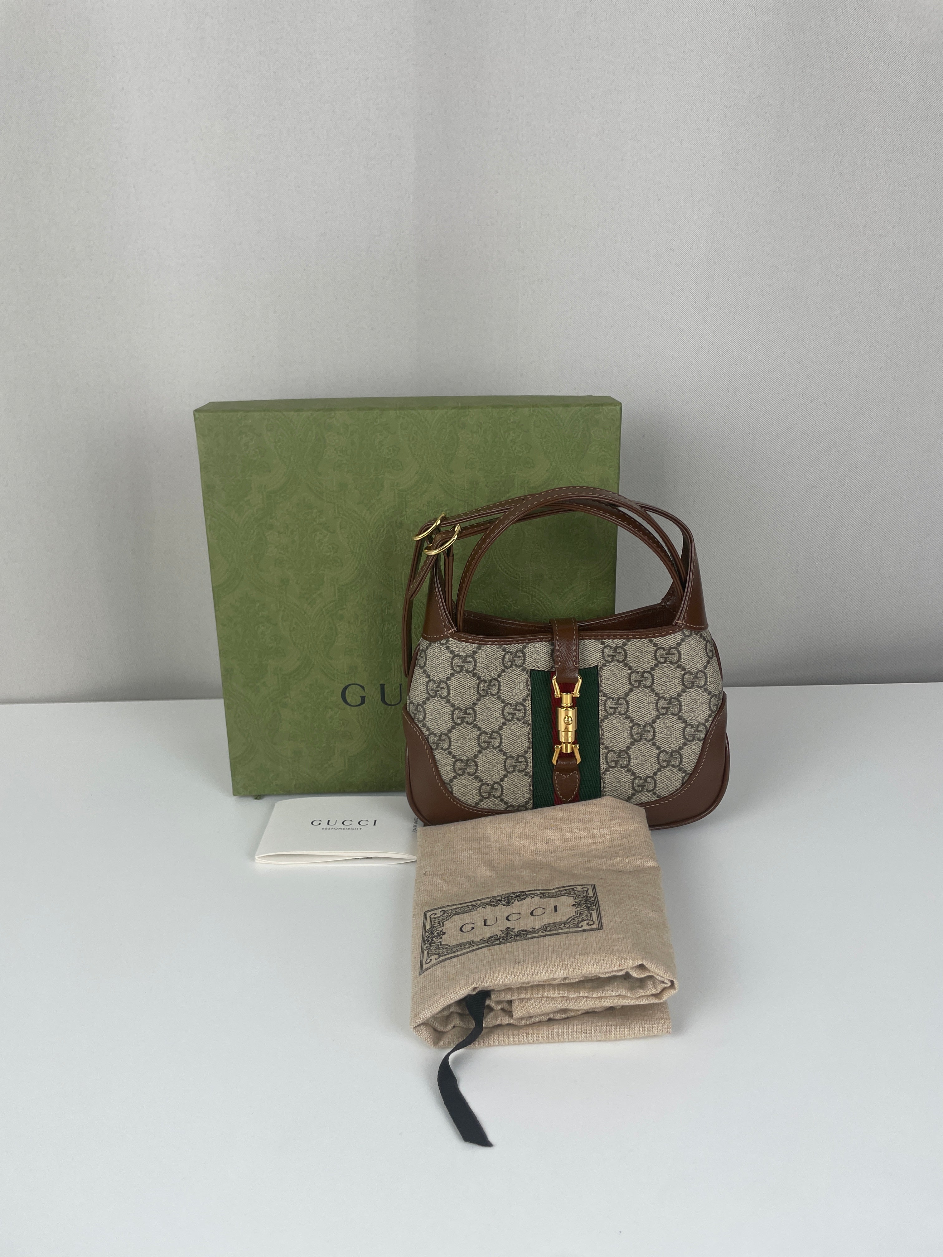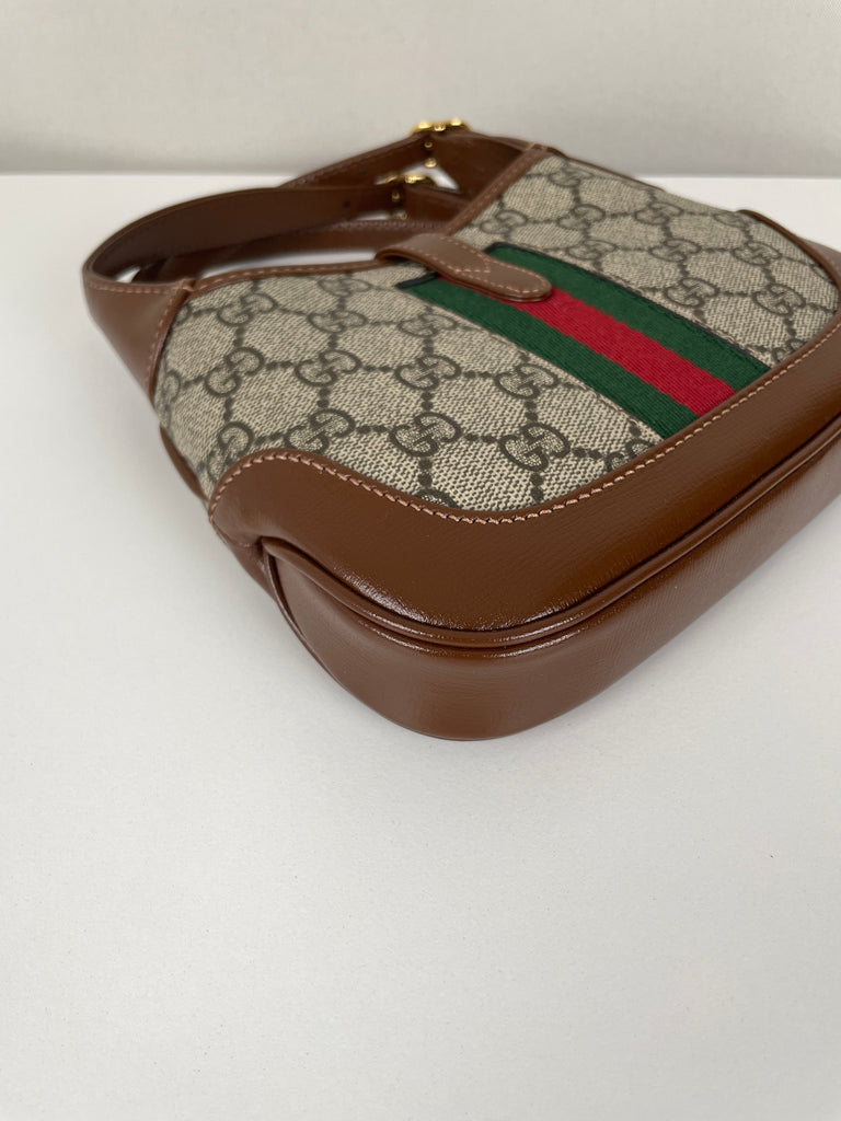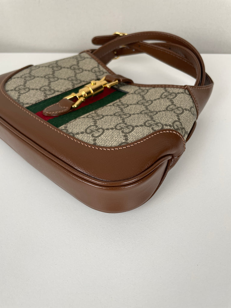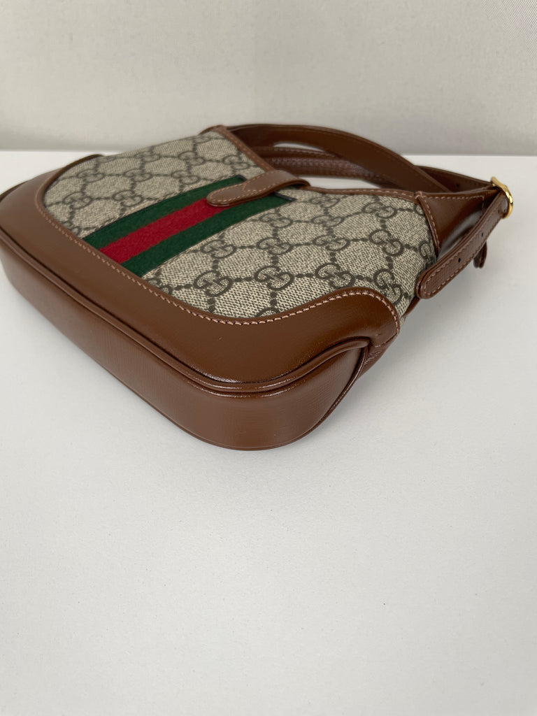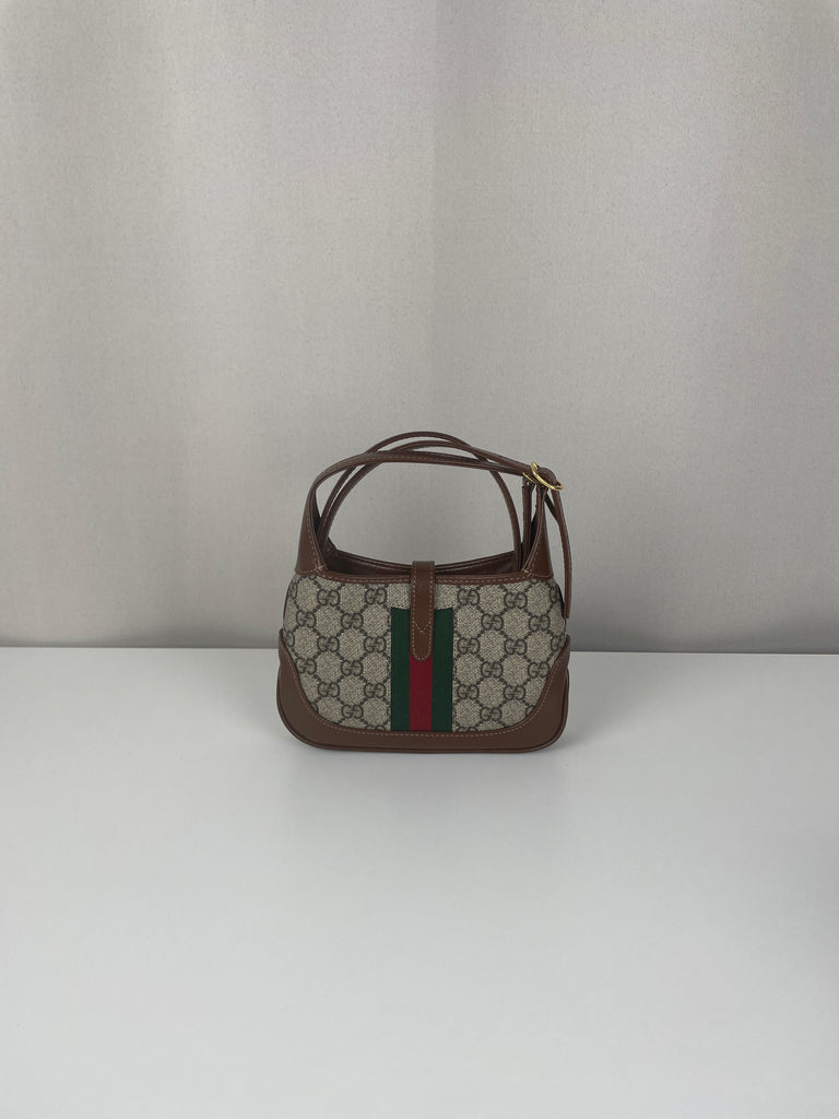 Ce mini sac Gucci Jackie est comme neuf. L'intérieur et les coins sont en très bon état, comme neufs. Vous pouvez également le porter en bandoulière.