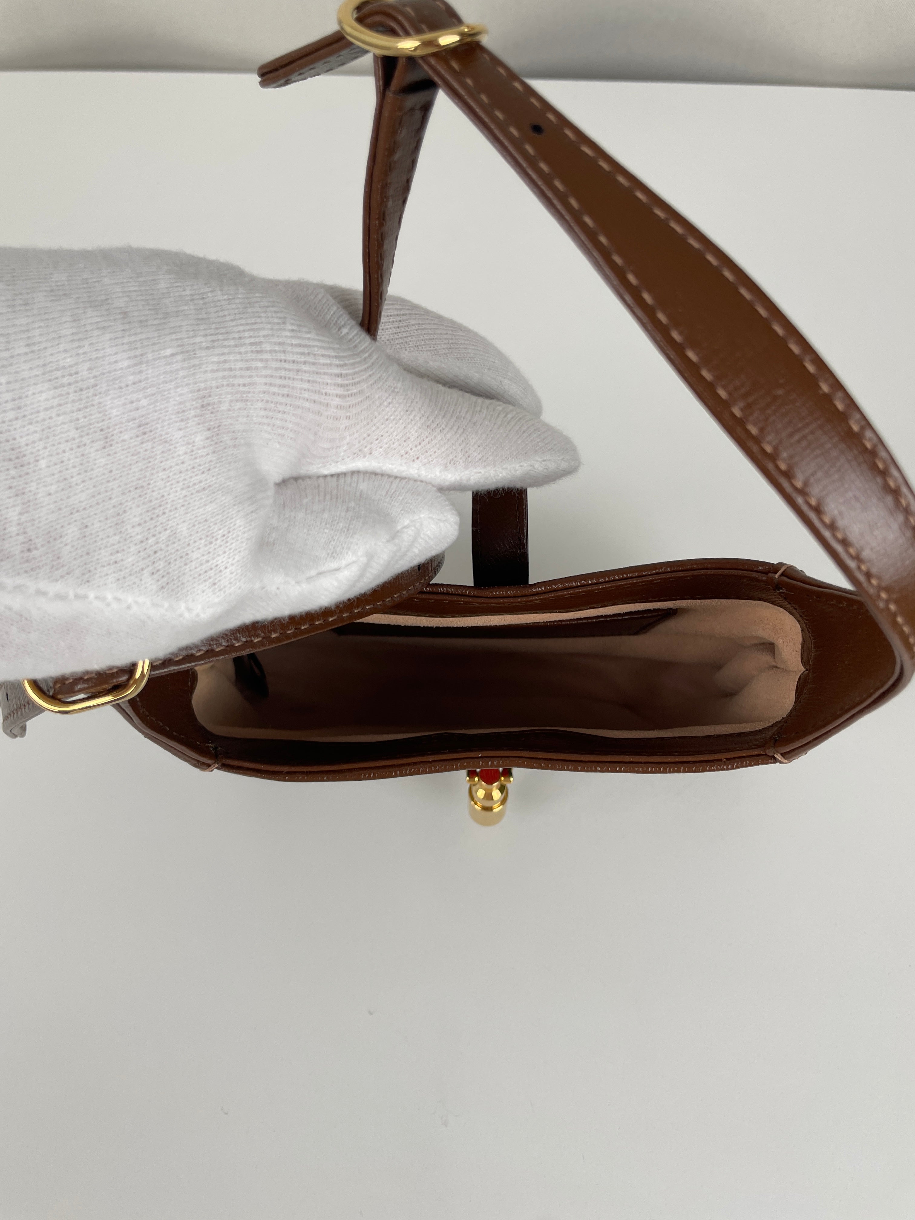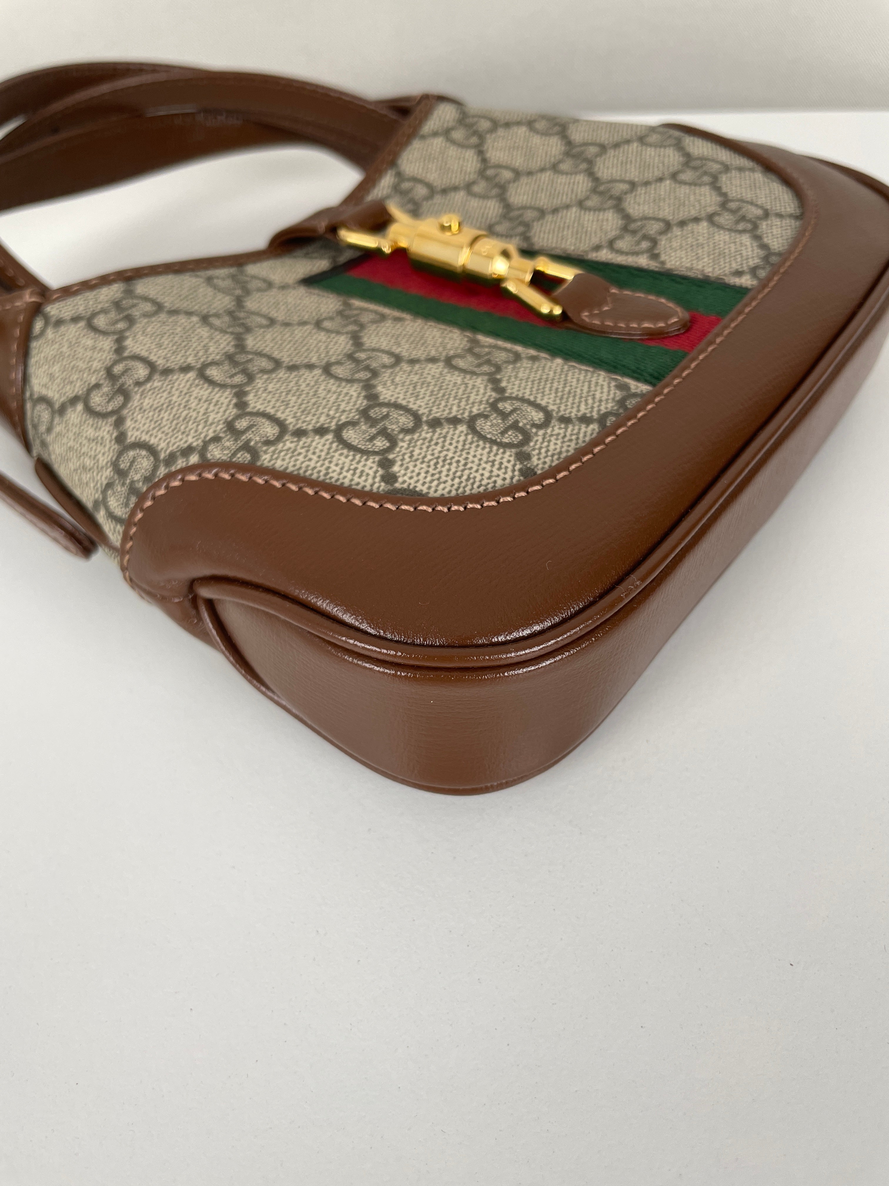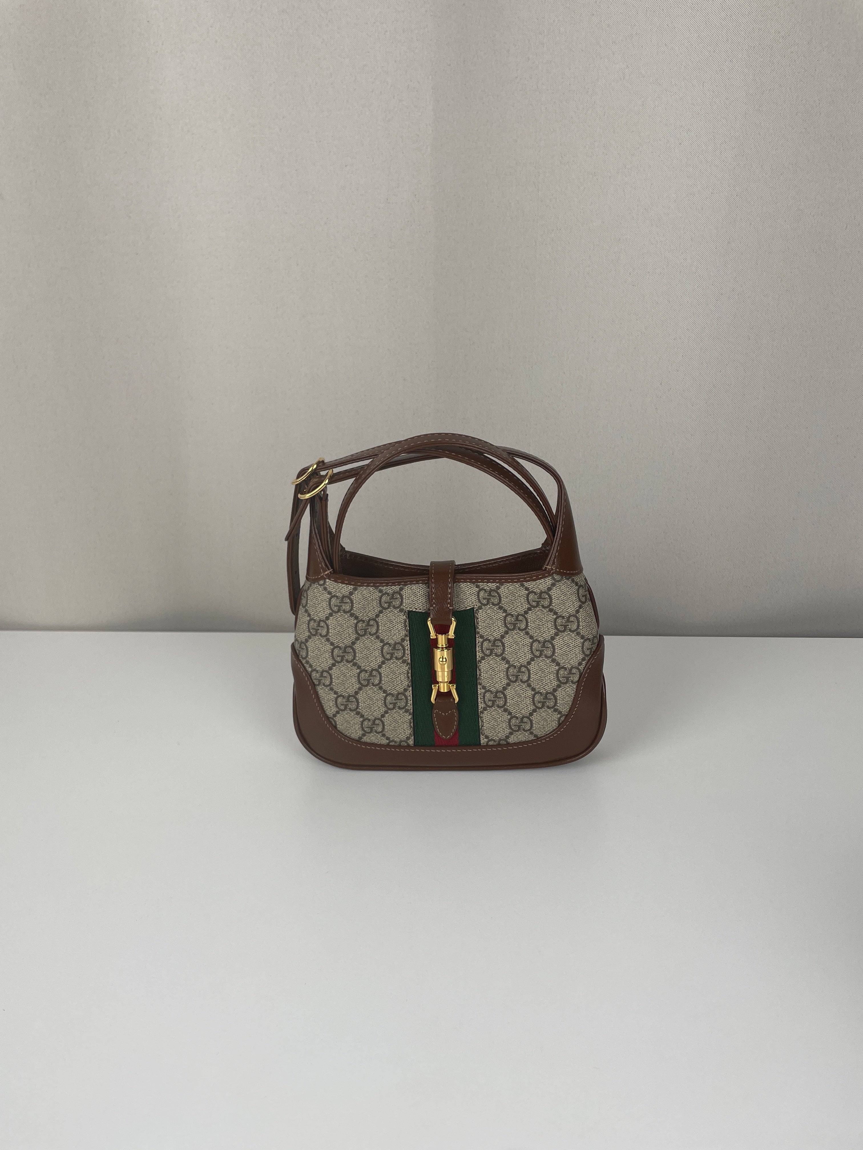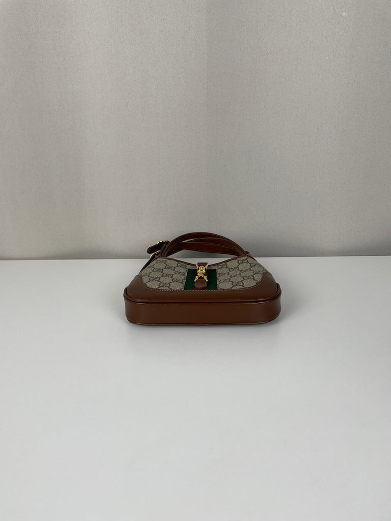 Ce mini sac Gucci Jackie est comme neuf. L'intérieur et les coins sont en très bon état, comme neufs. Vous pouvez également le porter en bandoulière.