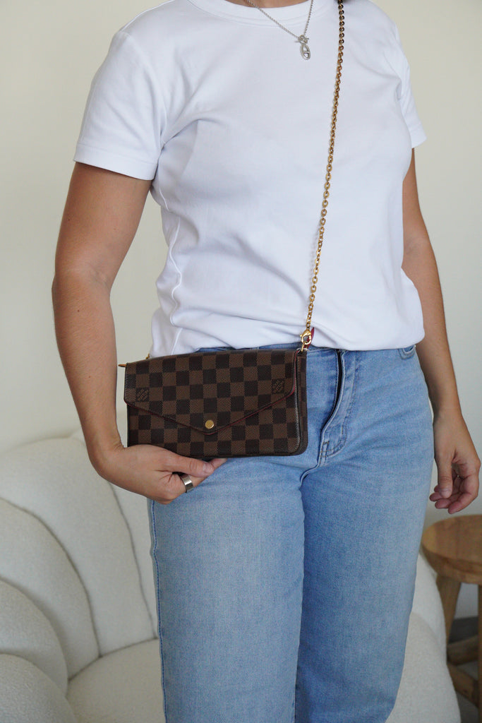 Sac Pochette Louis Vuitton Felicie damier ebene toile marron