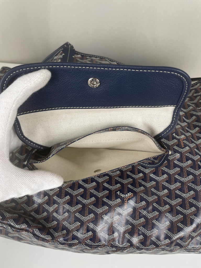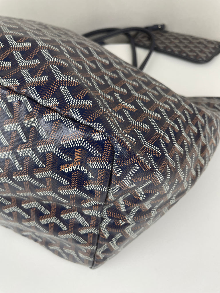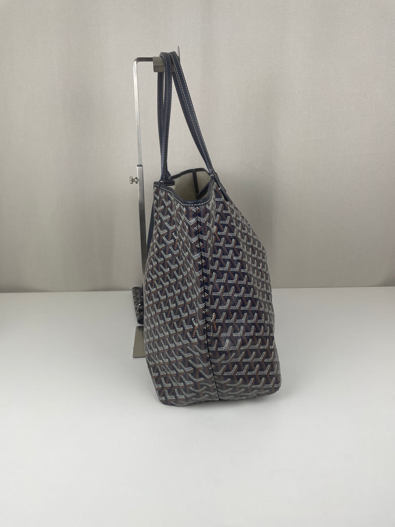 Le Goyard Saint Louis GM représente l'apogée du luxe discret et de l'excellence artisanale, arborant la légendaire toile Goyardine confectionnée à la main depuis 1853. Ce magnifique cabas présente l'iconique motif chevron créé par un processus méticuleux qui demeure pratiquement inchangé depuis plus de 170 ans, incarnant la discrétion et le raffinement privilégiés par les connaisseurs avisés du monde entier. La taille spacieuse GM offre une fonctionnalité inégalée pour l'usage quotidien, tandis que le coloris bleu sophistiqué apporte une touche contemporaine à ce design intemporel. En tant que l'un des cabas de luxe les plus convoités au monde, le Saint Louis perpétue la tradition Goyard alliant artisanat exceptionnel et élégance sans effort.