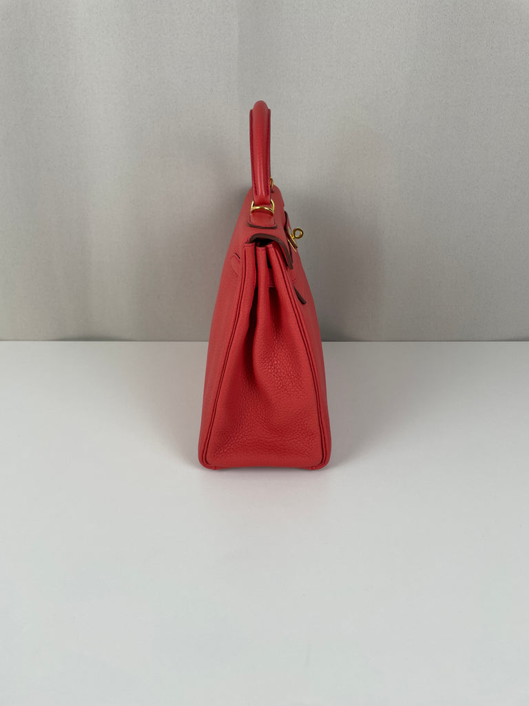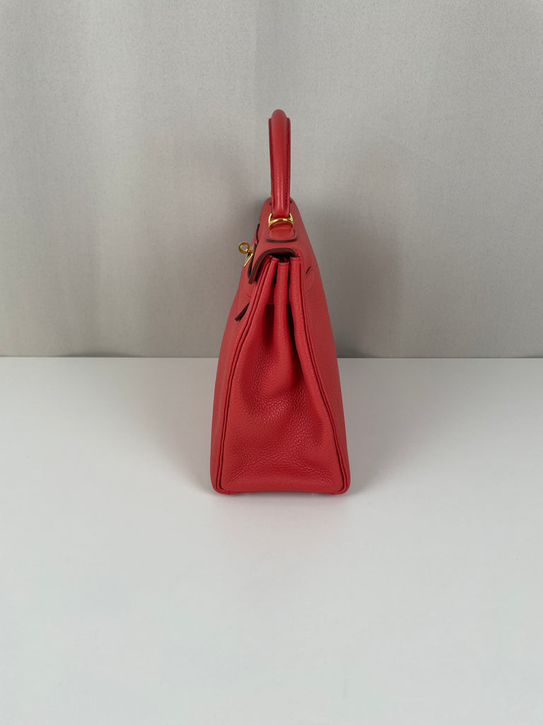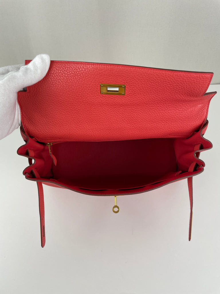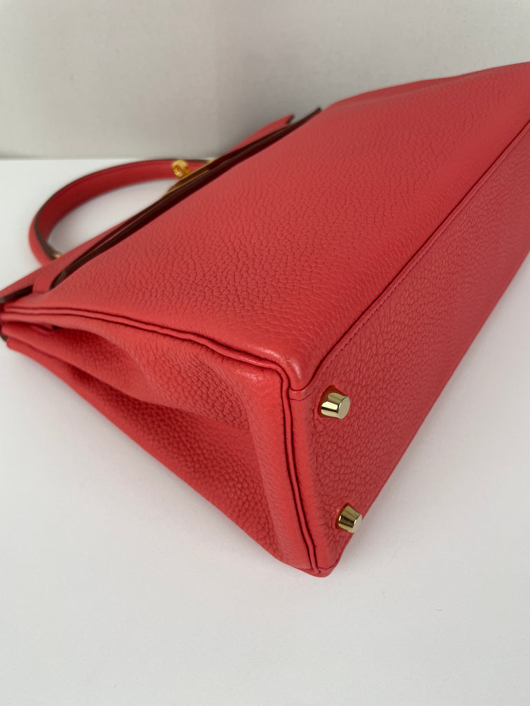 Sac Hermès Kelly 32 rose bougainvillier cuir retourné togo