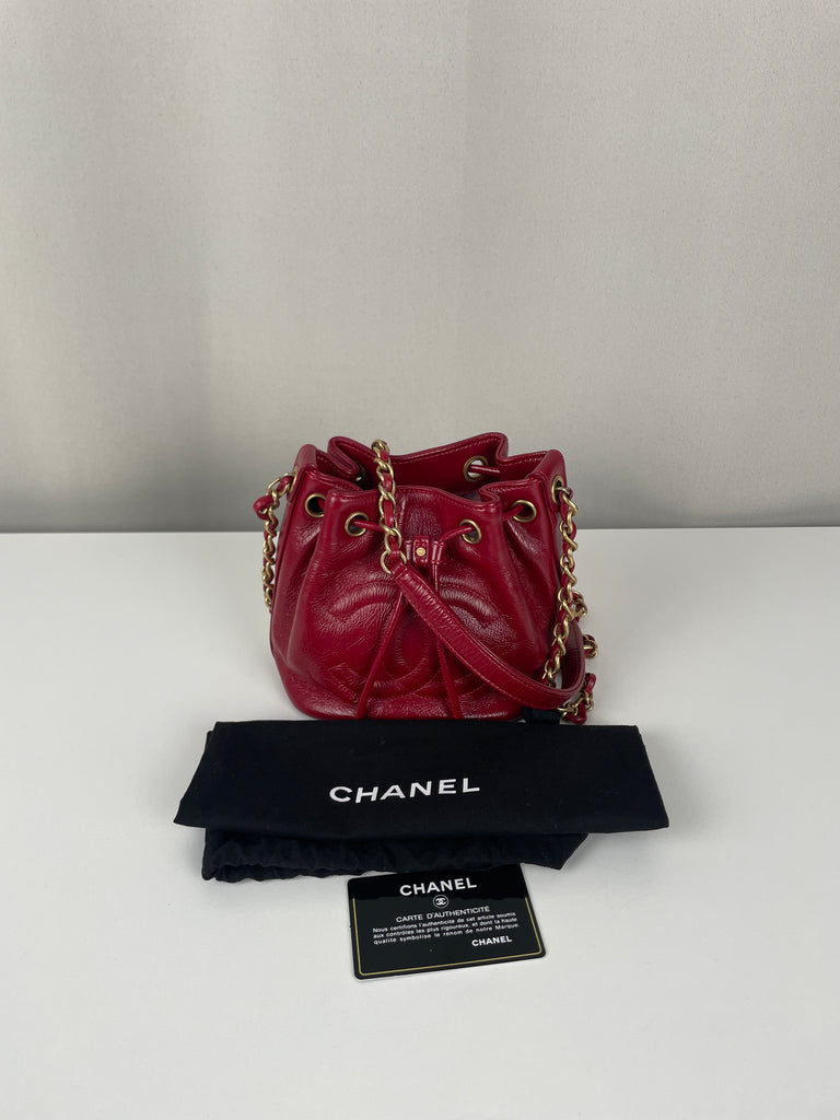 Sac bandoulière seau Chanel Mini cuir rouge