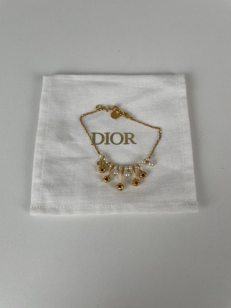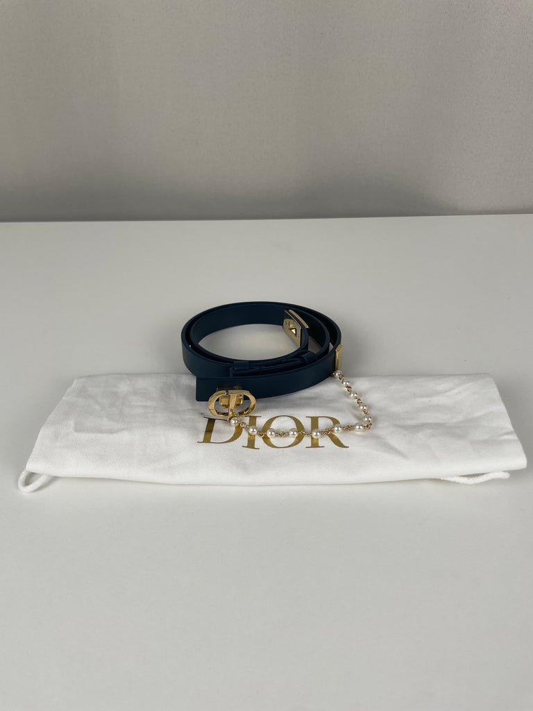 Ceinture Dior Montaigne en cuir bleu nuit et perles bijouterie dorée