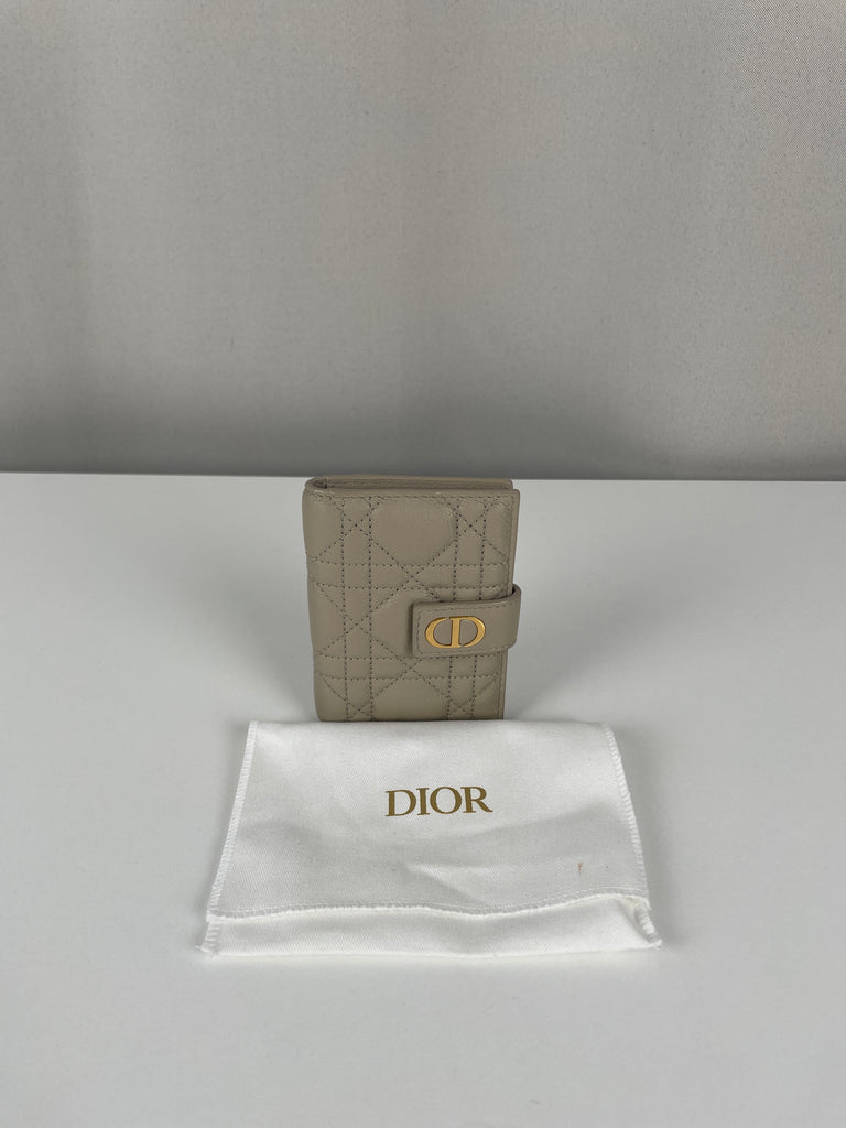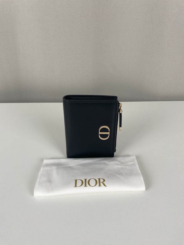 Portefeuille Dior 30 Montaigne Dhalia en cuir noir bijouterie champagne