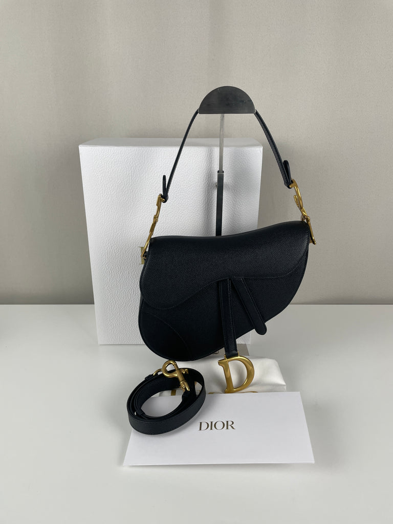 Sac Dior Saddle en cuir grainé noir avec bandoulière