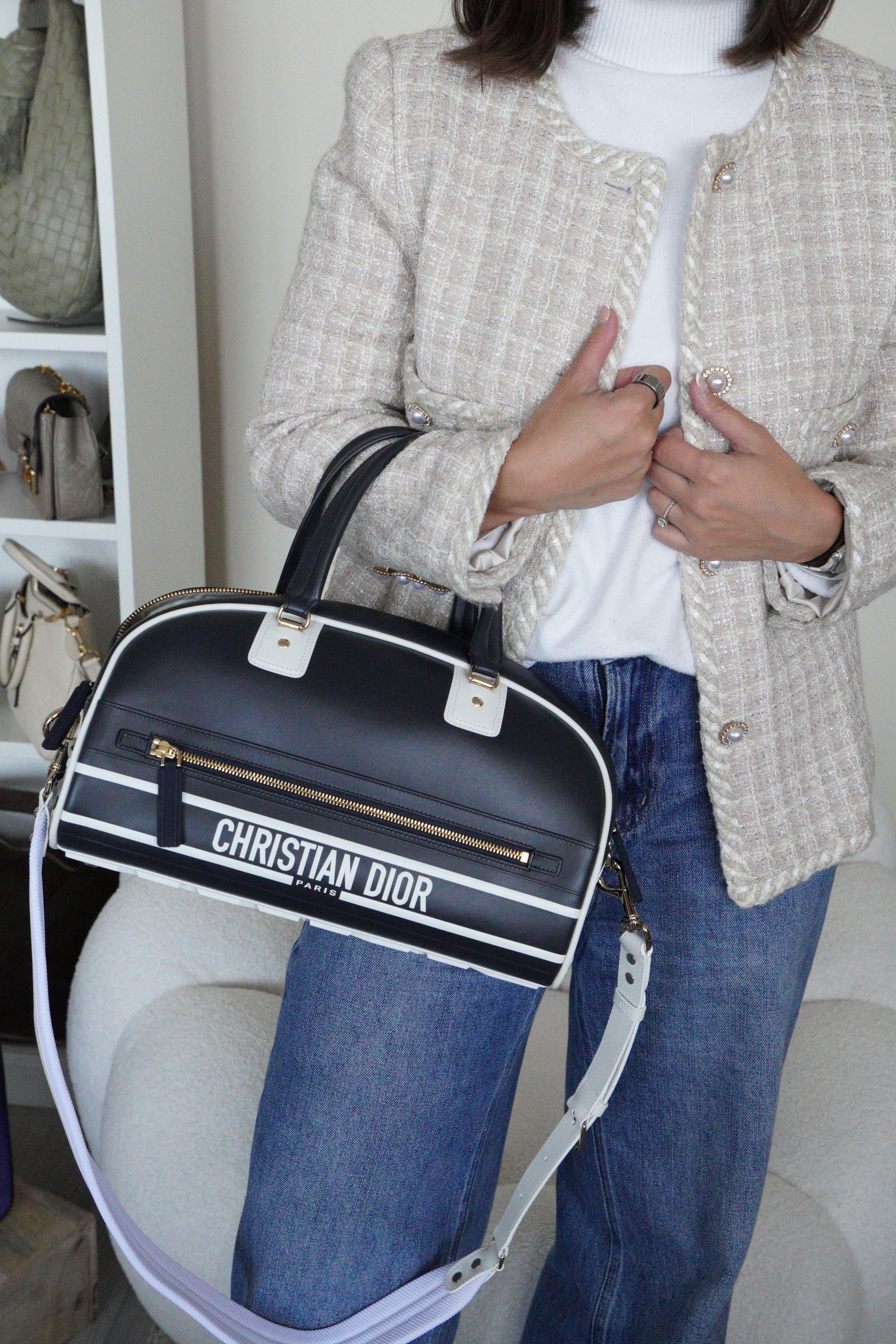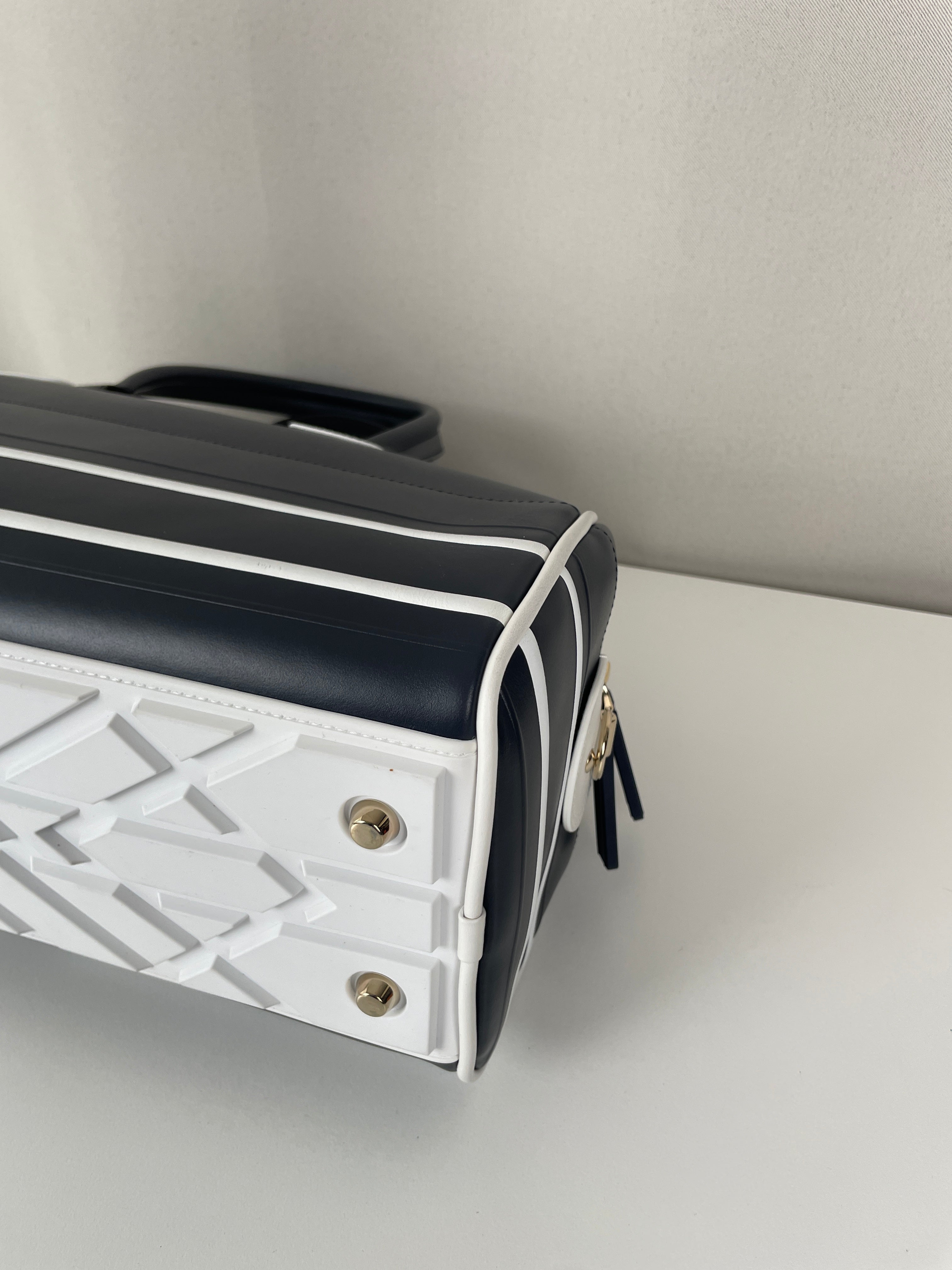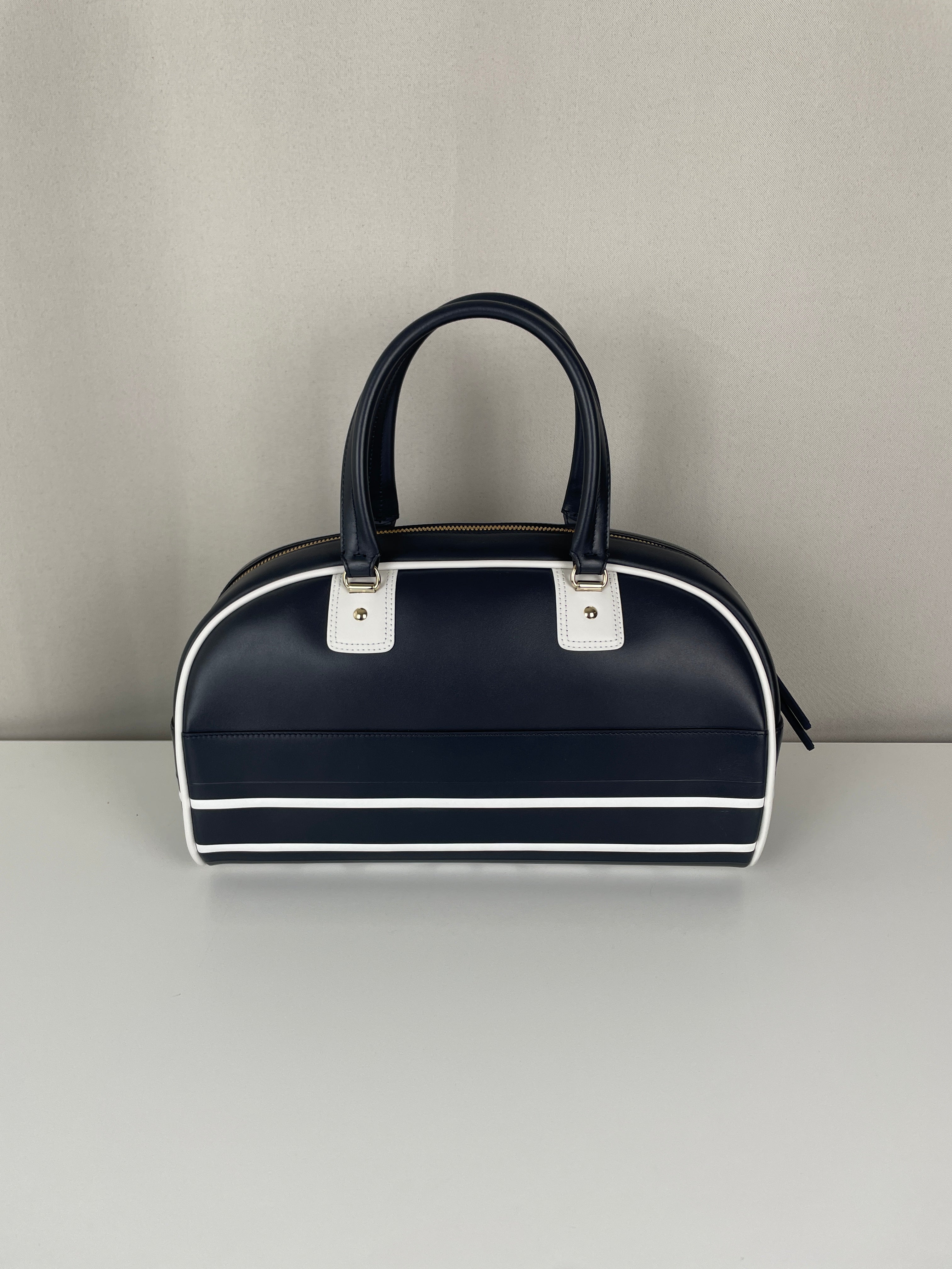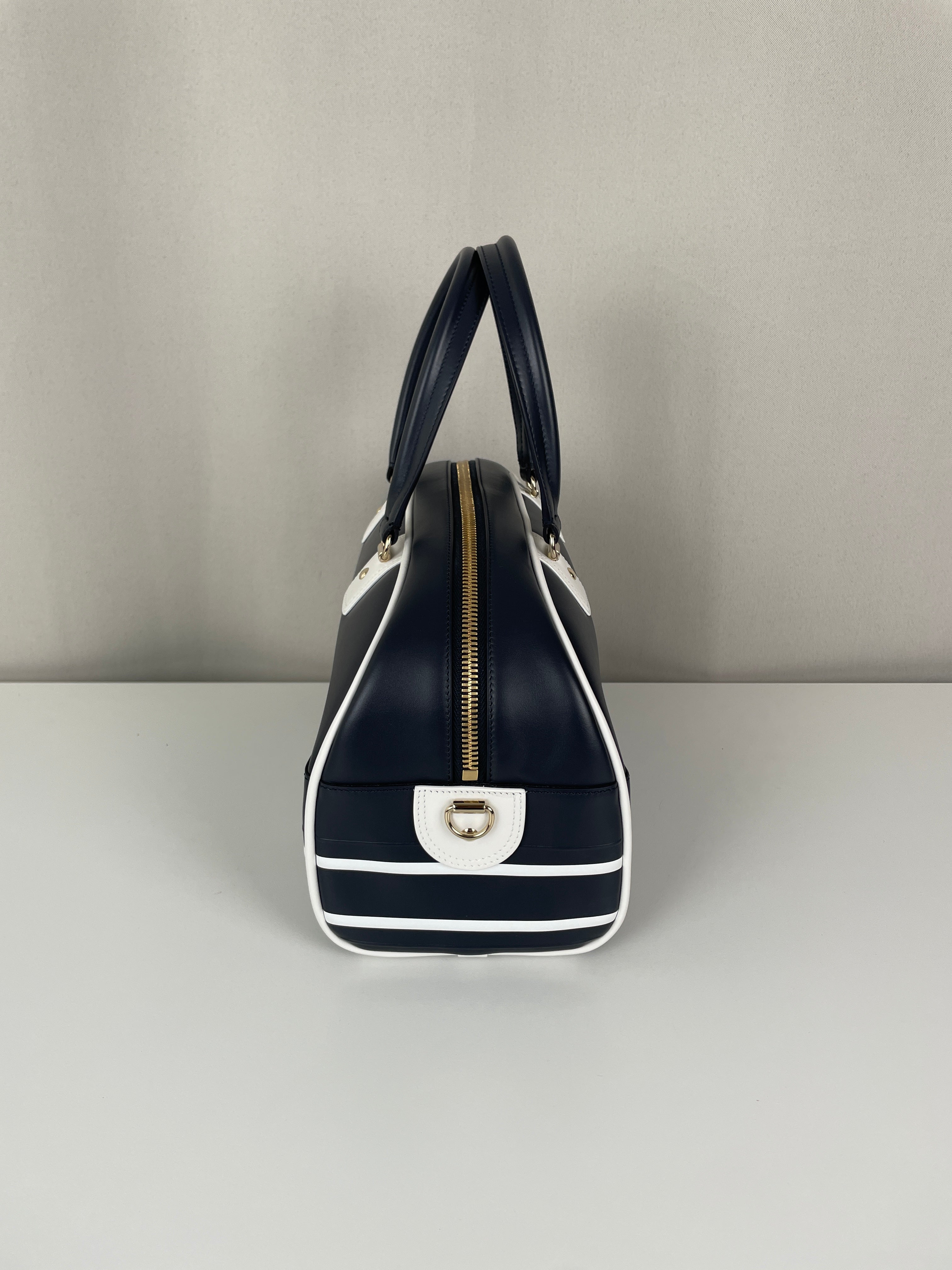 This Dior vibe bowling bag is in very good condition almost as new. The leather and the corners are in excellent condition. The hardware is in very good condition. The inside is in very good condition.