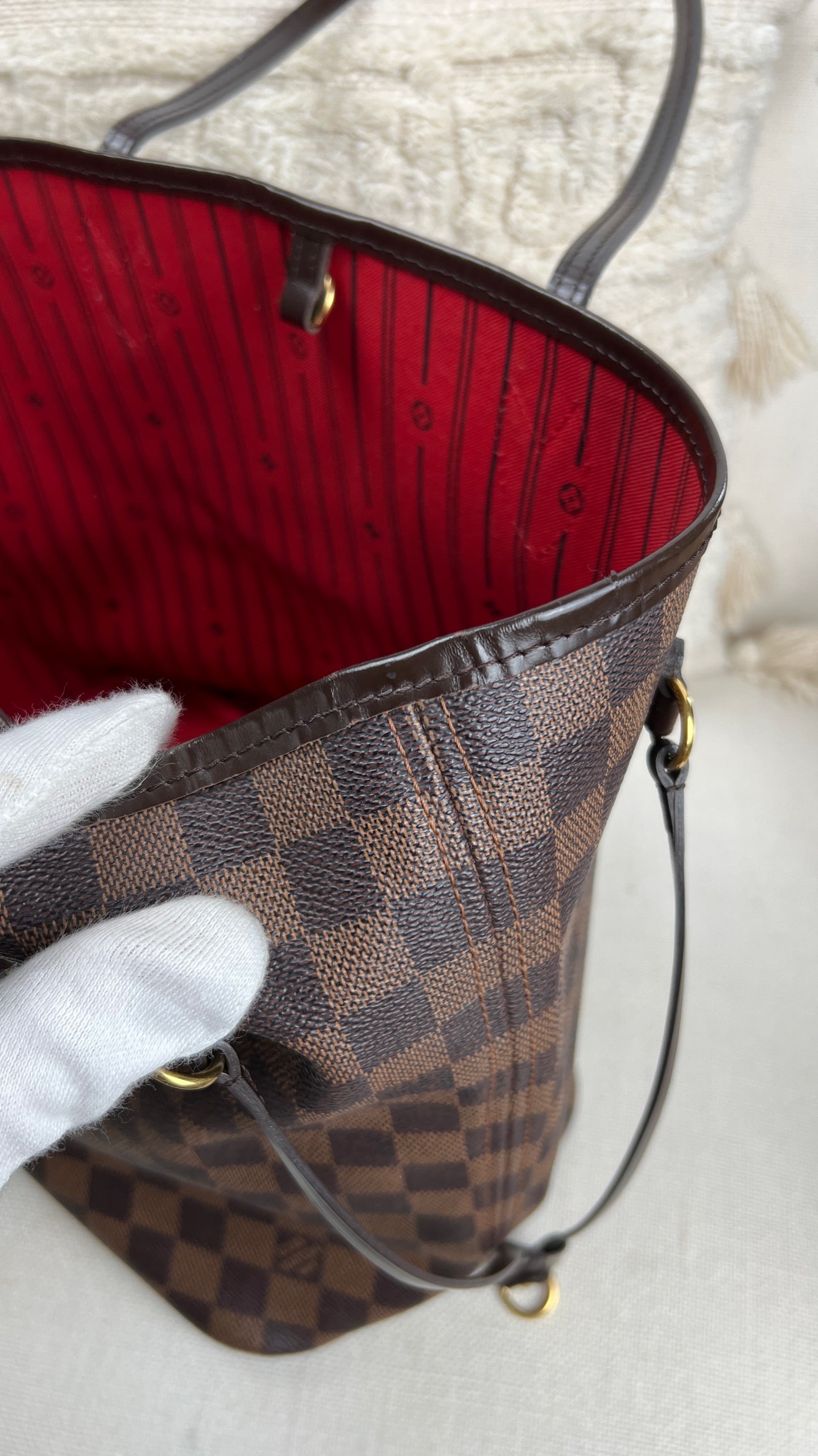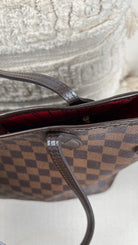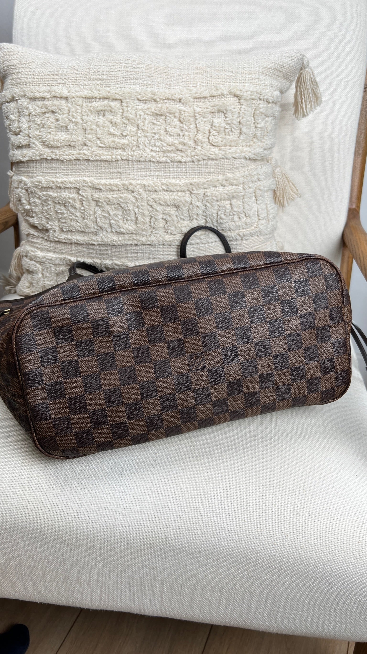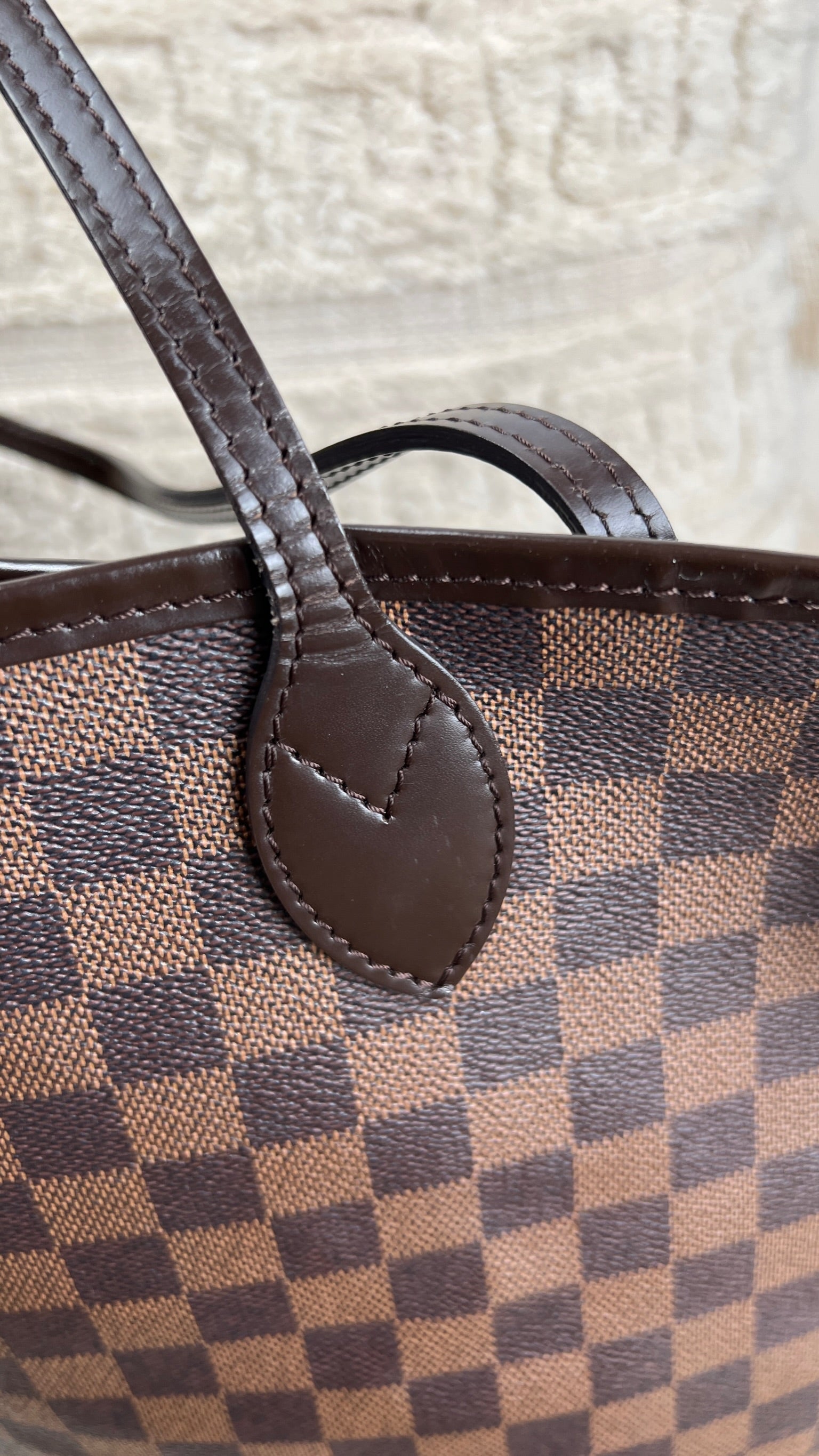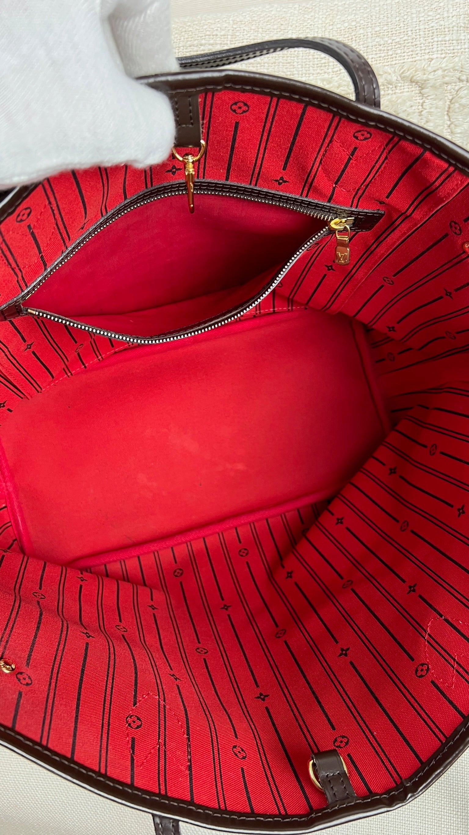 This Louis Vuitton Neverfull Damier MM bag is in very very good condition. The canva is in very good condition. The handles are in very good condition very minor sign of wear on the corners. The interior is in very good condition some little stains but almost nothing. The metal parts are in very good condition.