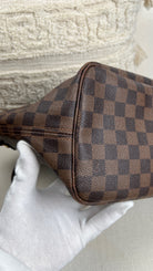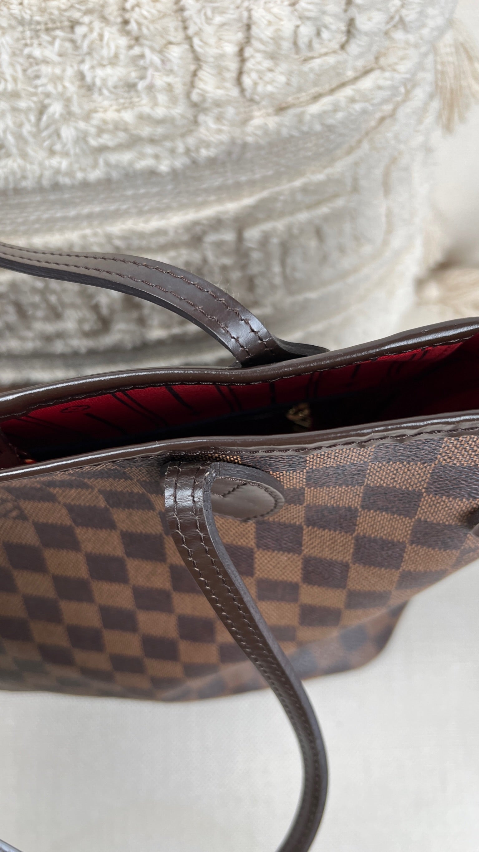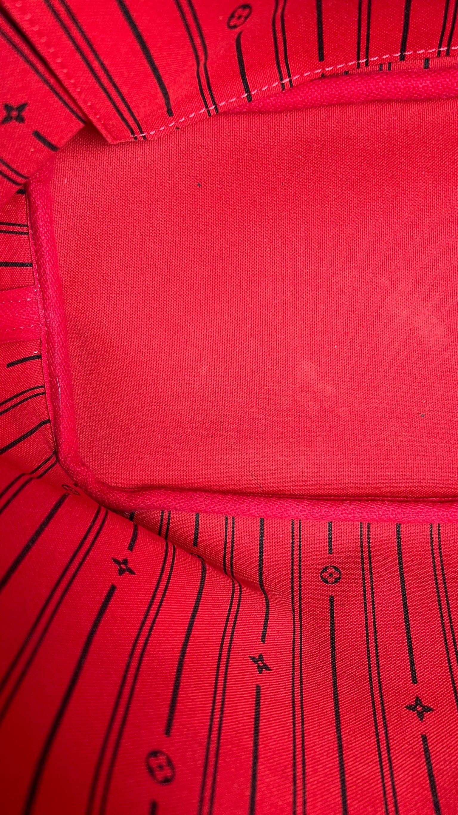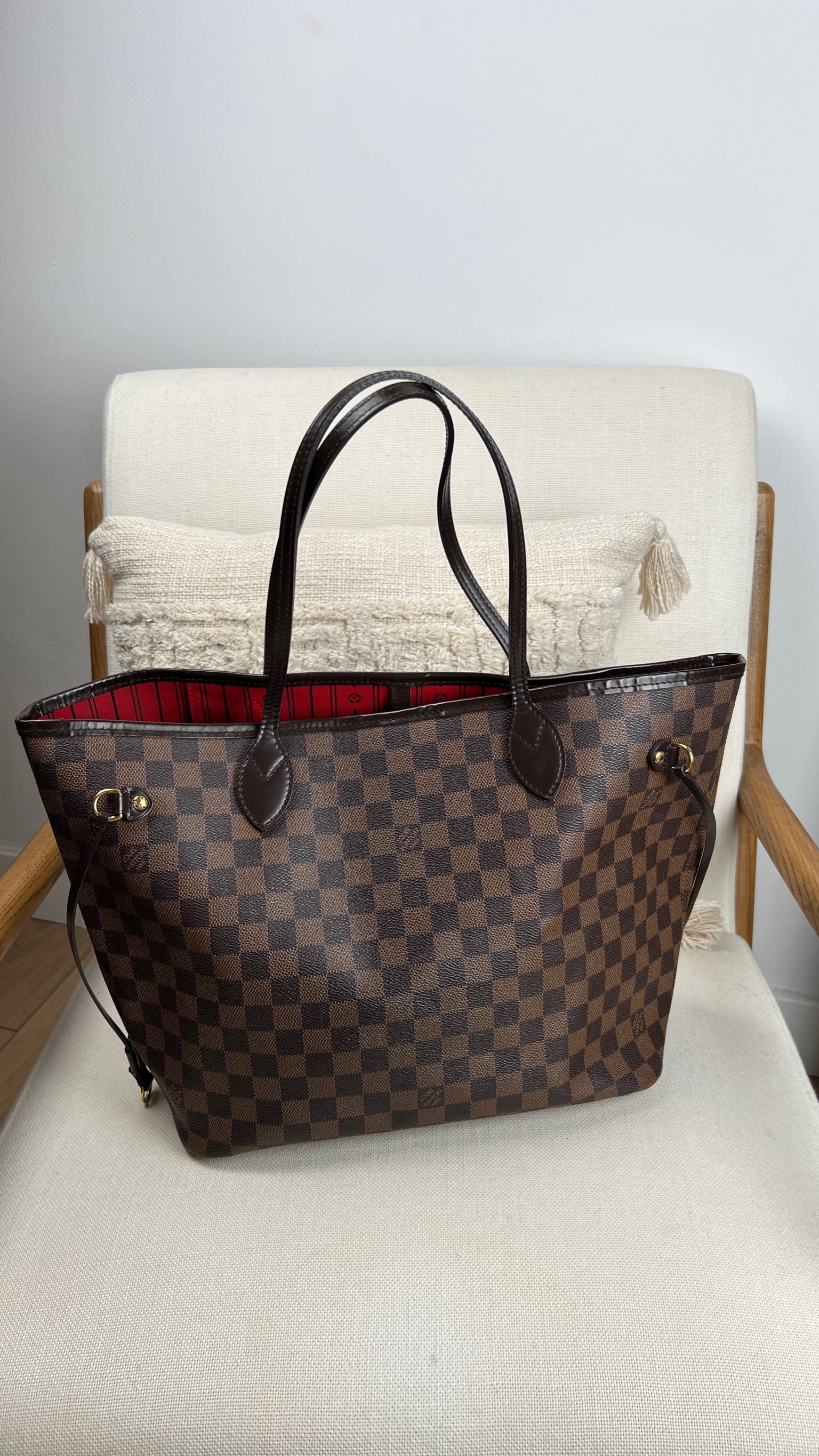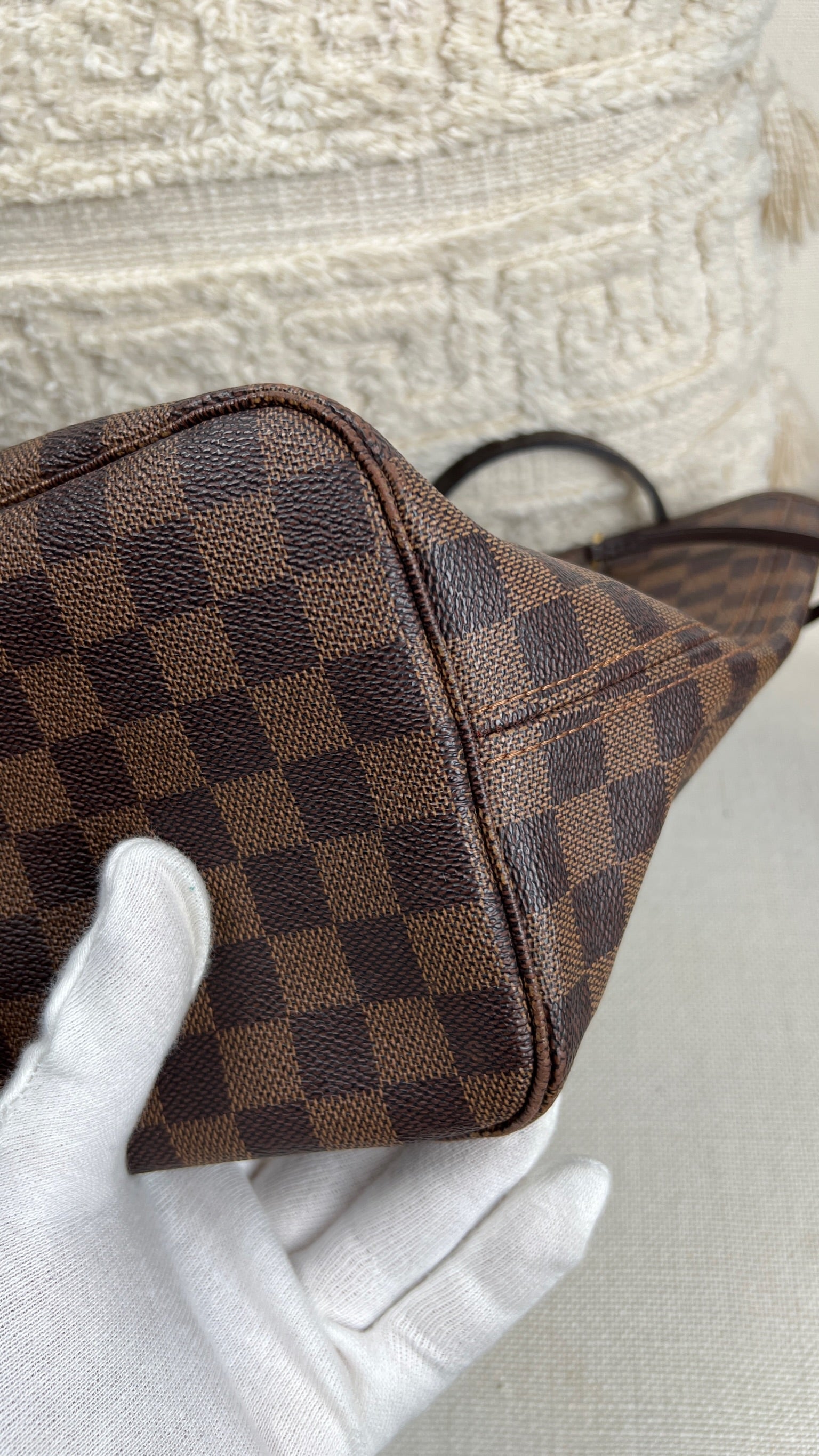 This Louis Vuitton Neverfull Damier MM bag is in very very good condition. The canva is in very good condition. The handles are in very good condition very minor sign of wear on the corners. The interior is in very good condition some little stains but almost nothing. The metal parts are in very good condition.