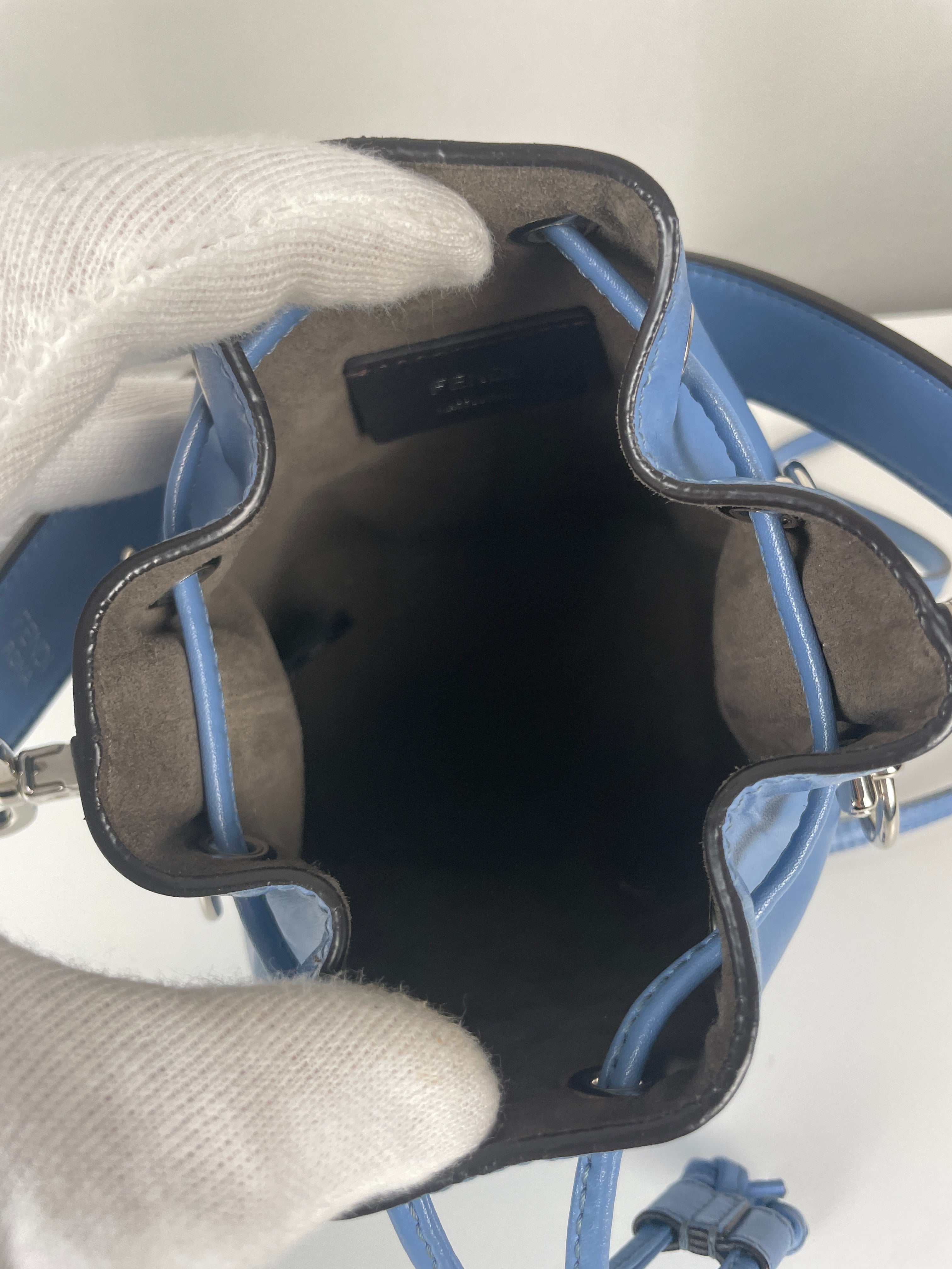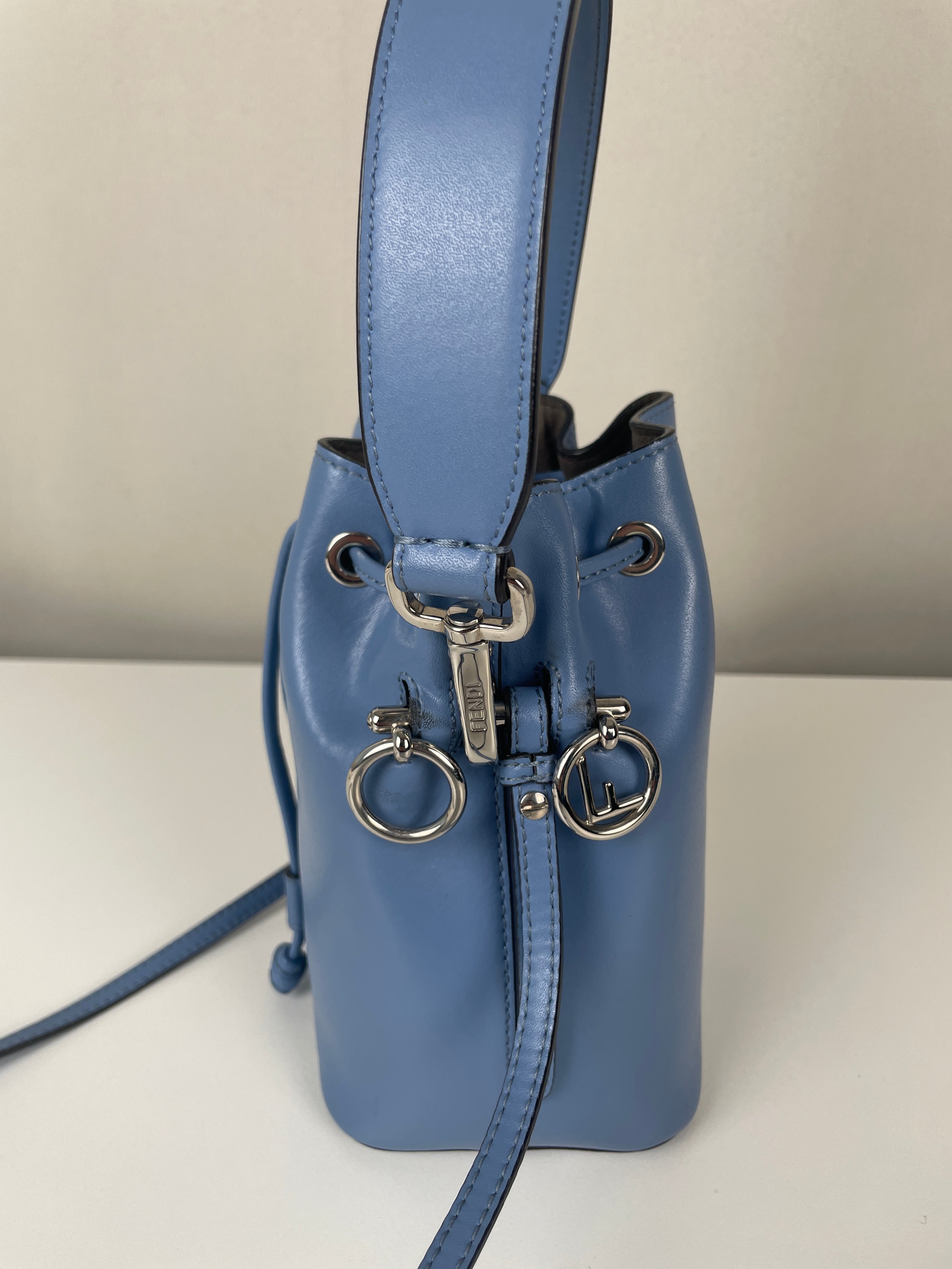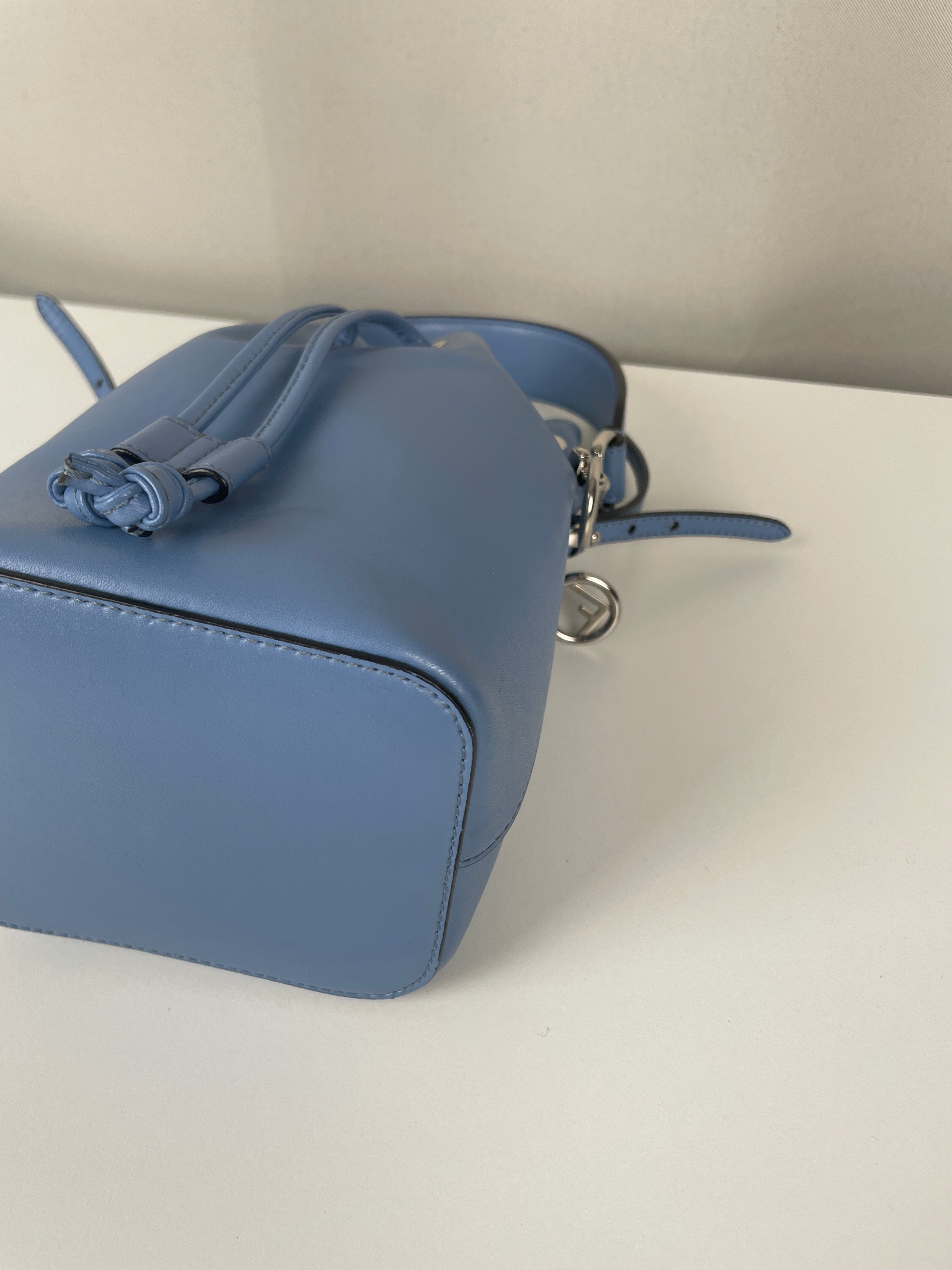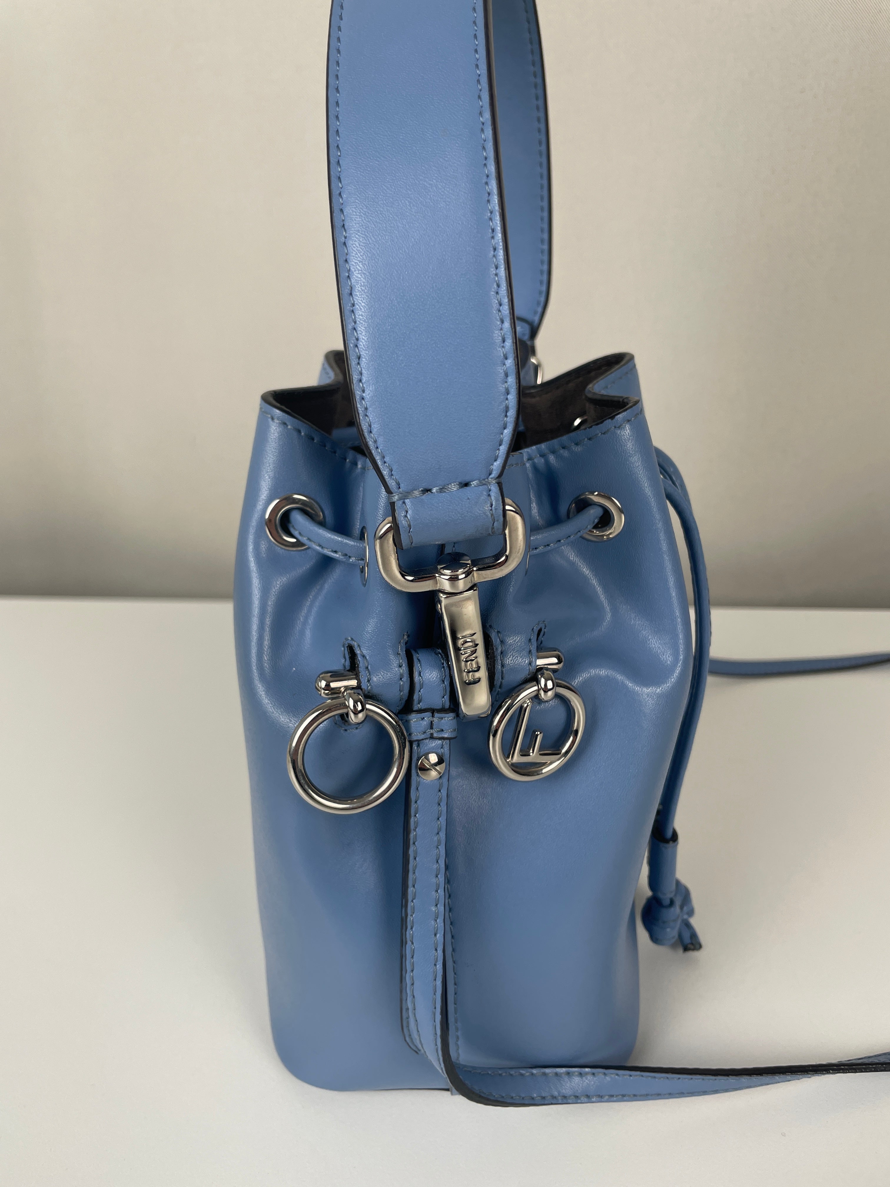 This Fendi Mon Tresor FF mini bucket bag is in very good condition. The leather is in very good condition. The hardware is very good and silver. The bag is as new. The corners are in very good condition. The inside is in very good condition. It comes with a dustbag. The strap is adjustable.