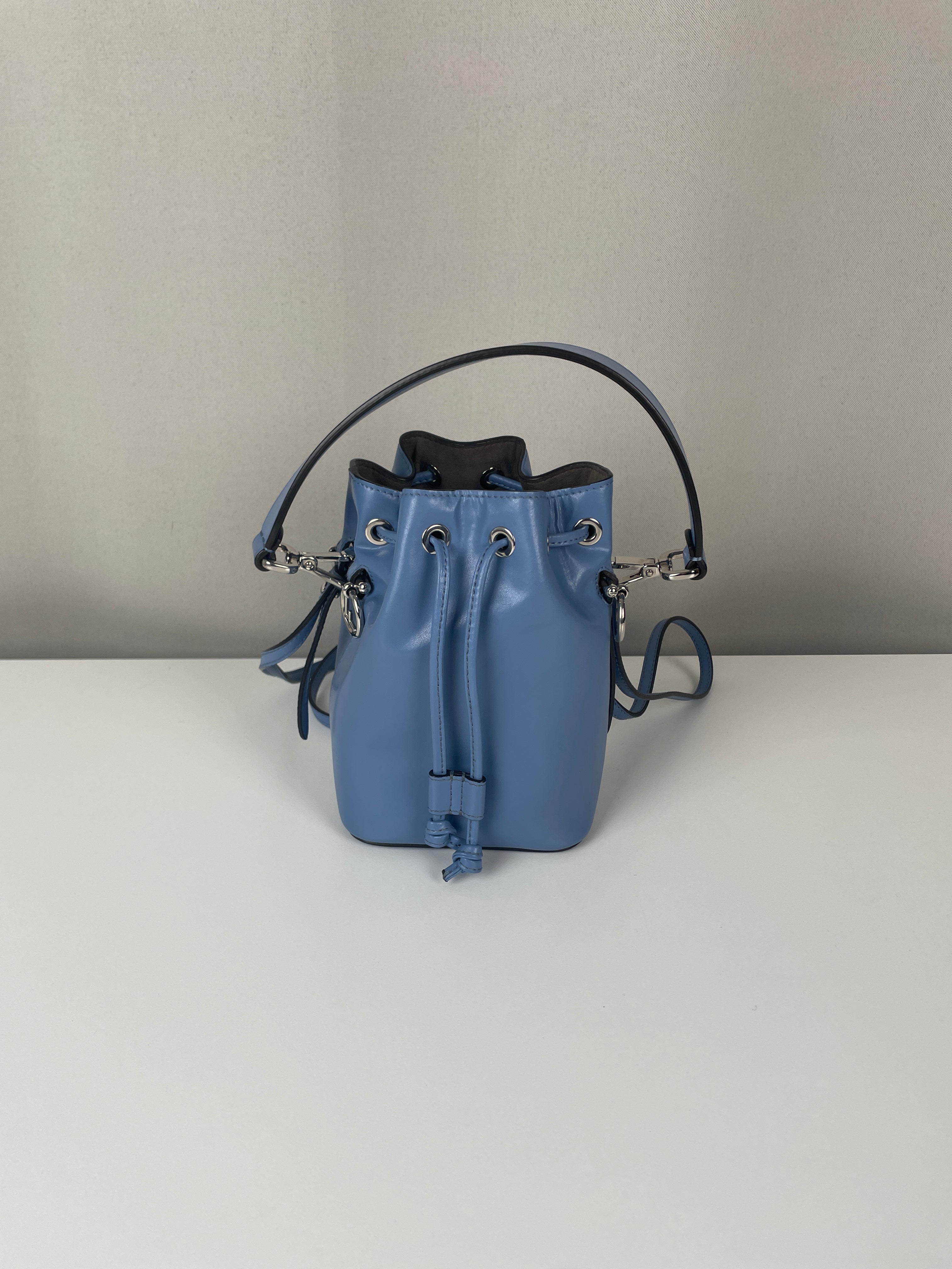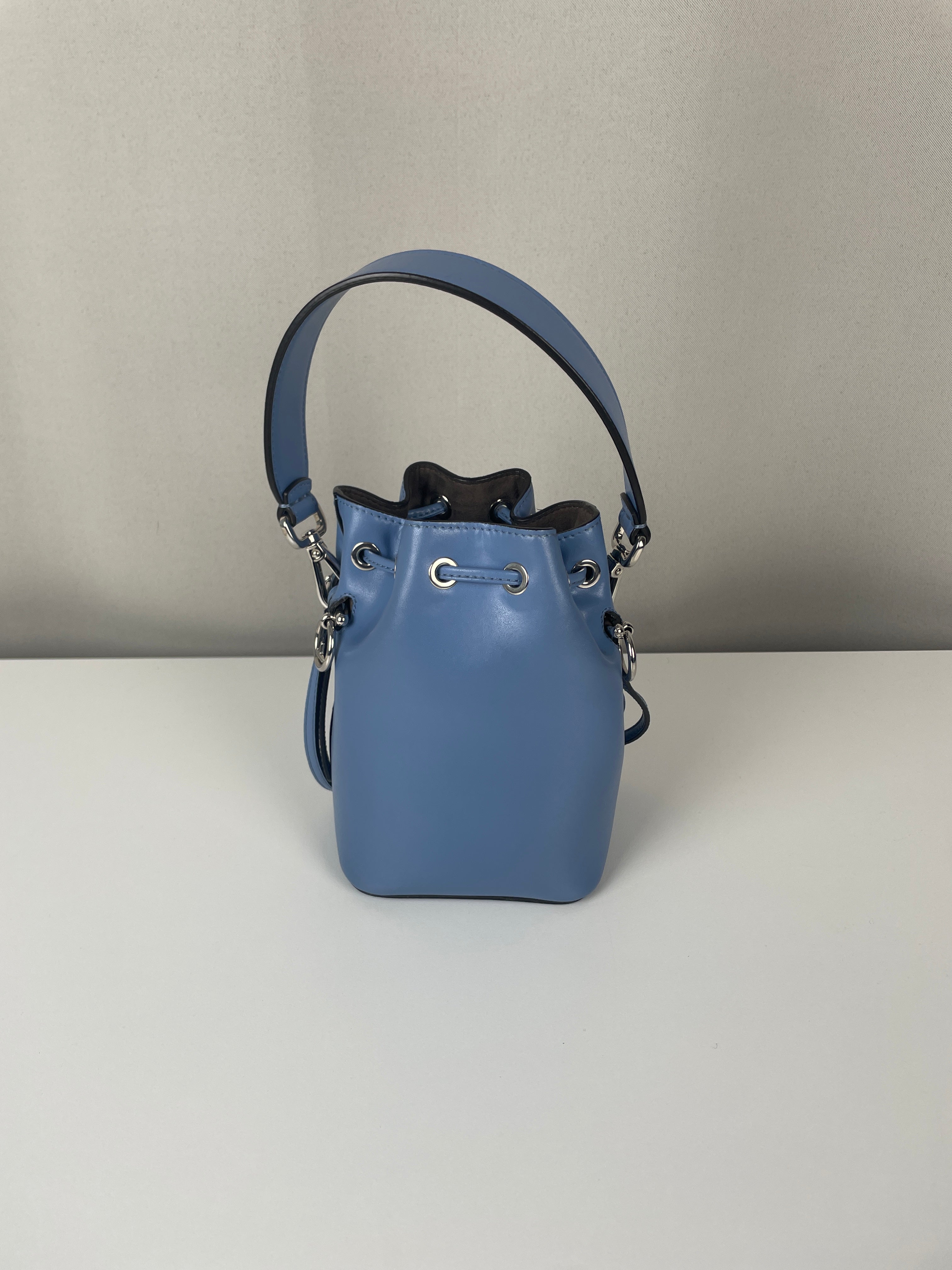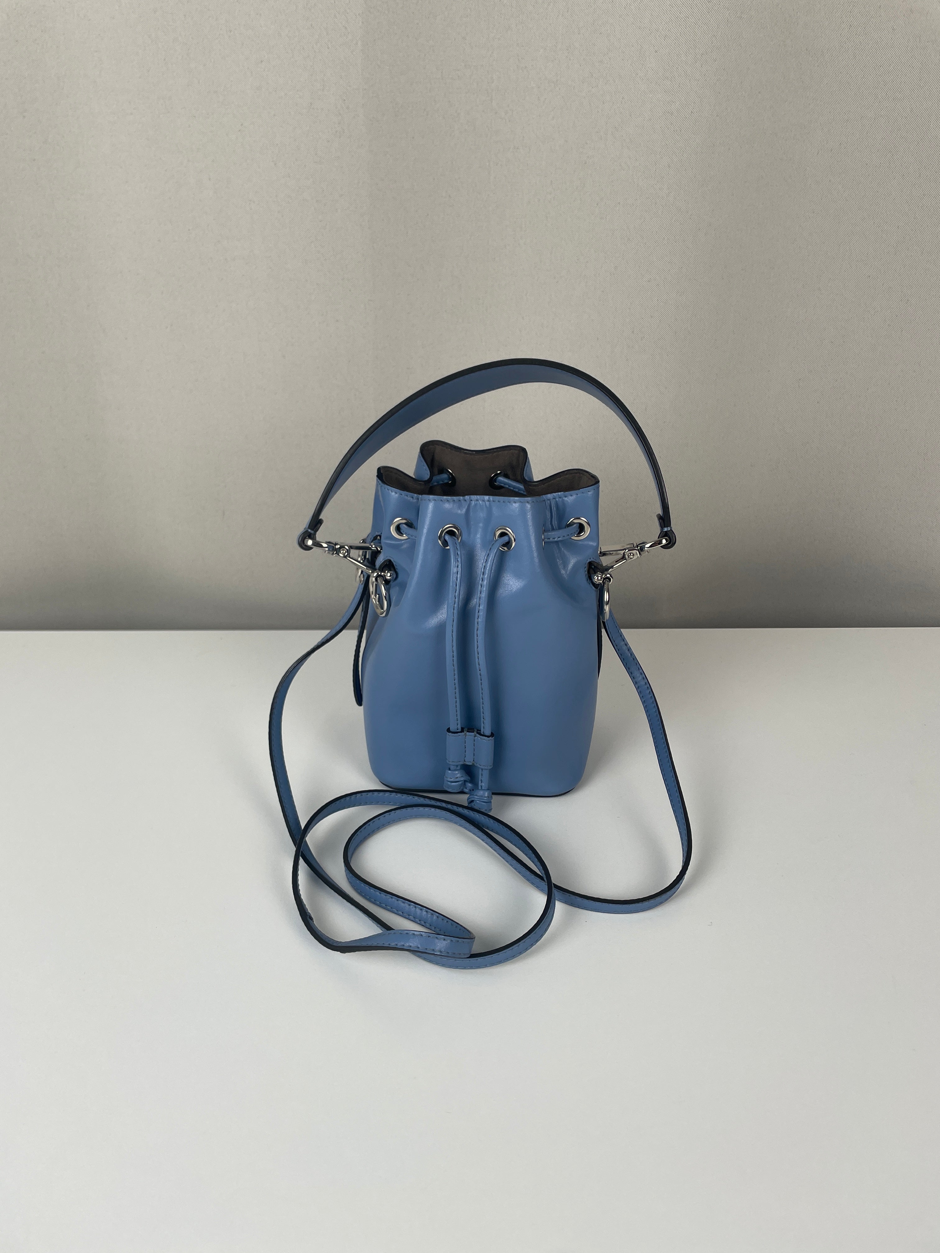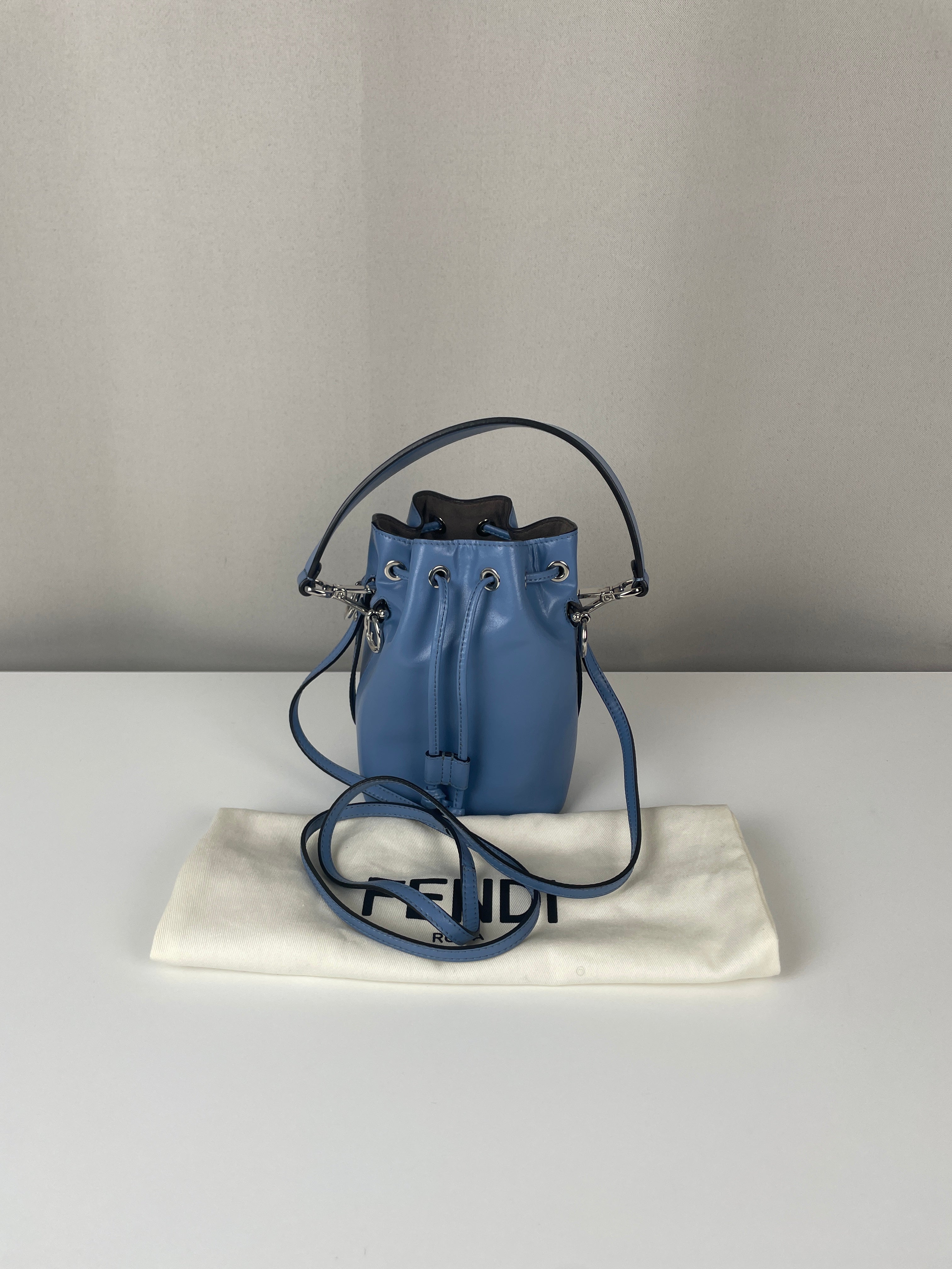 This Fendi Mon Tresor FF mini bucket bag is in very good condition. The leather is in very good condition. The hardware is very good and silver. The bag is as new. The corners are in very good condition. The inside is in very good condition. It comes with a dustbag. The strap is adjustable.
