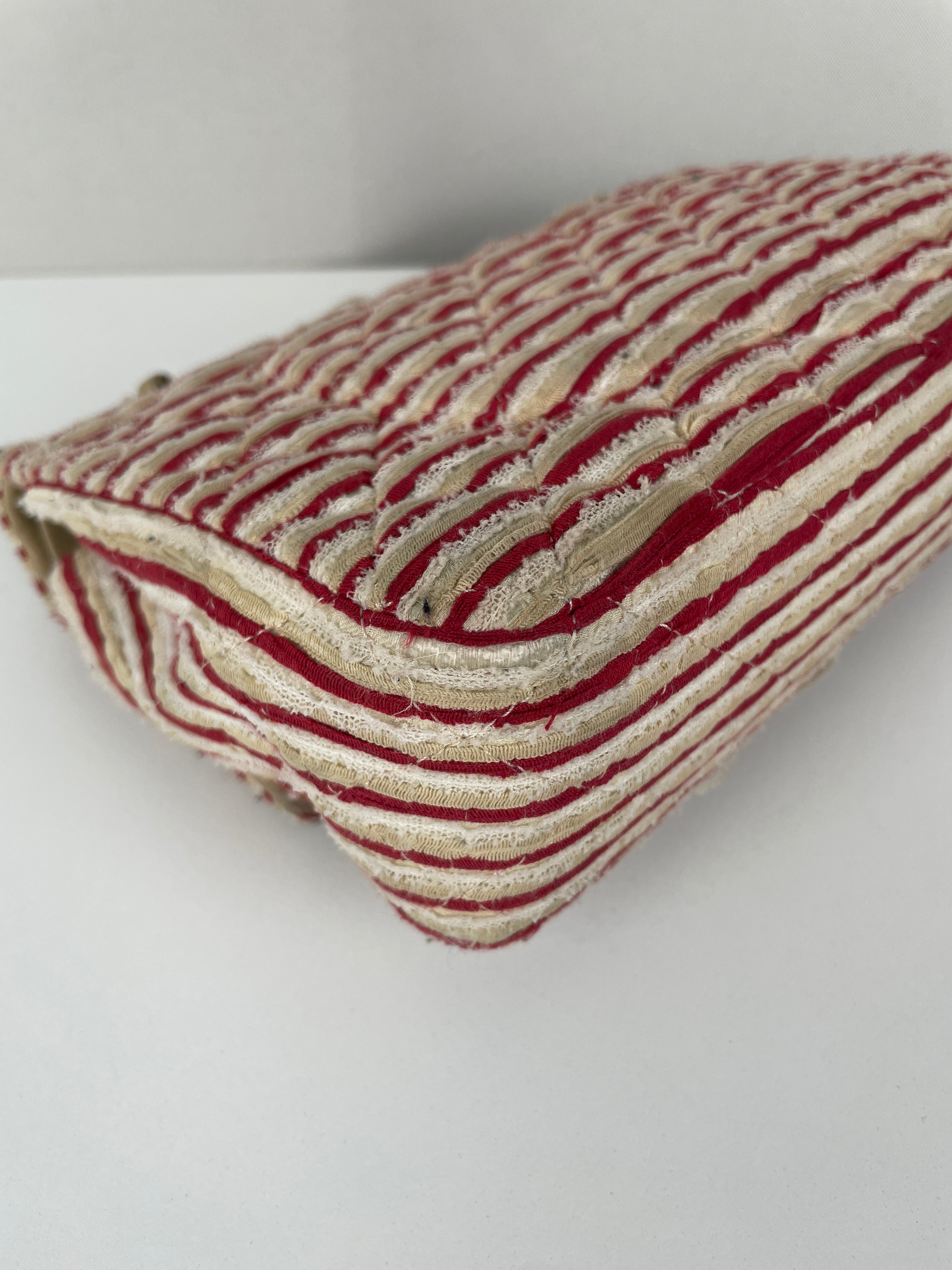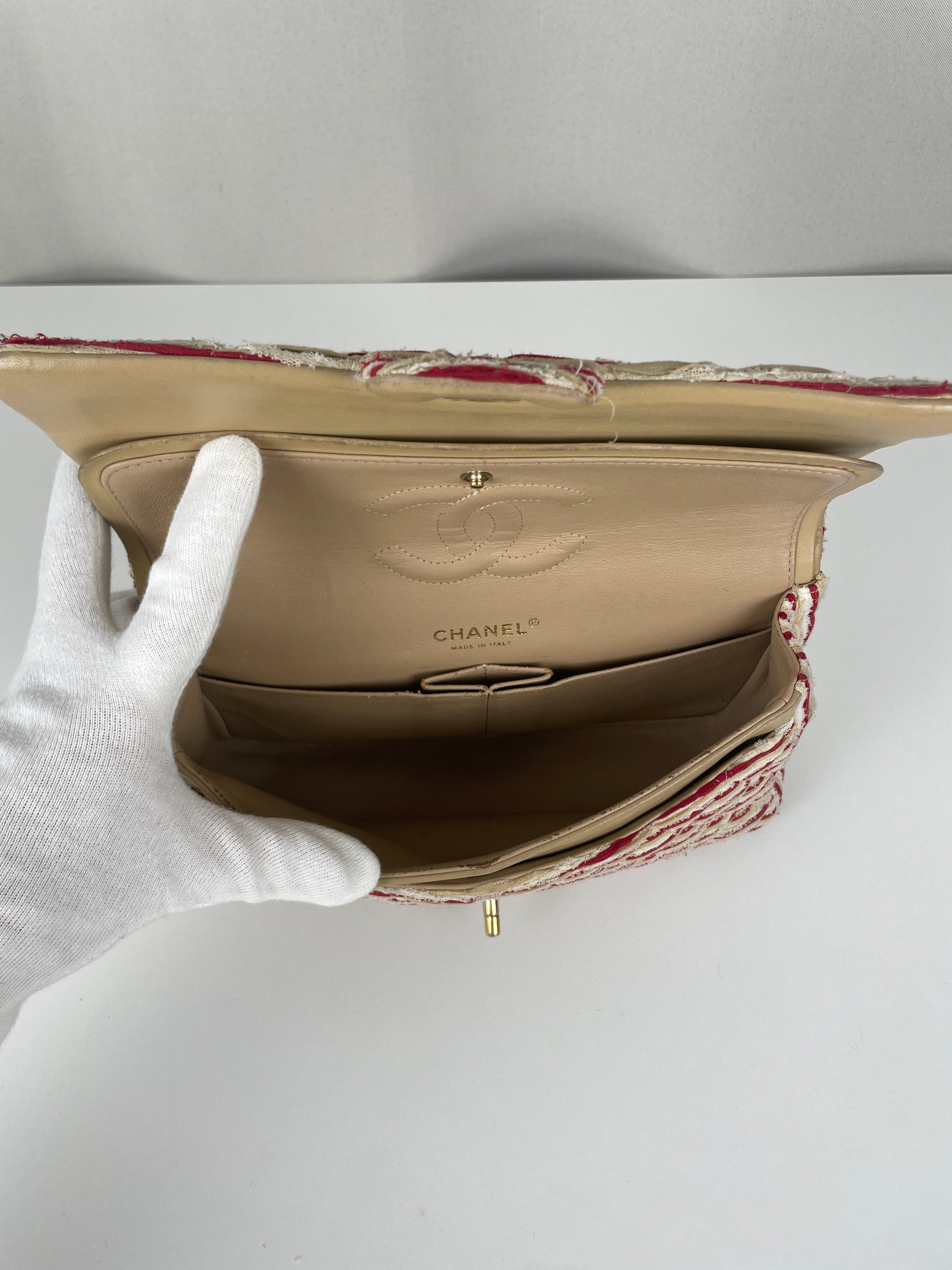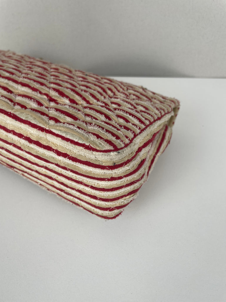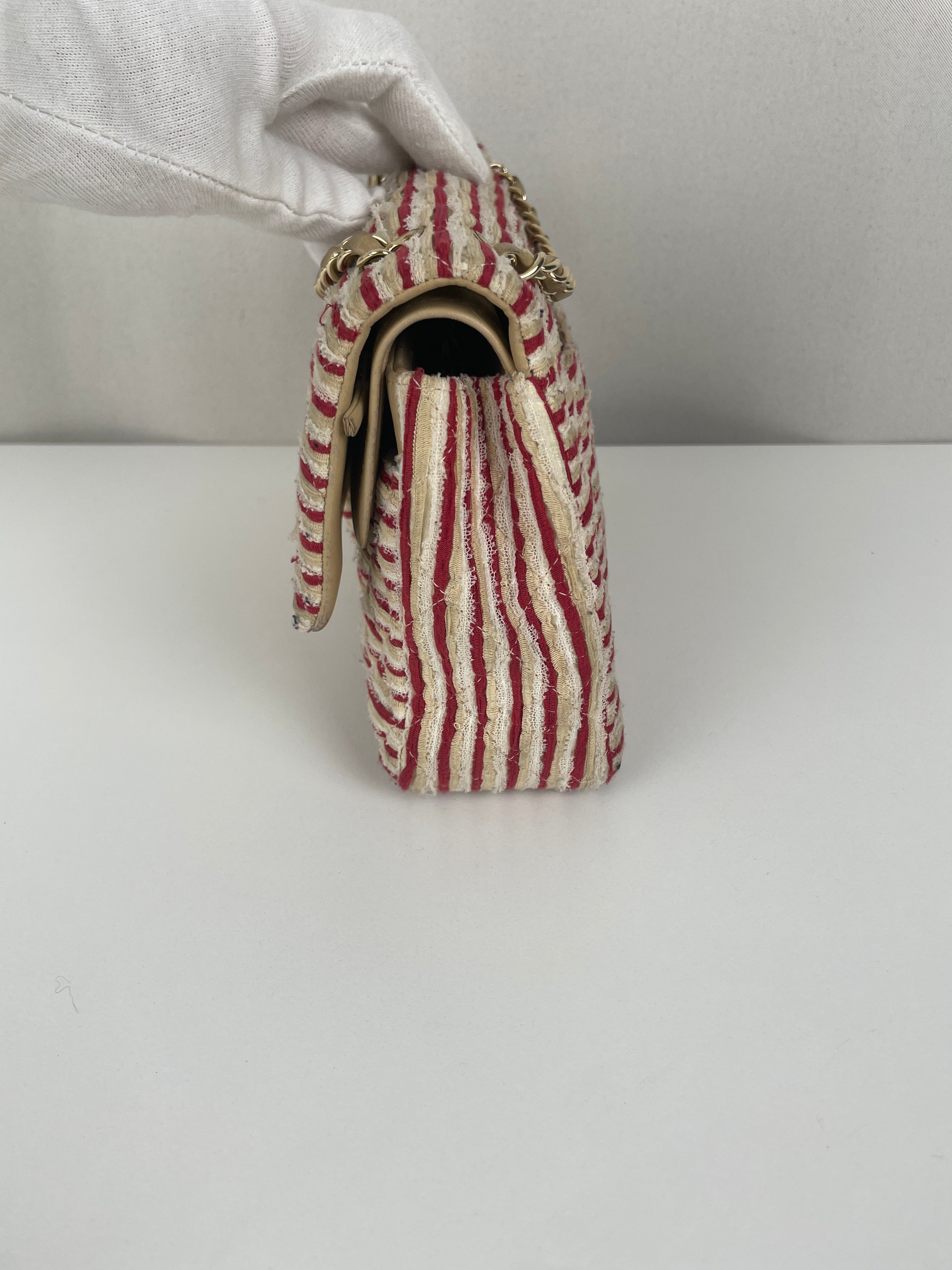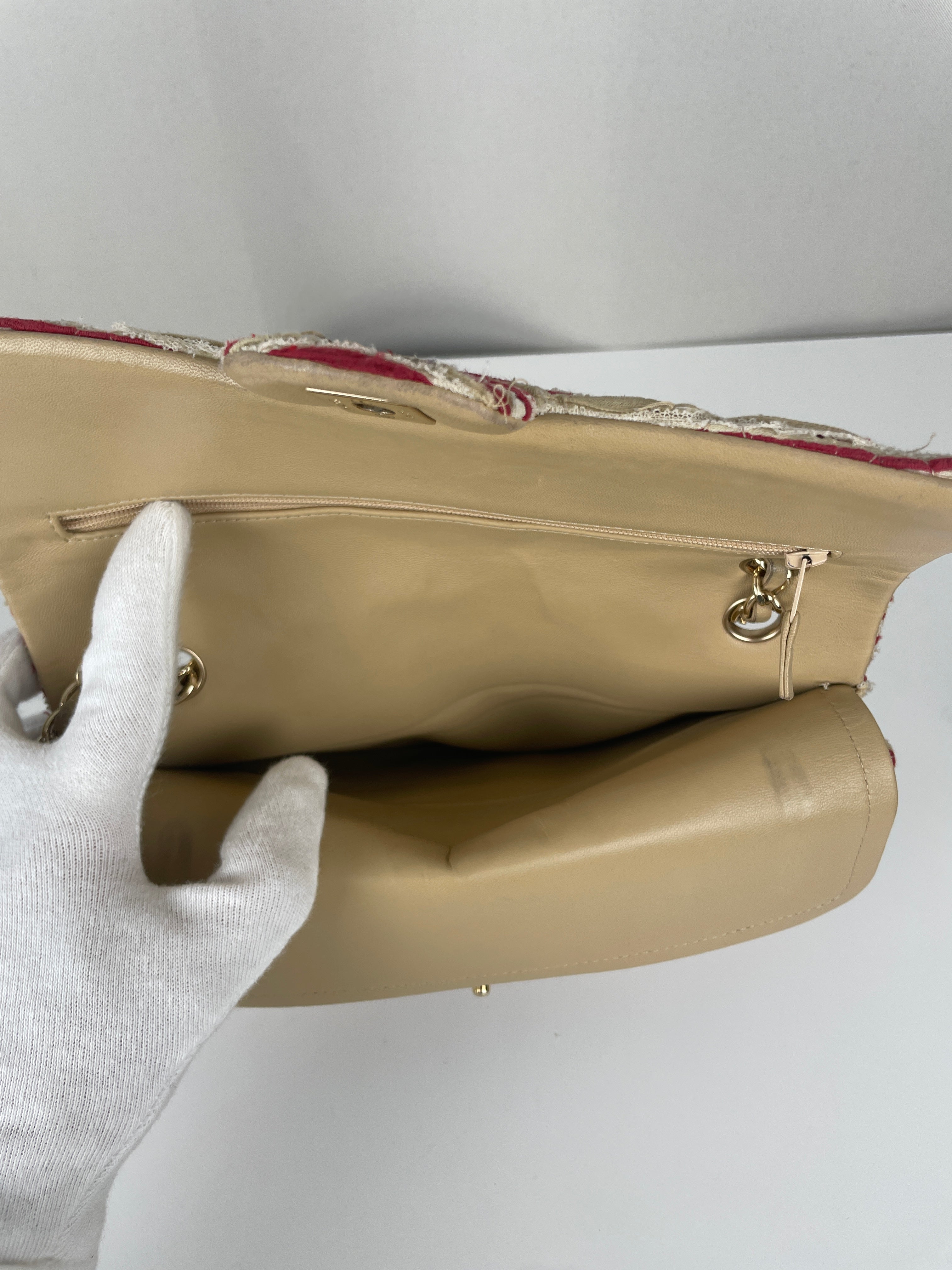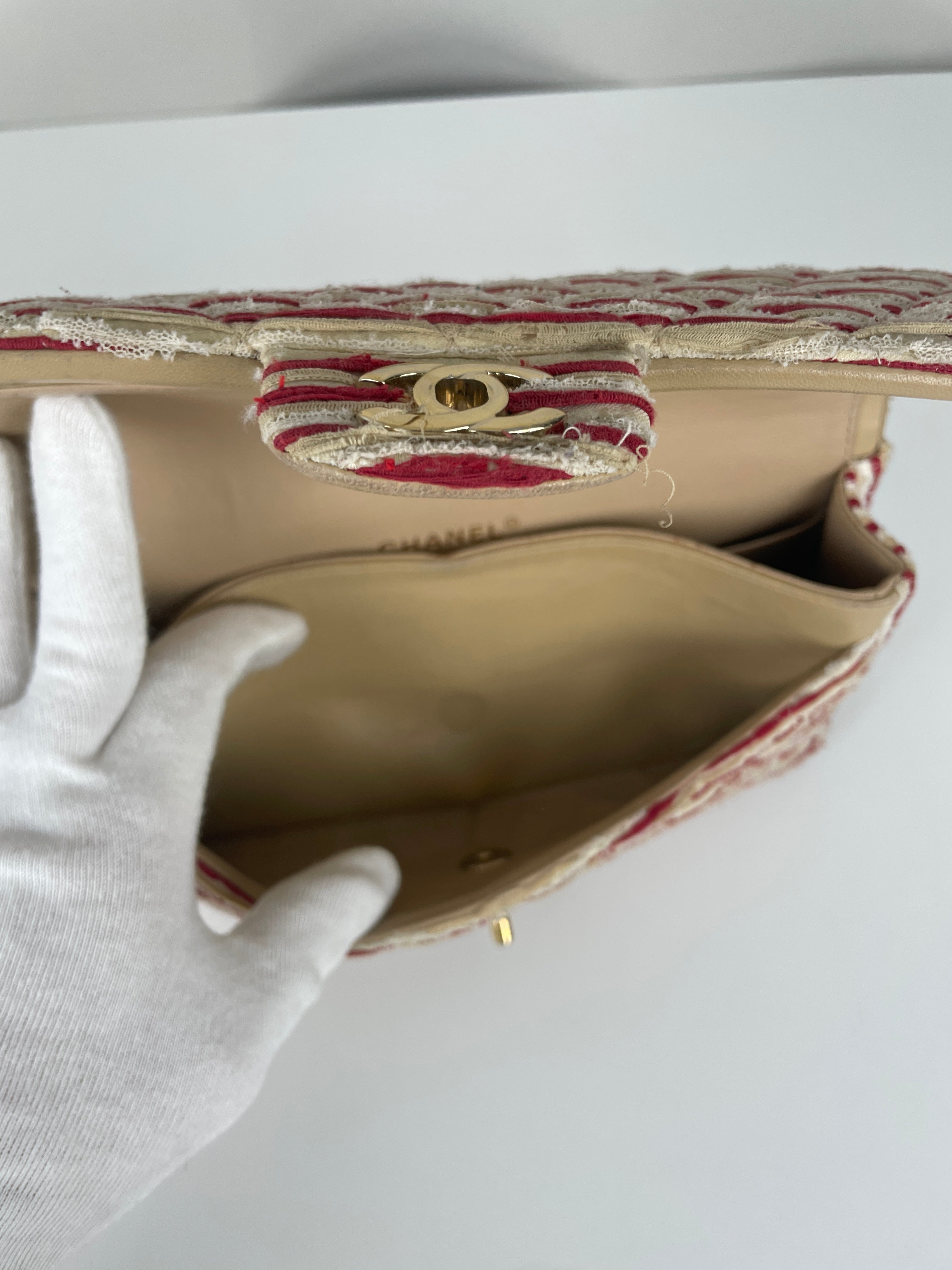 The Timeless Sailor is one of Chanel's most distinctive and charming seasonal designs. This fabric edition from 2014 showcases the maison's nautical-inspired craftsmanship in a beautiful white, beige and red colorway with over a decade of authentic character. A unique piece that embodies Chanel's creative heritage and represents the perfect blend of maritime elegance with timeless sophistication.