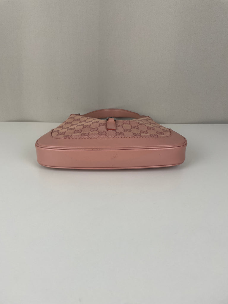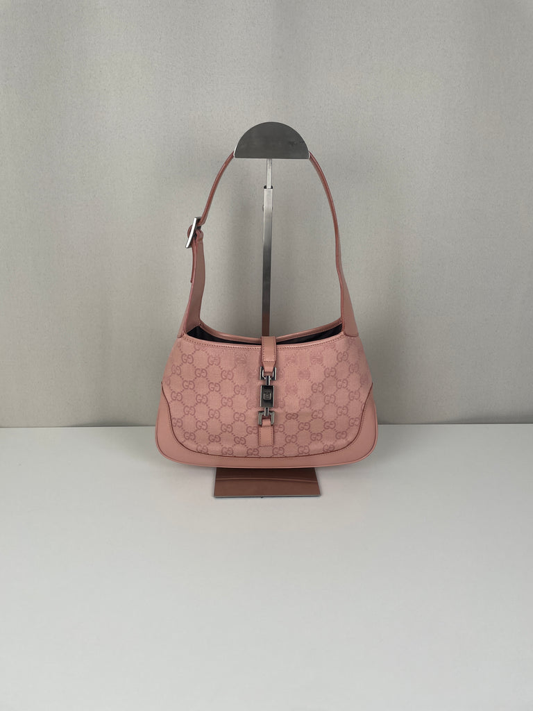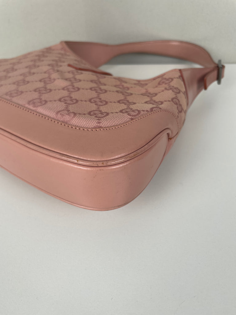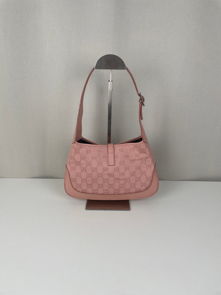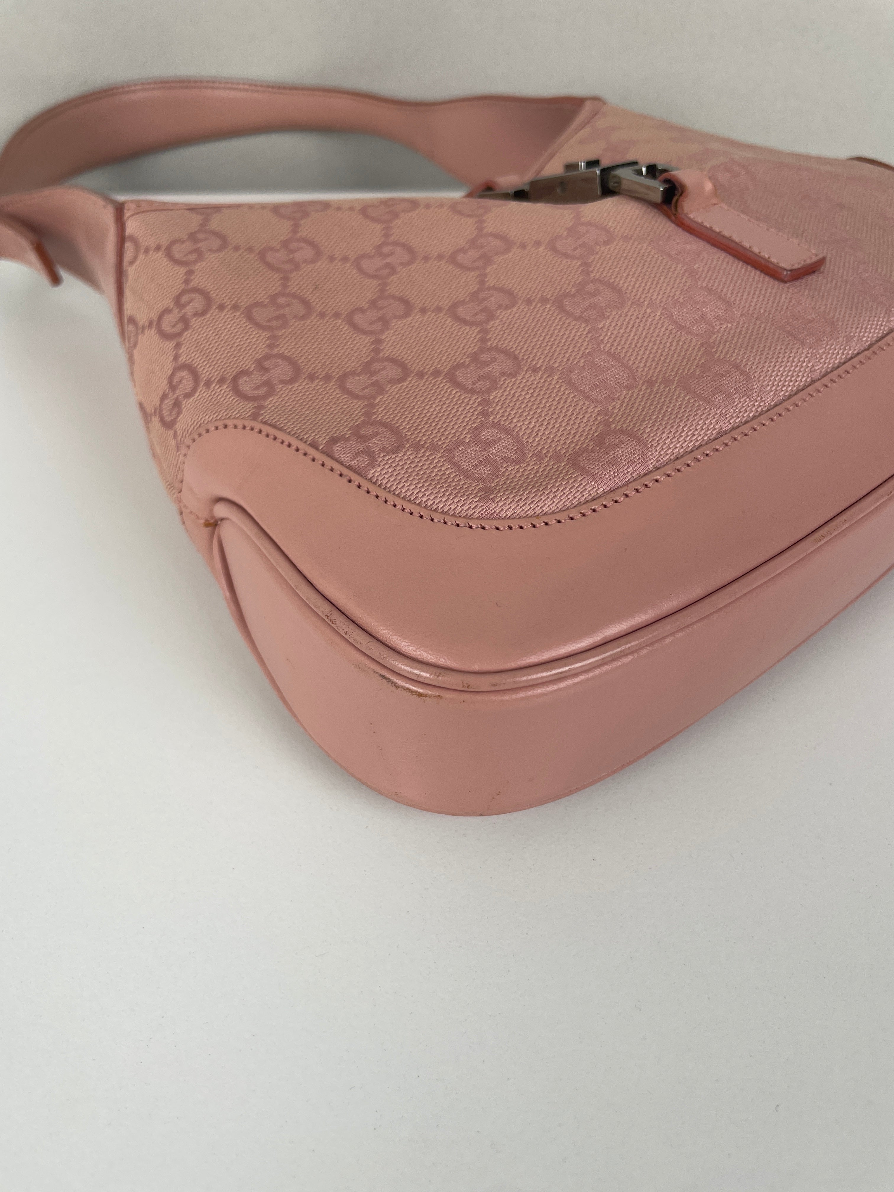 The Jackie is one of Gucci's most iconic and timeless designs. This rose monogram canvas edition showcases the maison's legendary craftsmanship and distinctive style with authentic character from gentle use. A classic piece that embodies Gucci's heritage and represents the perfect blend of vintage appeal with contemporary elegance in the beautiful pink monogram pattern.