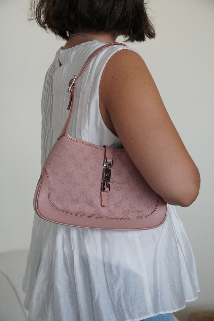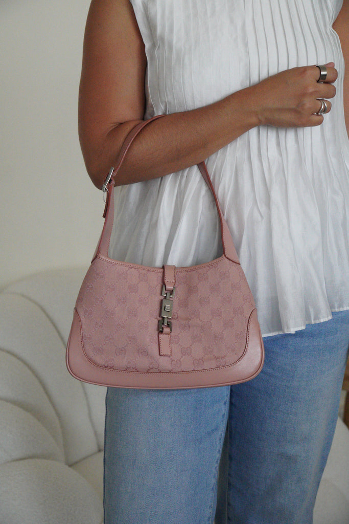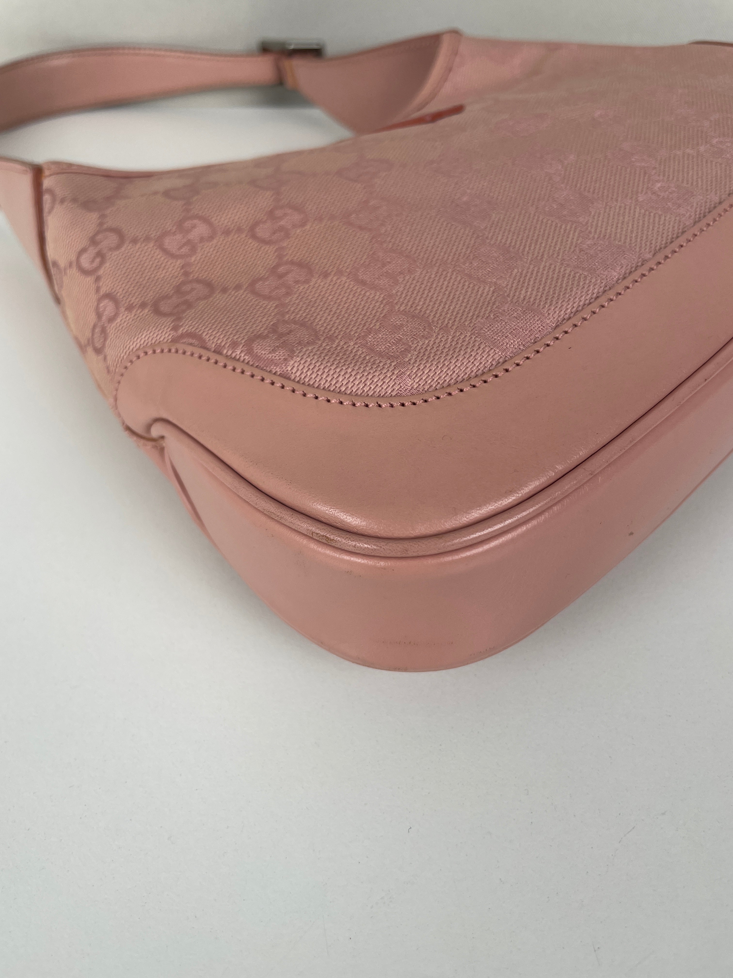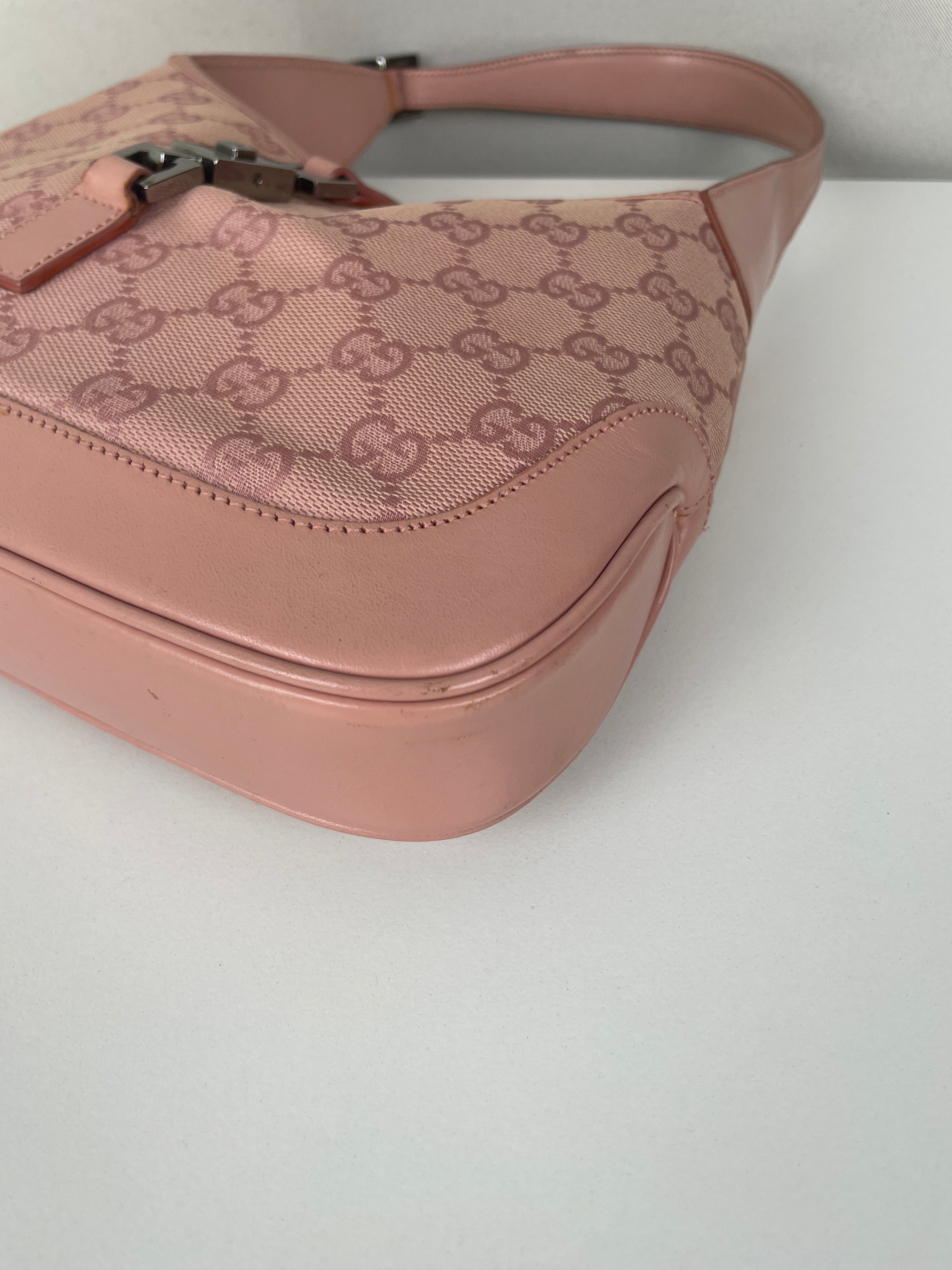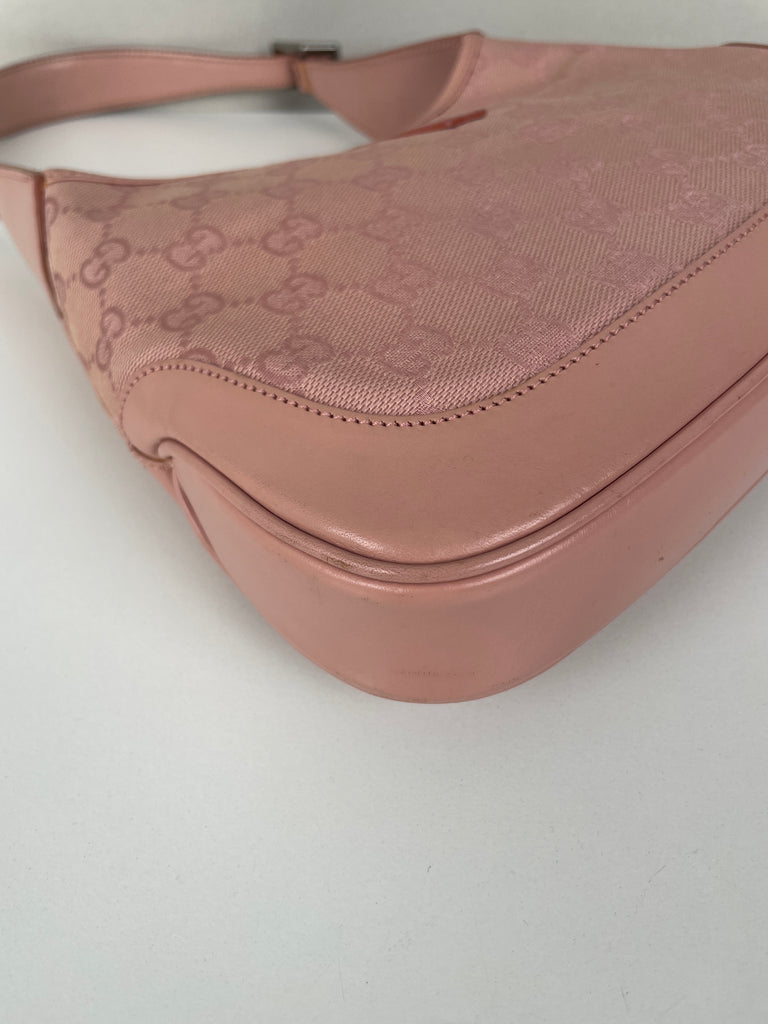 The Jackie is one of Gucci's most iconic and timeless designs. This rose monogram canvas edition showcases the maison's legendary craftsmanship and distinctive style with authentic character from gentle use. A classic piece that embodies Gucci's heritage and represents the perfect blend of vintage appeal with contemporary elegance in the beautiful pink monogram pattern.